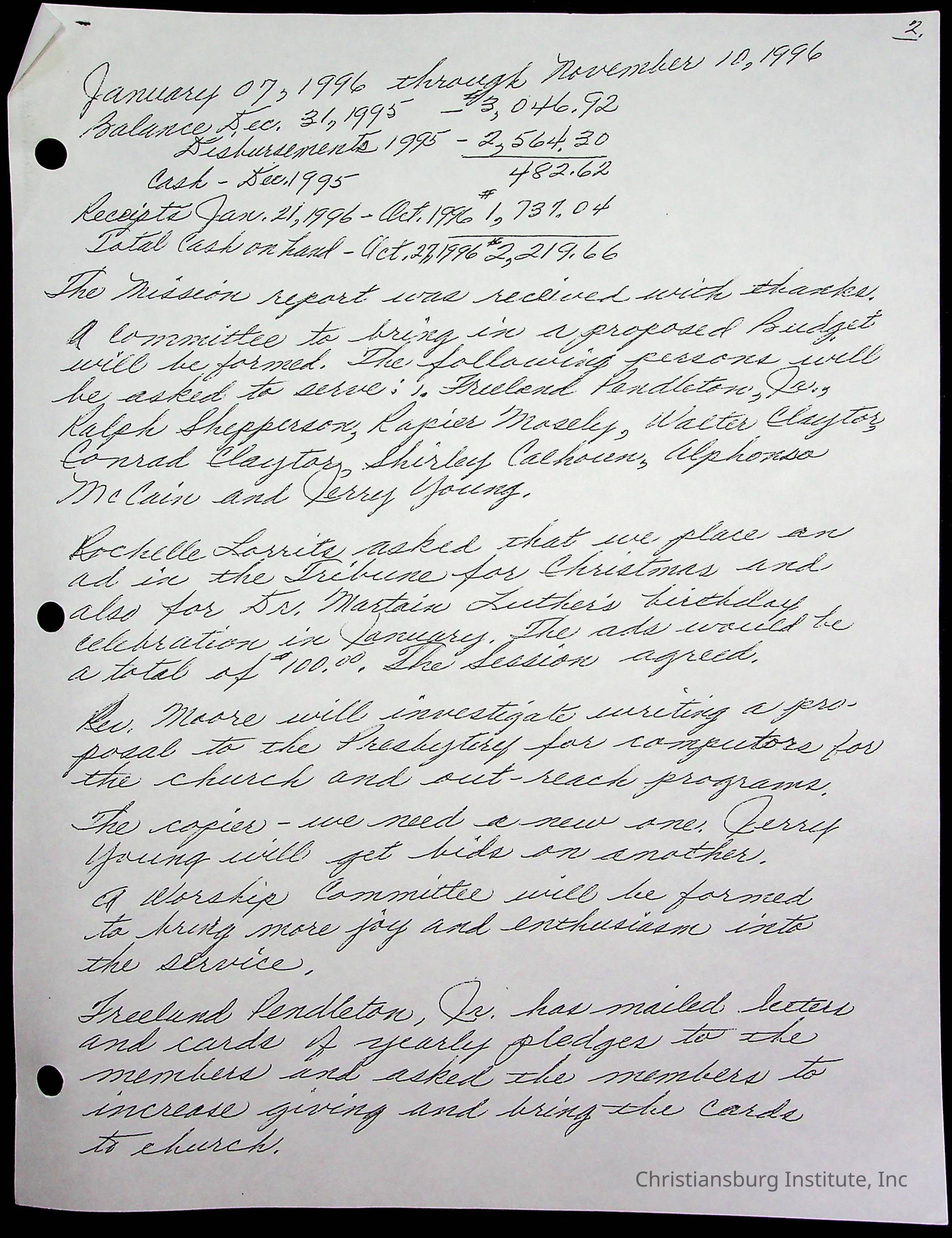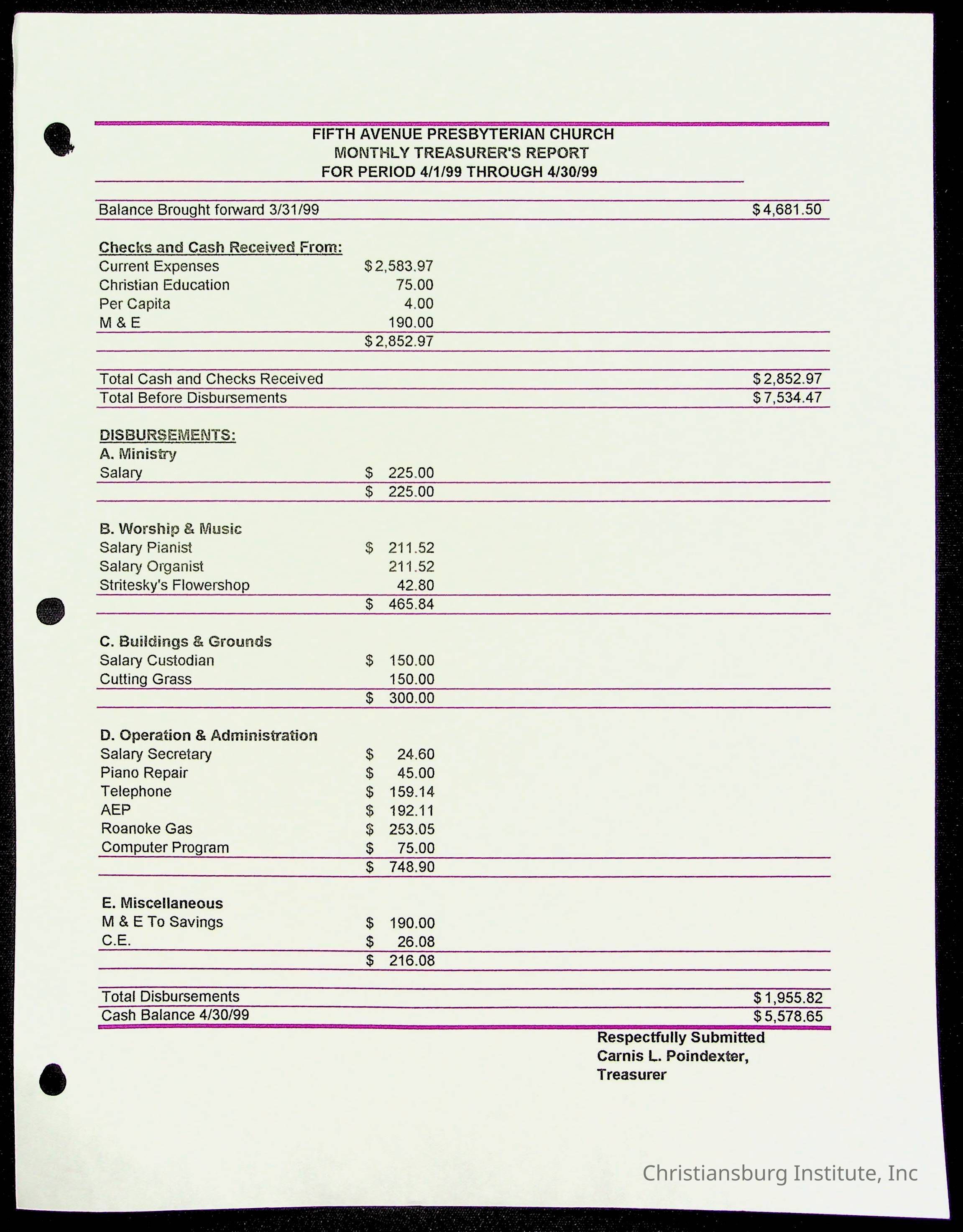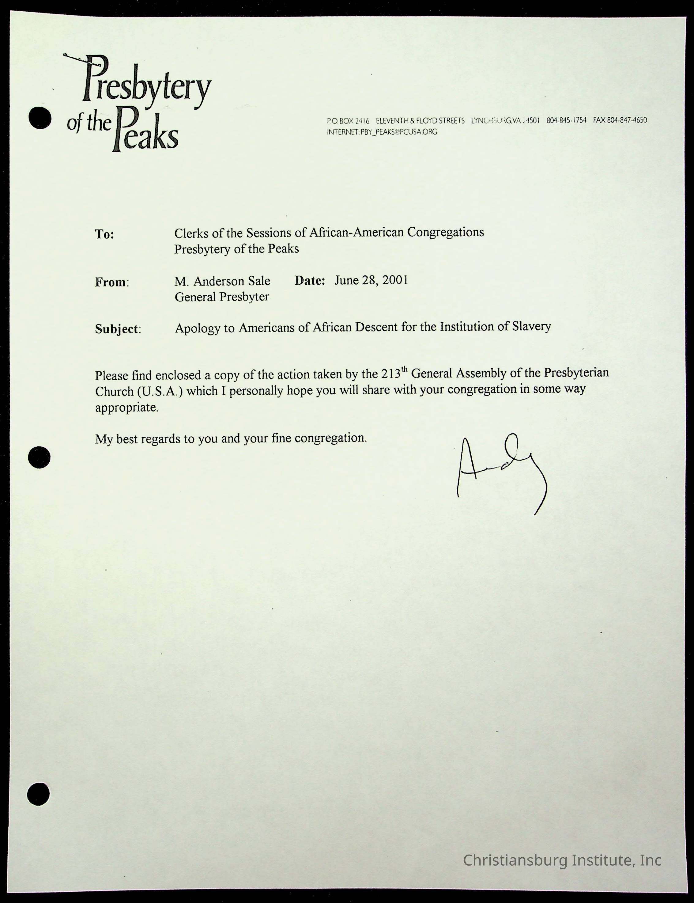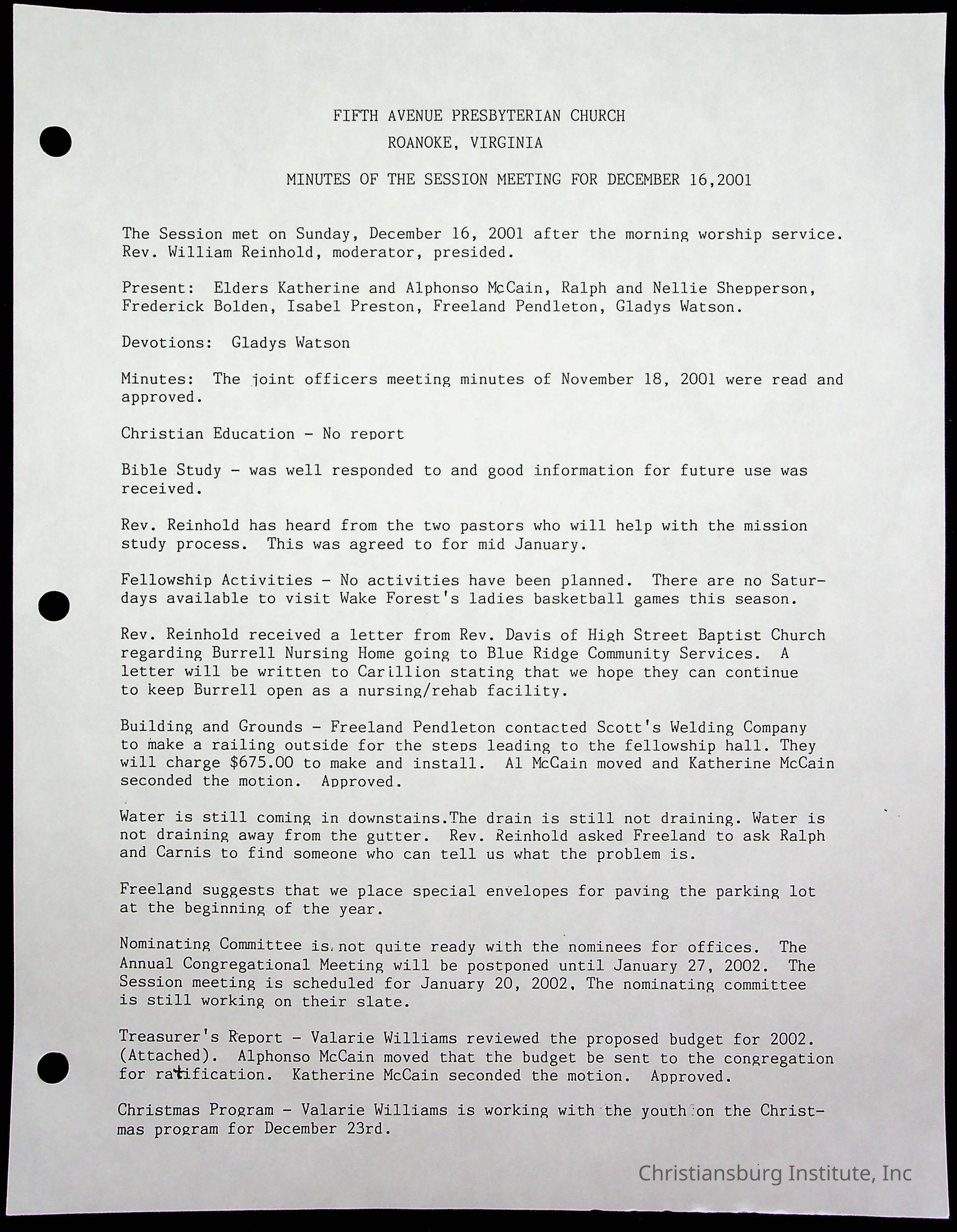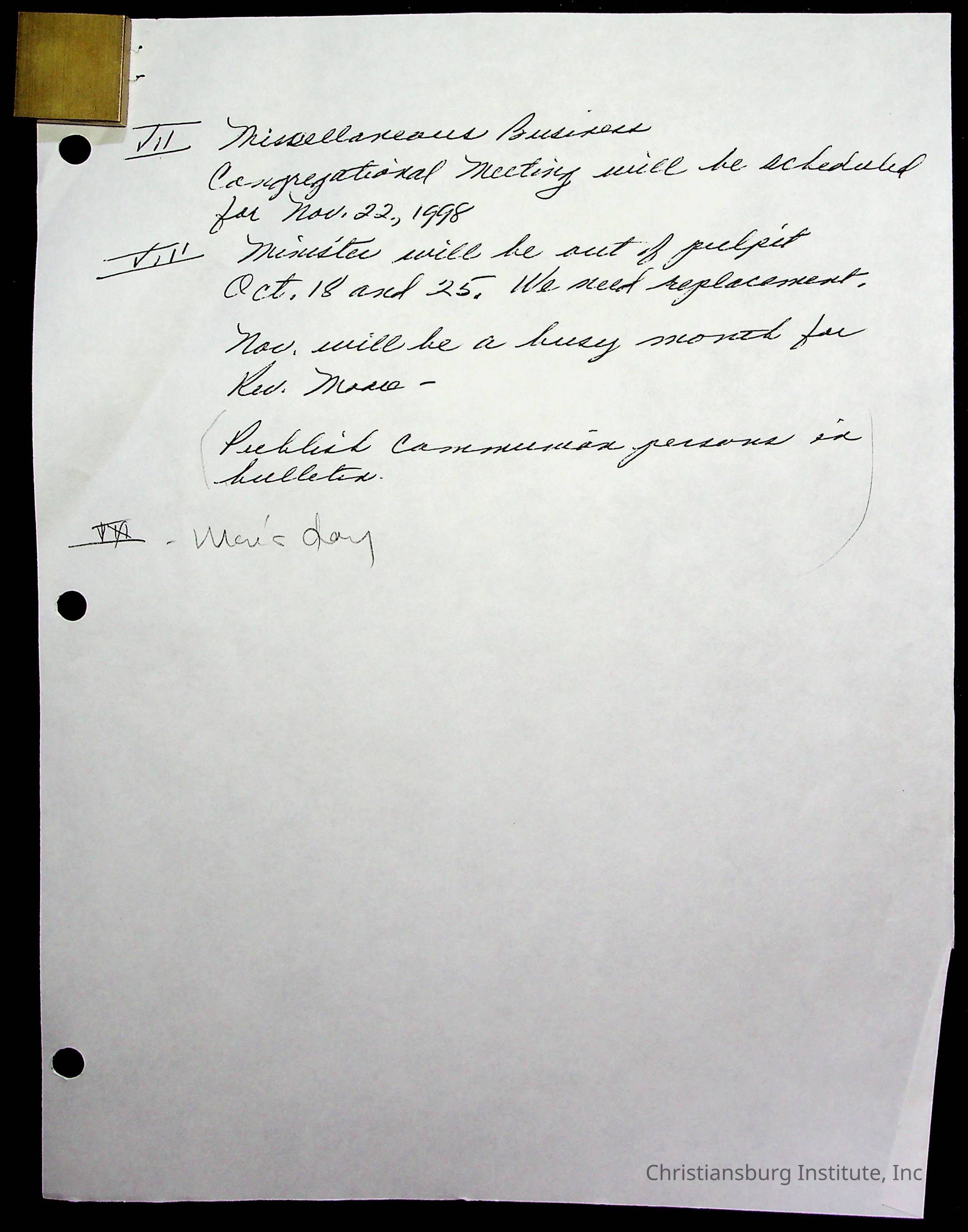 Copyright has been assigned to Christiansburg Institute Museum & Archives by Fifth Avenue Presbyterian Church. For permission to publish materials created by the donor, contact CIMA@christiansburginstitute.com. Materials not created by Fifth Avenue Presbyterian Church may still be under copyright.