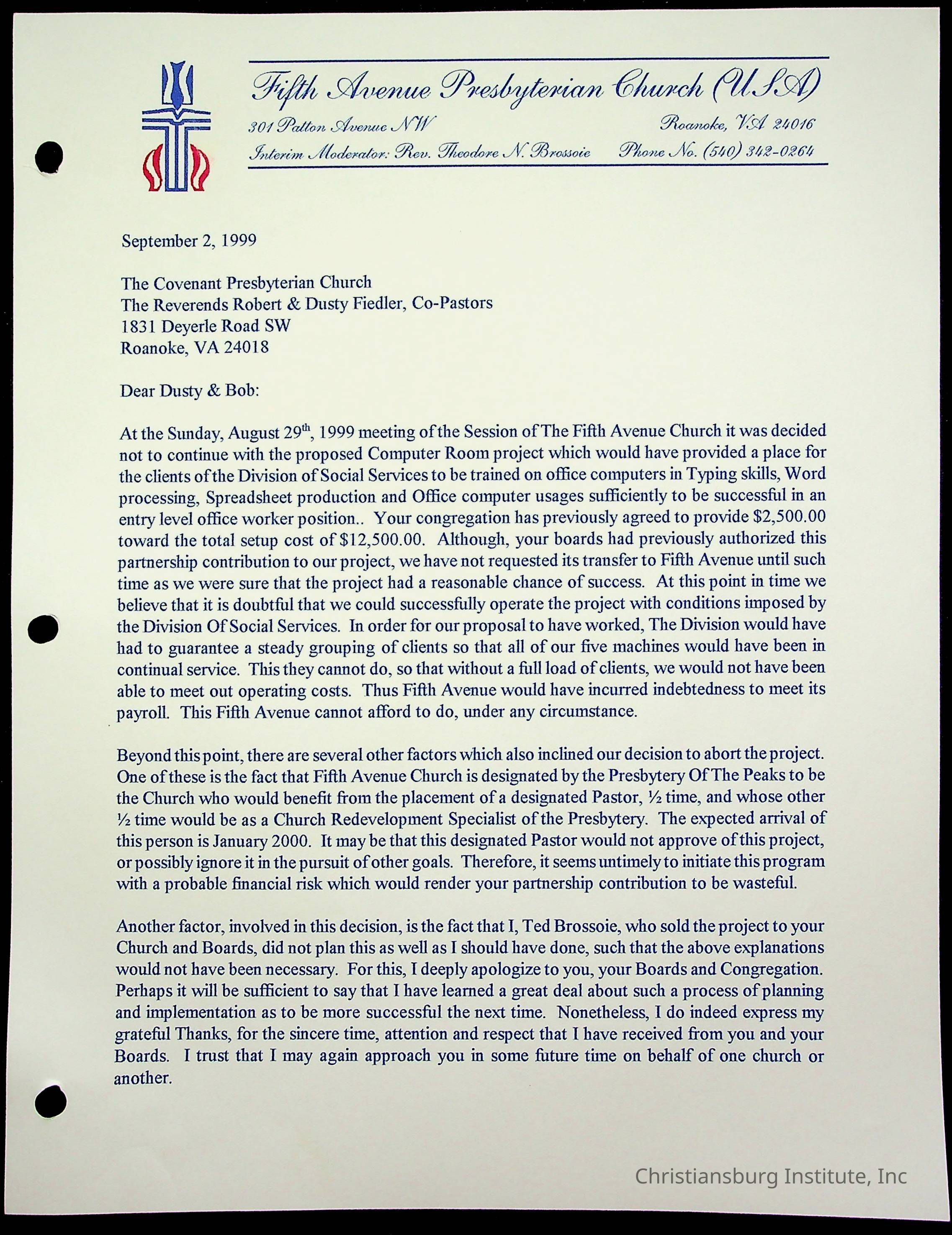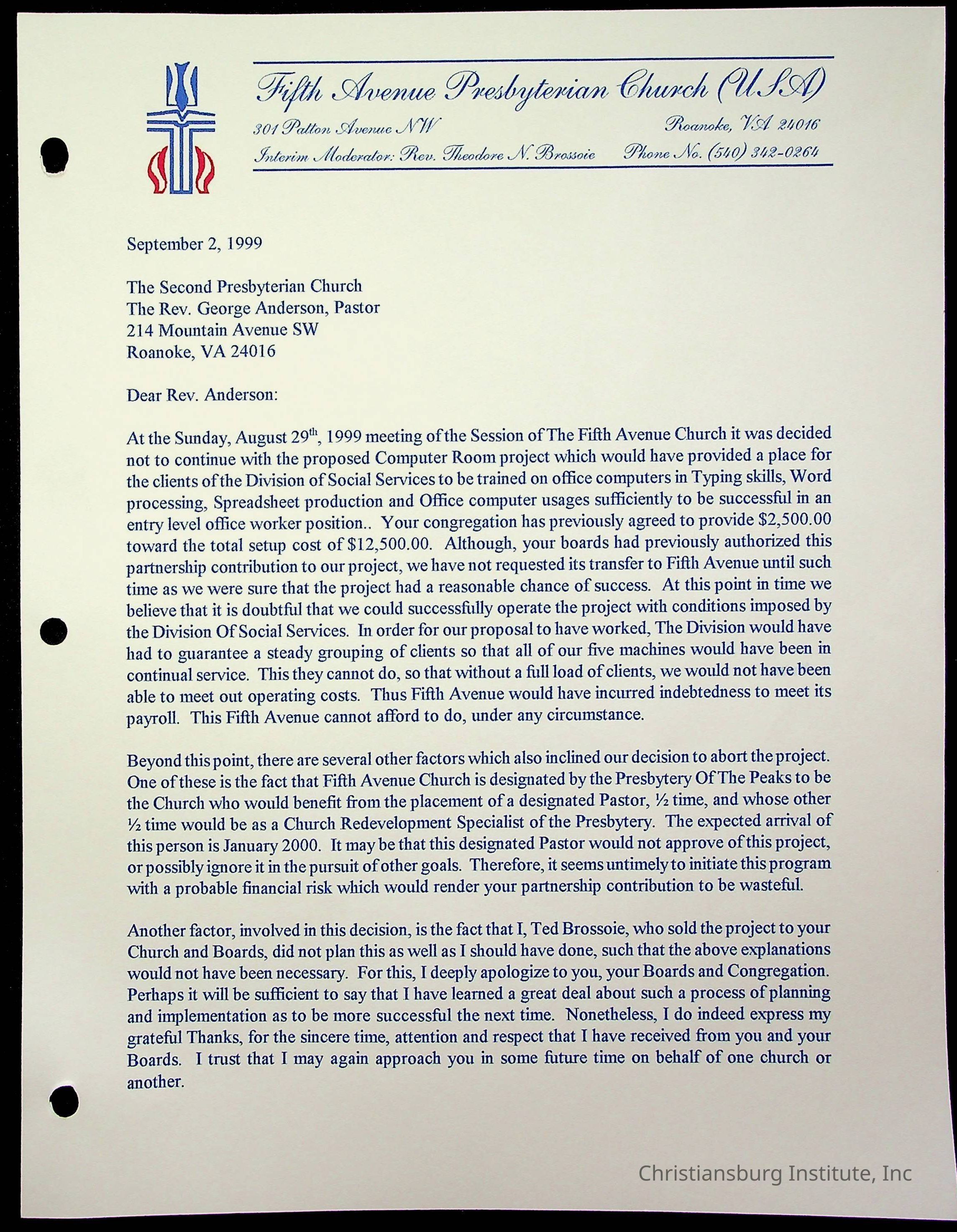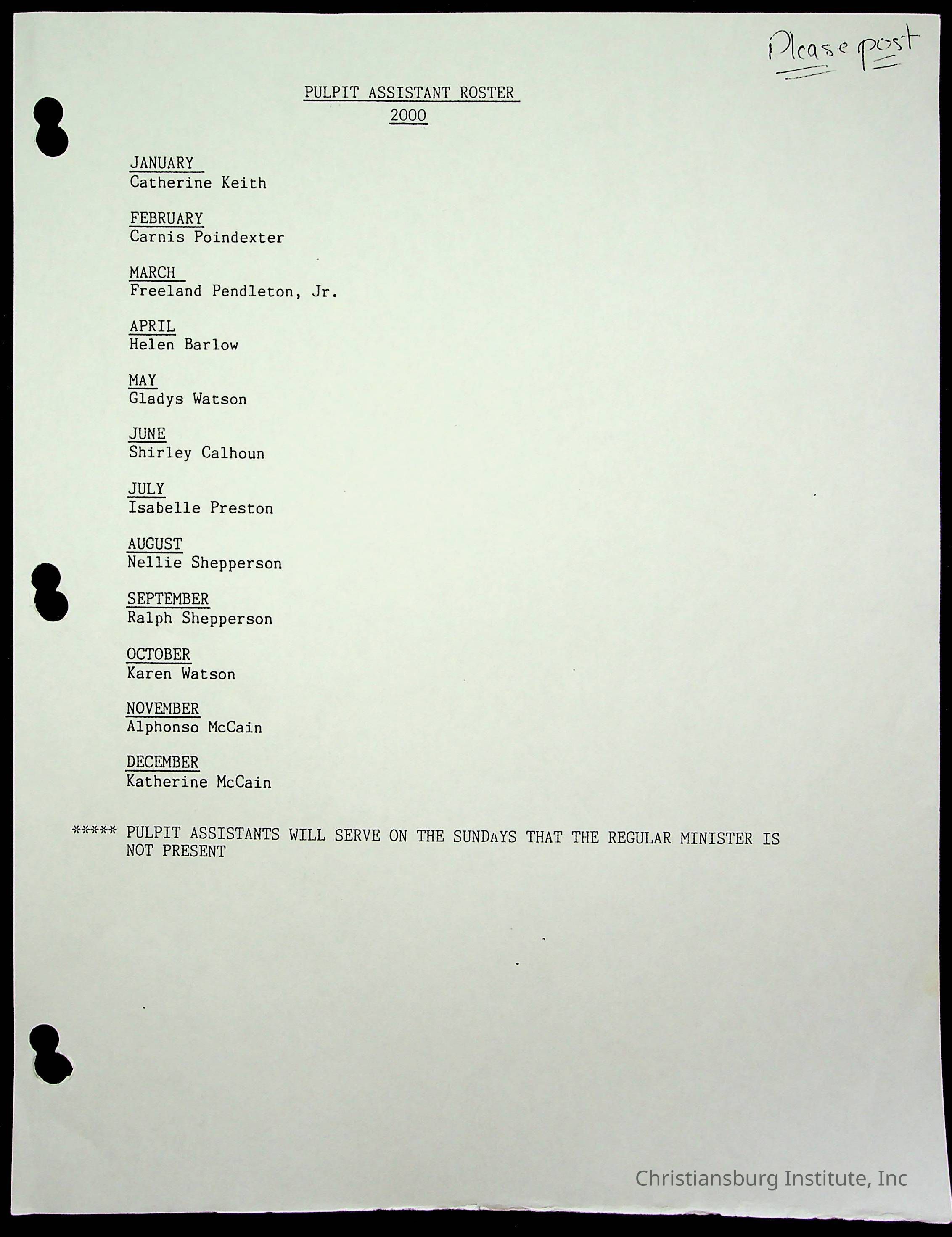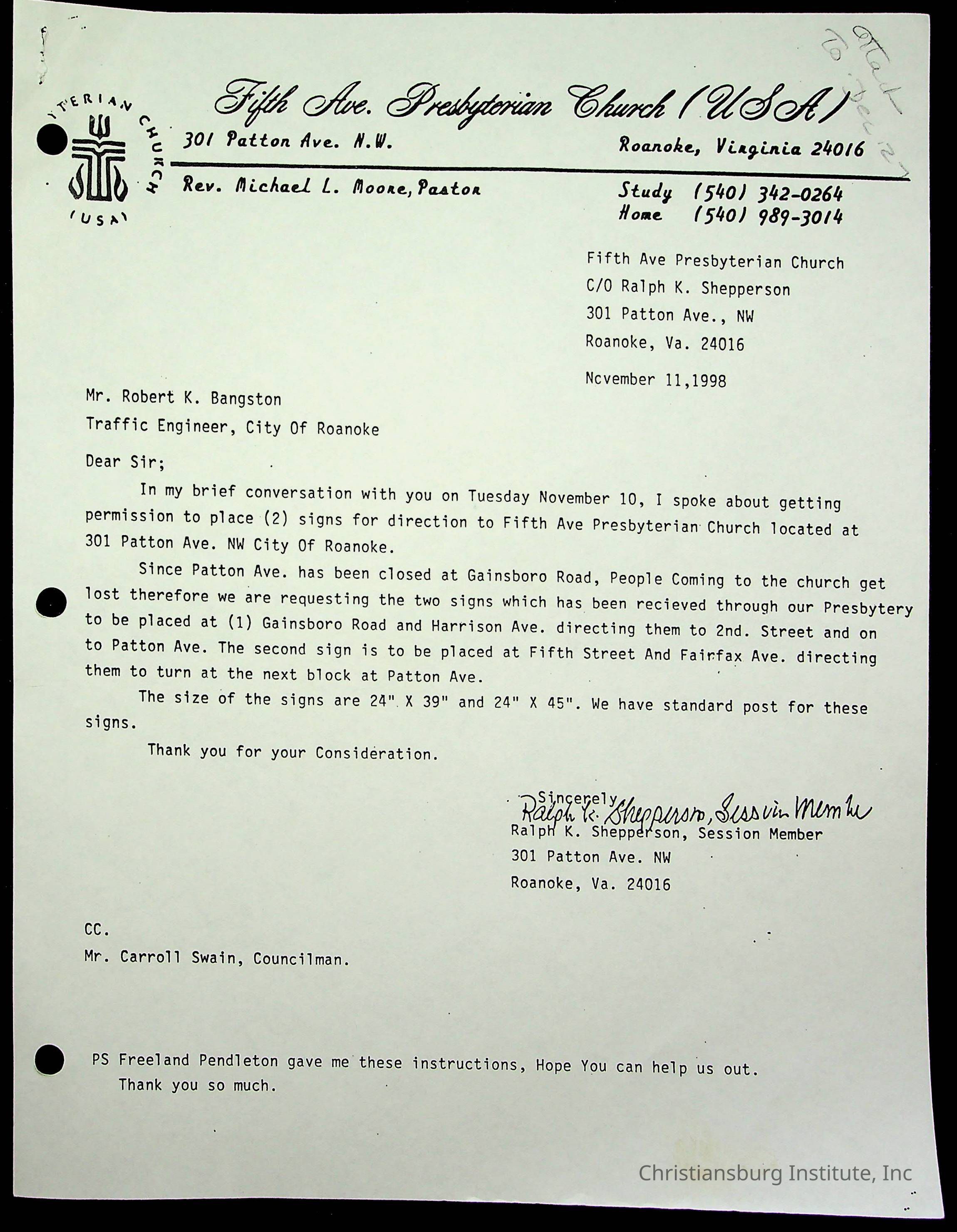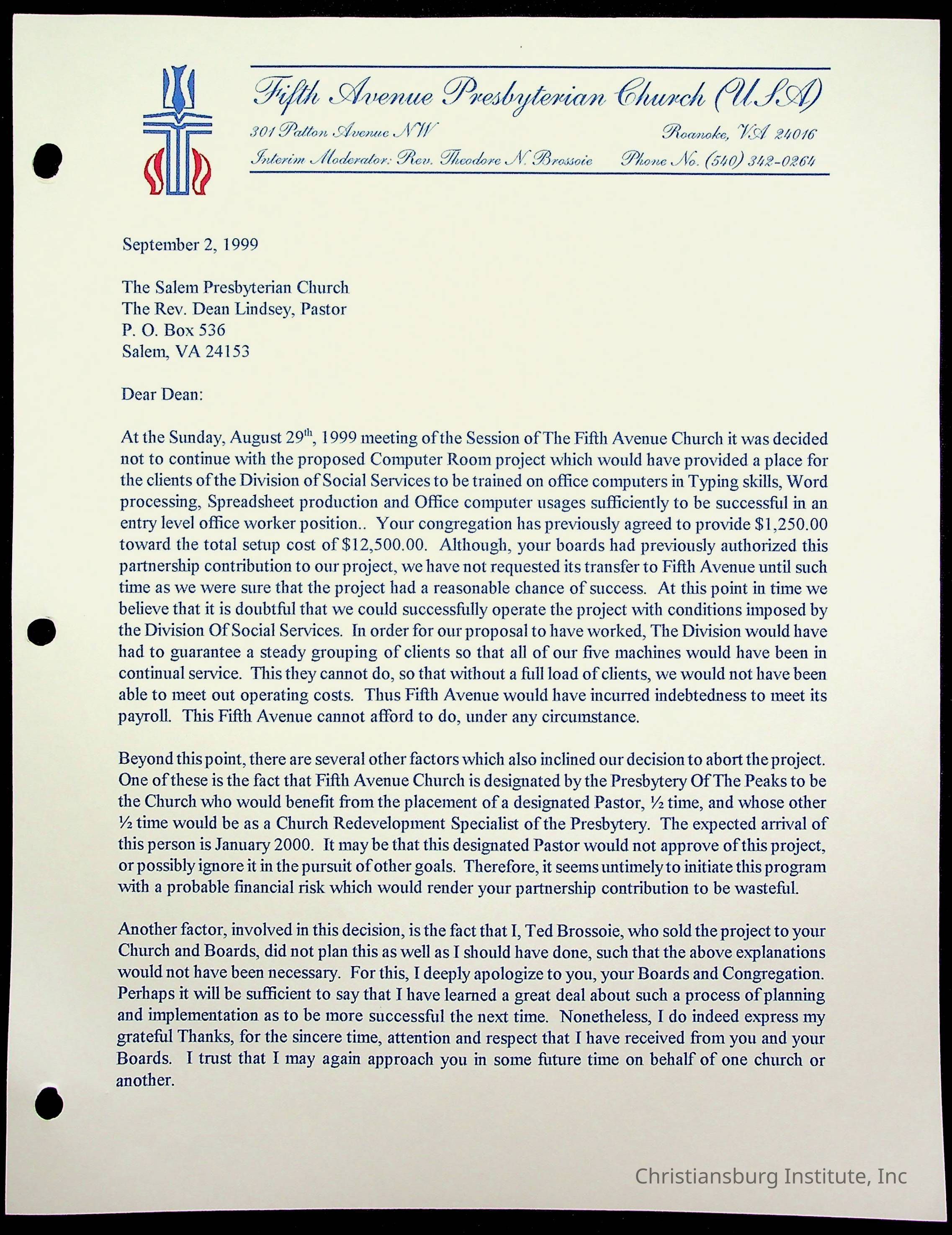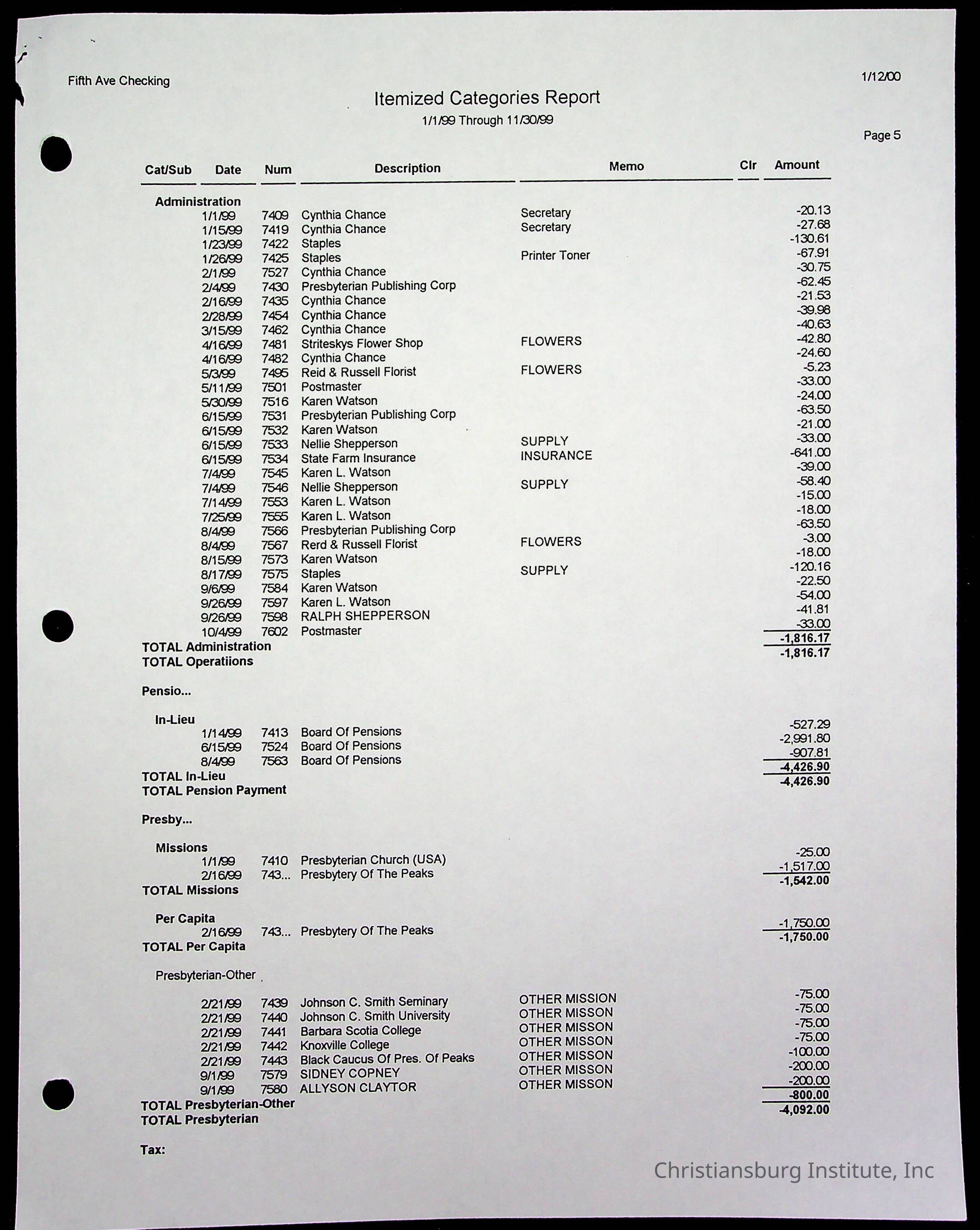 Copyright has been assigned to Christiansburg Institute Museum & Archives by Fifth Avenue Presbyterian Church. For permission to publish materials created by the donor, contact CIMA@christiansburginstitute.com. Materials not created by Fifth Avenue Presbyterian Church may still be under copyright.