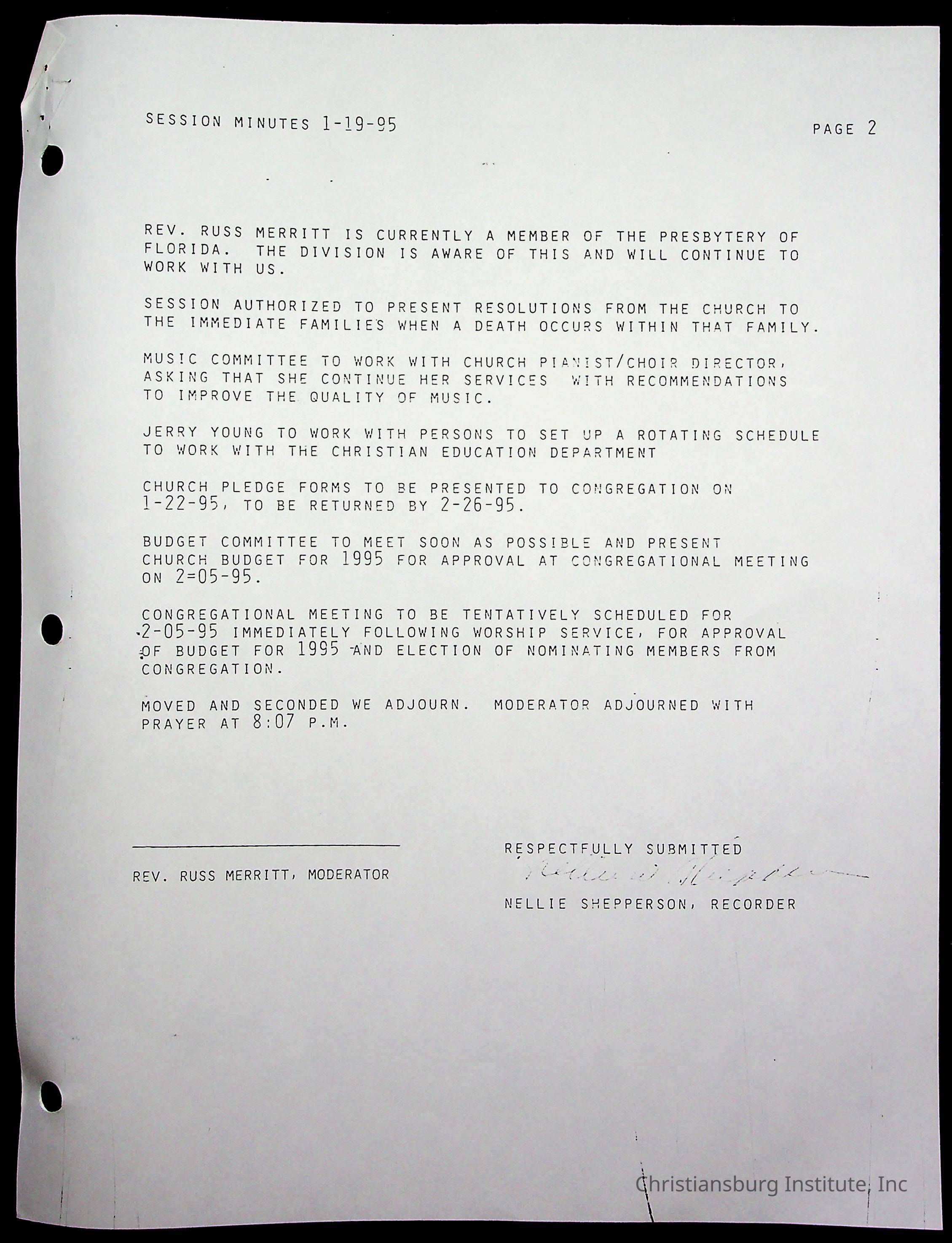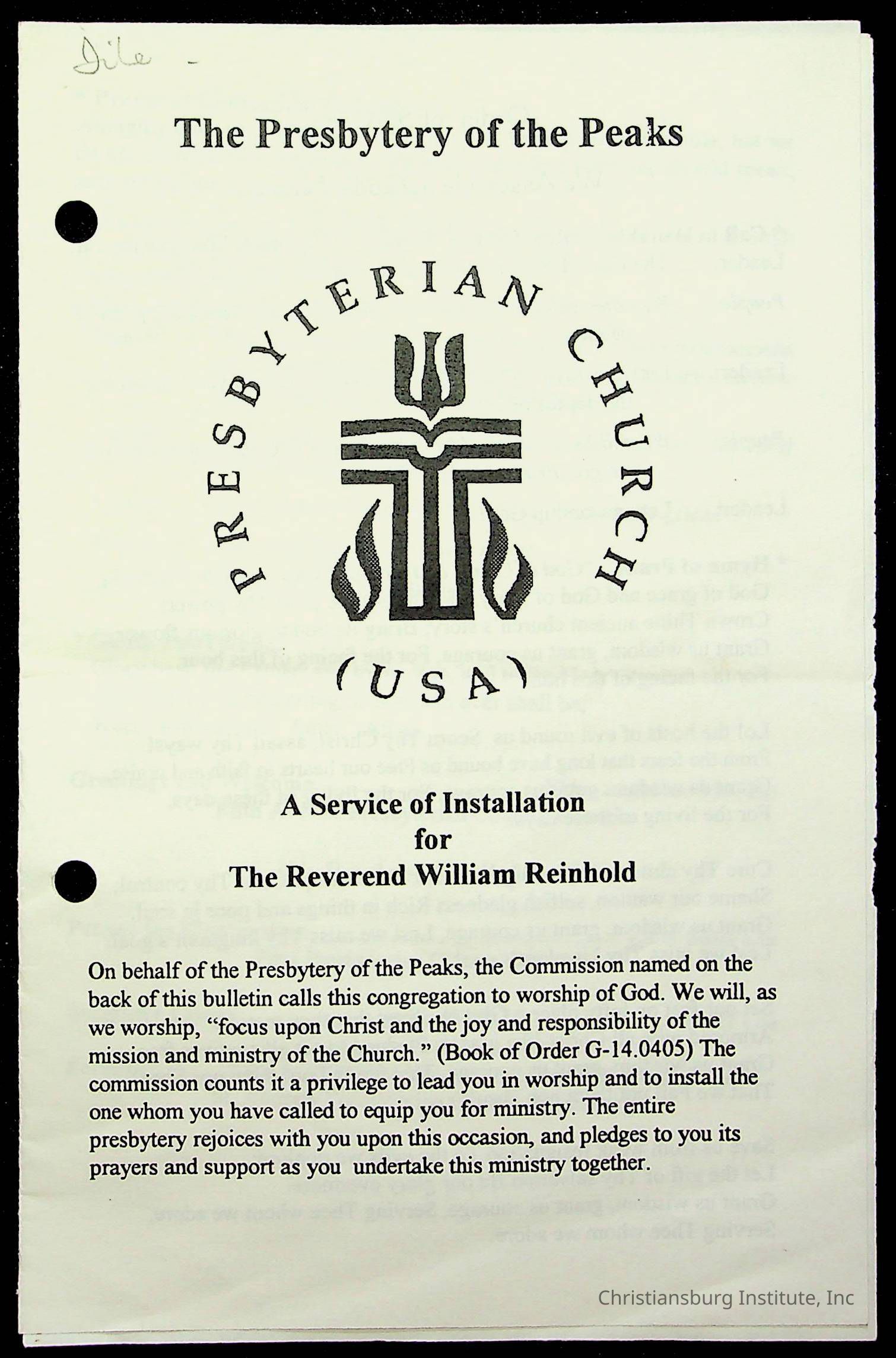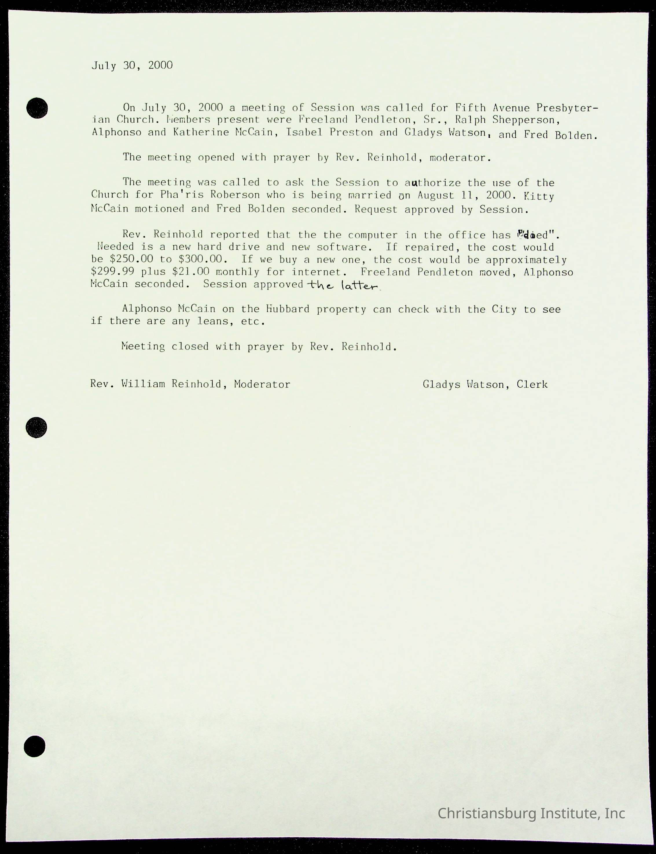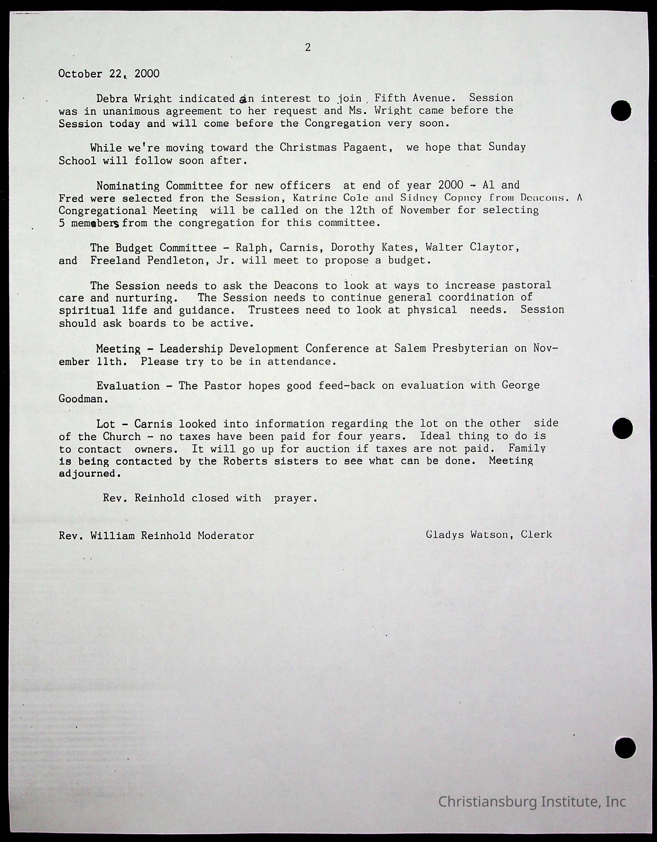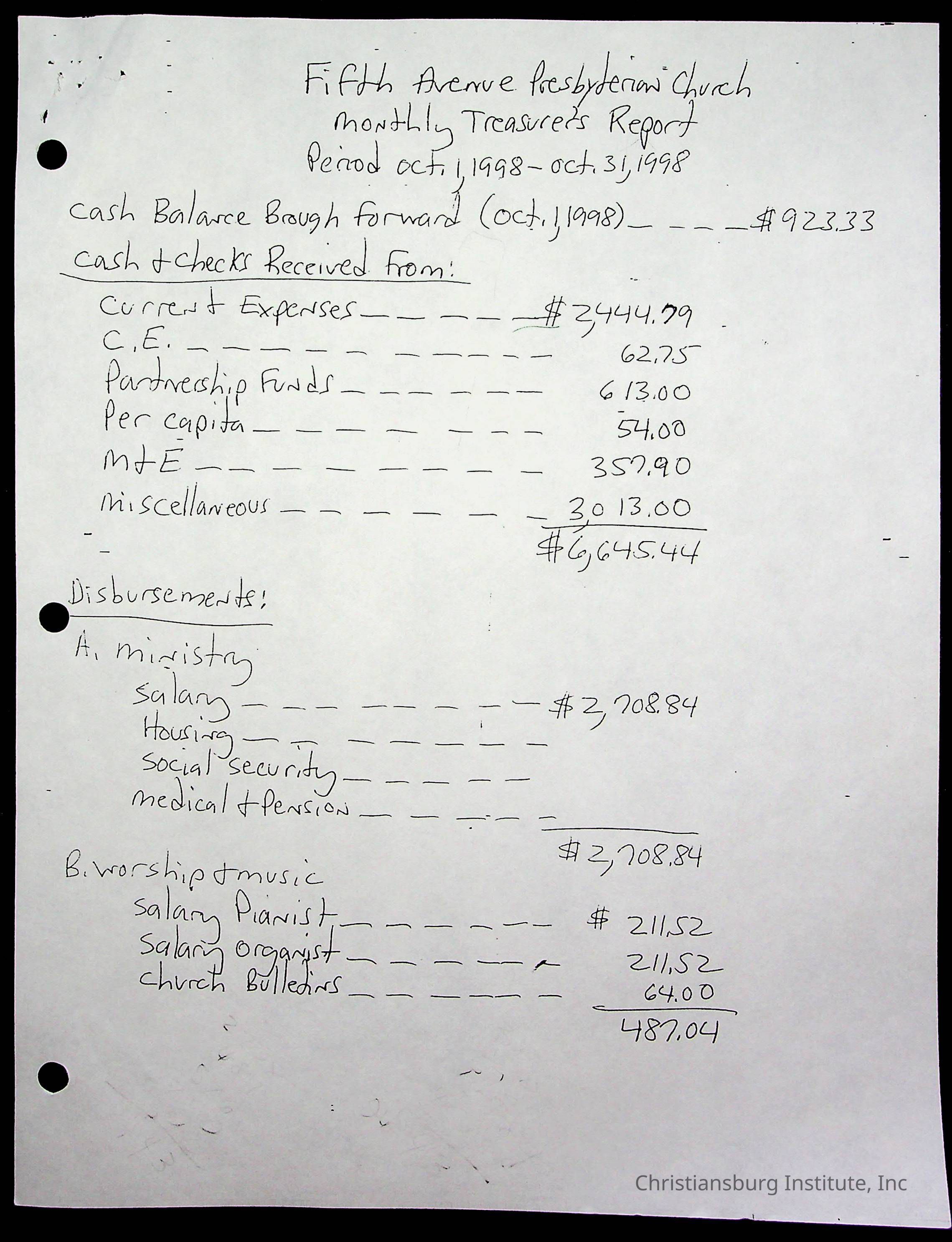 Copyright has been assigned to Christiansburg Institute Museum & Archives by Fifth Avenue Presbyterian Church. For permission to publish materials created by the donor, contact CIMA@christiansburginstitute.com. Materials not created by Fifth Avenue Presbyterian Church may still be under copyright.