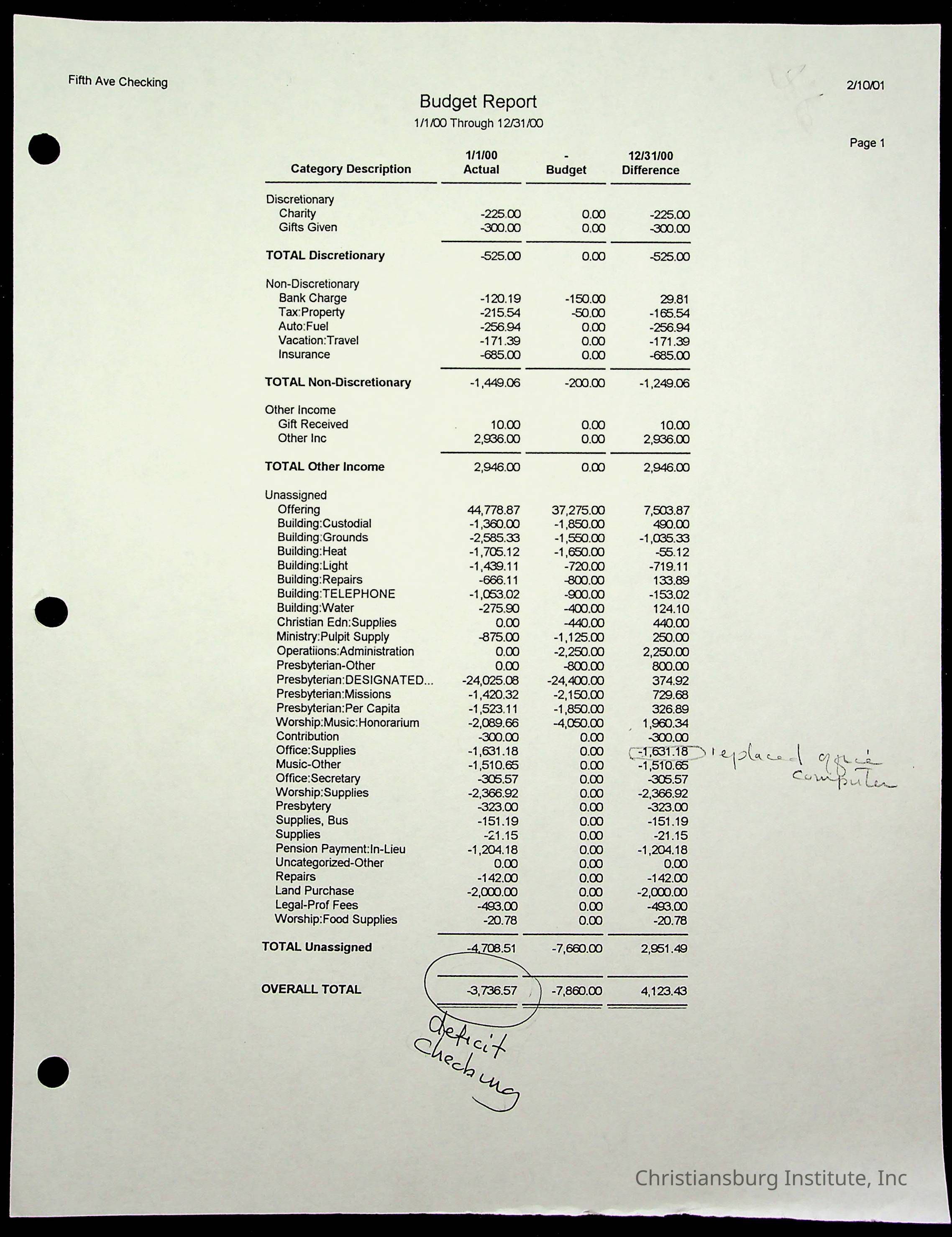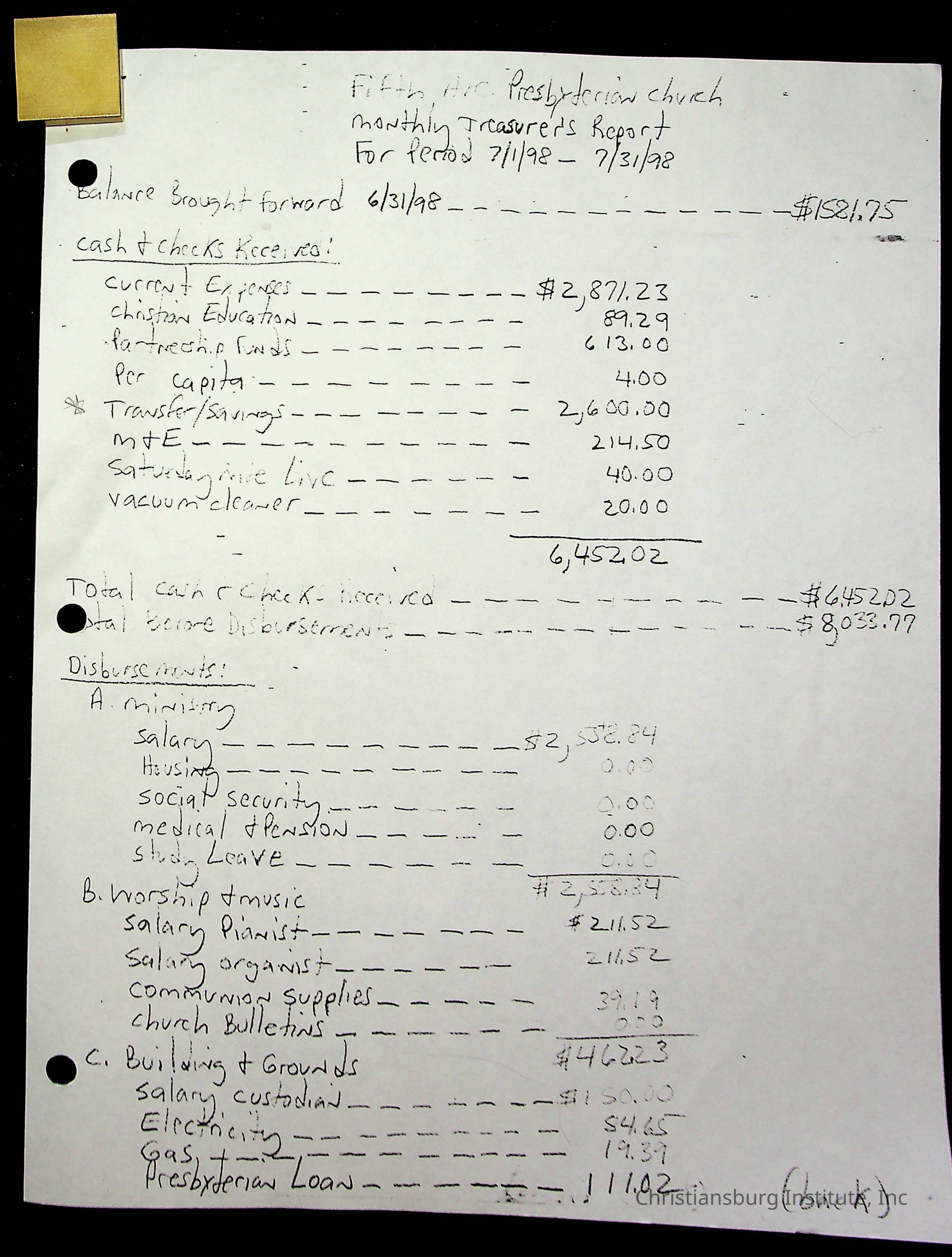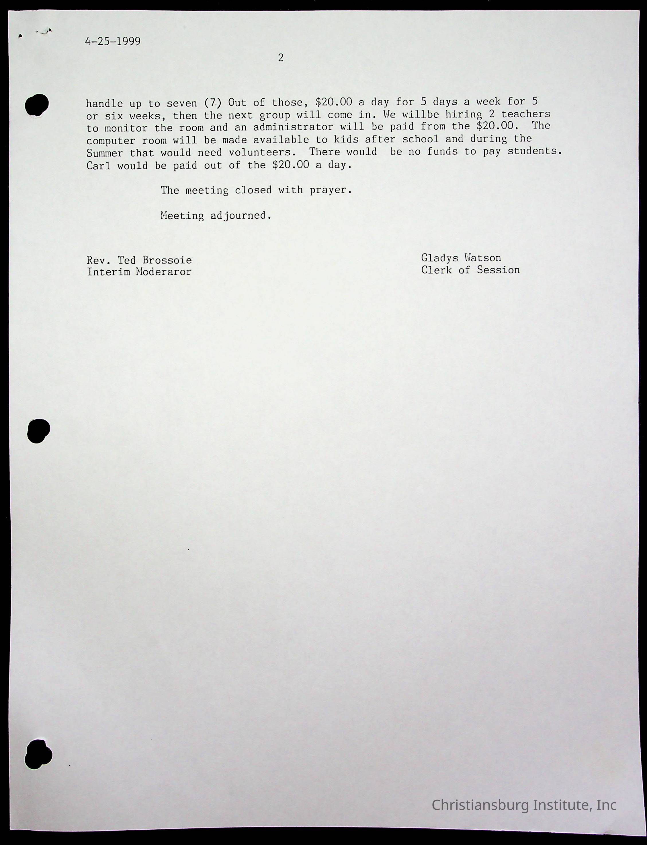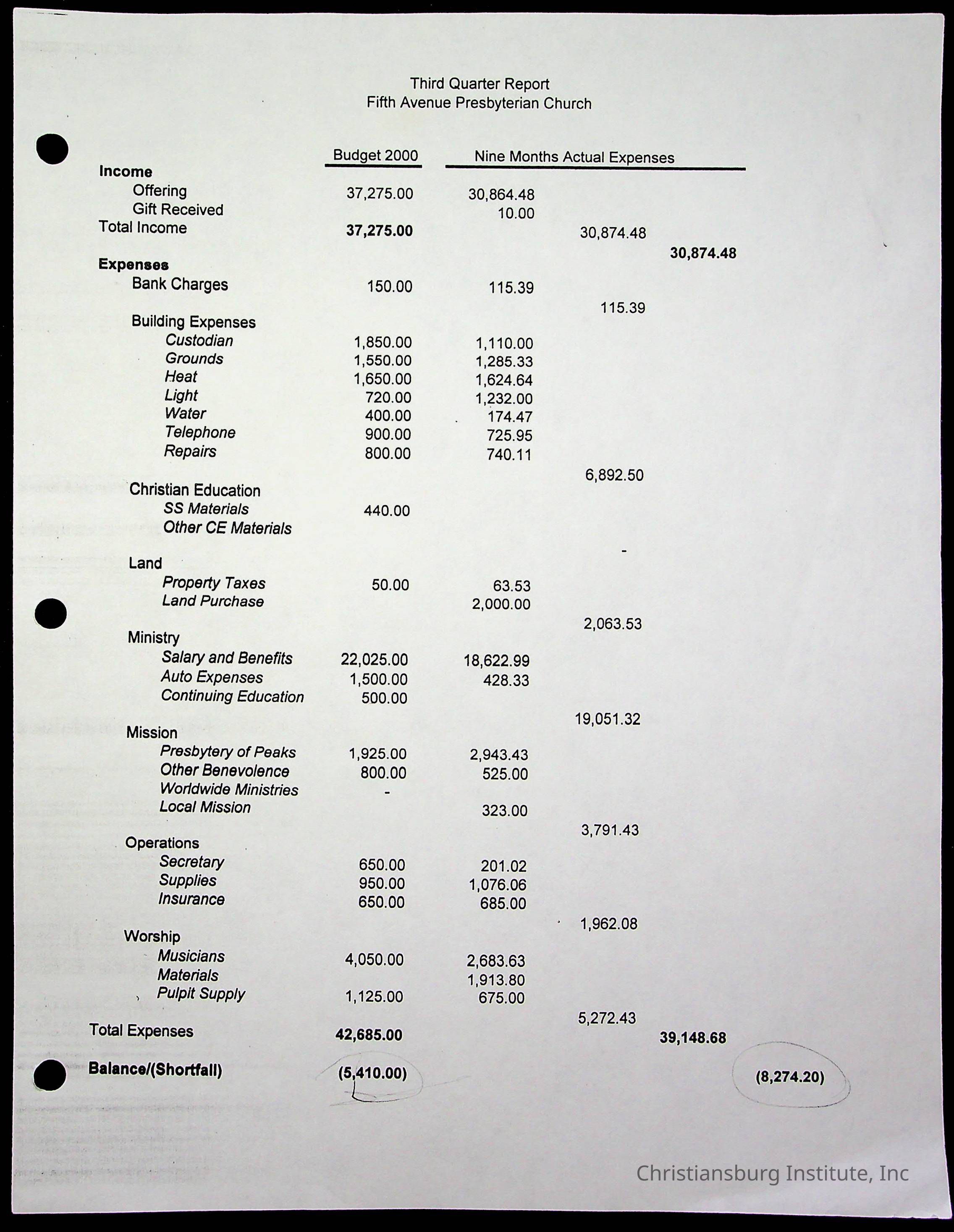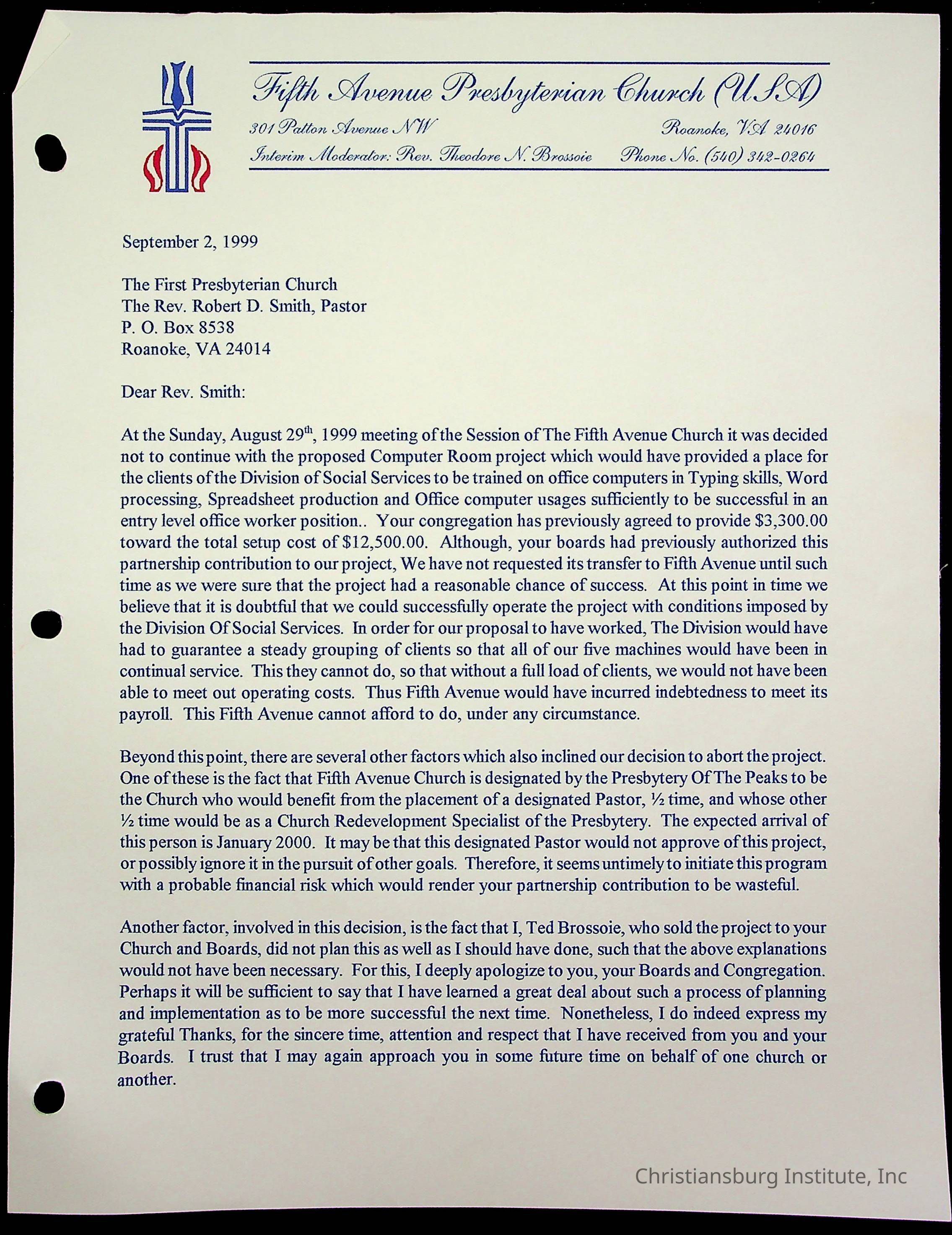 Copyright has been assigned to Christiansburg Institute Museum & Archives by Fifth Avenue Presbyterian Church. For permission to publish materials created by the donor, contact CIMA@christiansburginstitute.com. Materials not created by Fifth Avenue Presbyterian Church may still be under copyright.