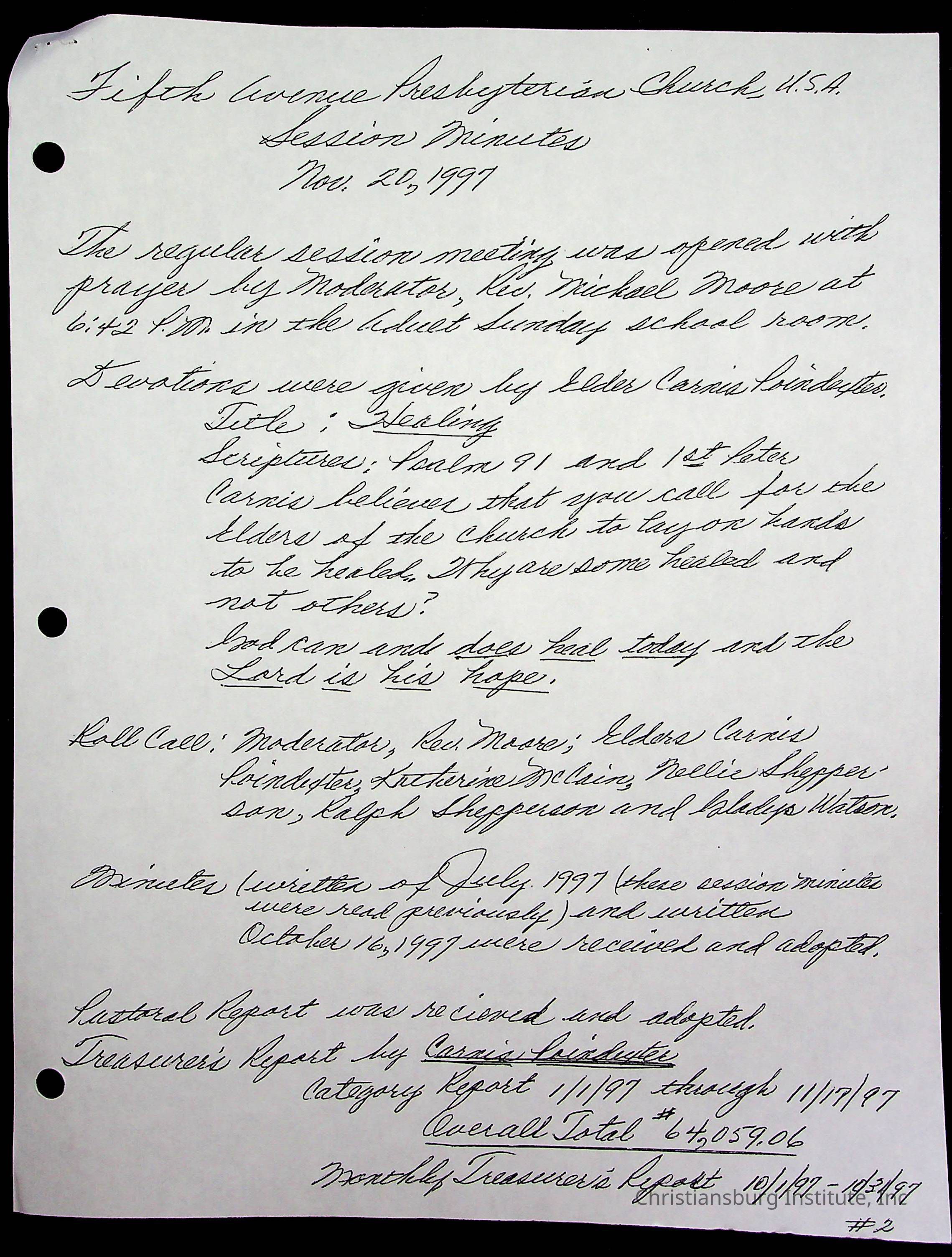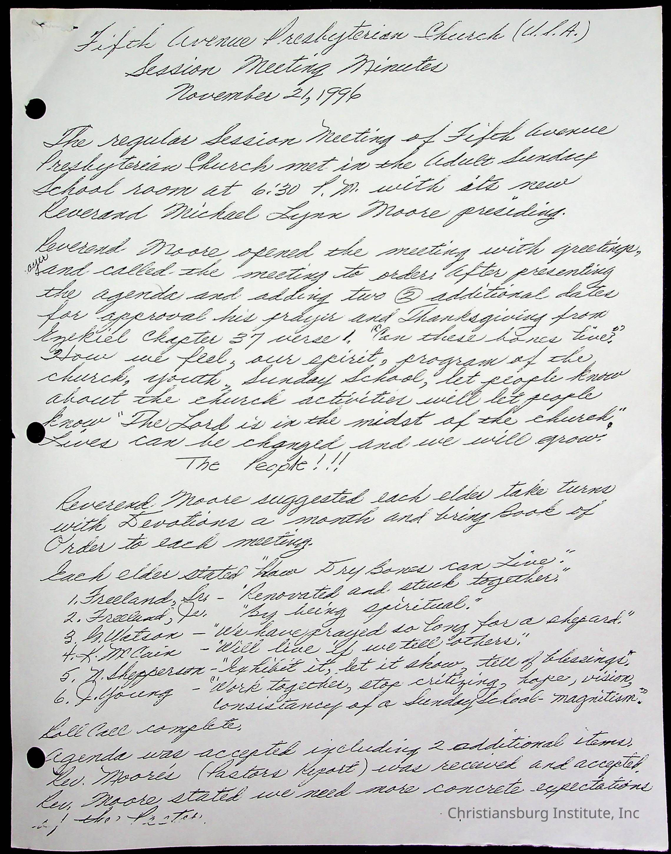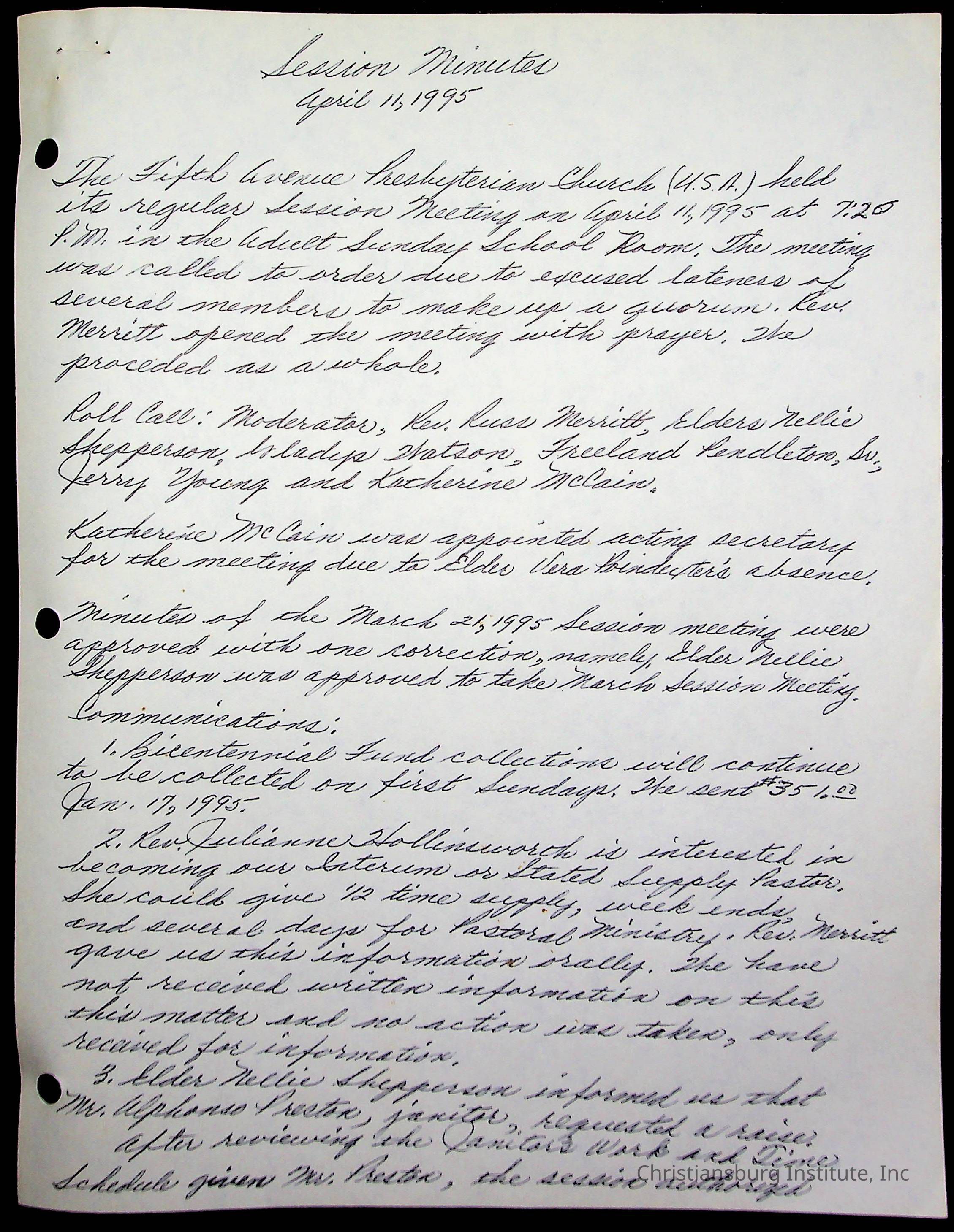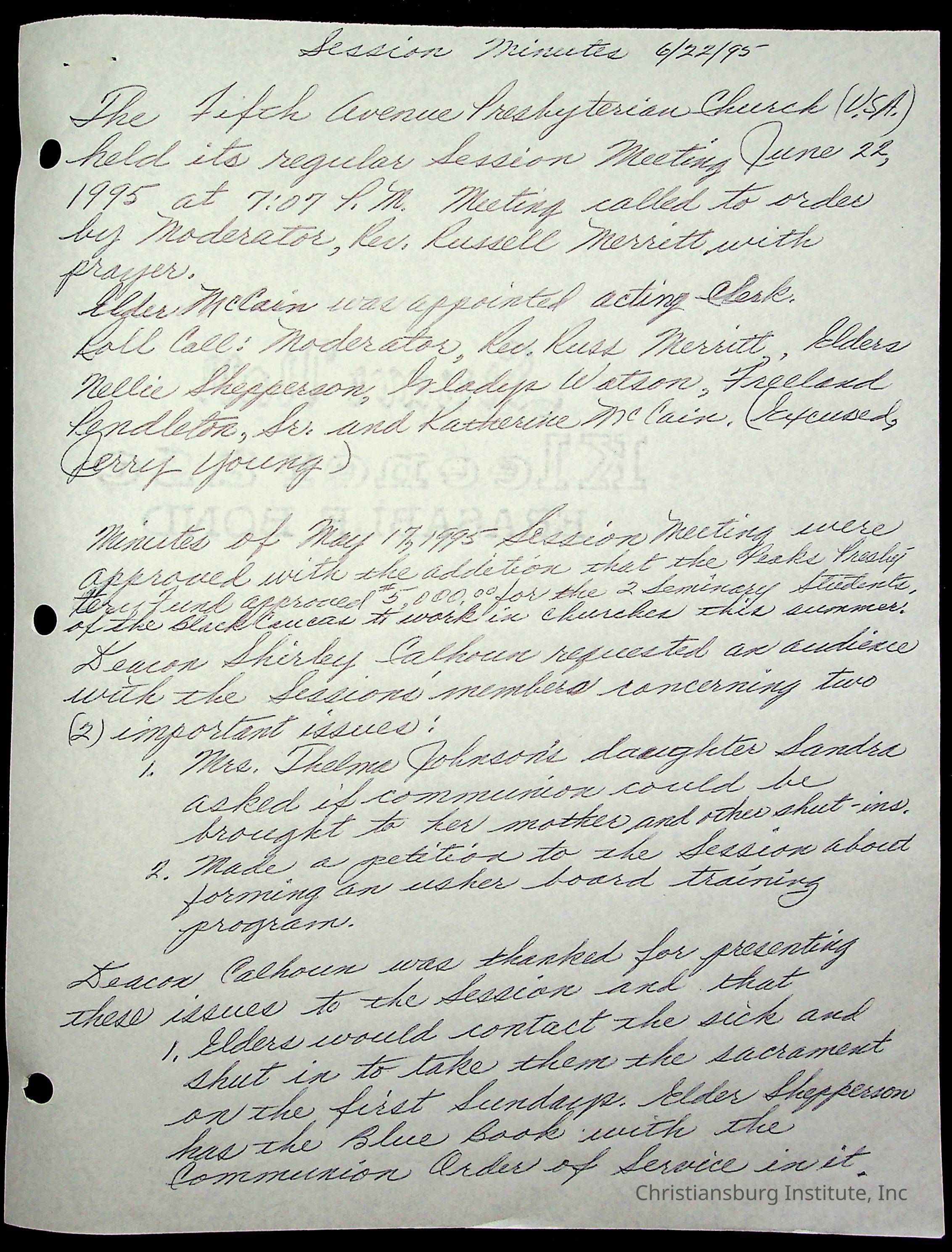 The session minutes for the Fifth Avenue Presbyterian Church from the years 1995-2002.Collection
