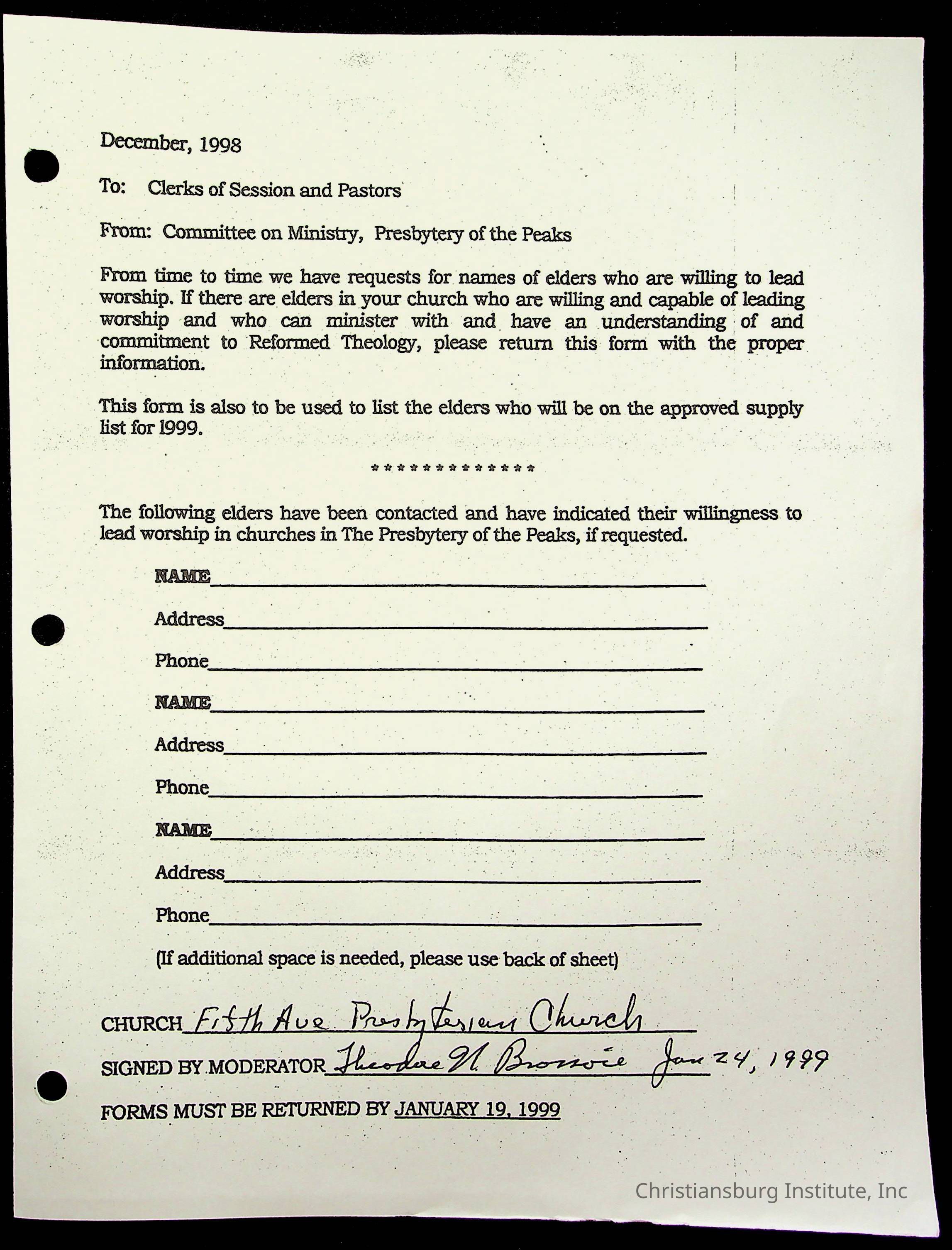 Fifth Avenue Presbyterian ChurchArchive Details