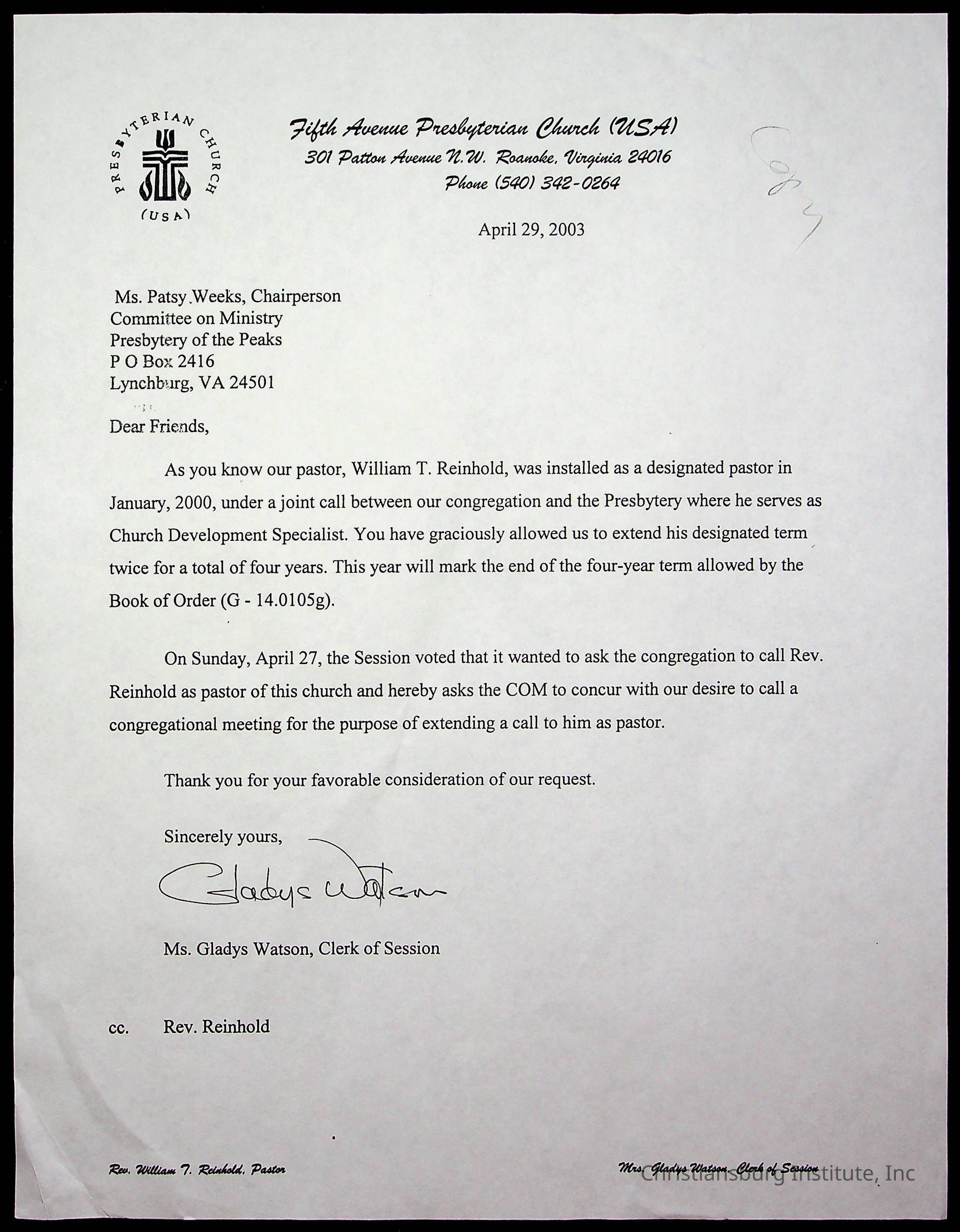 Fifth Avenue Presbyterian ChurchAcquisition