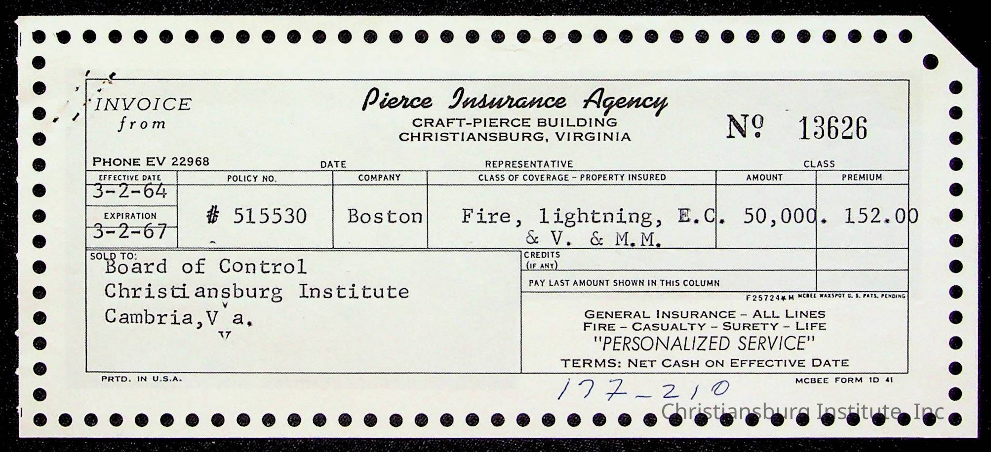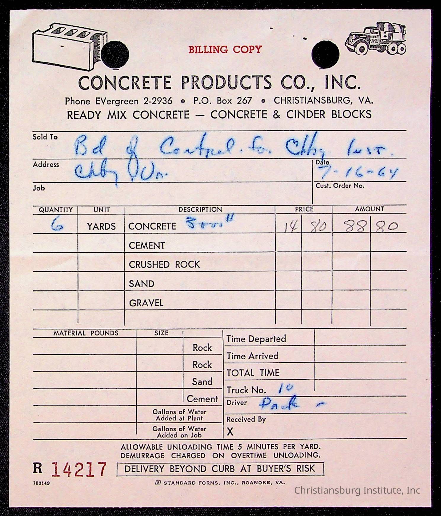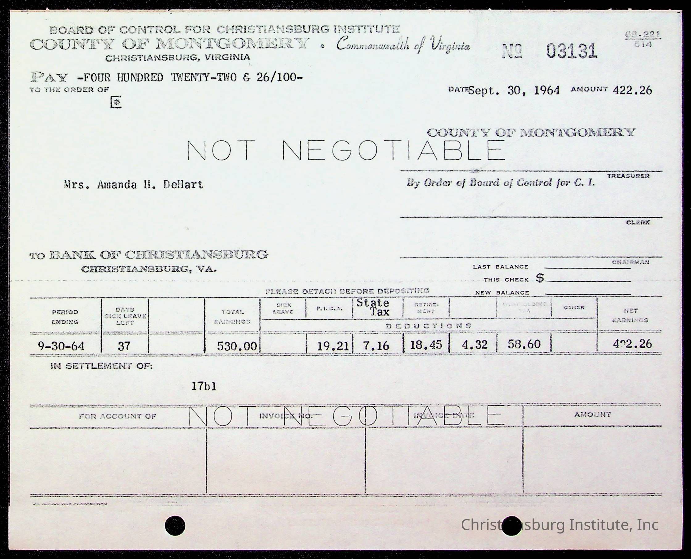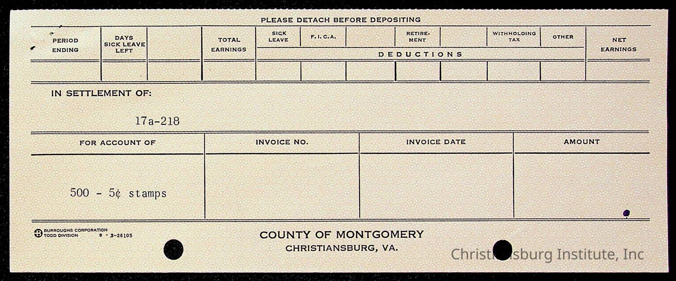An archive of bills and receipts for the Board of Control of Christiansburg Institute and the Montgomery County School Board, circa 1960s.