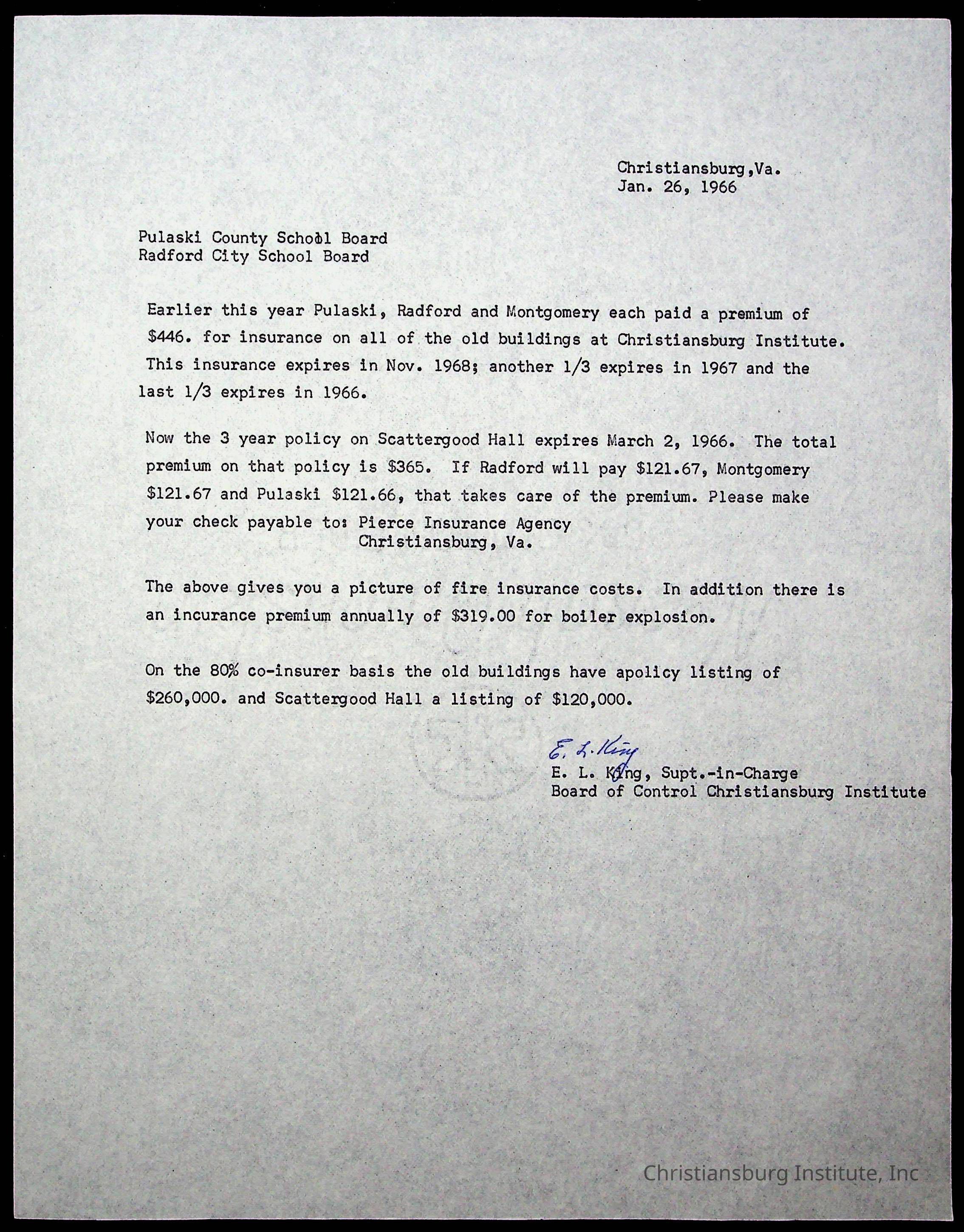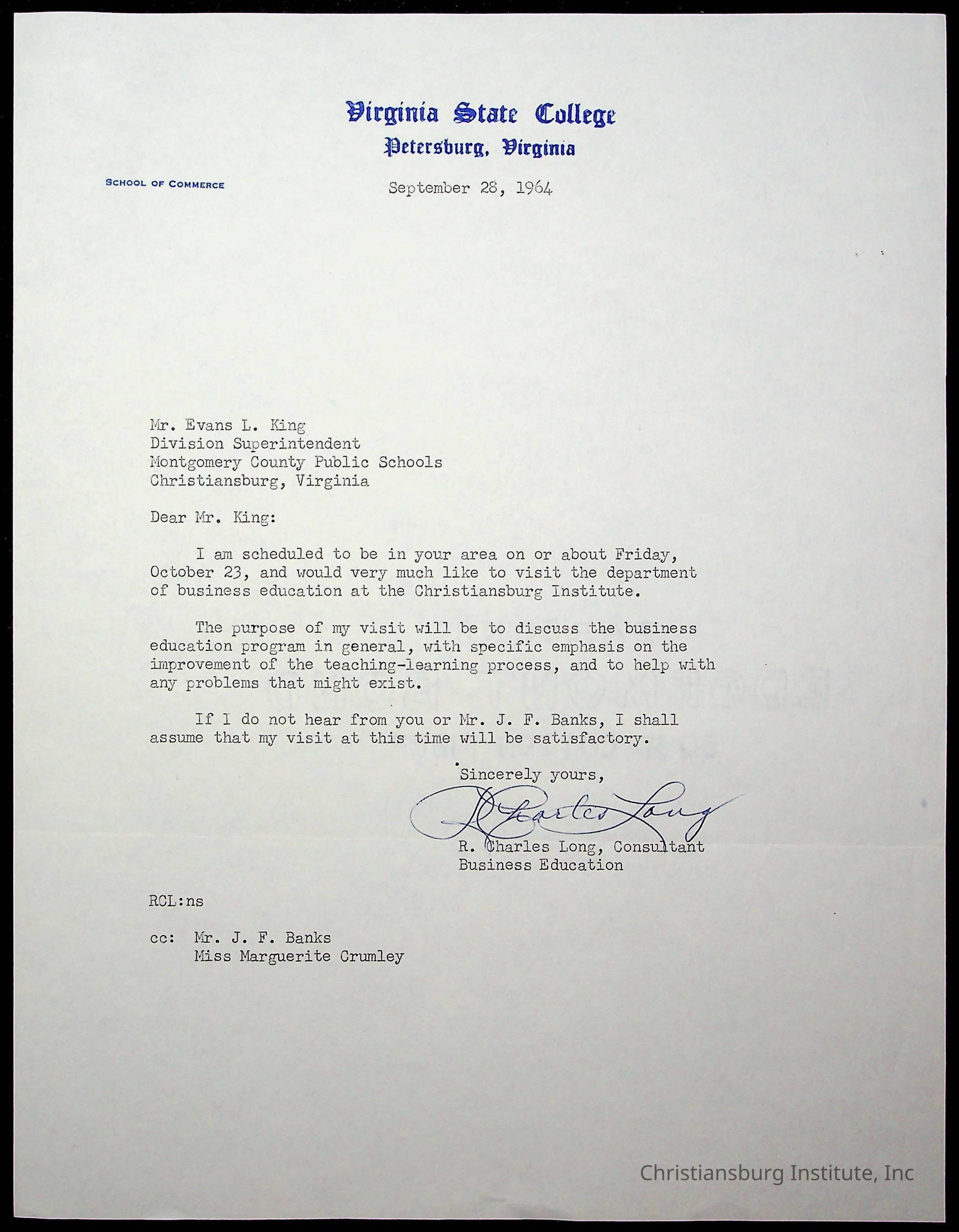 An archive of materials relating to the superintendent of the Board of Control of Christiansburg Institute, Evans l. King, circa 1960s.Collection