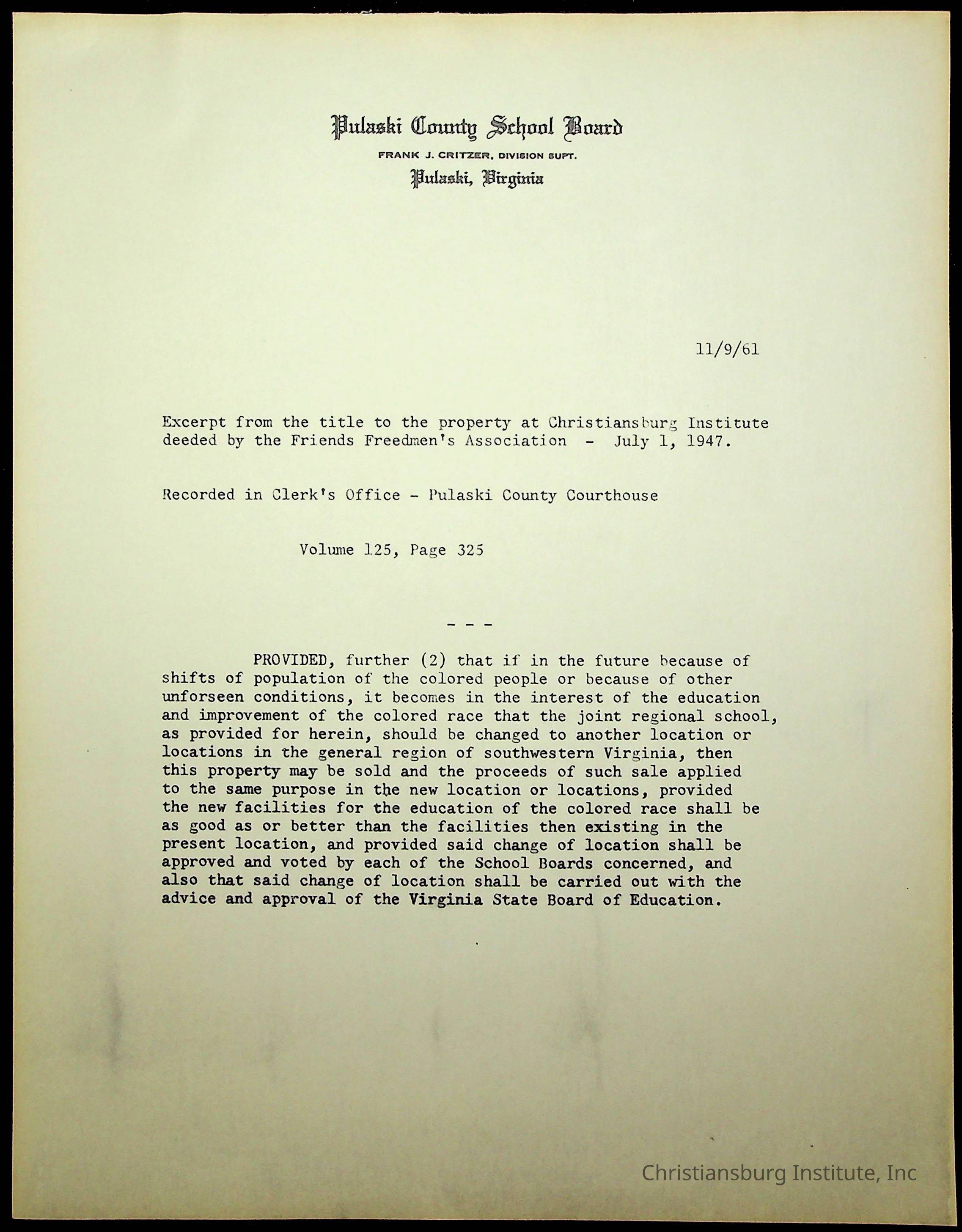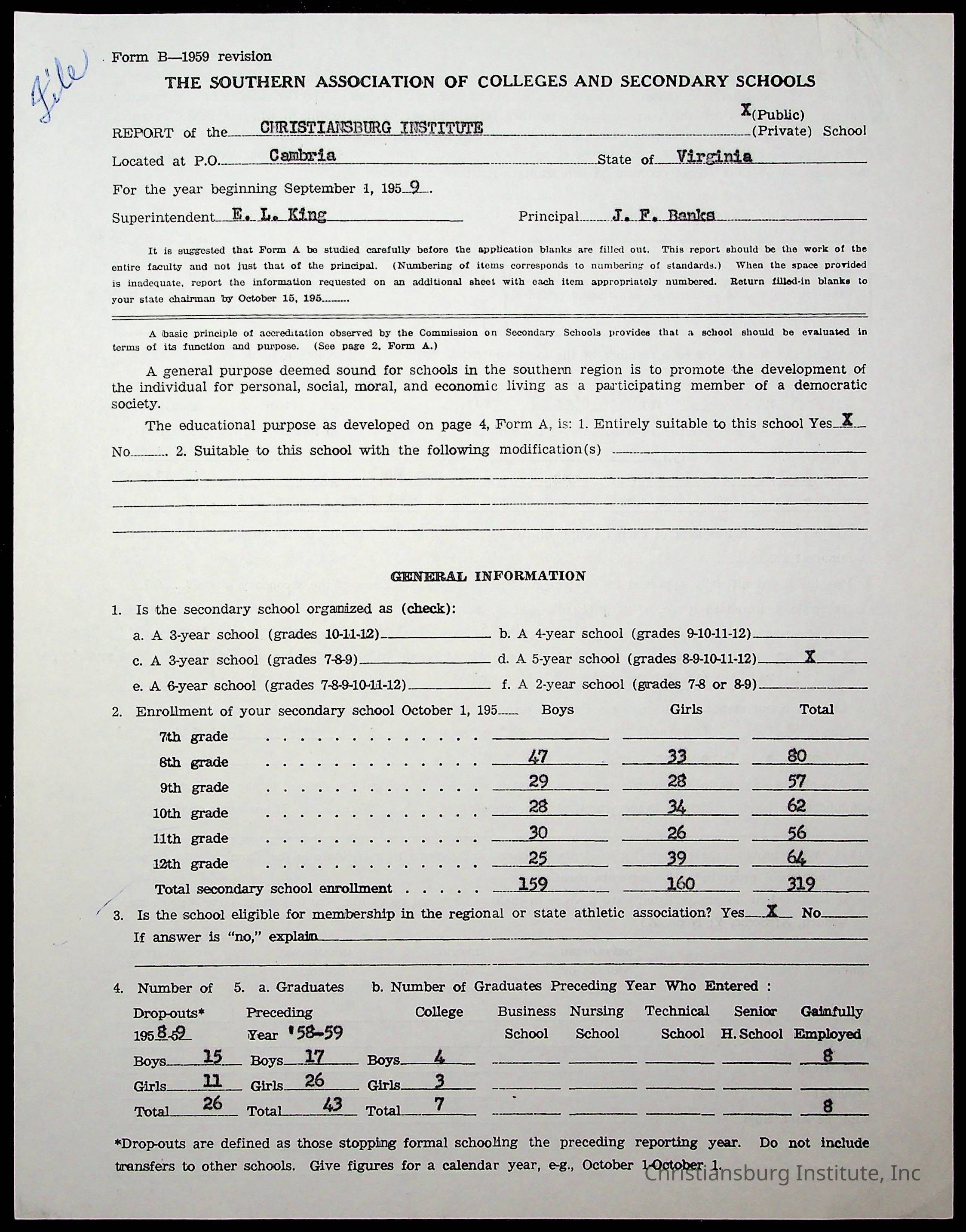 Copyright has been assigned to Christiansburg Institute Museum & Archives by Montgomery County Public Schools. For permission to publish materials created by the donor, contact CIMA@christiansburginstitute.com. Materials not created by Christiansburg Industrial Institute may still be under copyright.