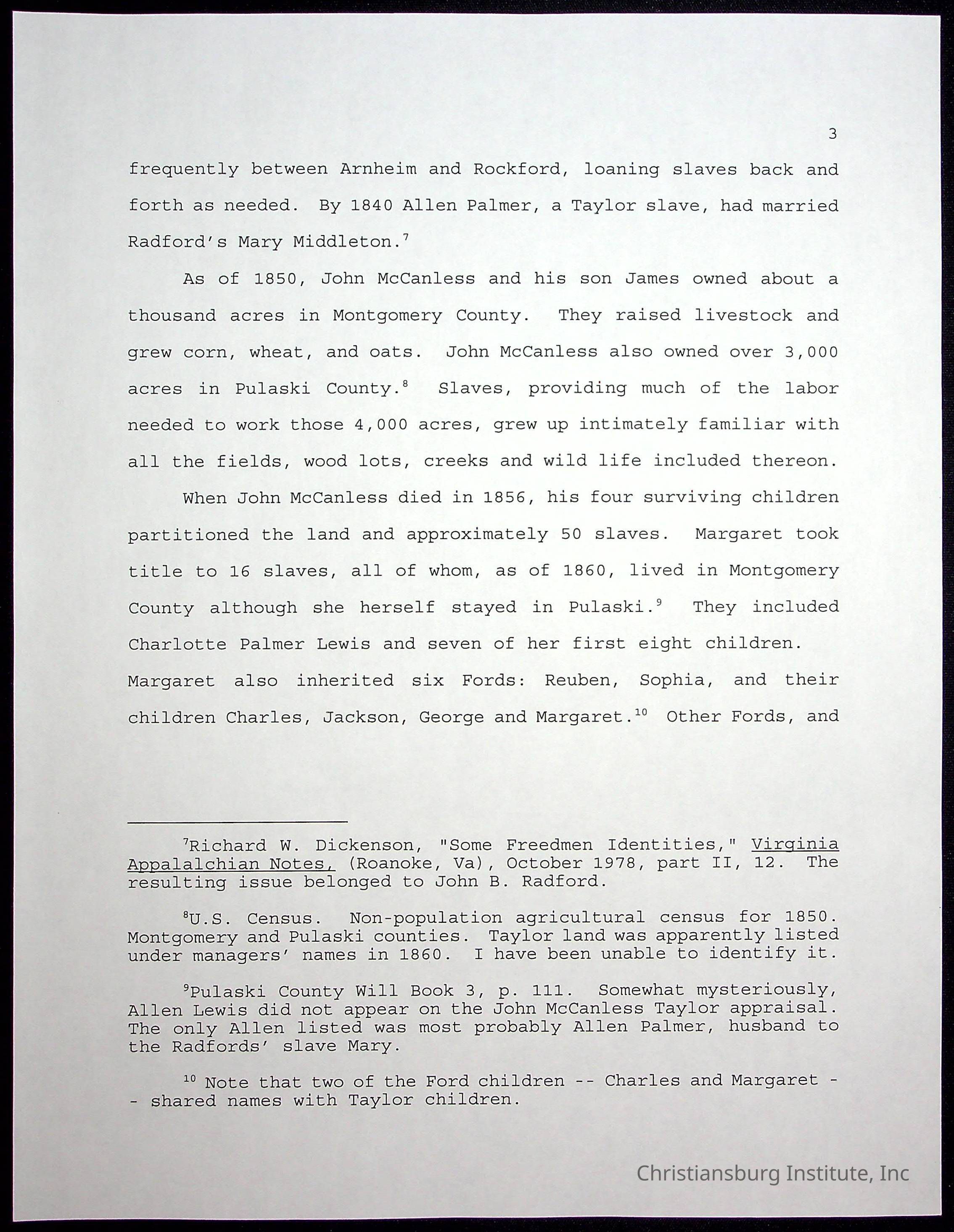 Farm Land, Boom Town, Village: A History of Belspring, Virginia, 1750-1940, The Reports of Charles S. Schaeffer from the Virginia counties of Montgomery and Pulaski, with additional information on the counties of Floyd, Giles, Craig, Wythe, and Roanoke., Ingles Ferry Ledgers (1840s-1880s), These people lived in a pleasant valley, Making their mark: Black Families of New River Depot, 1870-1940., Whartons’ Town New River Depot, 1870-1940., Radford’s Early Black Residents, 1880-1925