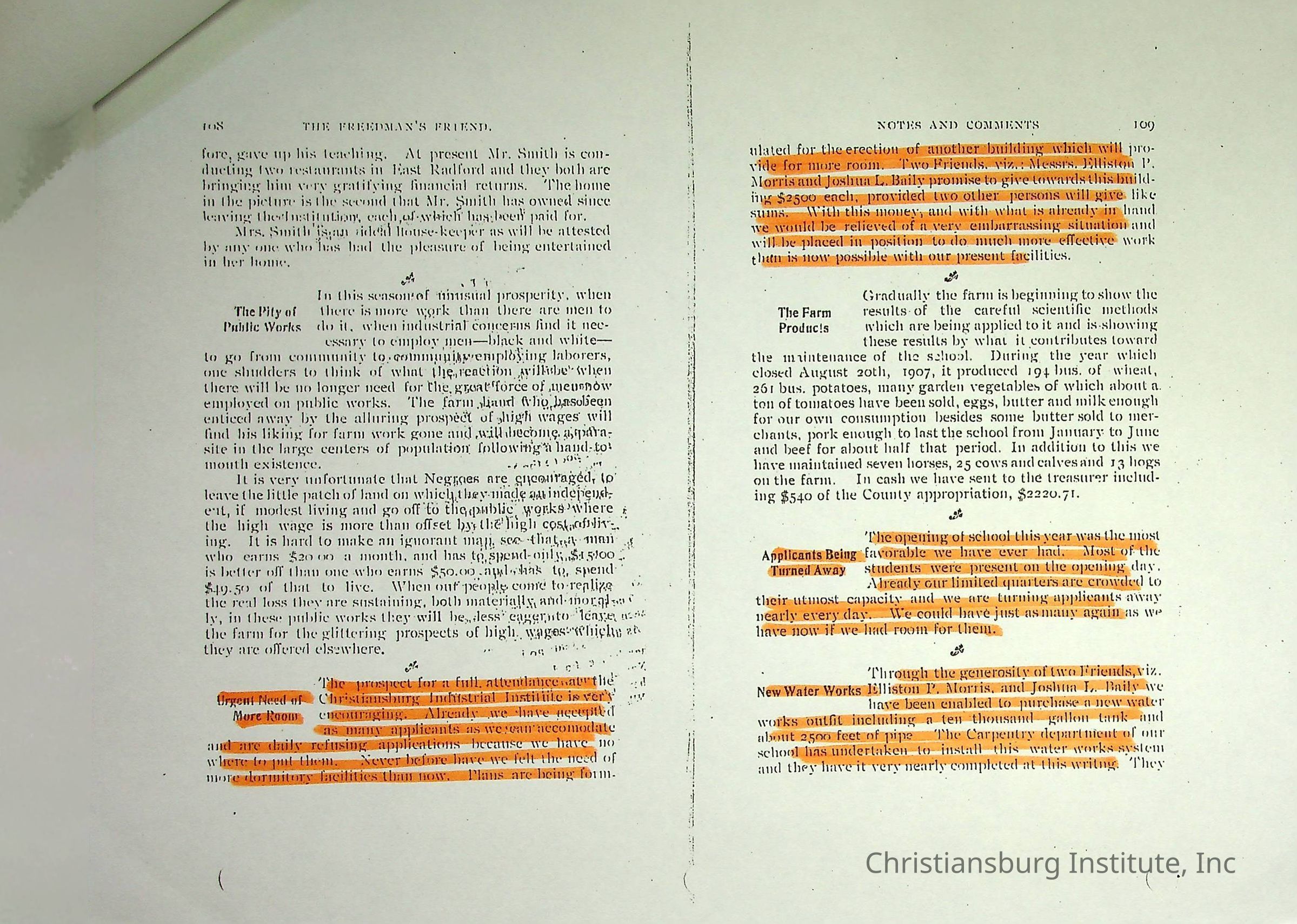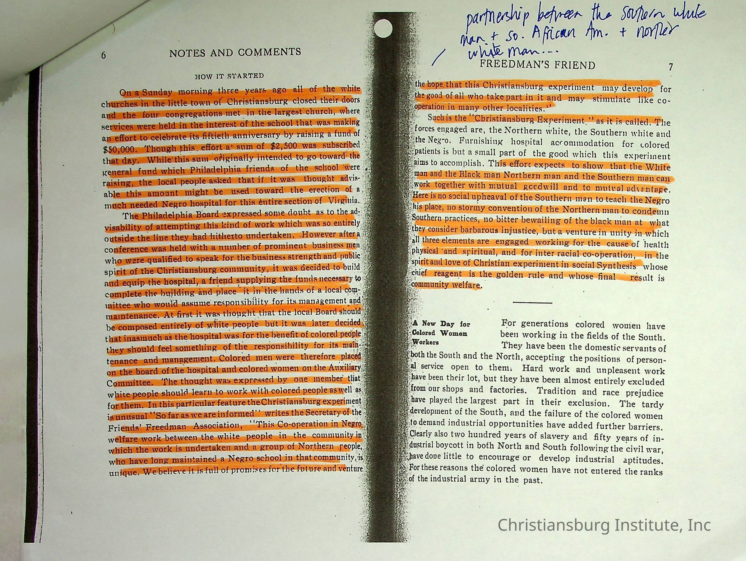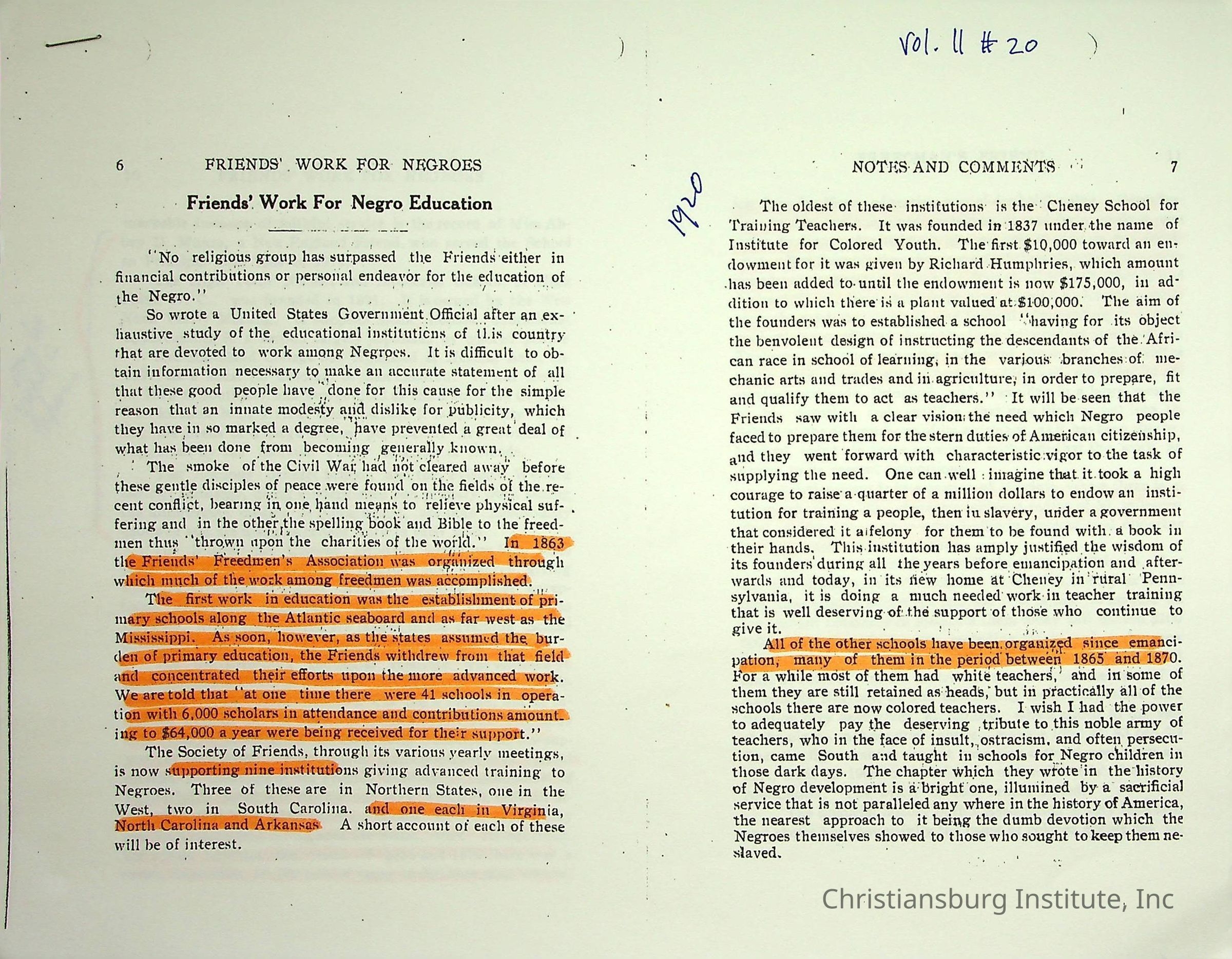 Copyright has been assigned to Christiansburg Institute Museum & Archives. For permission to publish materials created by the donor, contact CIMA@christiansburginstitute.com. Materials not created by Christiansburg Institute Museum and Archives may still be under copyright.