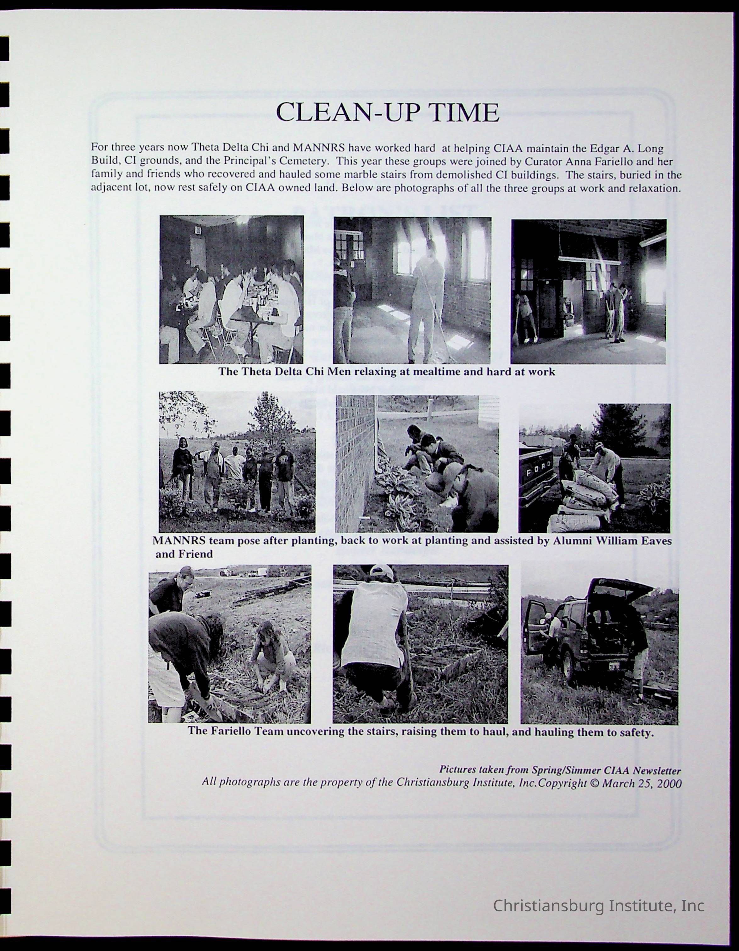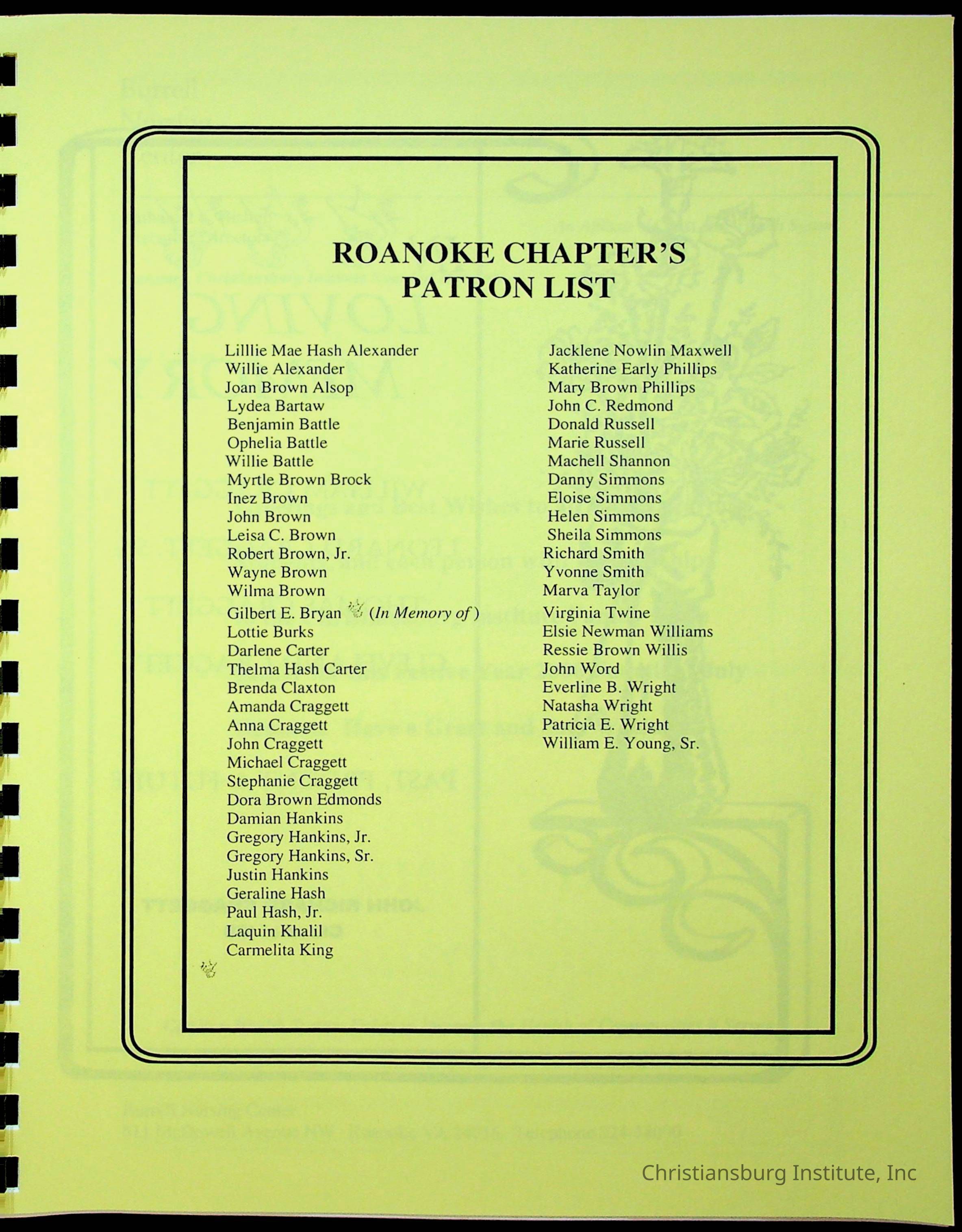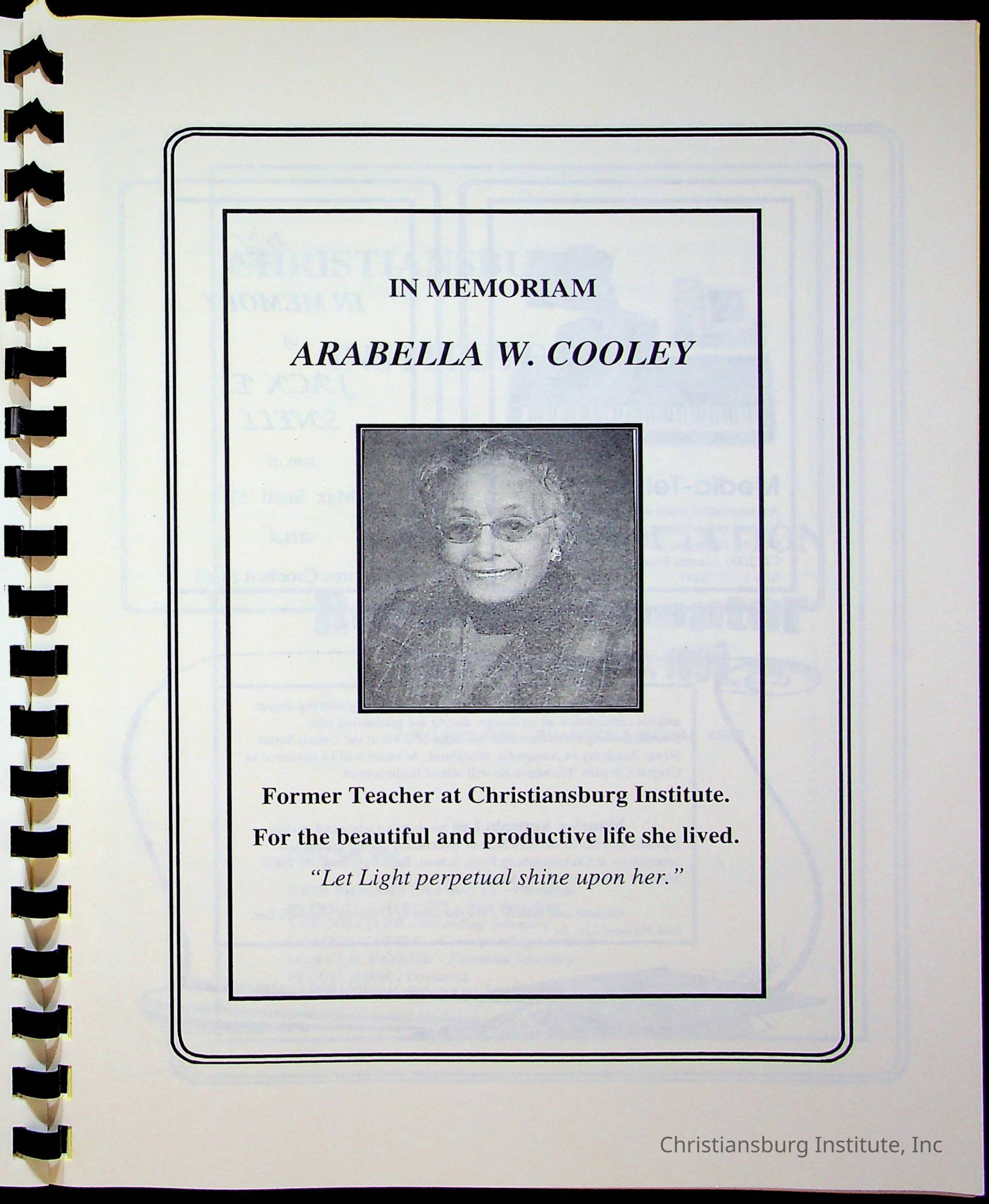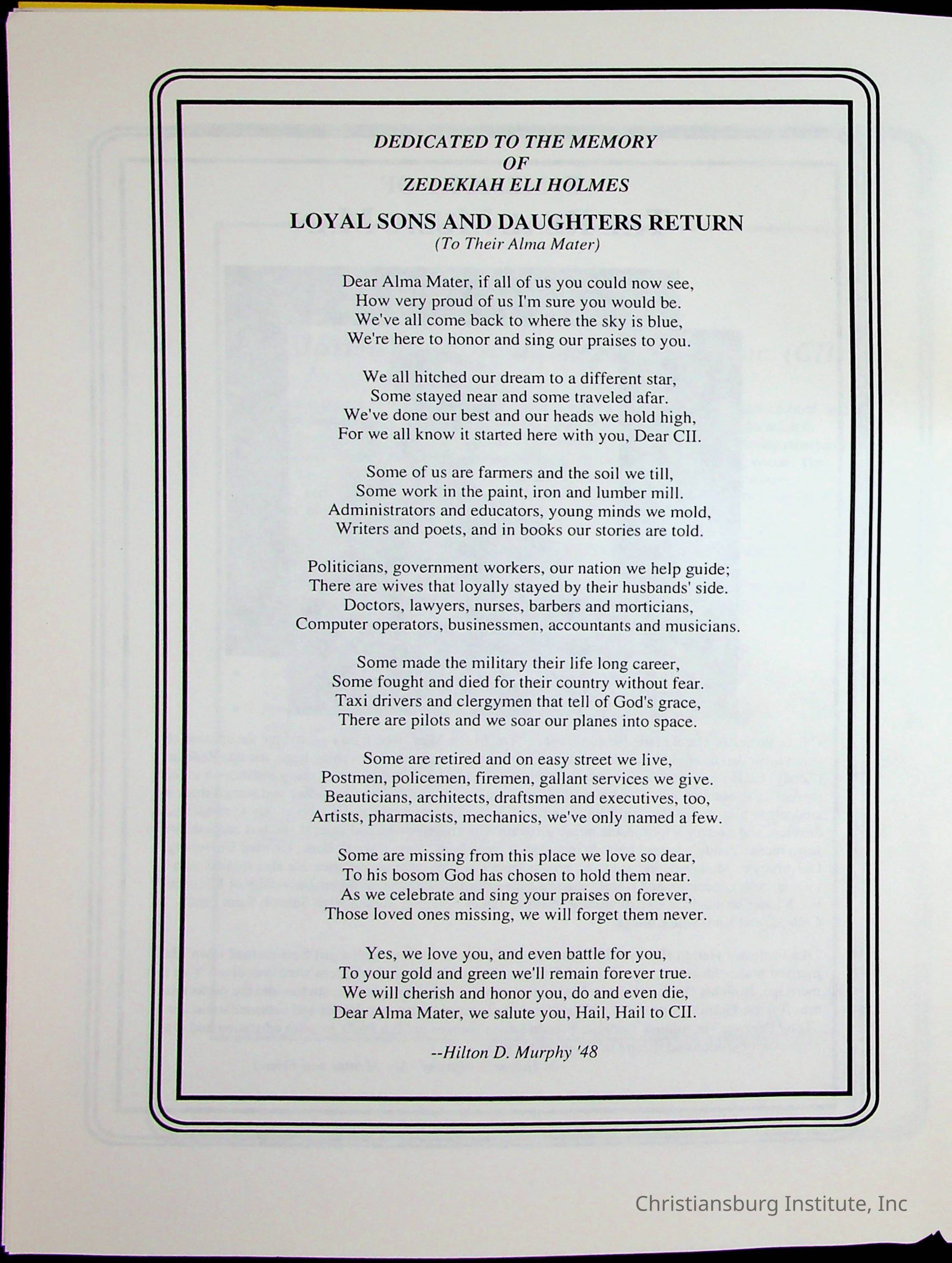 The official program and souvenir book for the Christiansburg Institute Alumni Association reunion that took place on July 1st-2nd 2000 at the Best Western Red Lion Inn in Blacksburg, Virginia.