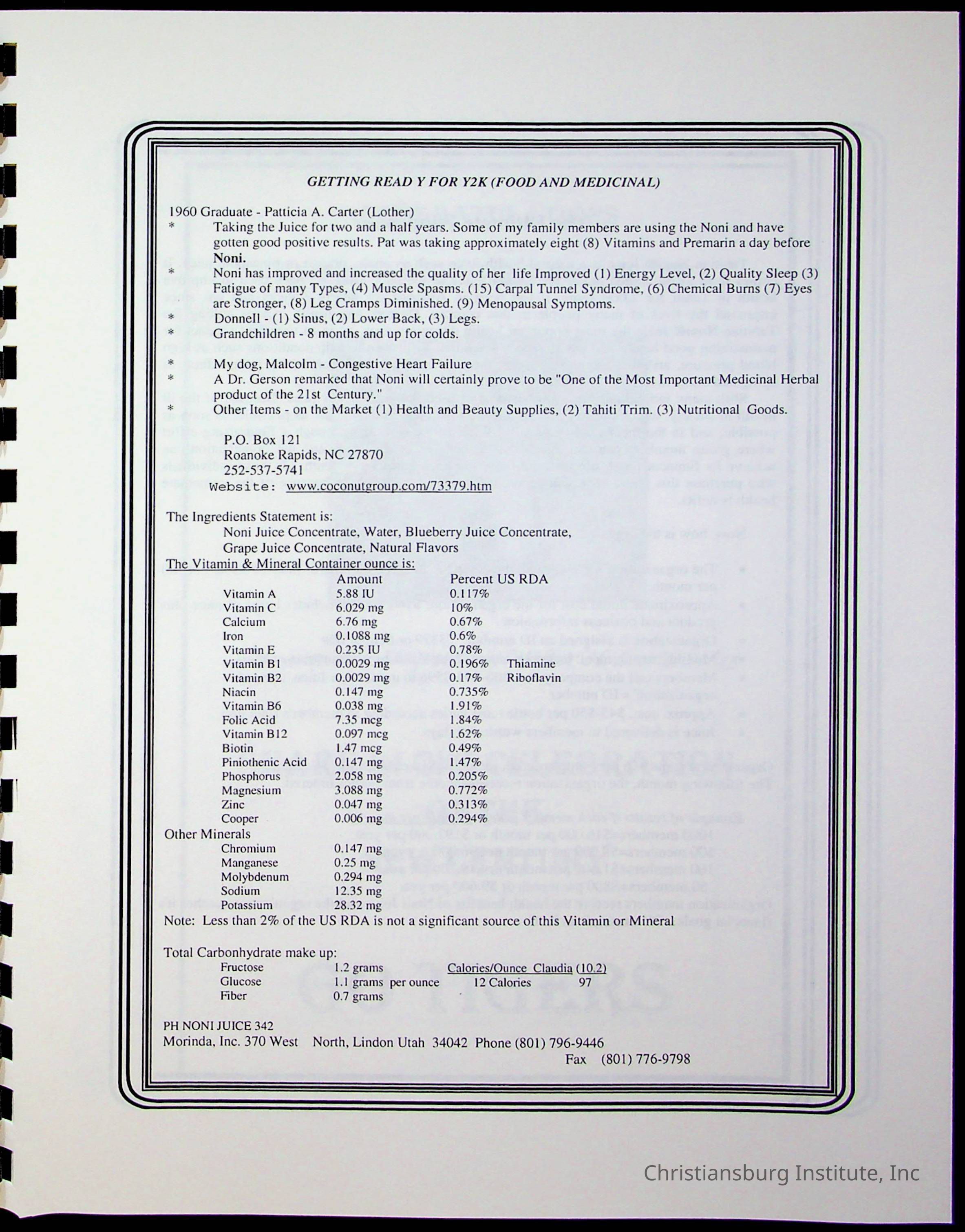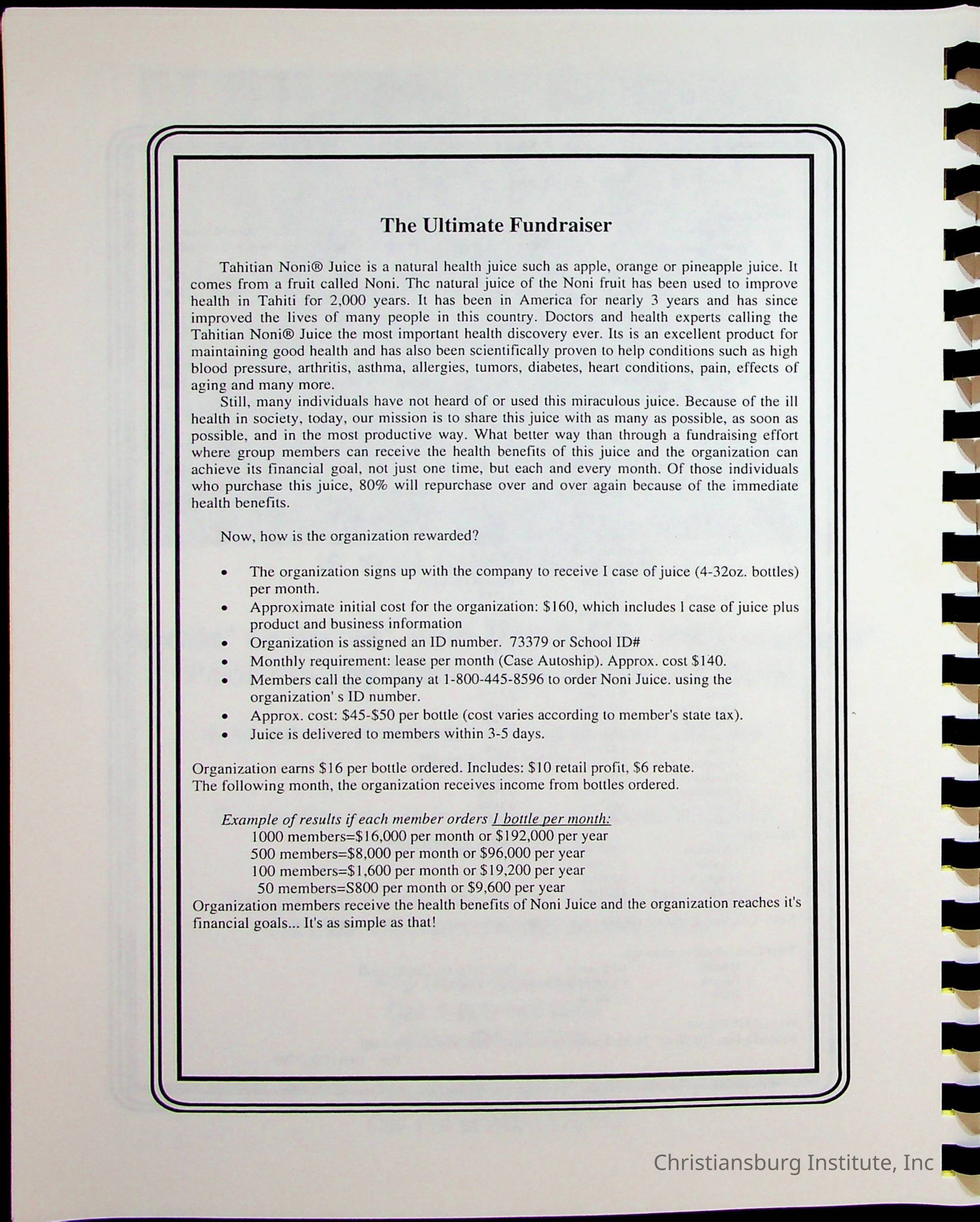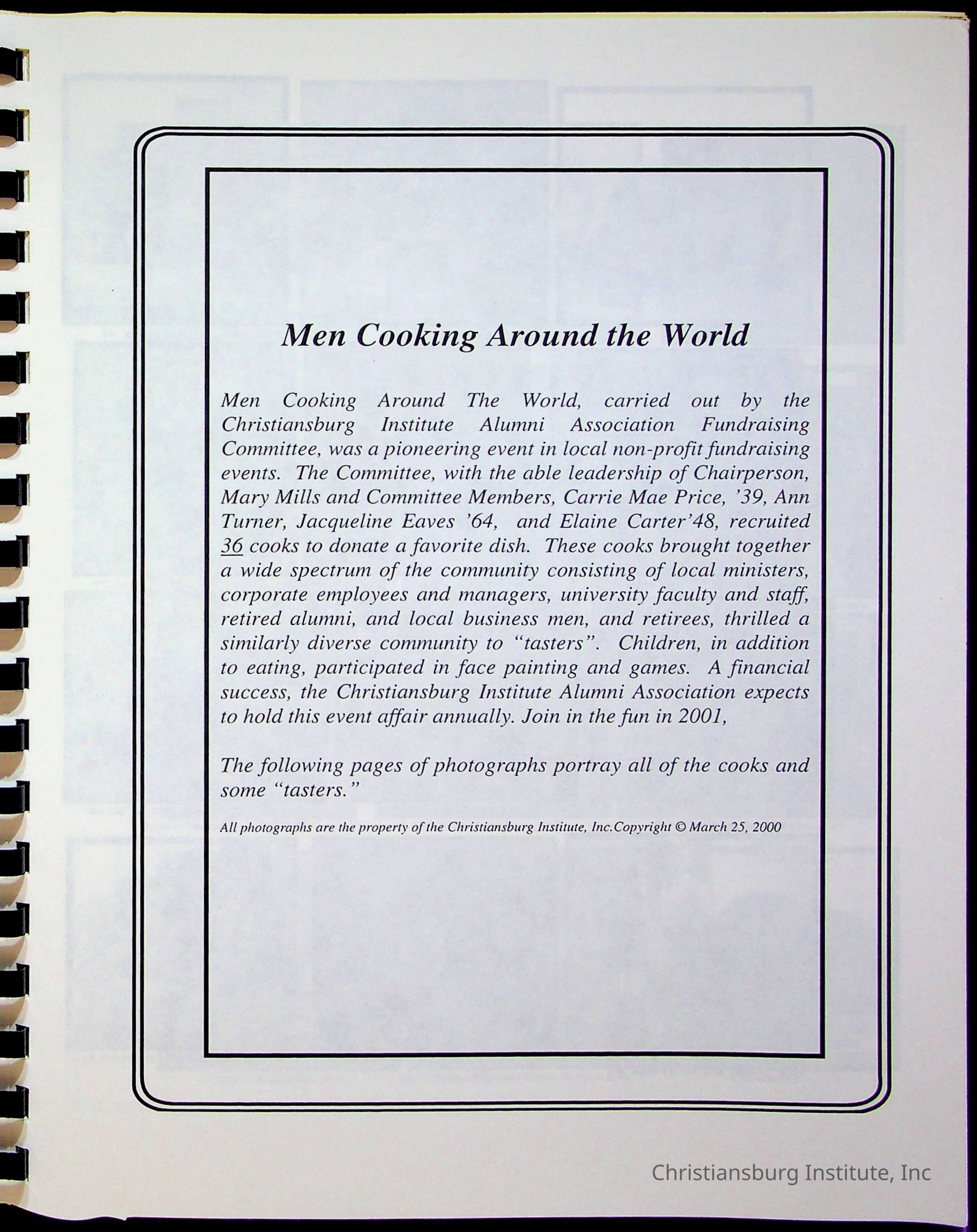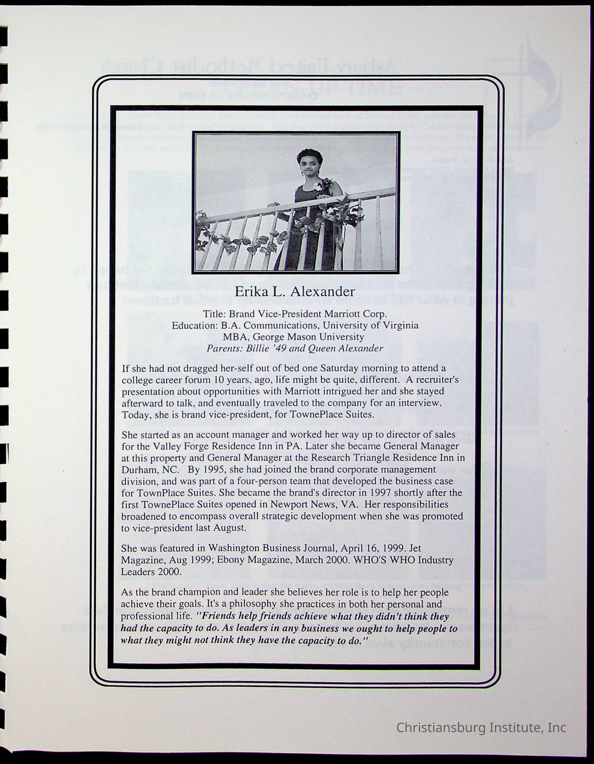 The official program and souvenir book for the Christiansburg Institute Alumni Association reunion that took place on July 1st-2nd 2000 at the Best Western Red Lion Inn in Blacksburg, Virginia.