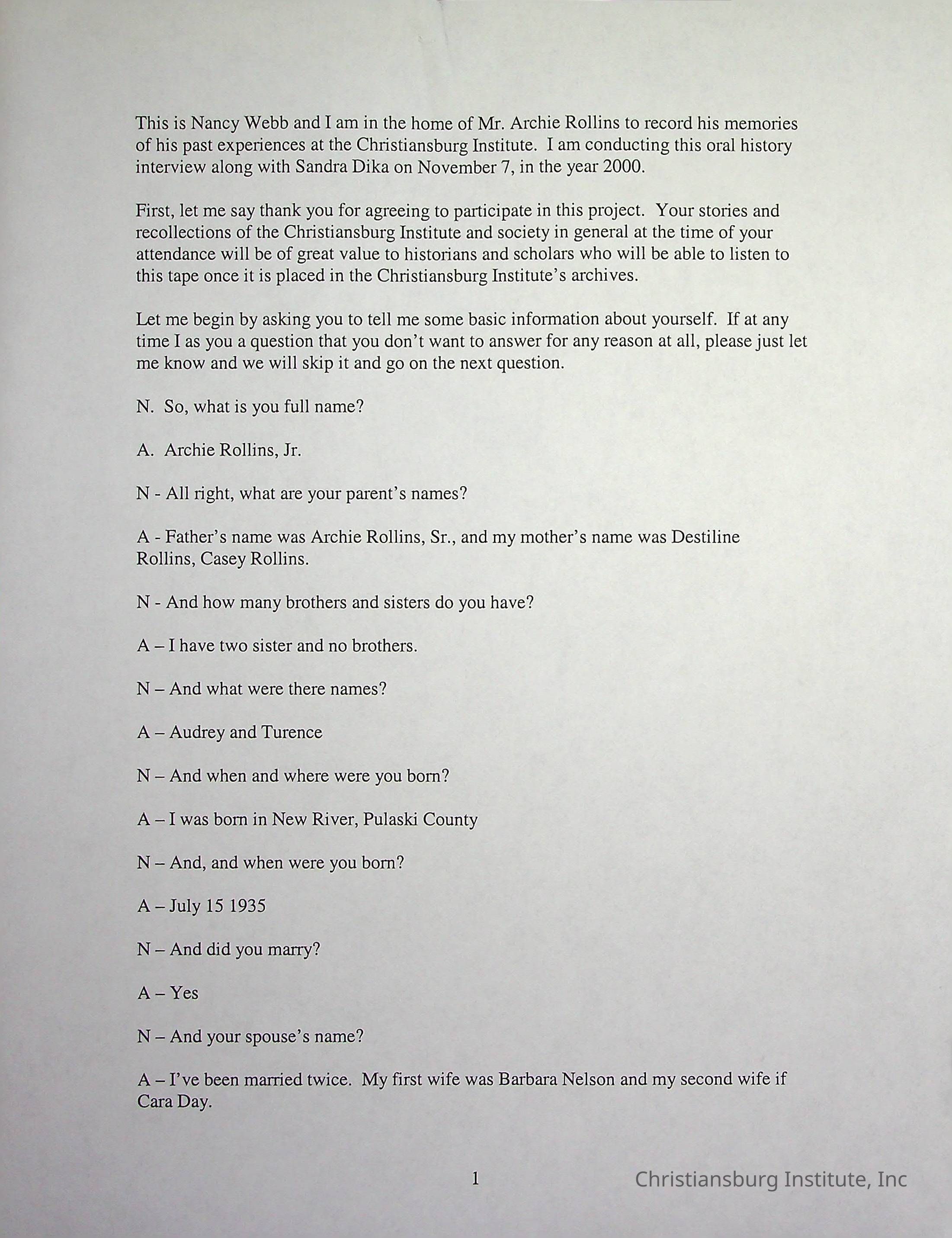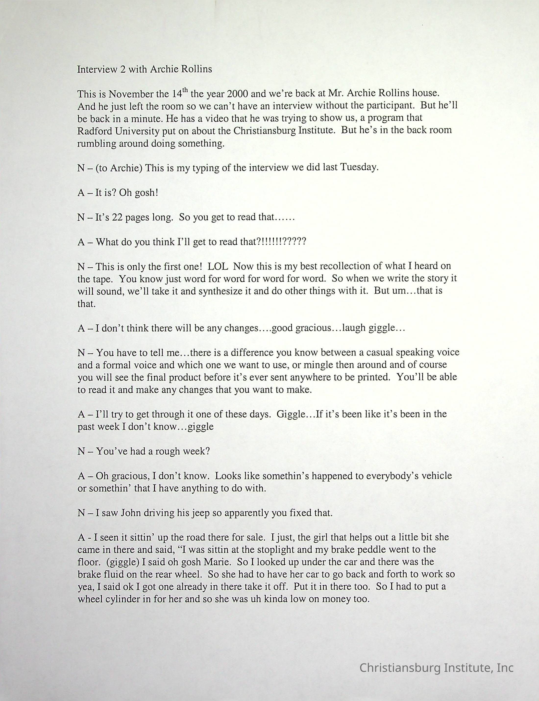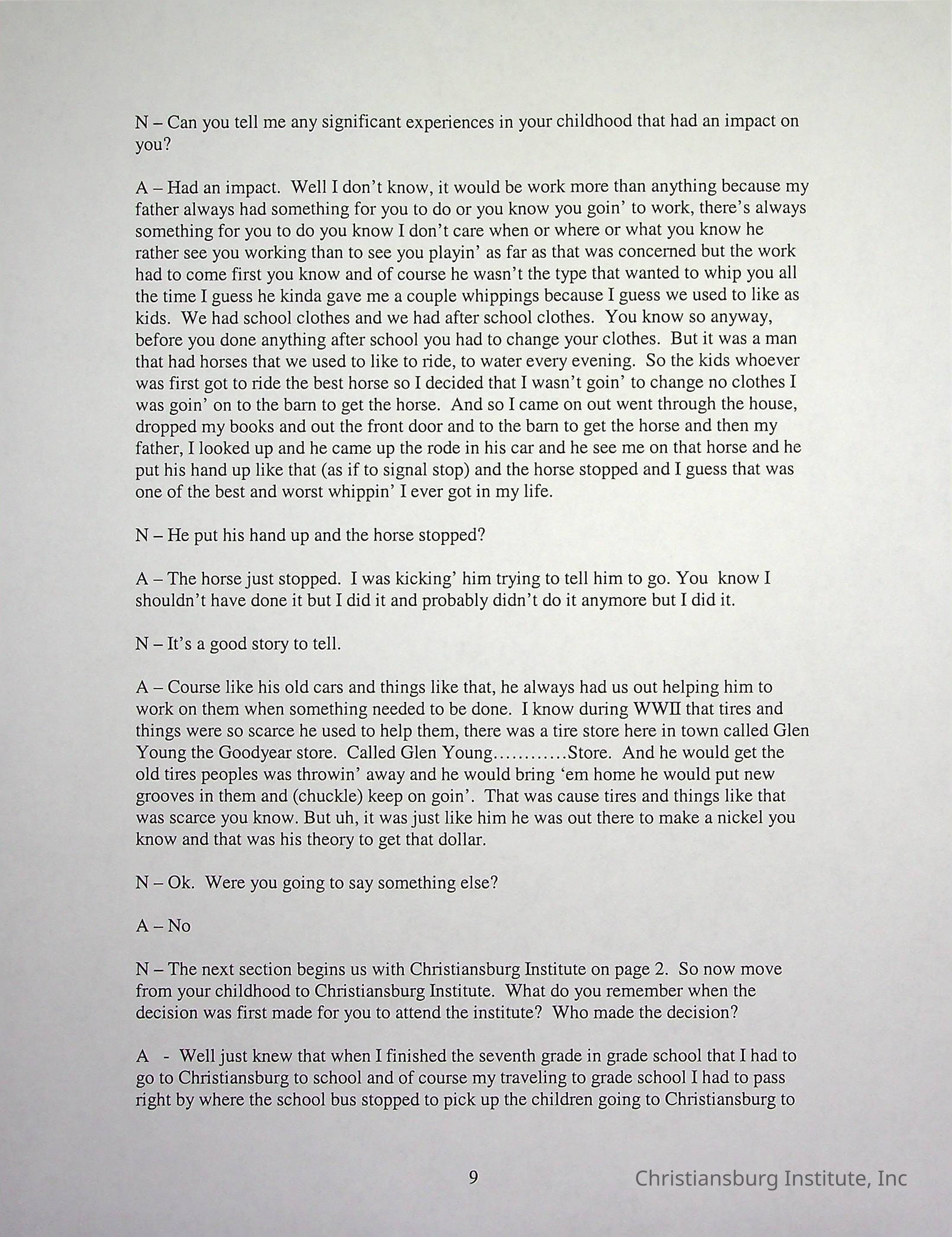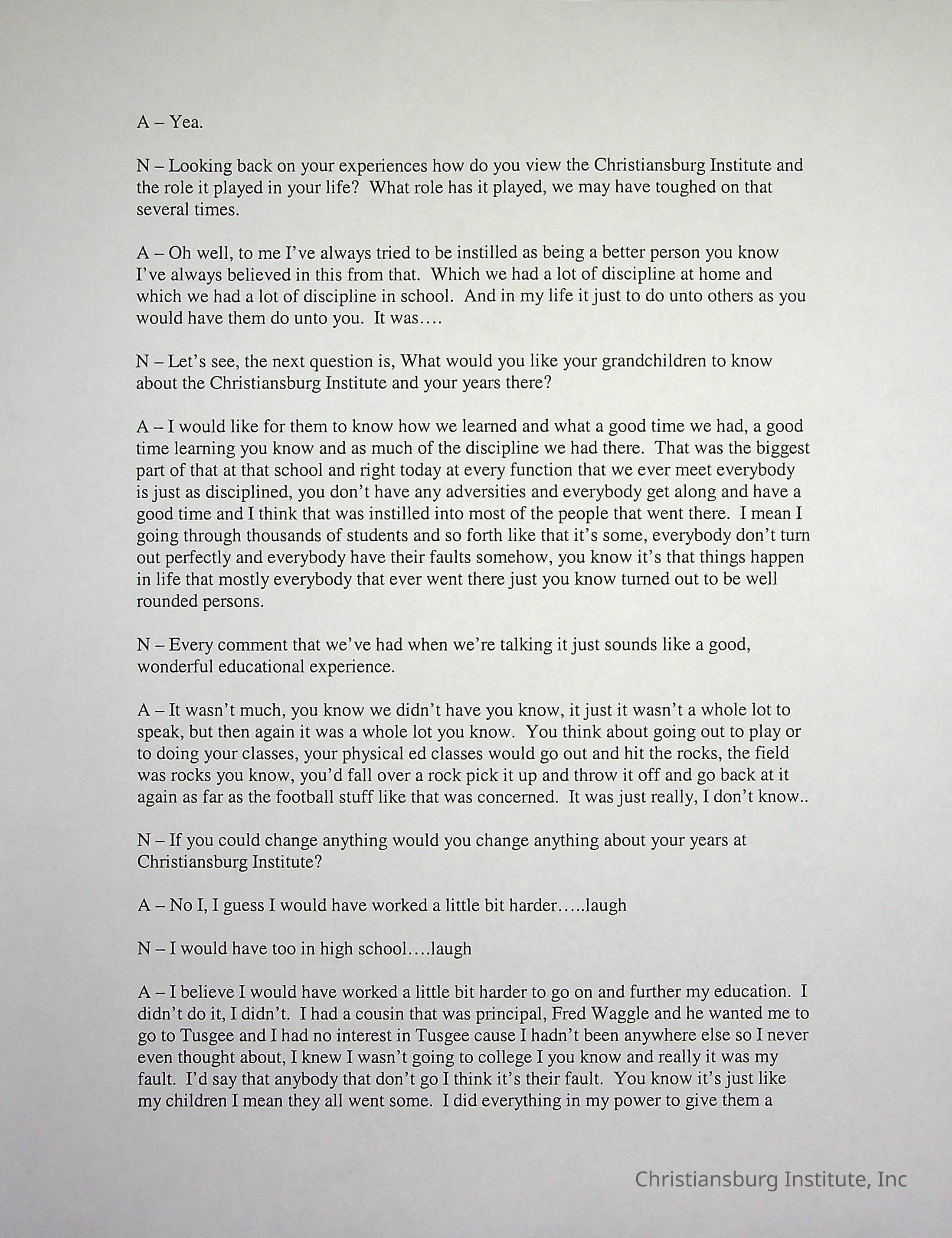 Copyright has been assigned to Christiansburg Institute Museum & Archives. For permission to publish materials created by the donor, contact CIMA@christiansburginstitute.com. Materials not created by Christiansburg Institute Museum and Archives may still be under copyright.