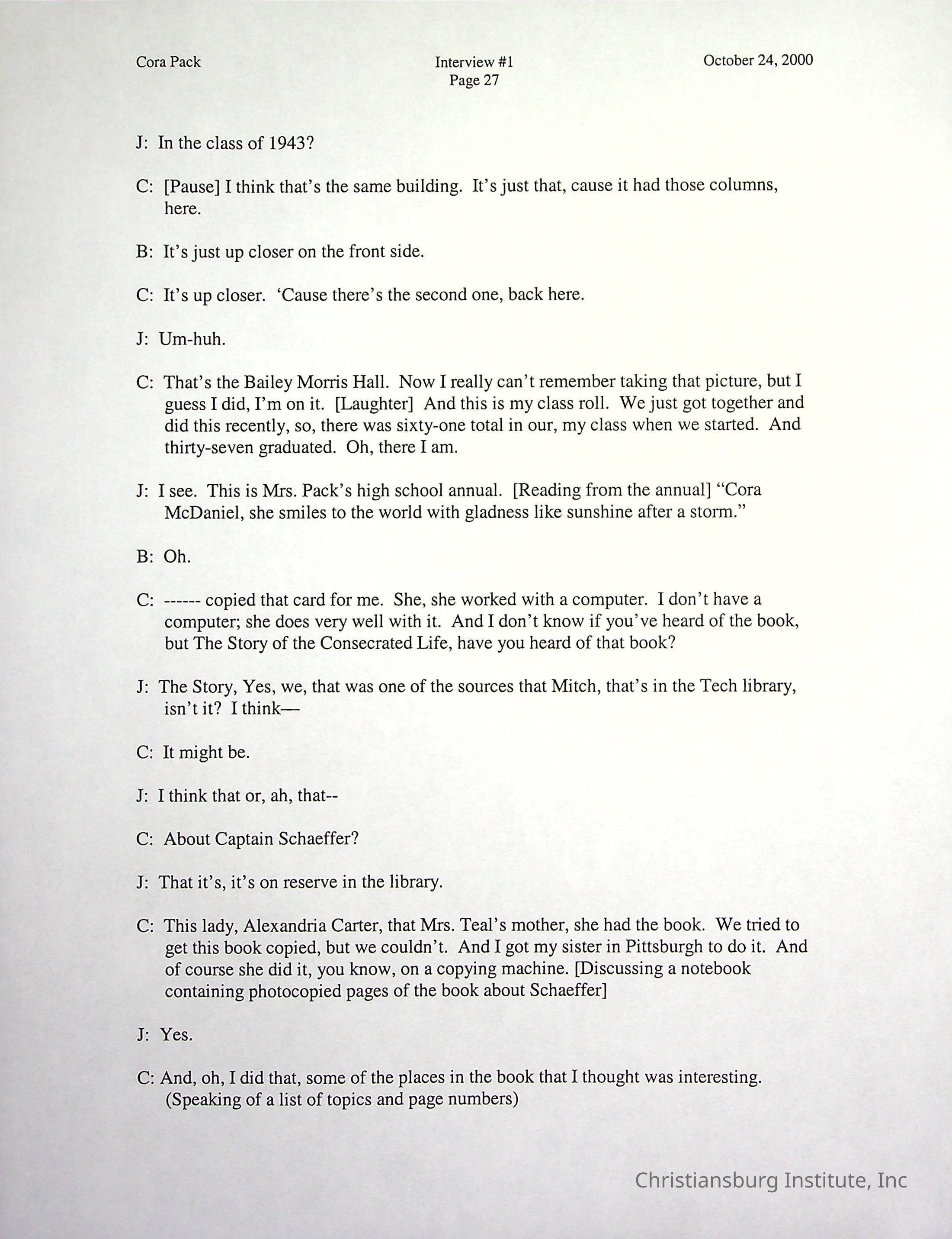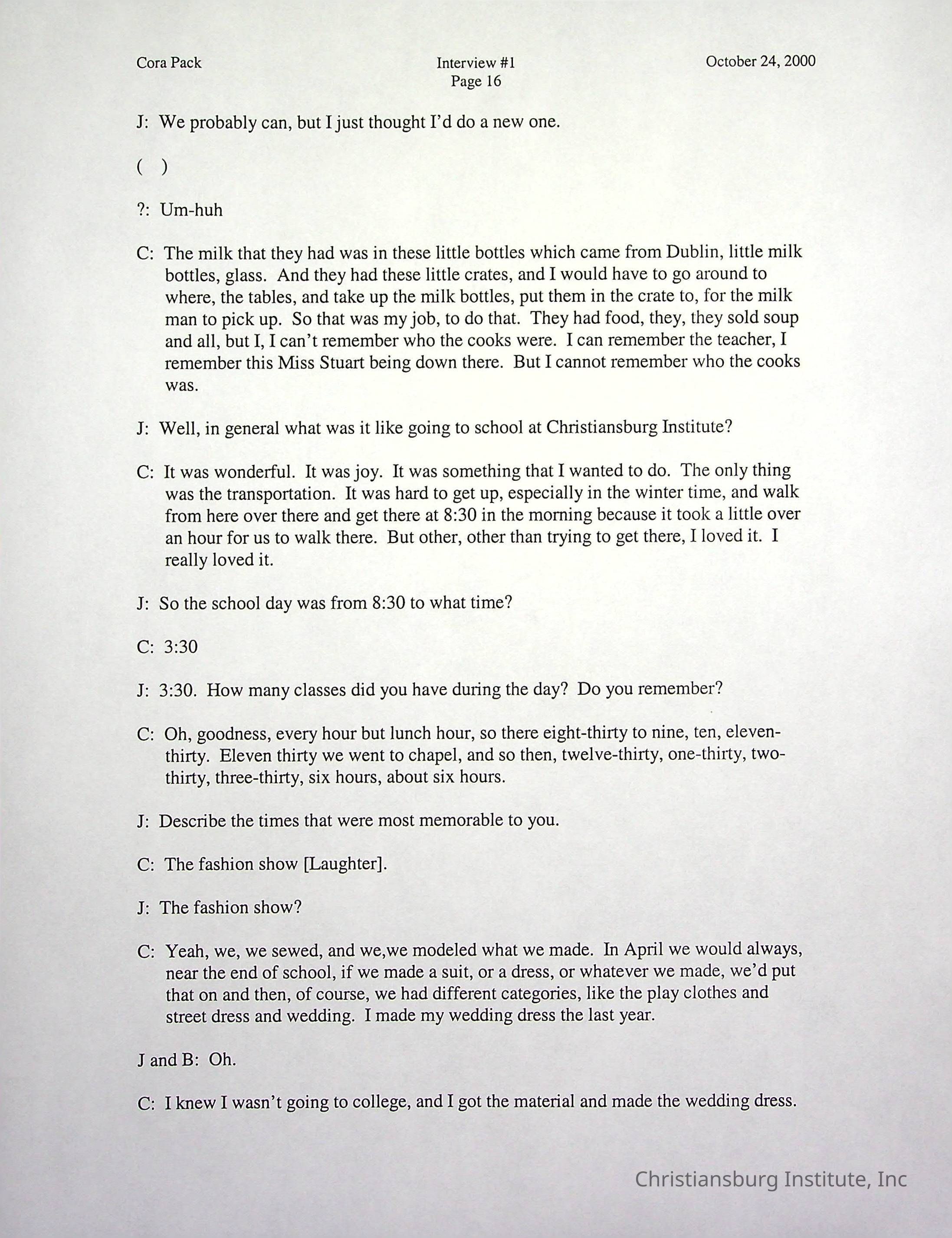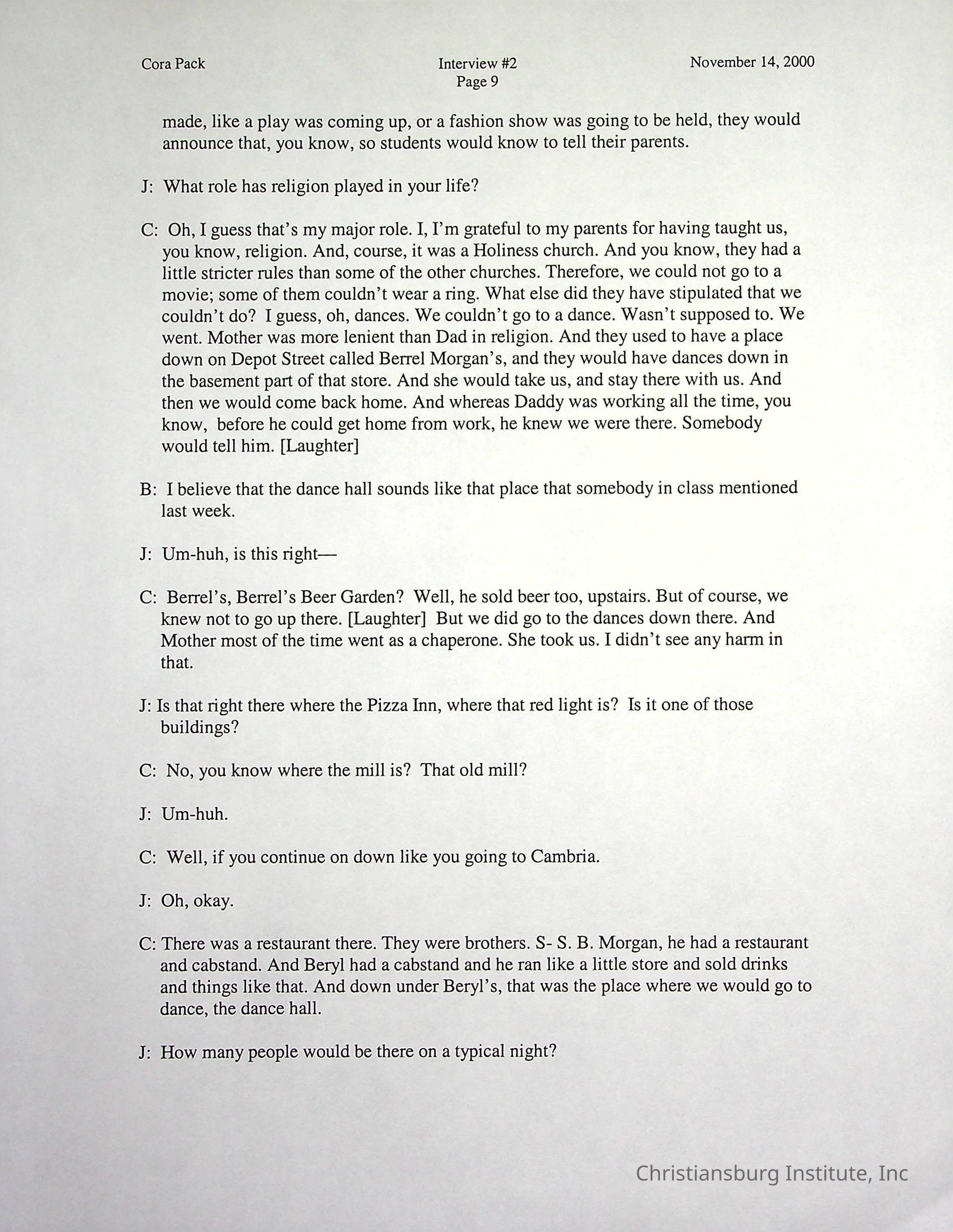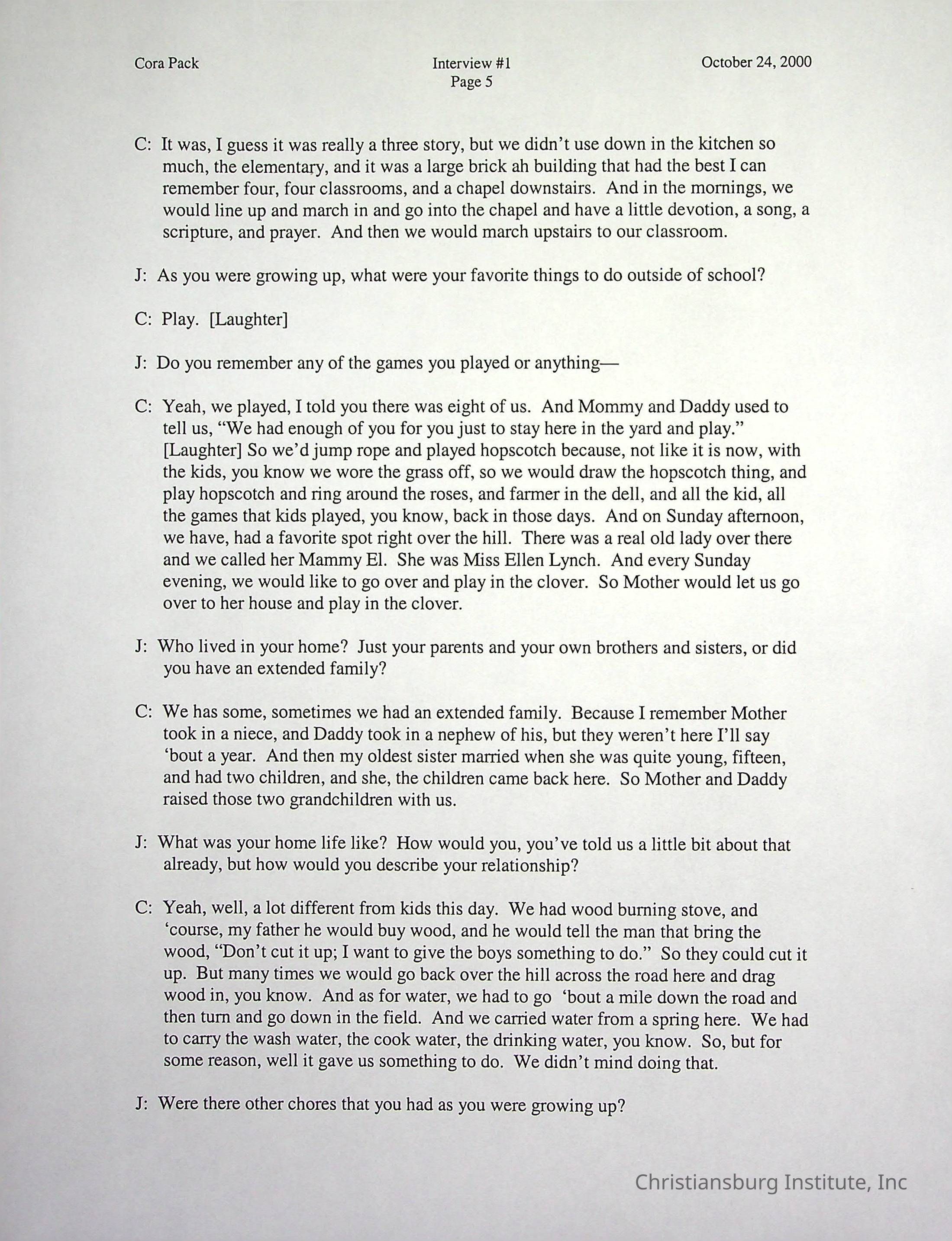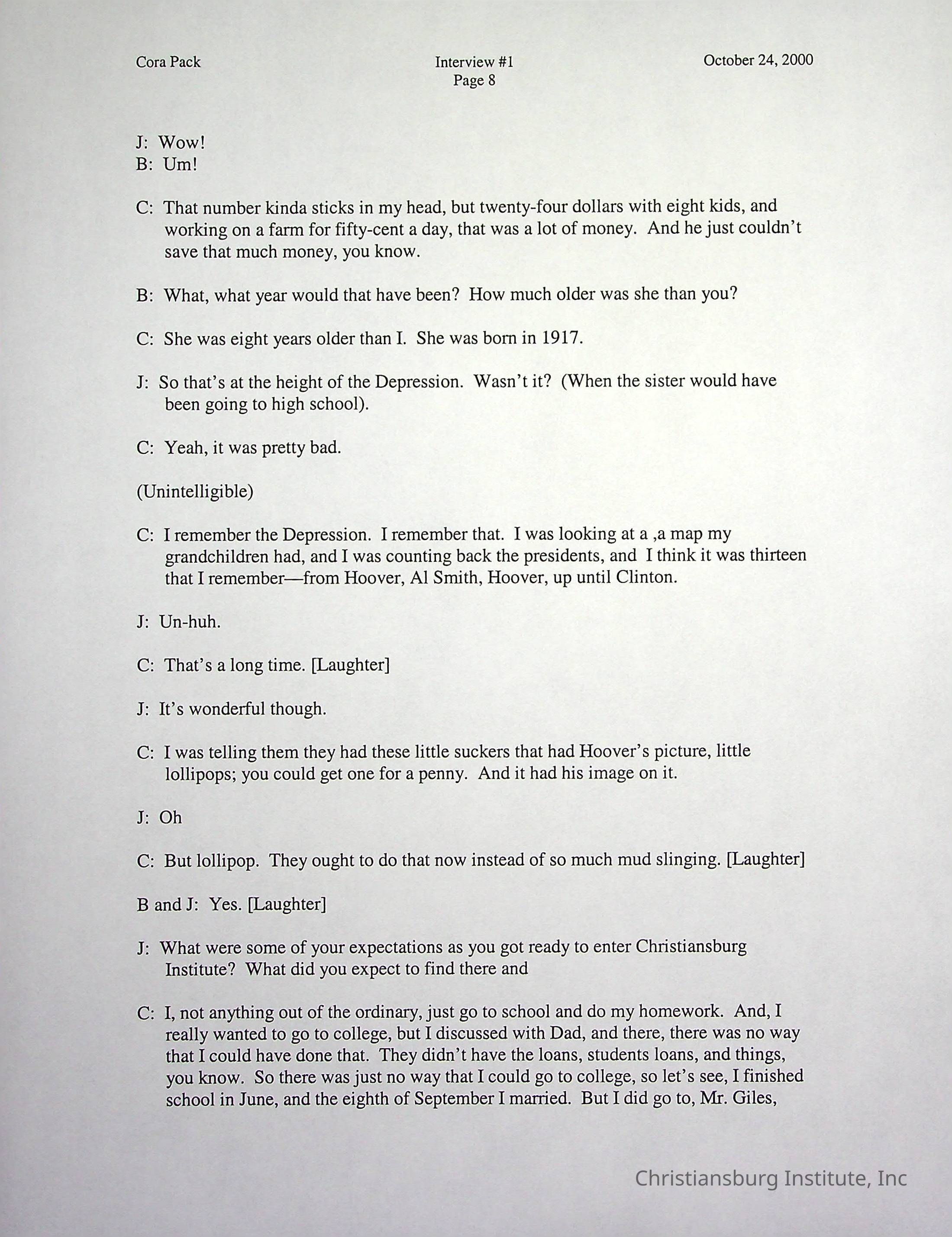 Two oral histories with Christiansburg Institute alumni, Cora Pack conducted by Jean Hamm on October 24th, 2000 and November 14th, 2000.Creator