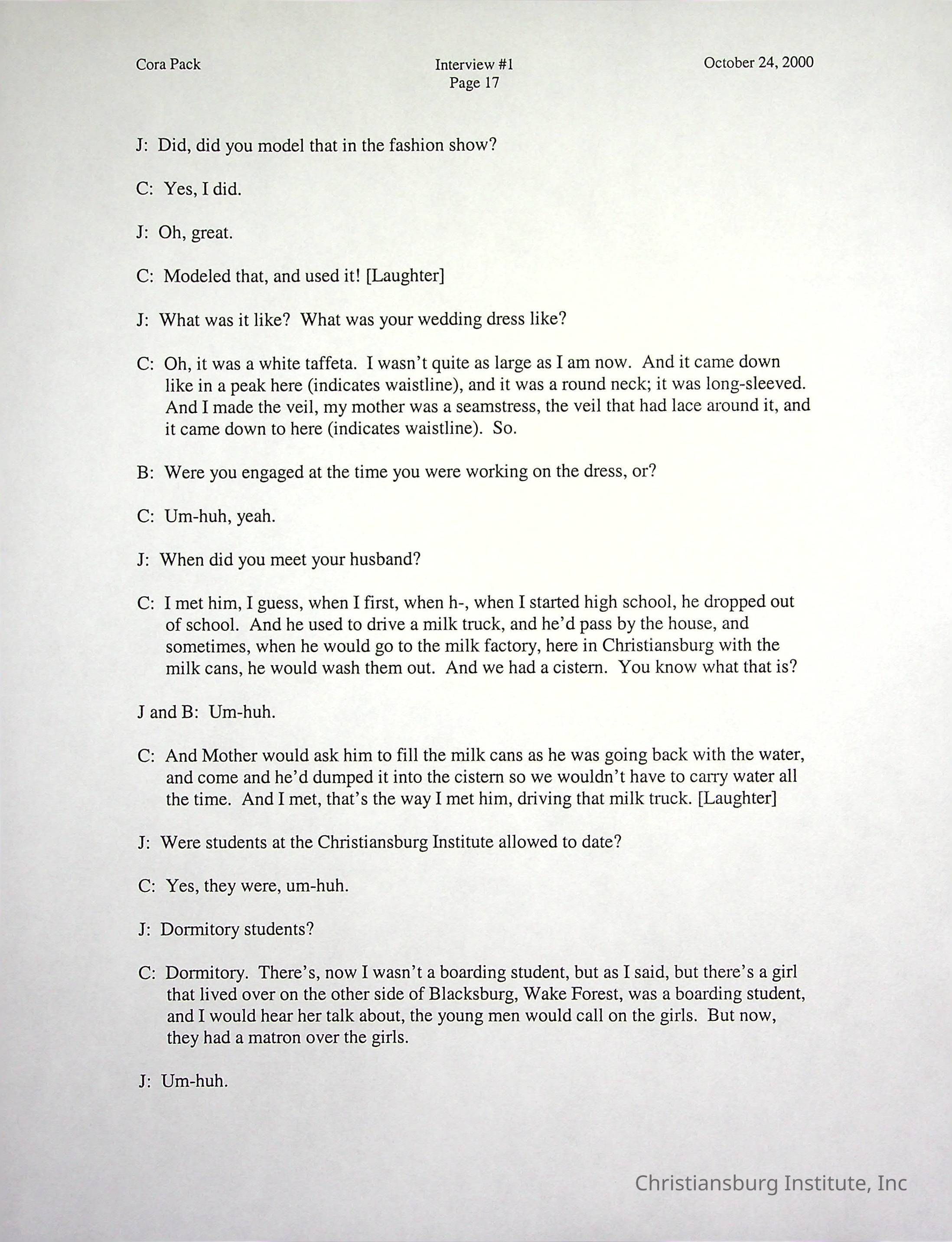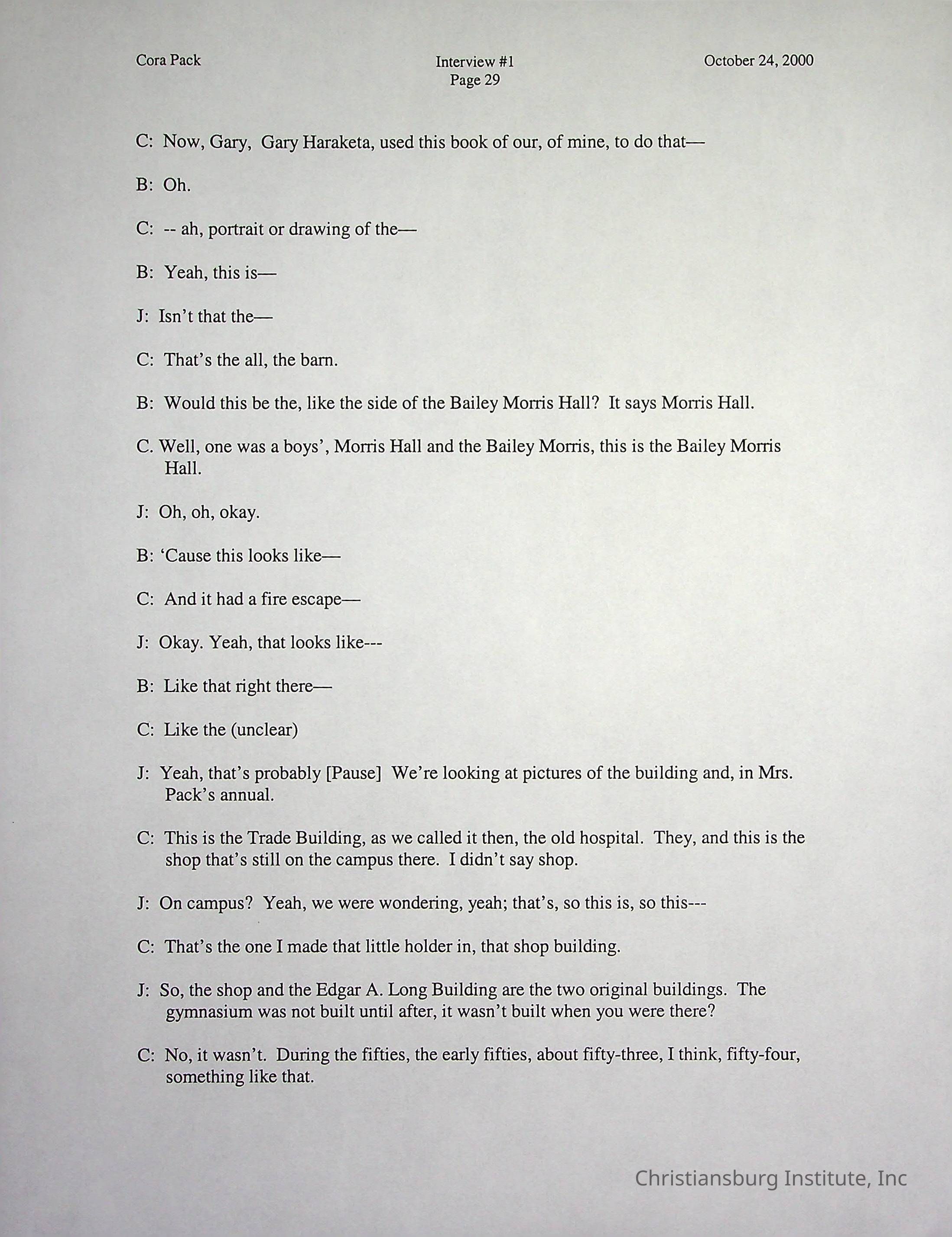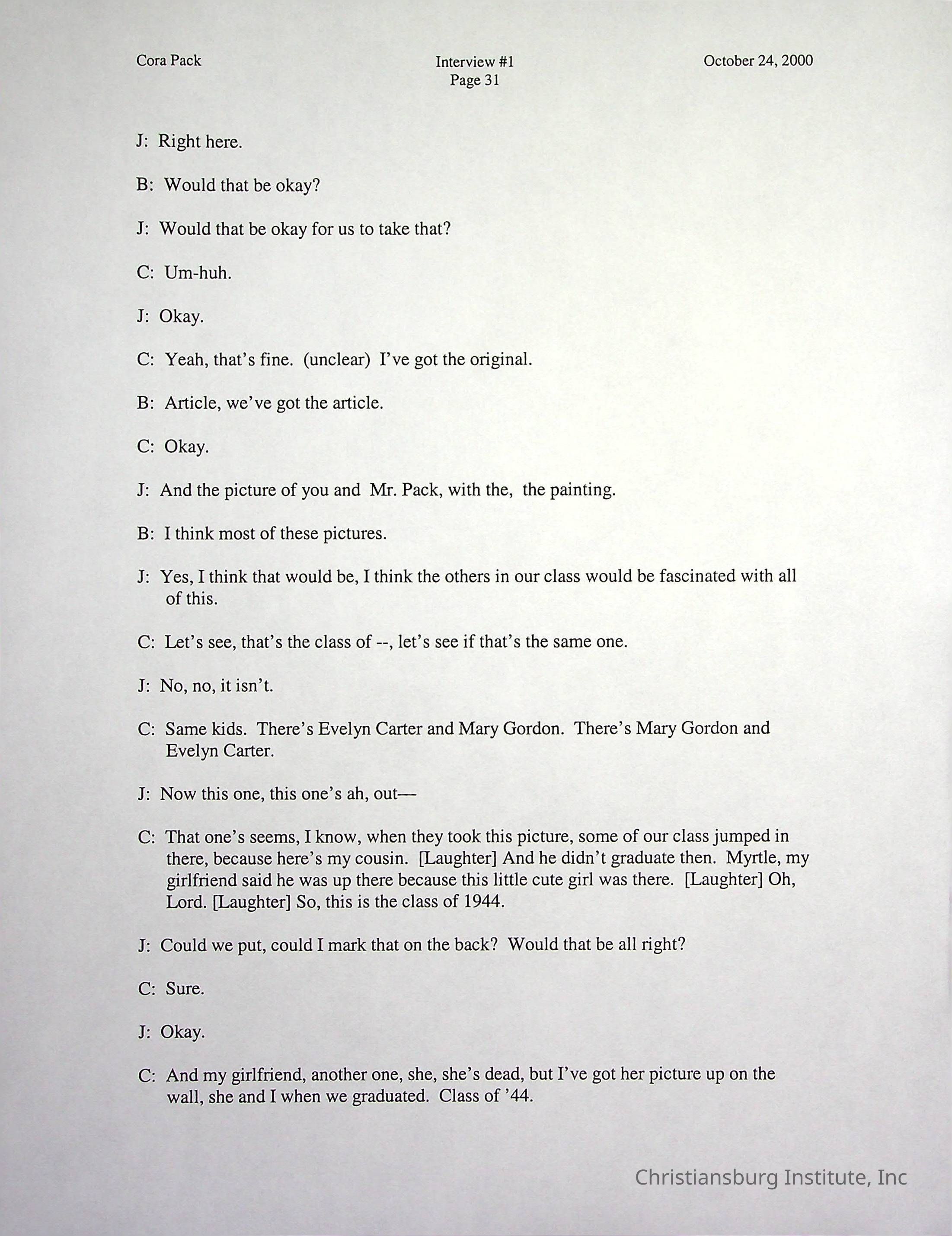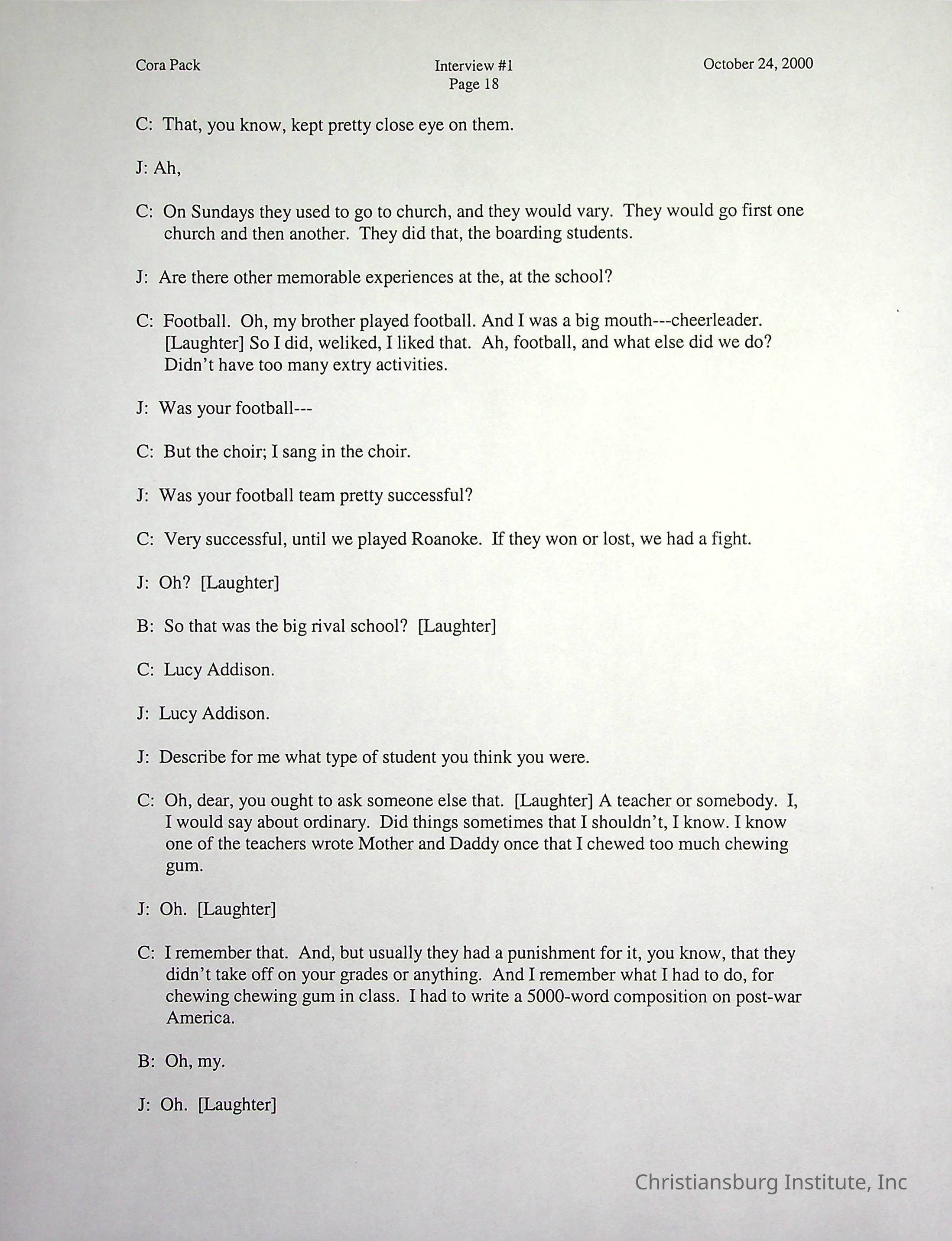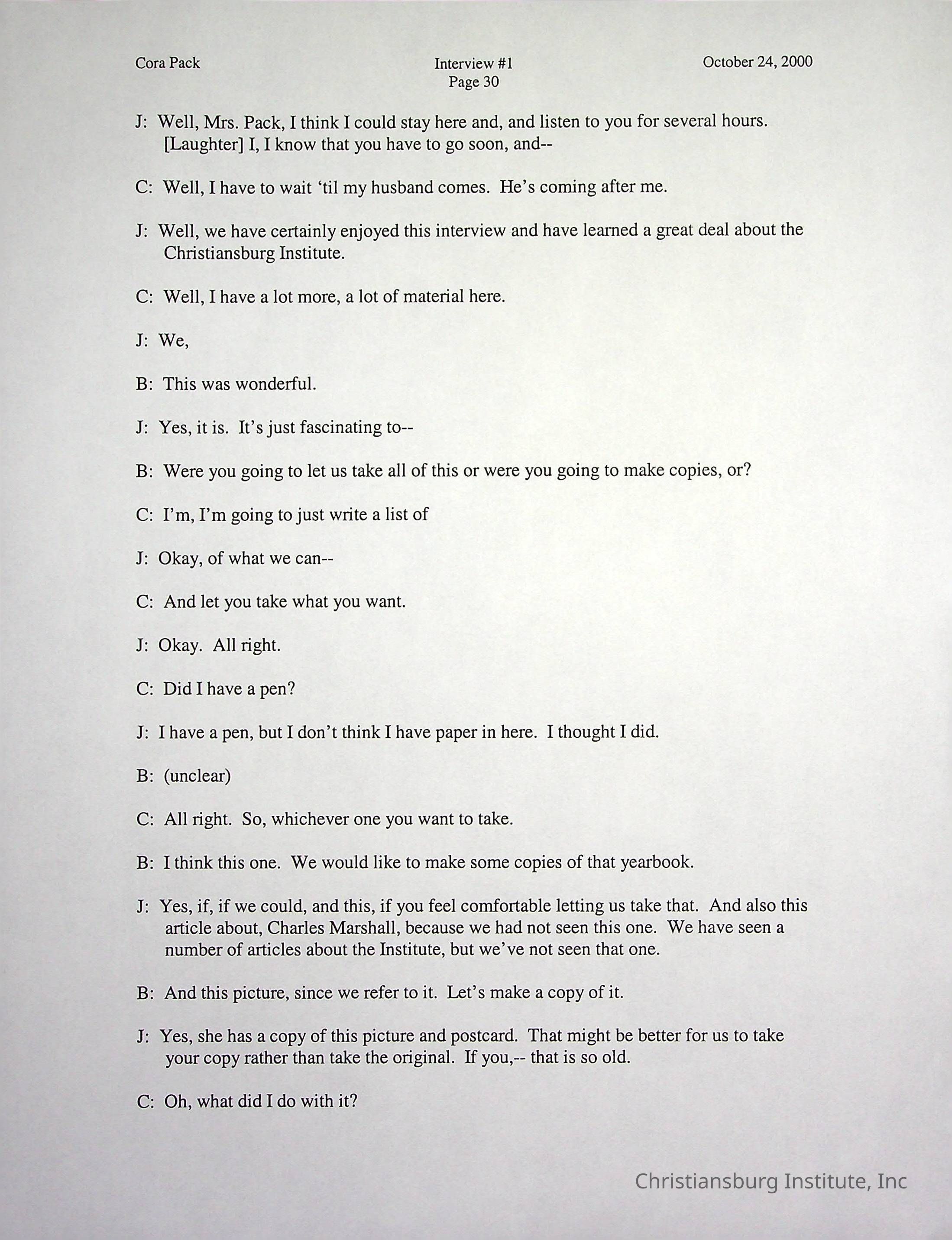 Two oral histories with Christiansburg Institute alumni, Cora Pack conducted by Jean Hamm on October 24th, 2000 and November 14th, 2000.Creator
