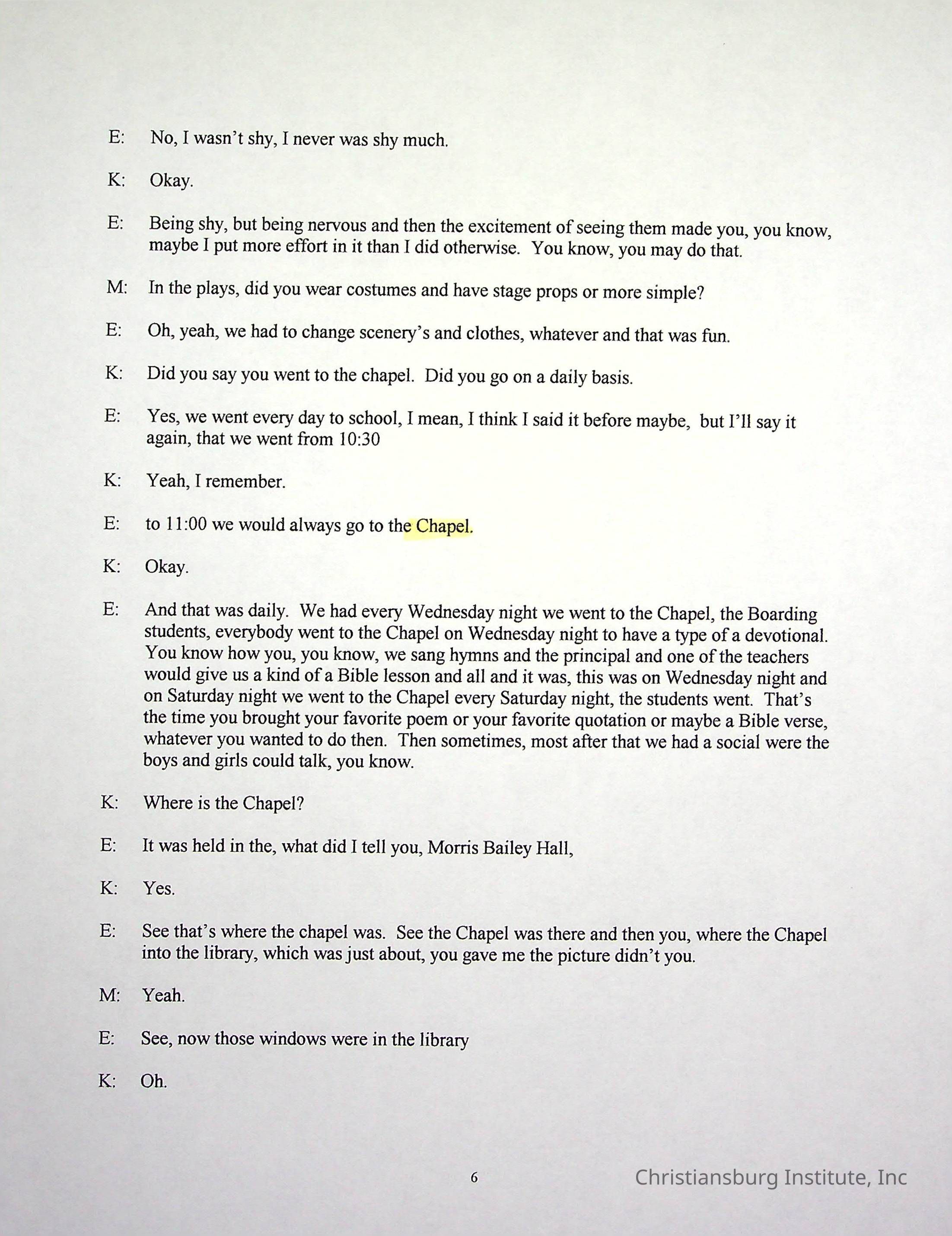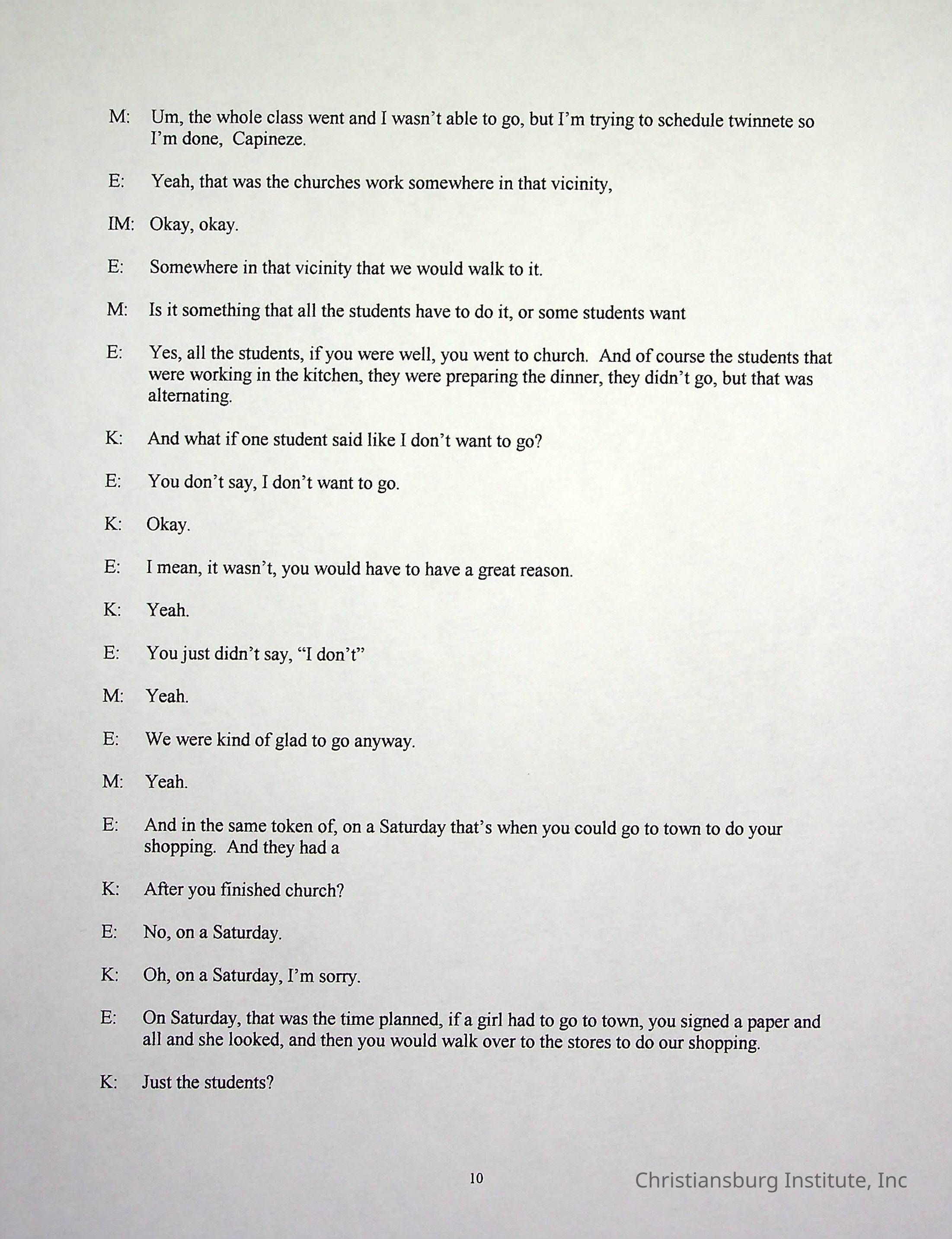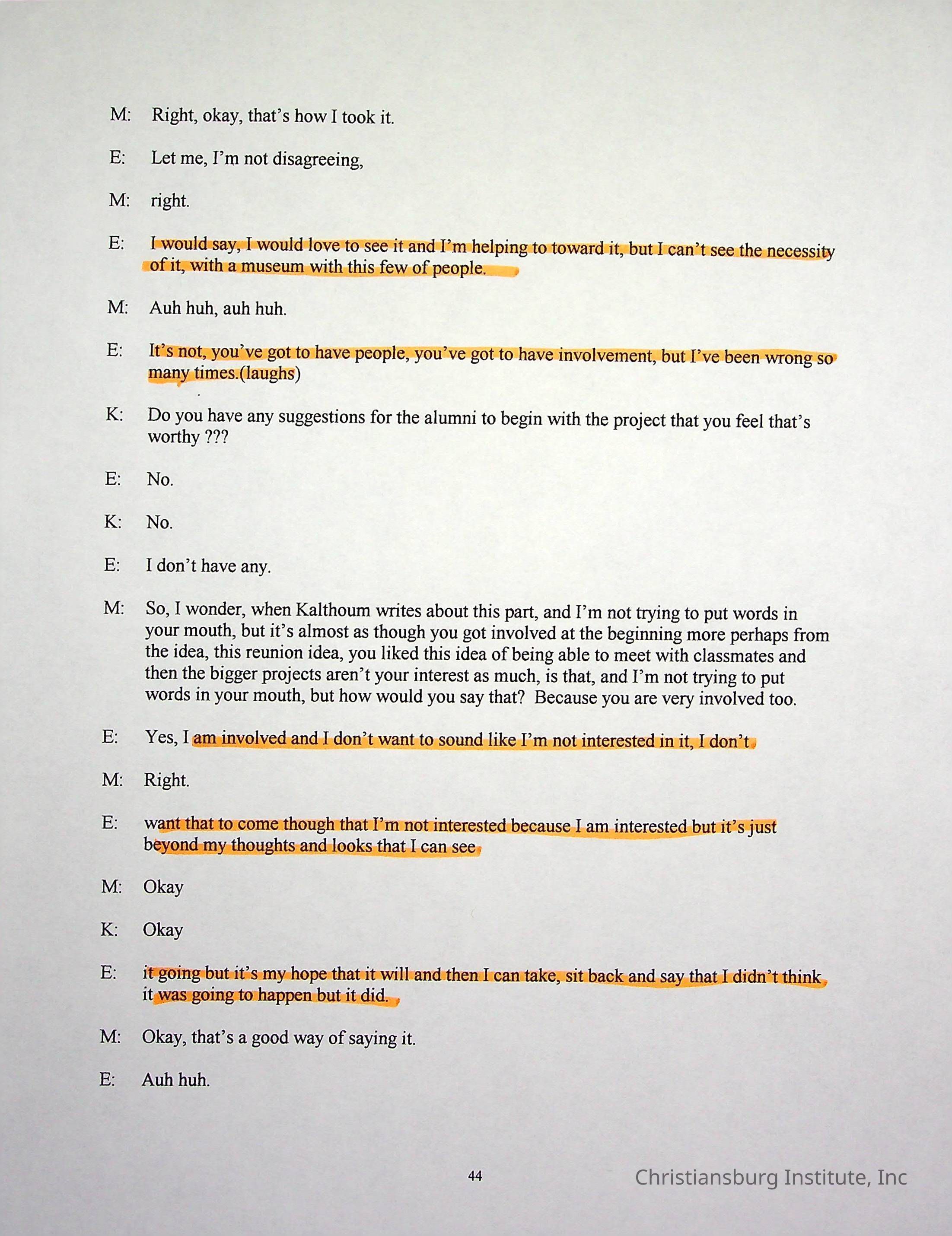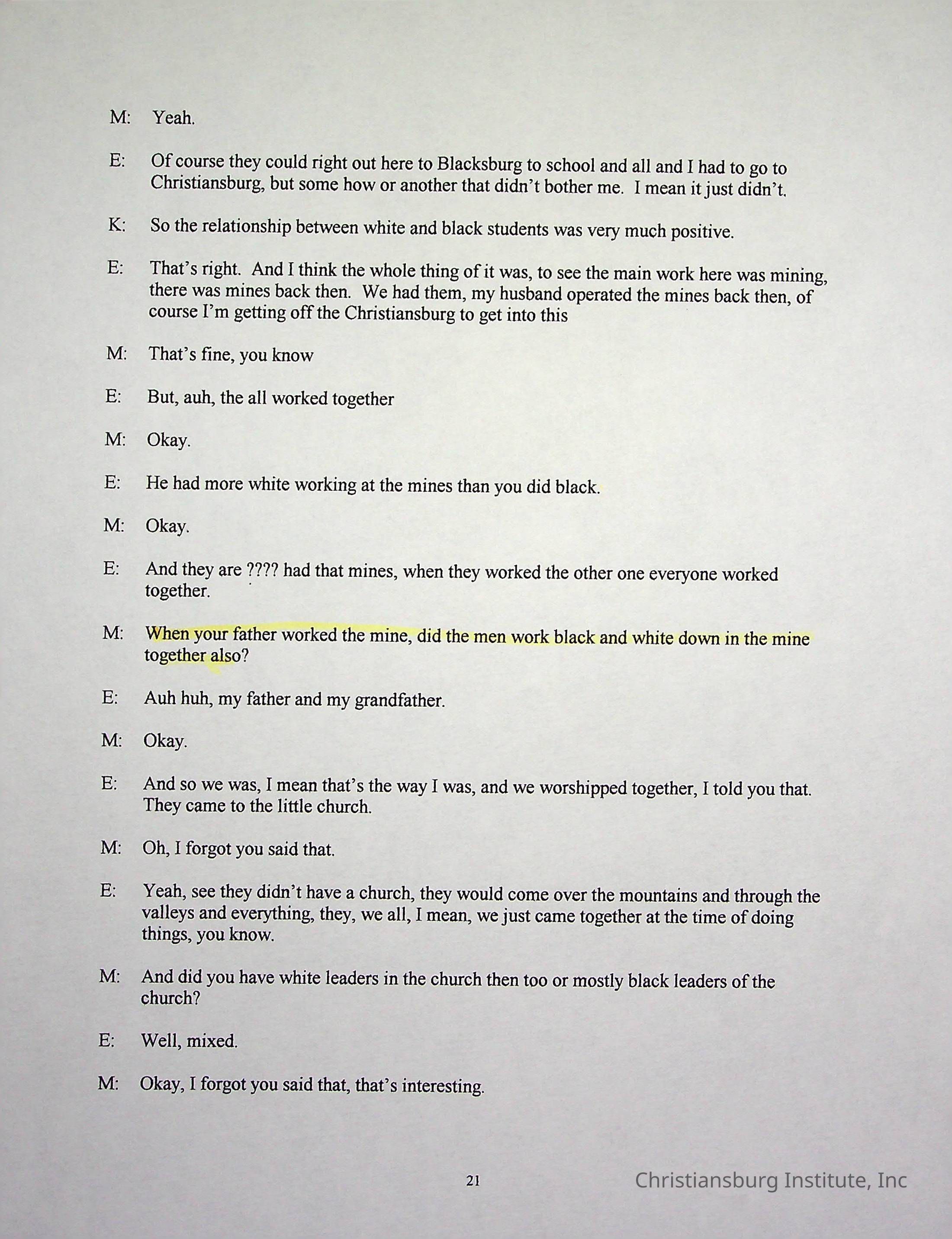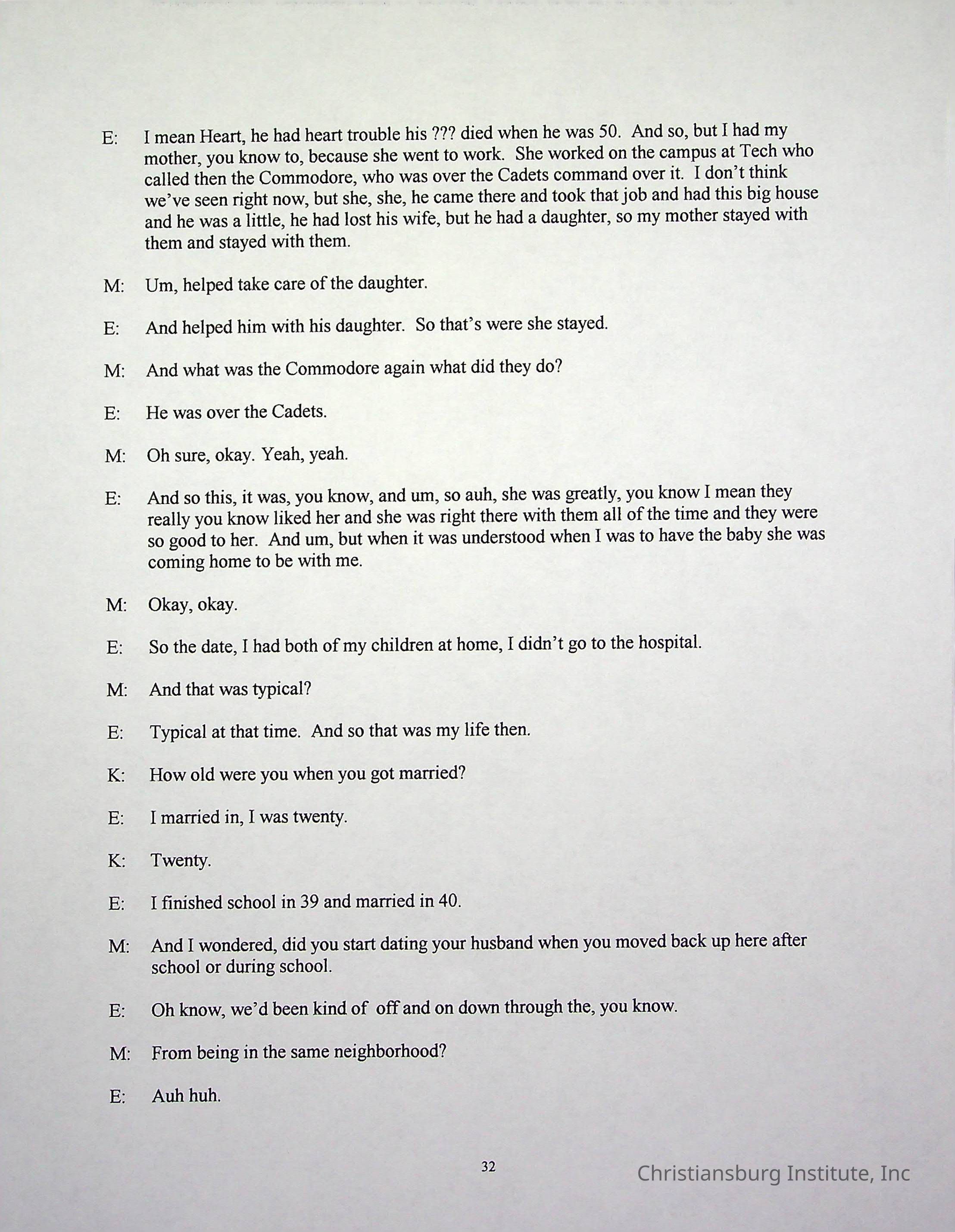An oral history with Christiansburg Institute alumni, Esther Jones conducted by Kalthoum Alkandari and Maria Lymans on October 26th, 2000 and a second interview conducted on November 52nd, 2000.Collection