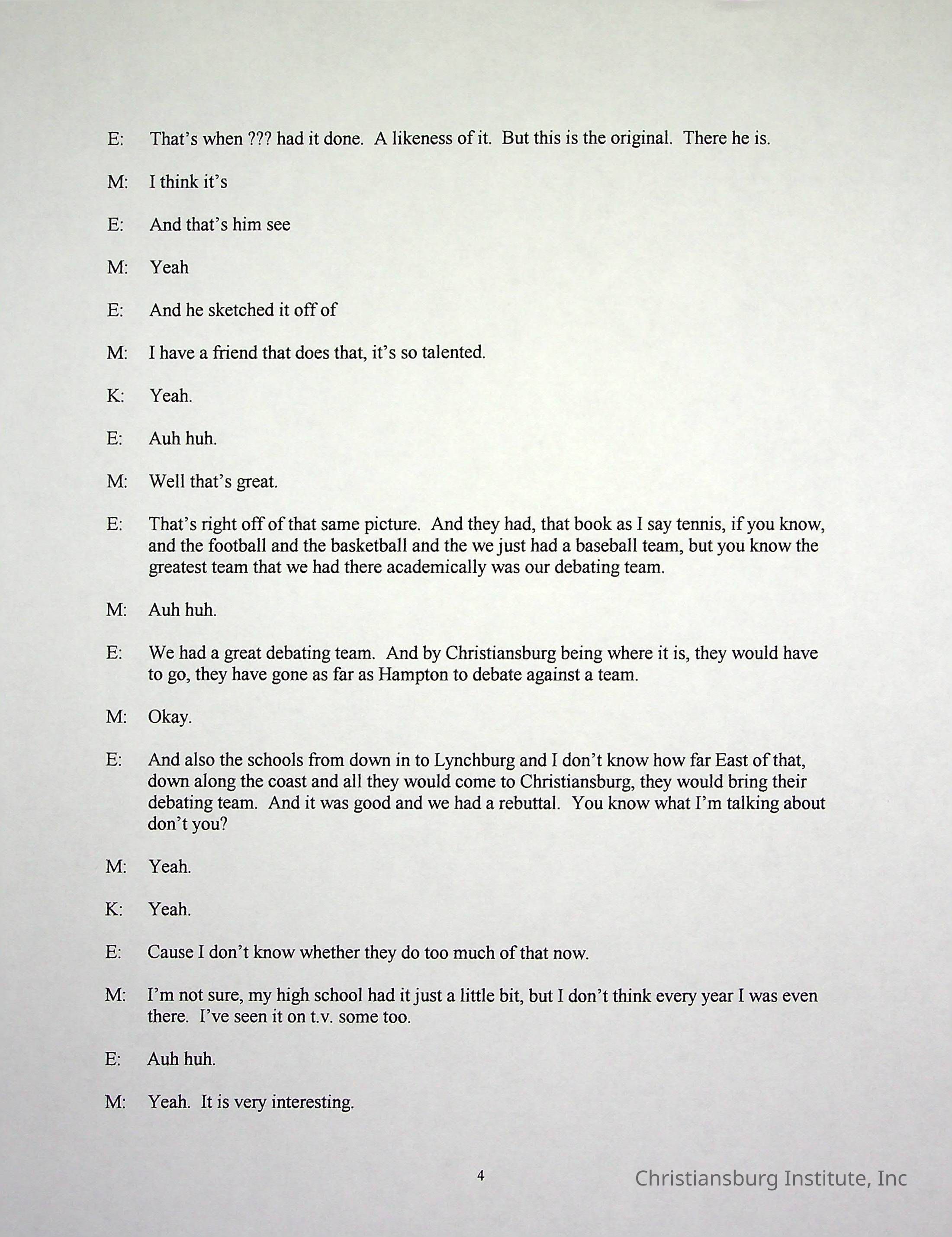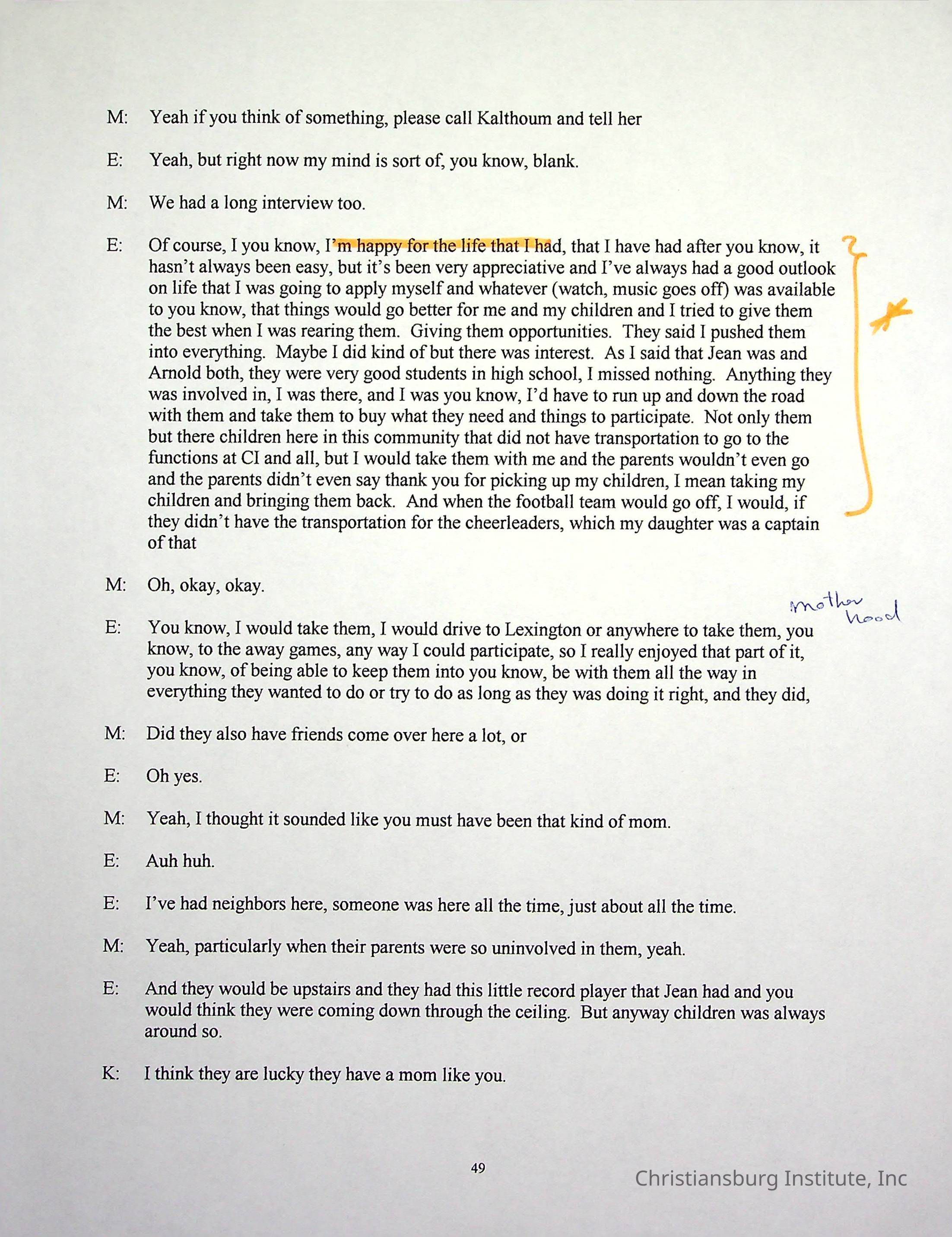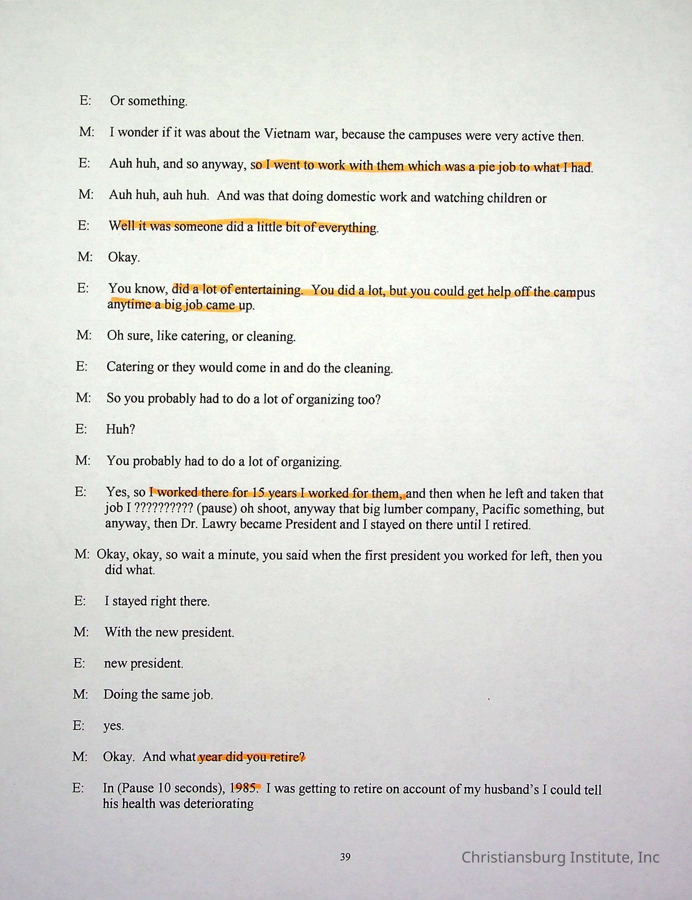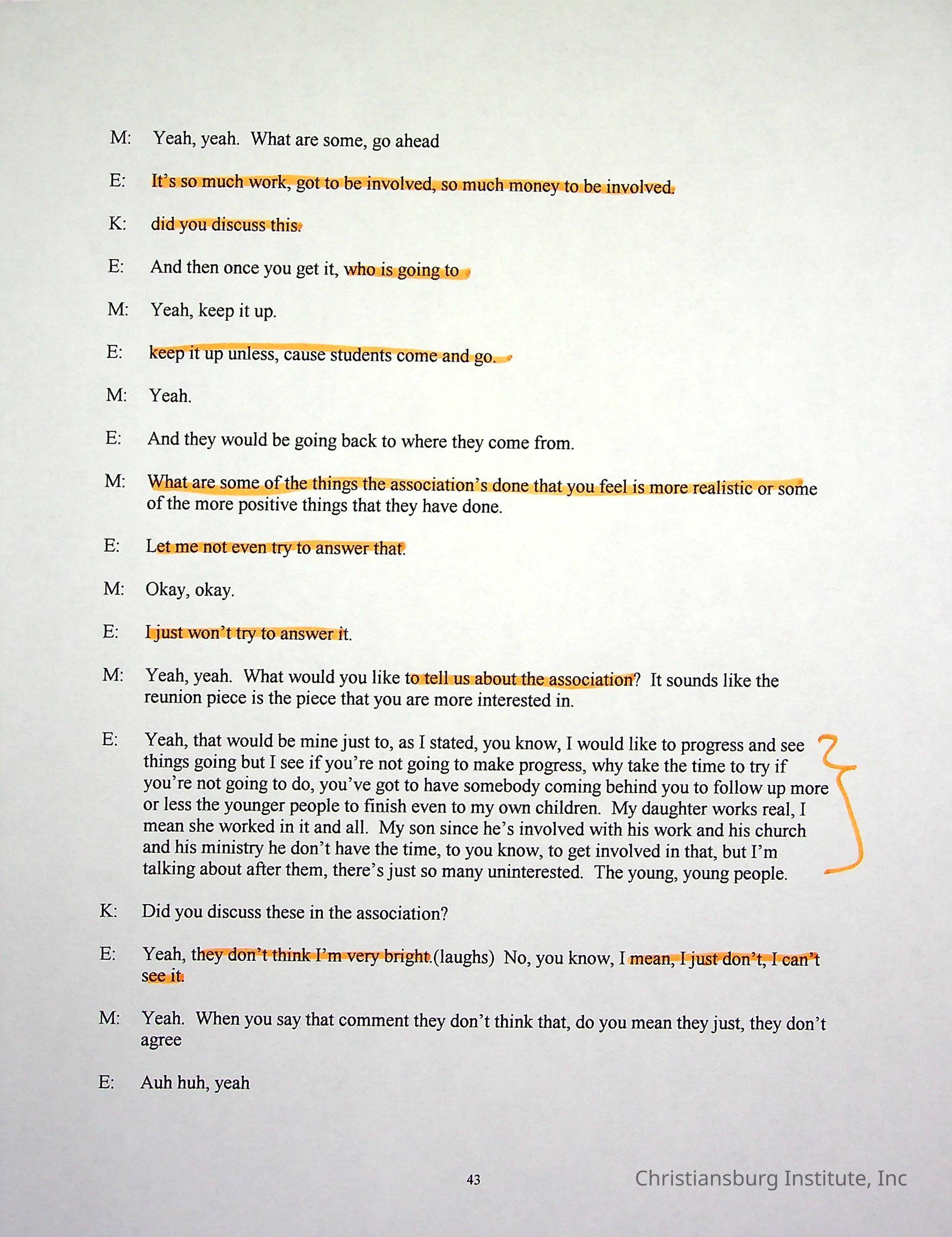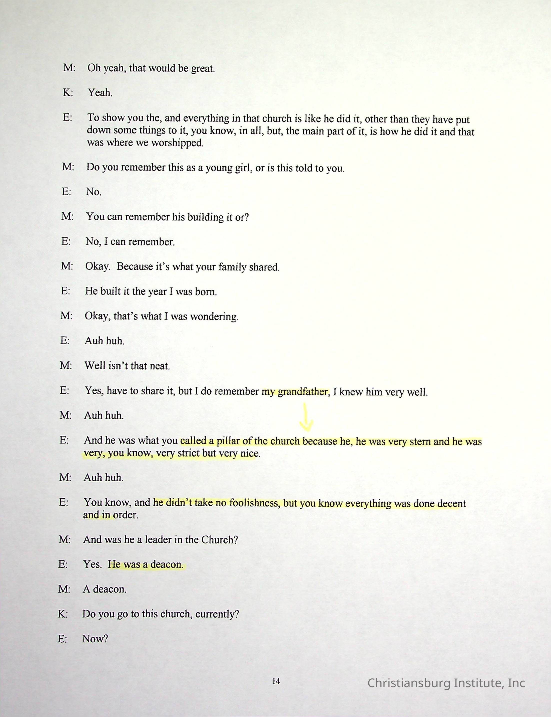 An oral history with Christiansburg Institute alumni, Esther Jones conducted by Kalthoum Alkandari and Maria Lymans on October 26th, 2000 and a second interview conducted on November 52nd, 2000.Collection