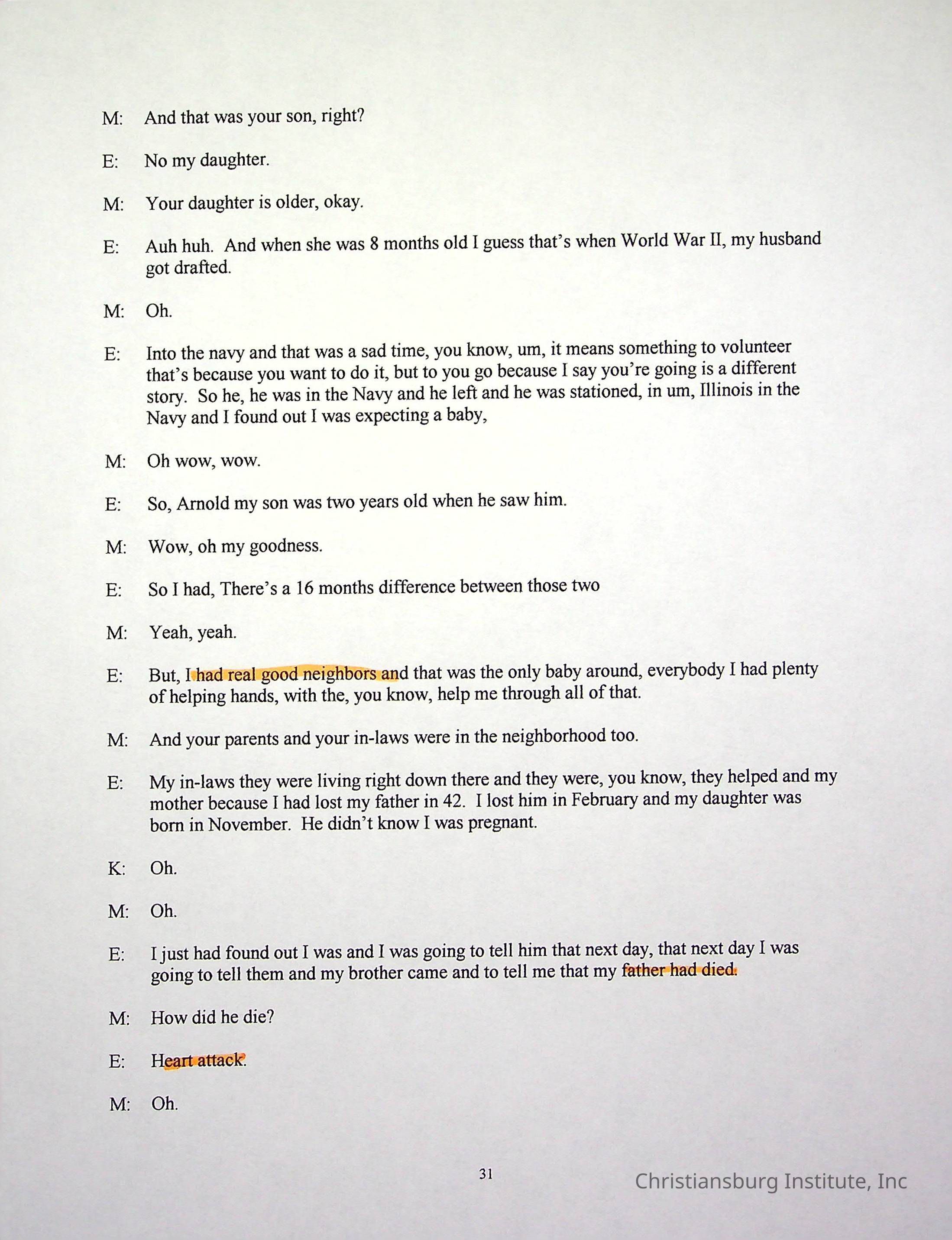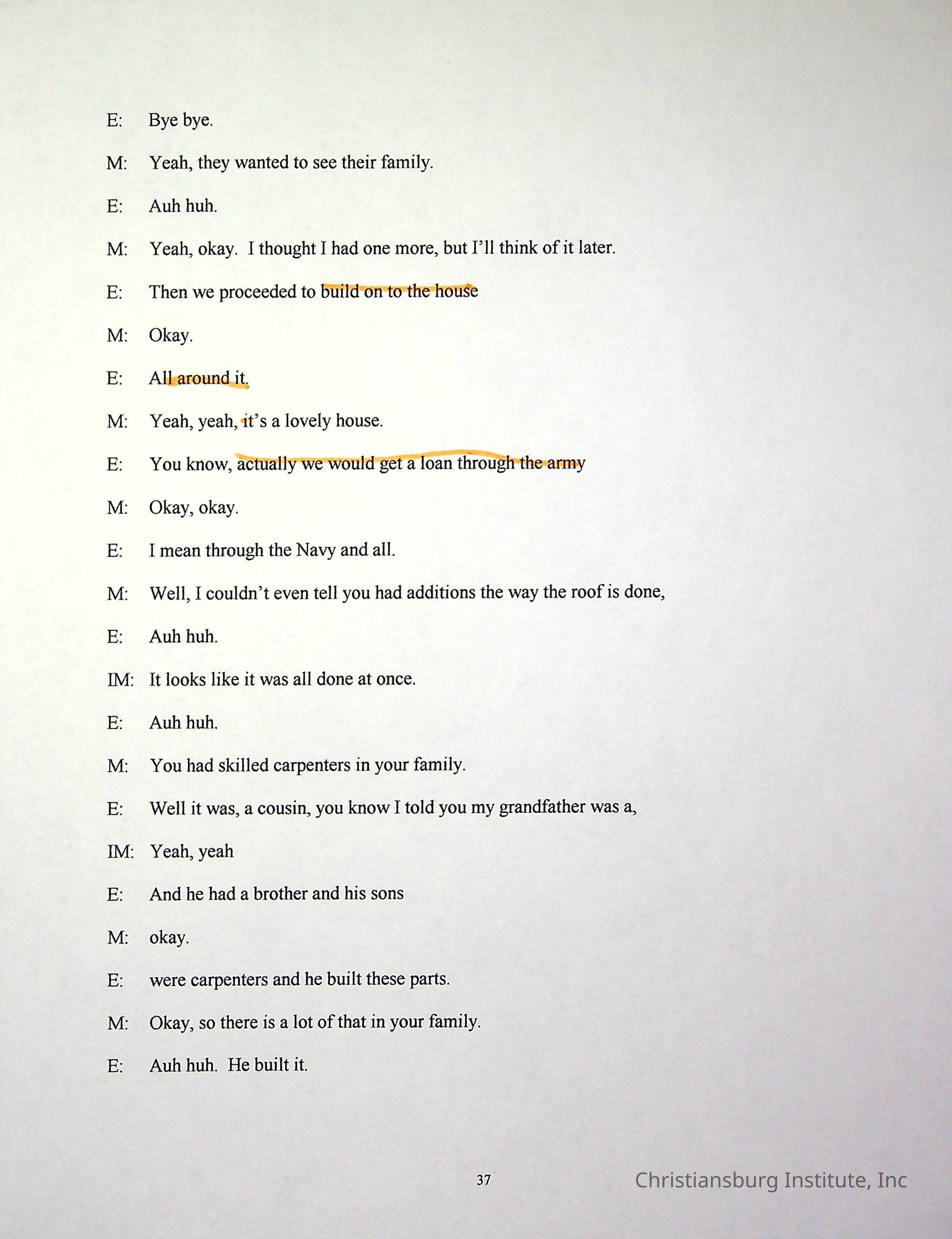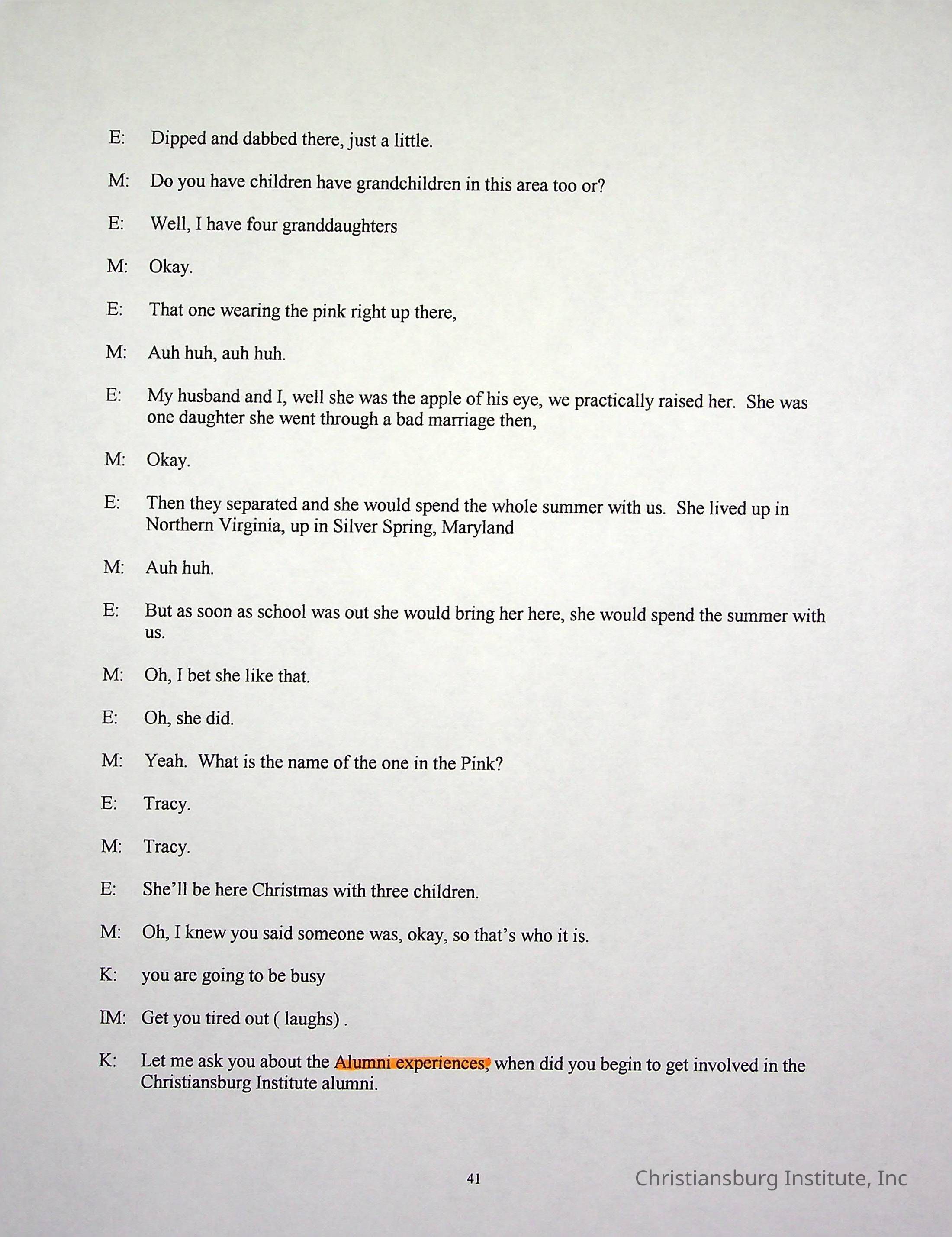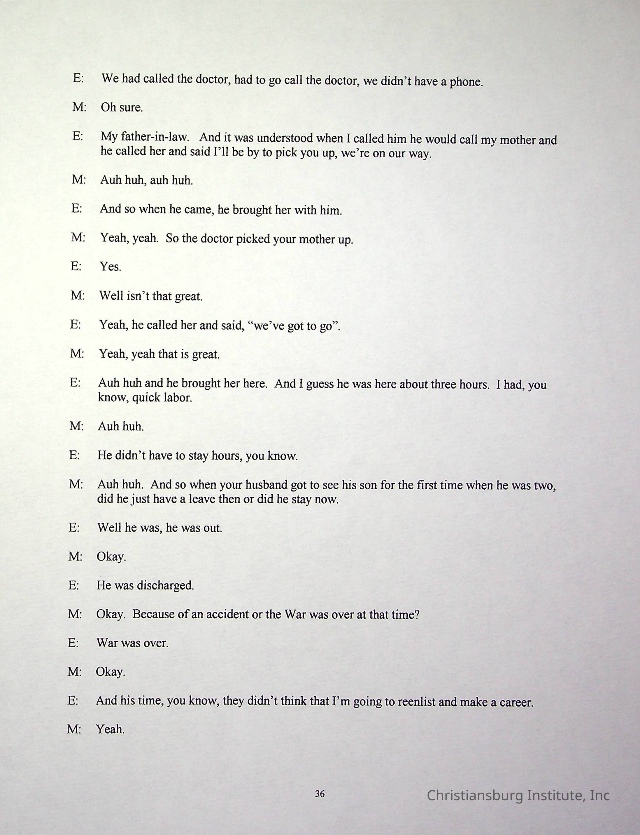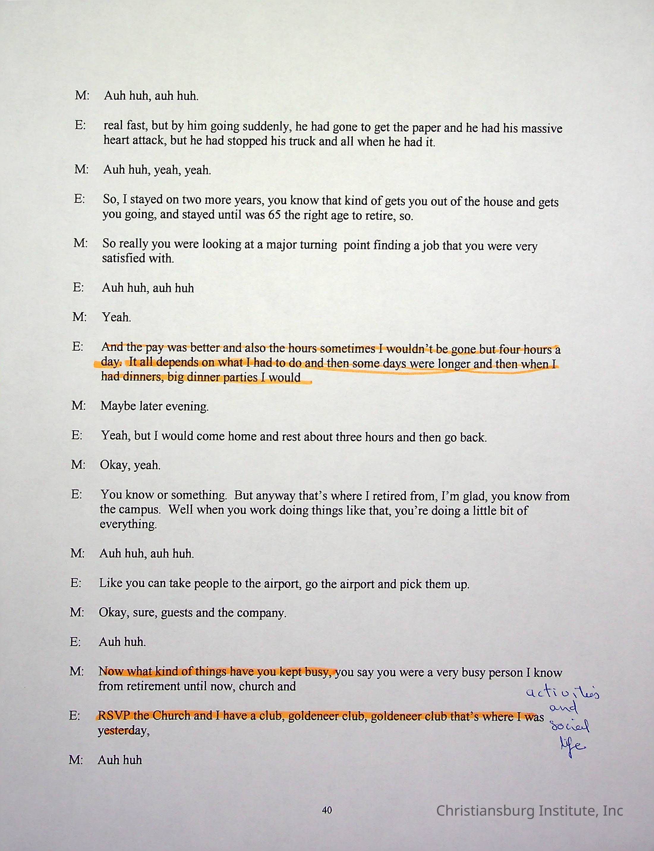 An oral history with Christiansburg Institute alumni, Esther Jones conducted by Kalthoum Alkandari and Maria Lymans on October 26th, 2000 and a second interview conducted on November 52nd, 2000.Collection