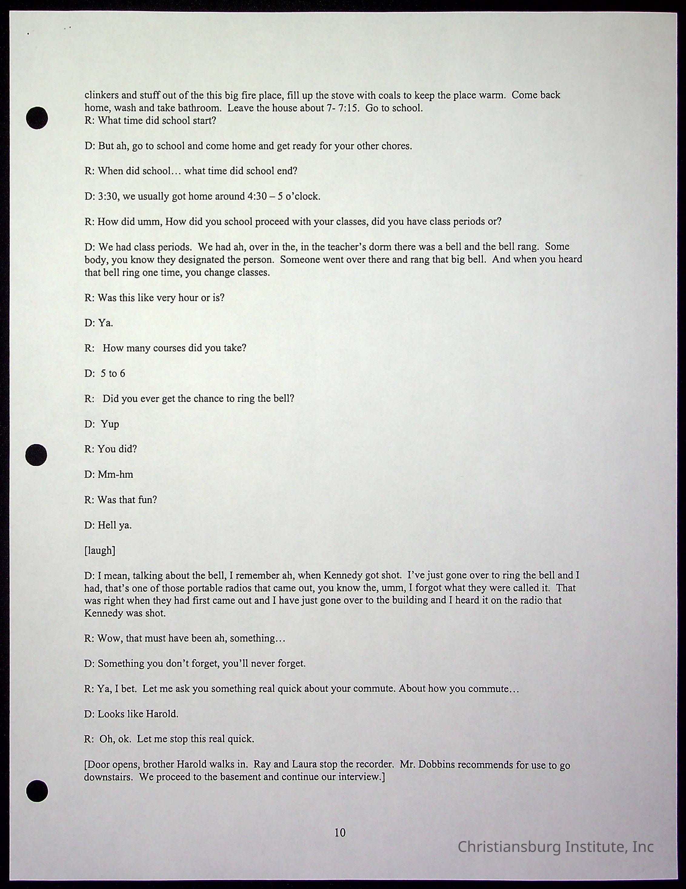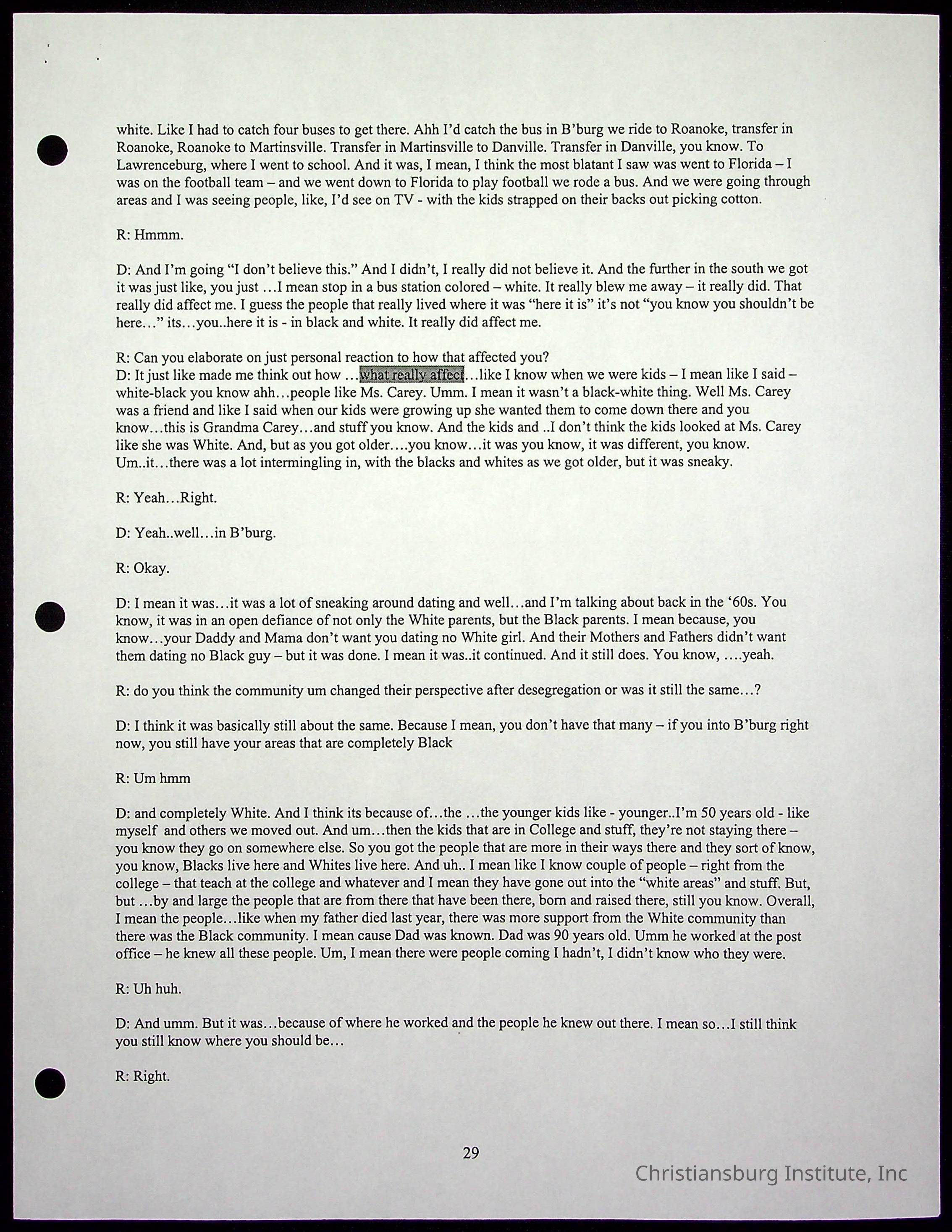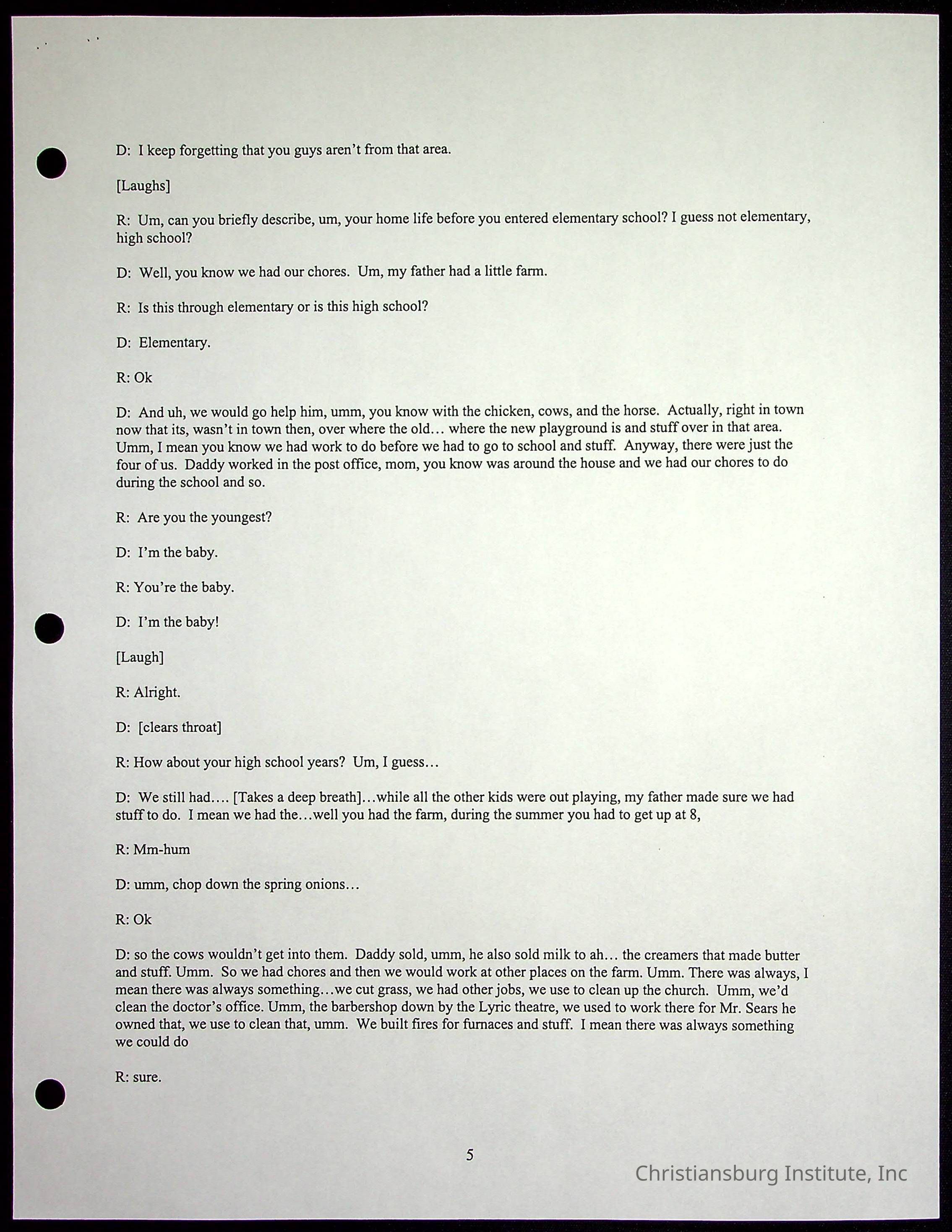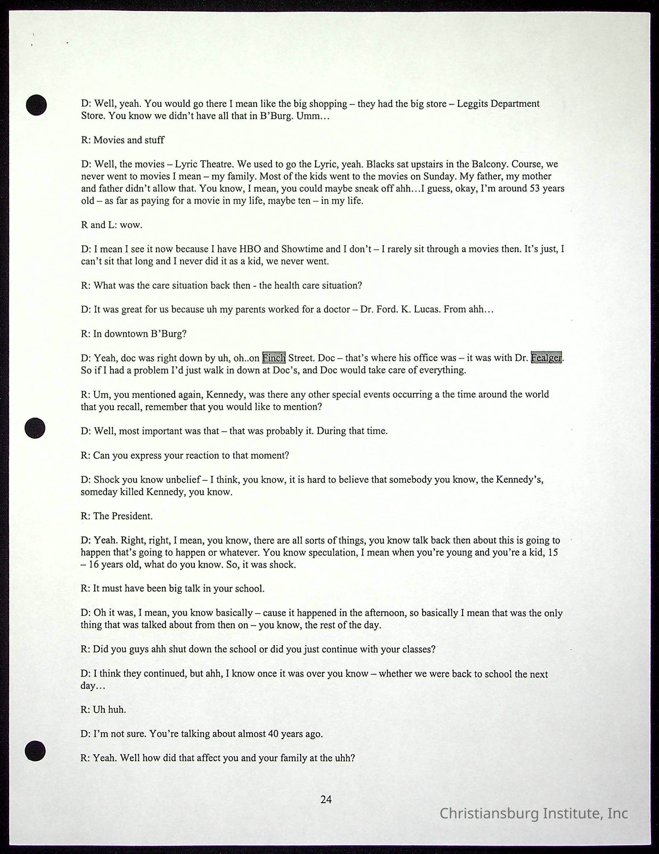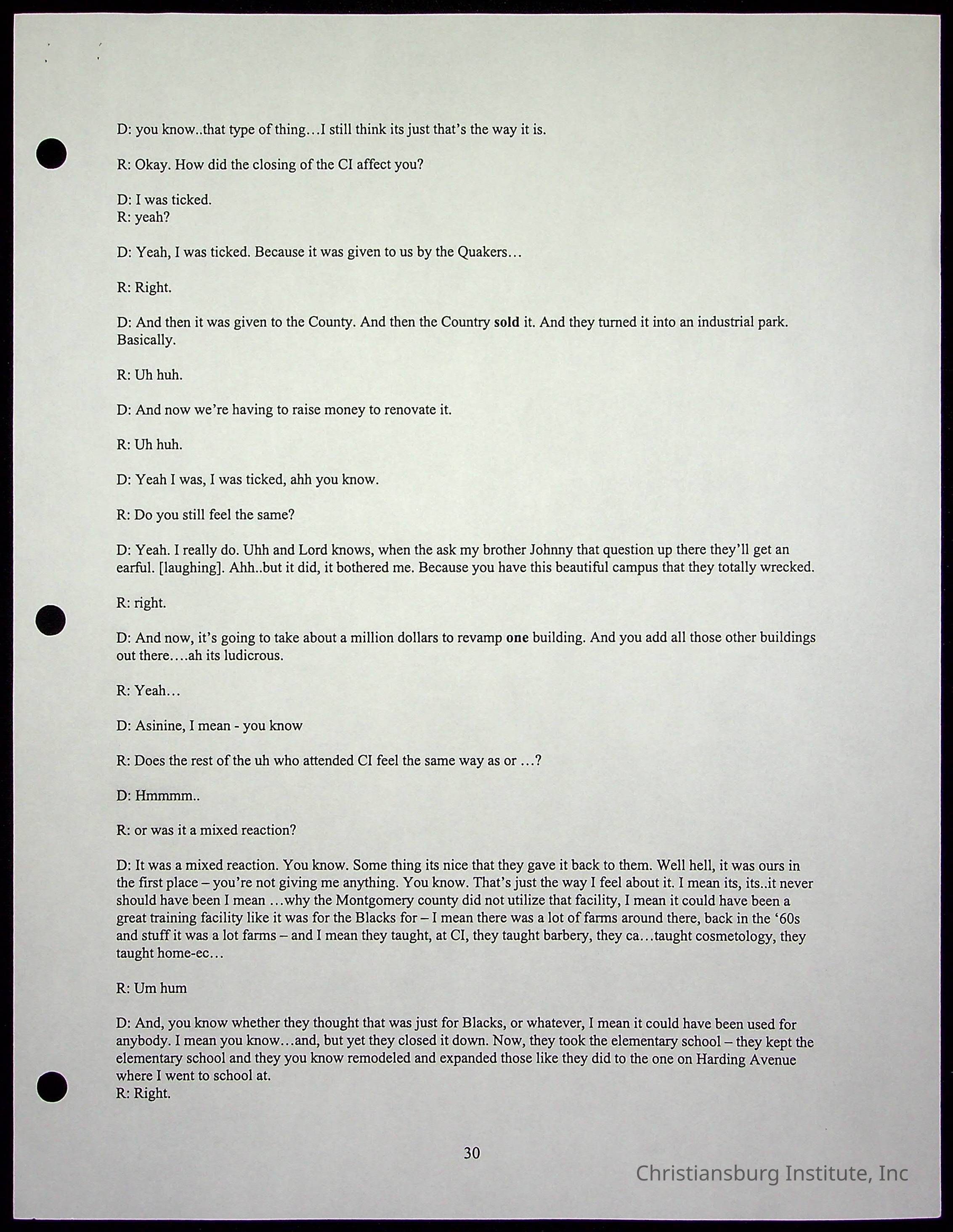 An oral history with Christiansburg Institute alumni, Rice Dobbins Jr conducted by Ray de Leon and Laura Shillington on April 7th, 2001.