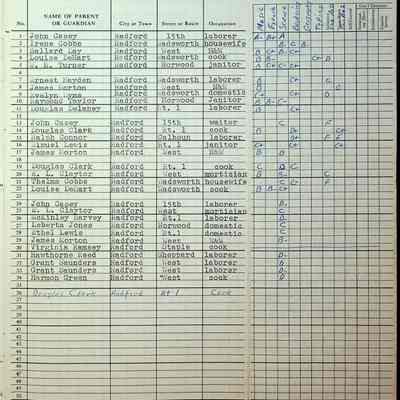 Hattie E. Clemons' Virginia teacher's register book for the school year 1959-1960 for Radford boy students at Christiansburg Institute including information about her students, their attendance, and course grades.Collection