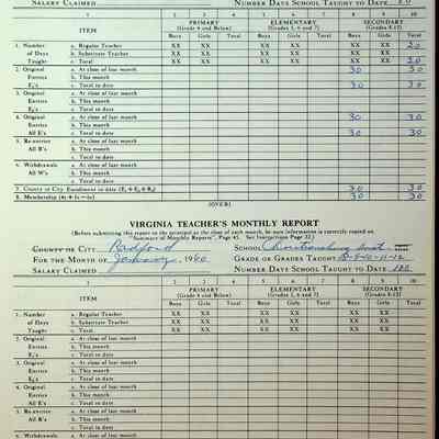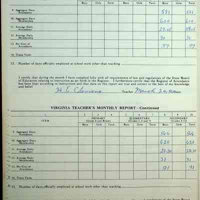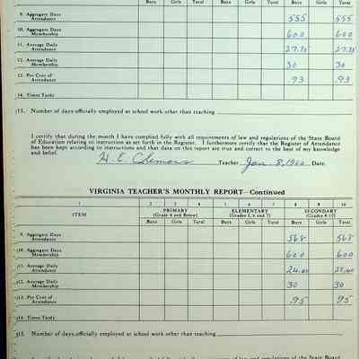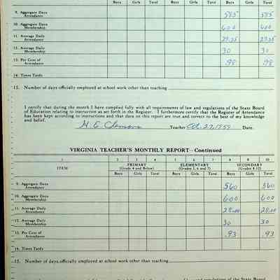 VA Teacher’s Register for H.E. Clemons, 1959-1960 (Radford Boys)Scope and Content