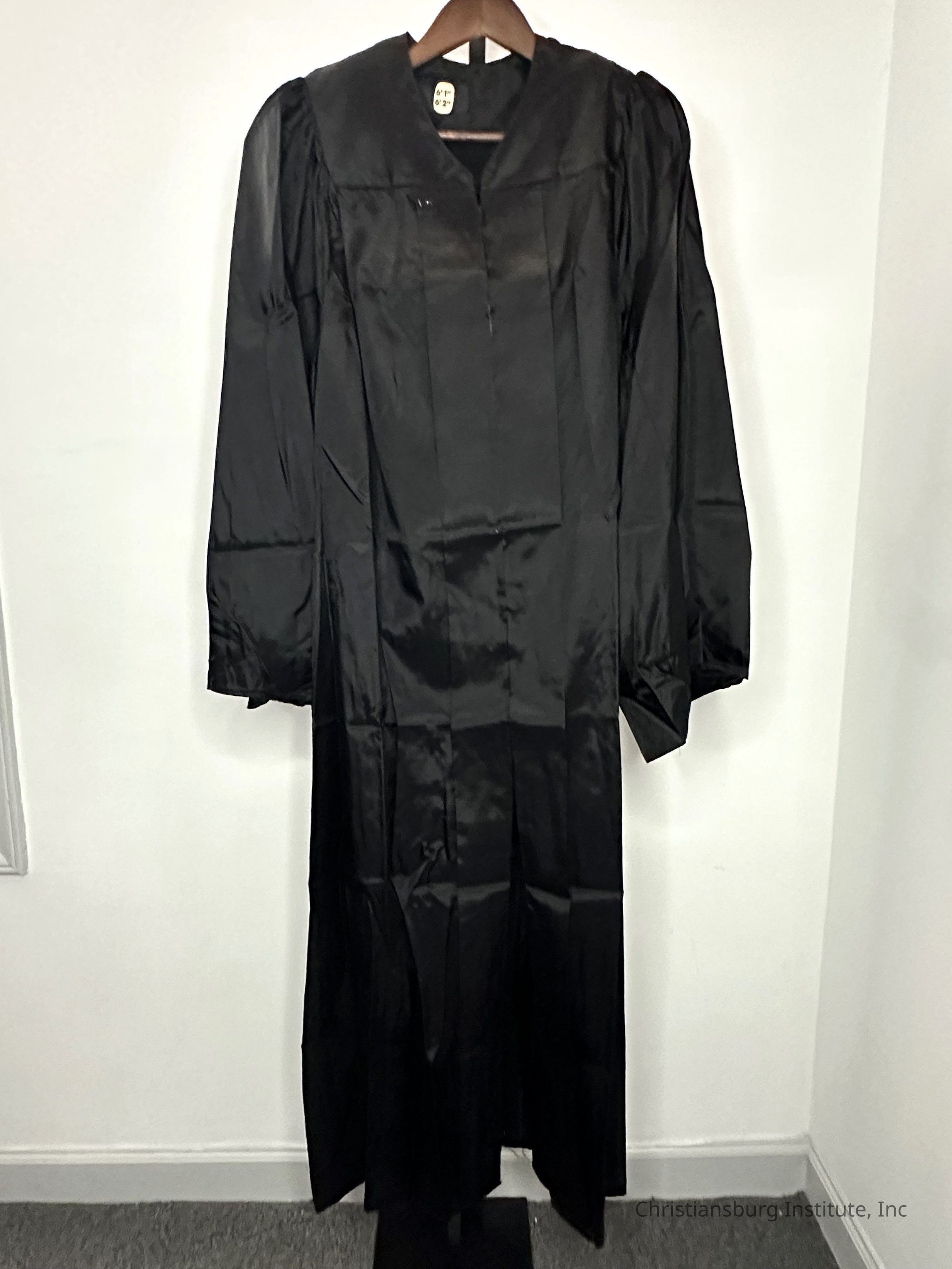 A set of black graduation cap and gown from Christiansburg Institute donated by Amanda DeHart, undated.Collection