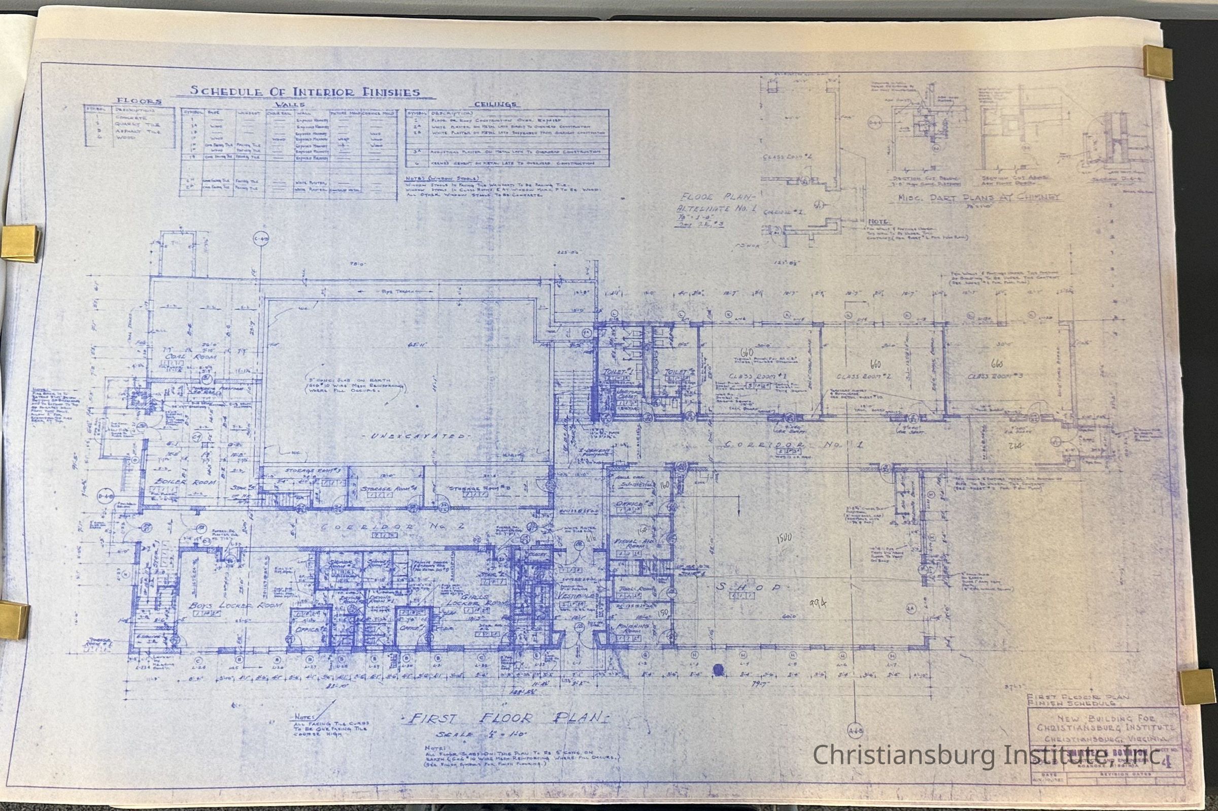 The blueprints for Scattergood Hall on the Christiansburg Institute campus made by Smithey & Boynton, dated 1951.Creator