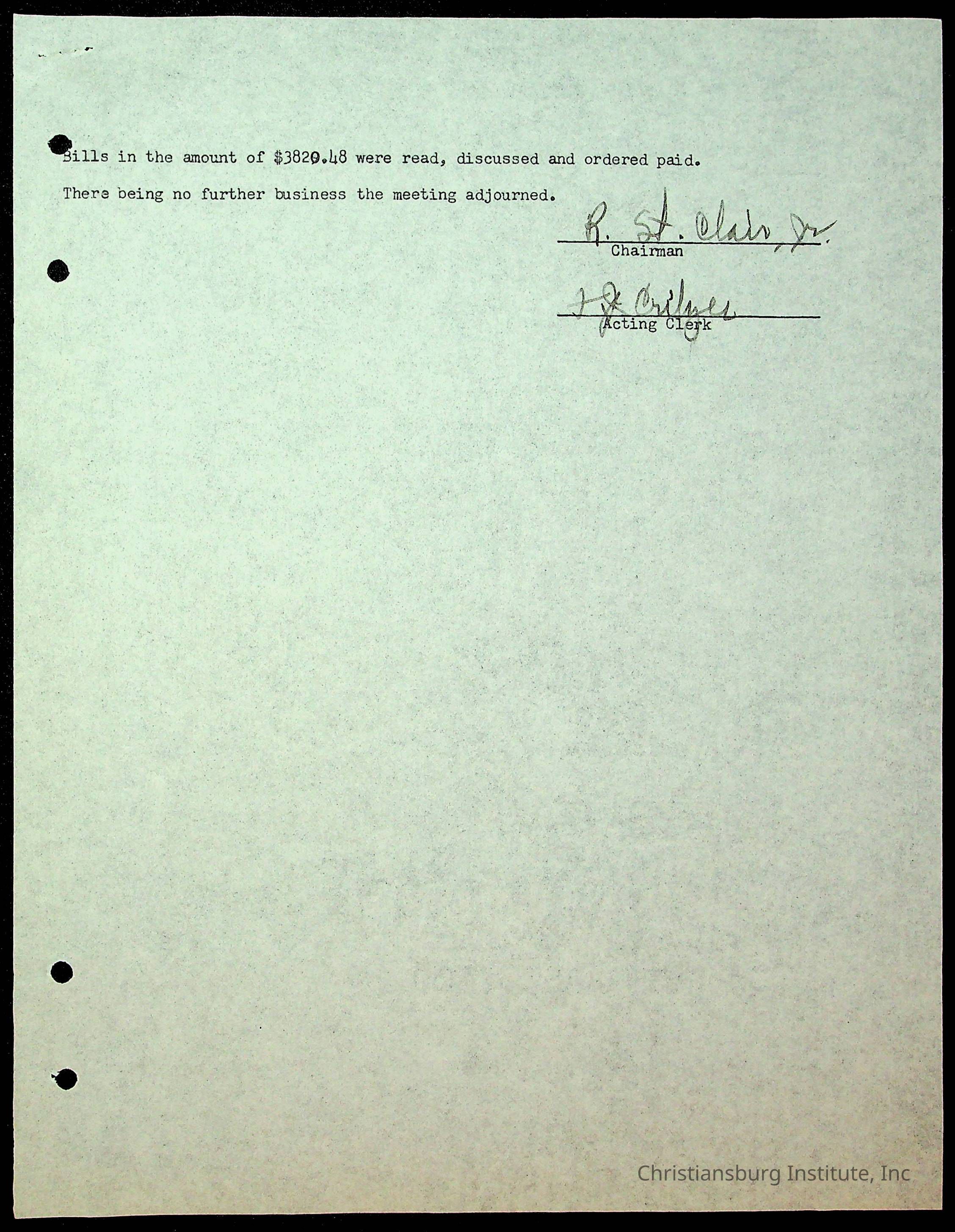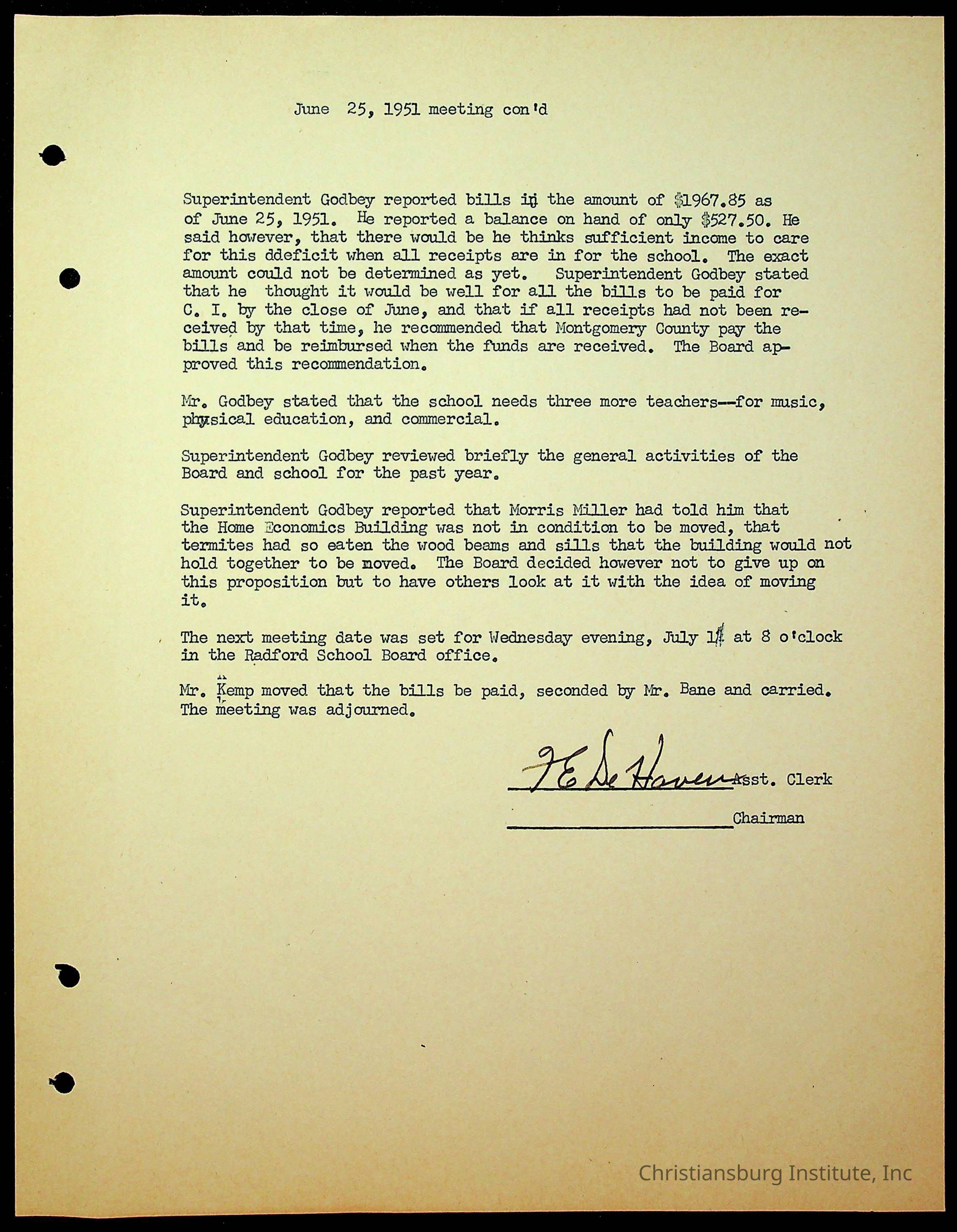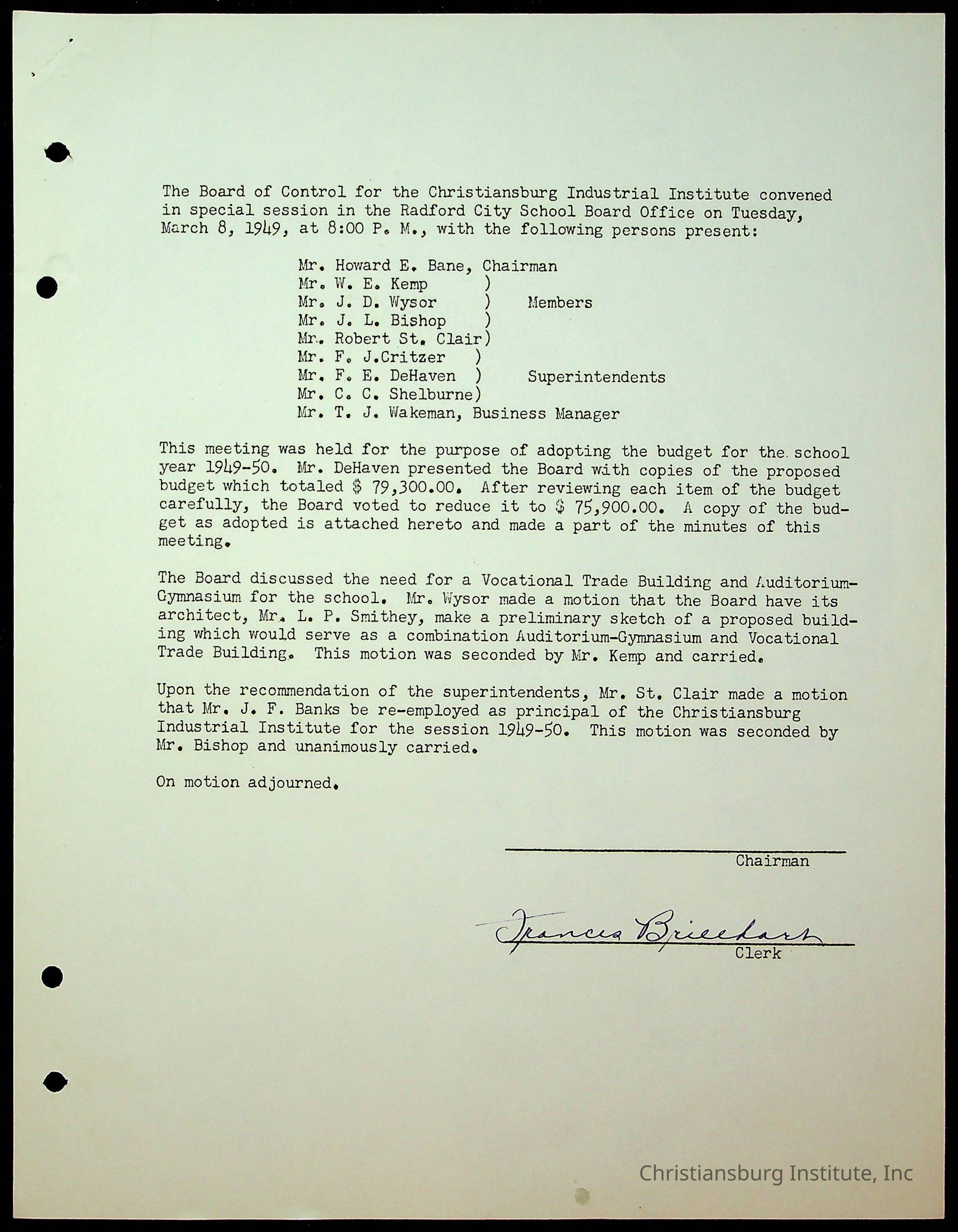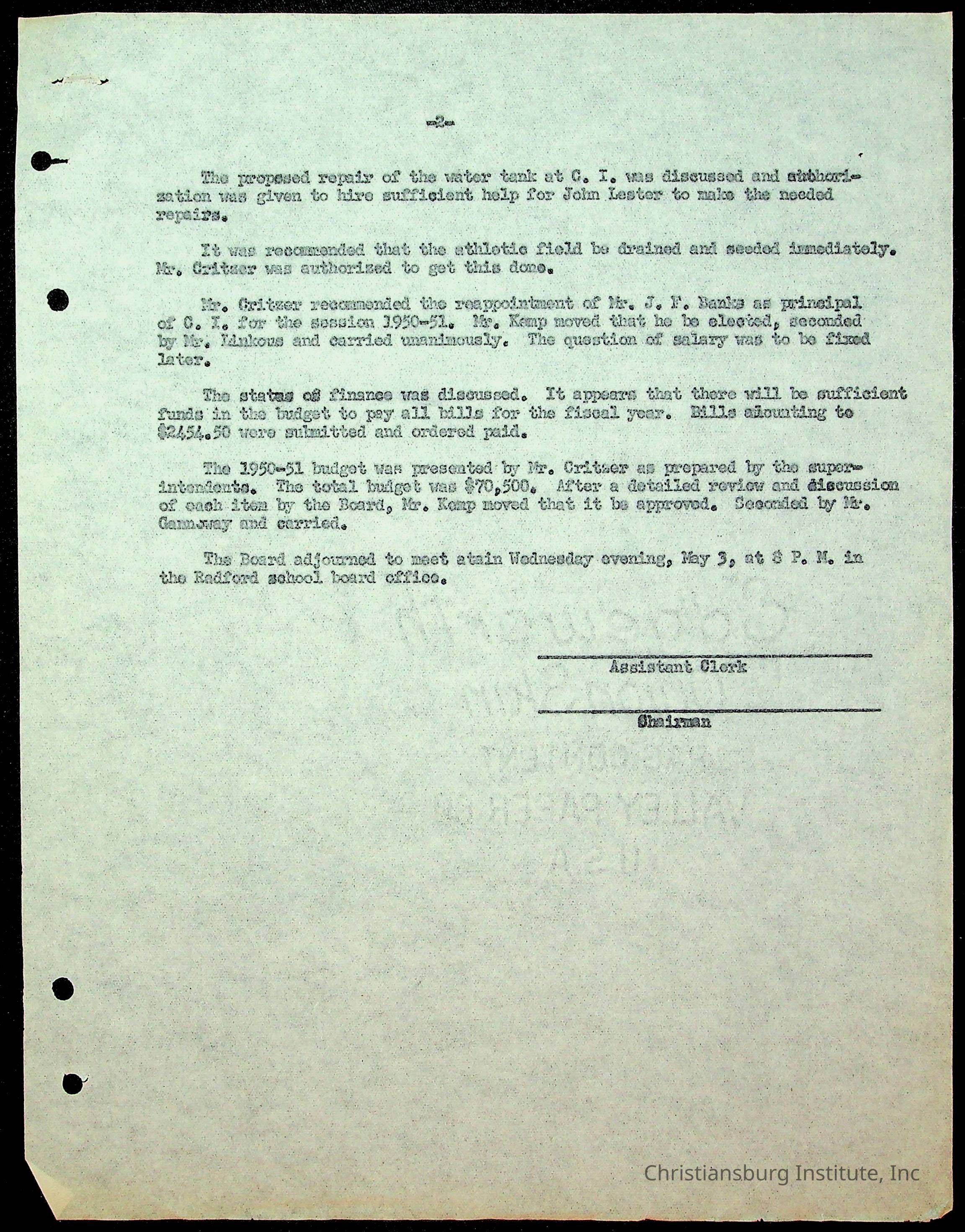 An archive of the Christiansburg Institute board meeting minutes from 1947-1951.