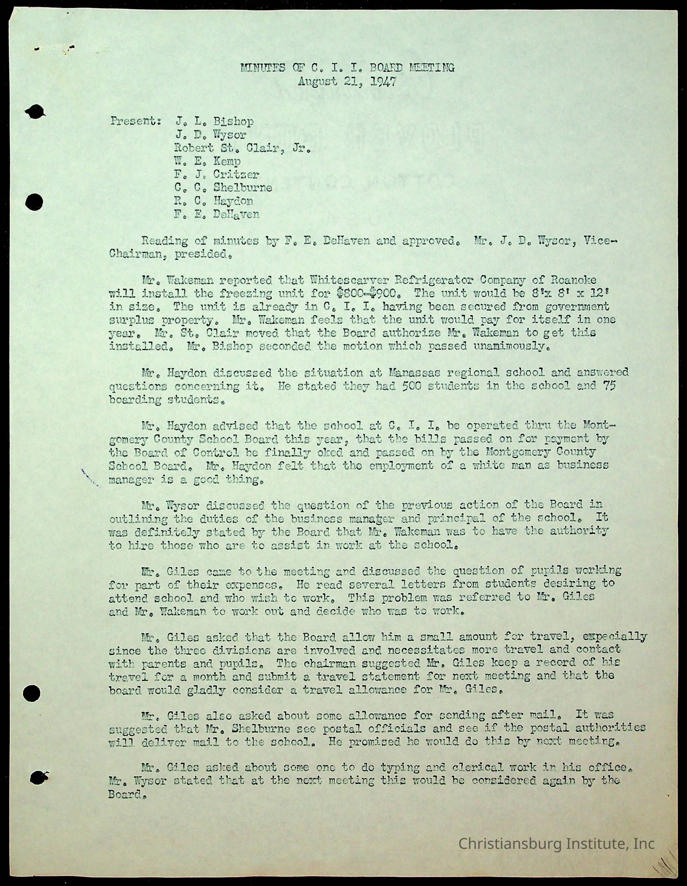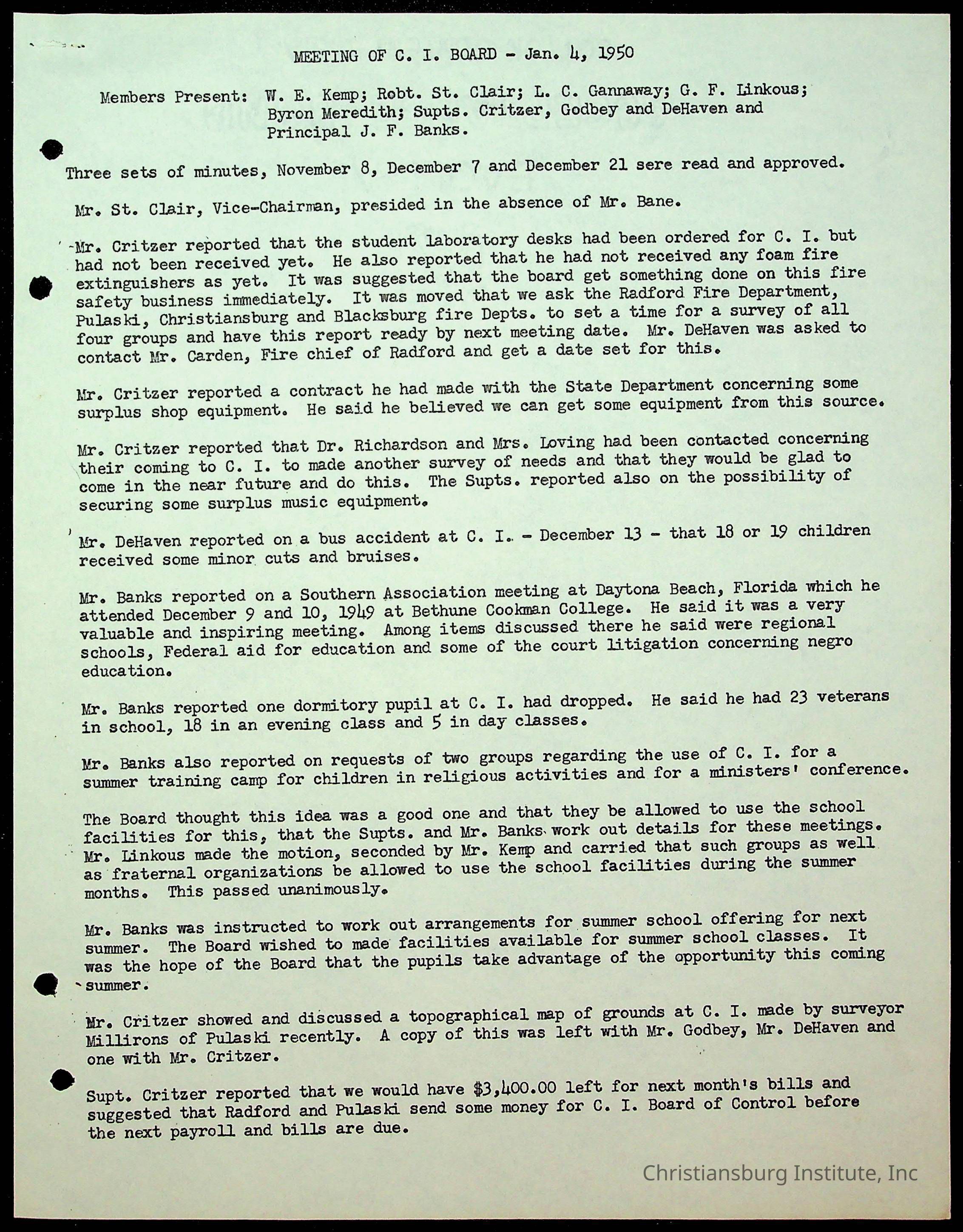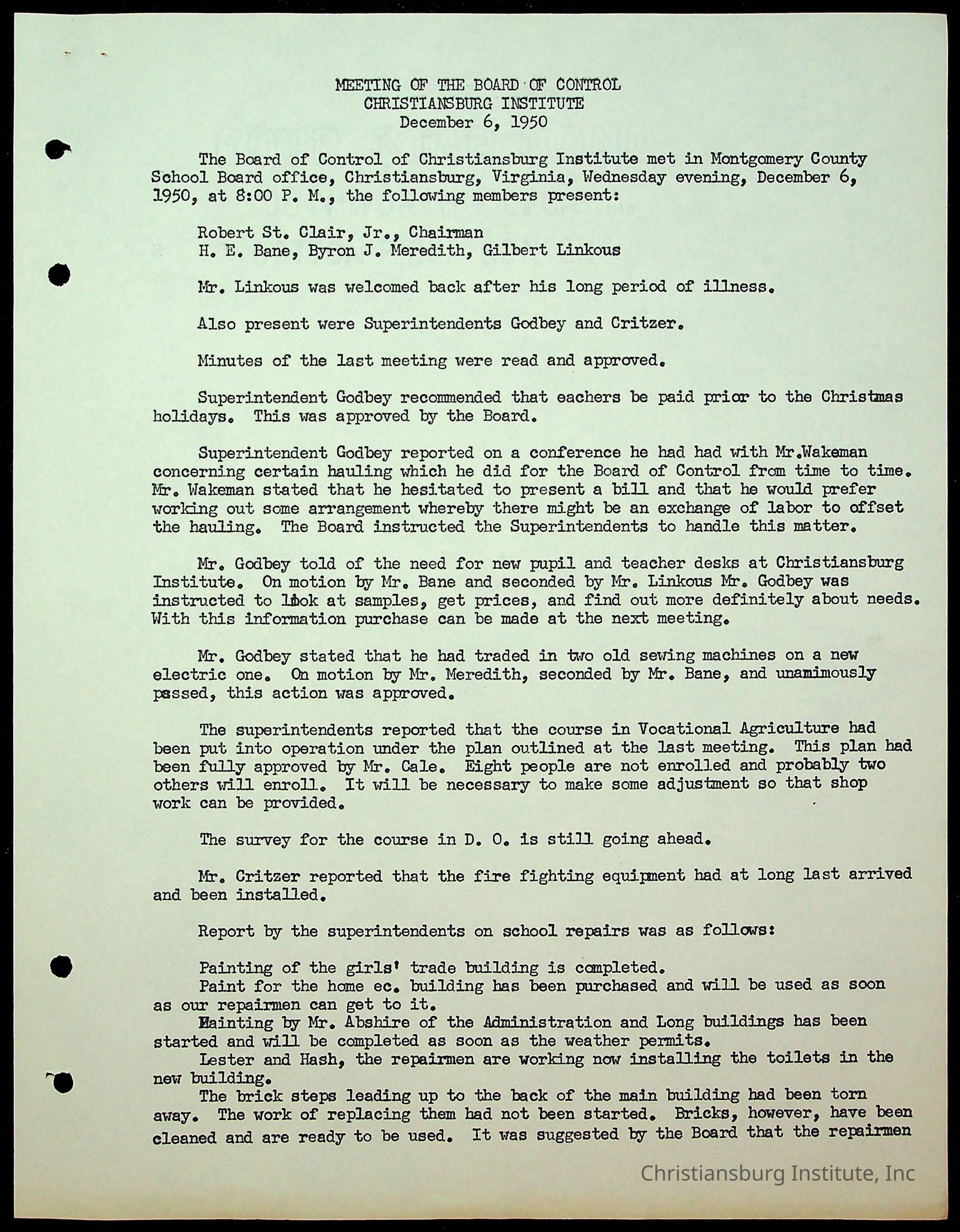 Christiansburg Institute Minutes, 1947-1951