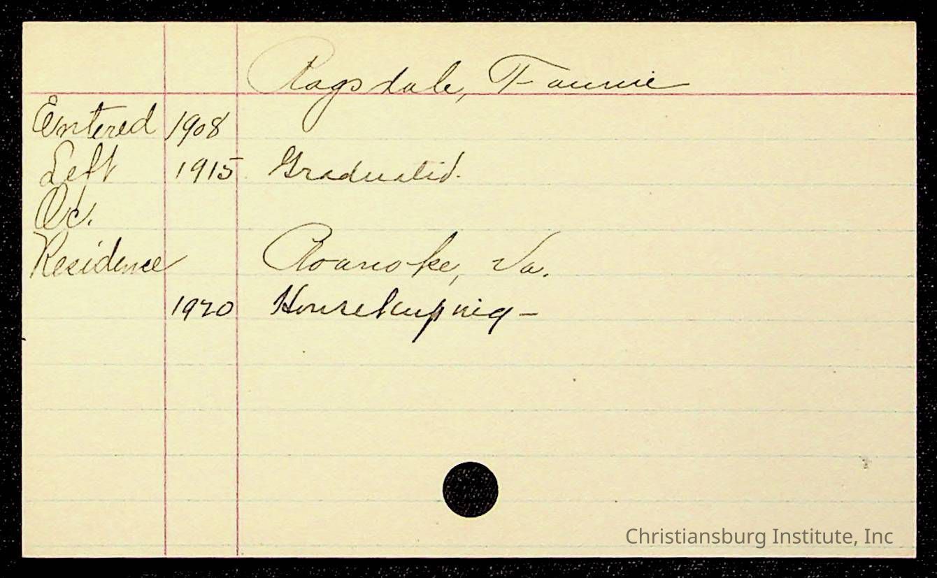 Copyright has been assigned to Christiansburg Institute Museum & Archives by Montgomery County Public Schools. For permission to publish materials created by the donor, contact CIMA@christiansburginstitute.com. Materials not created by Christiansburg Industrial Institute may still be under copyright.