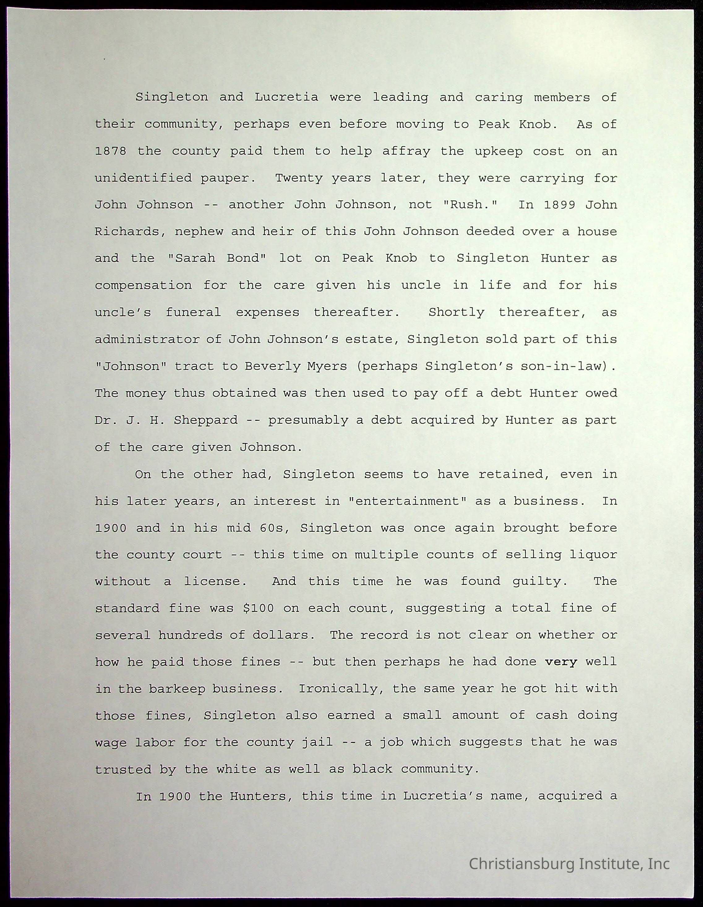 Farm Land, Boom Town, Village: A History of Belspring, Virginia, 1750-1940, The Reports of Charles S. Schaeffer from the Virginia counties of Montgomery and Pulaski, with additional information on the counties of Floyd, Giles, Craig, Wythe, and Roanoke., Ingles Ferry Ledgers (1840s-1880s), These people lived in a pleasant valley, Making their mark: Black Families of New River Depot, 1870-1940., Whartons’ Town New River Depot, 1870-1940., Radford’s Early Black Residents, 1880-1925