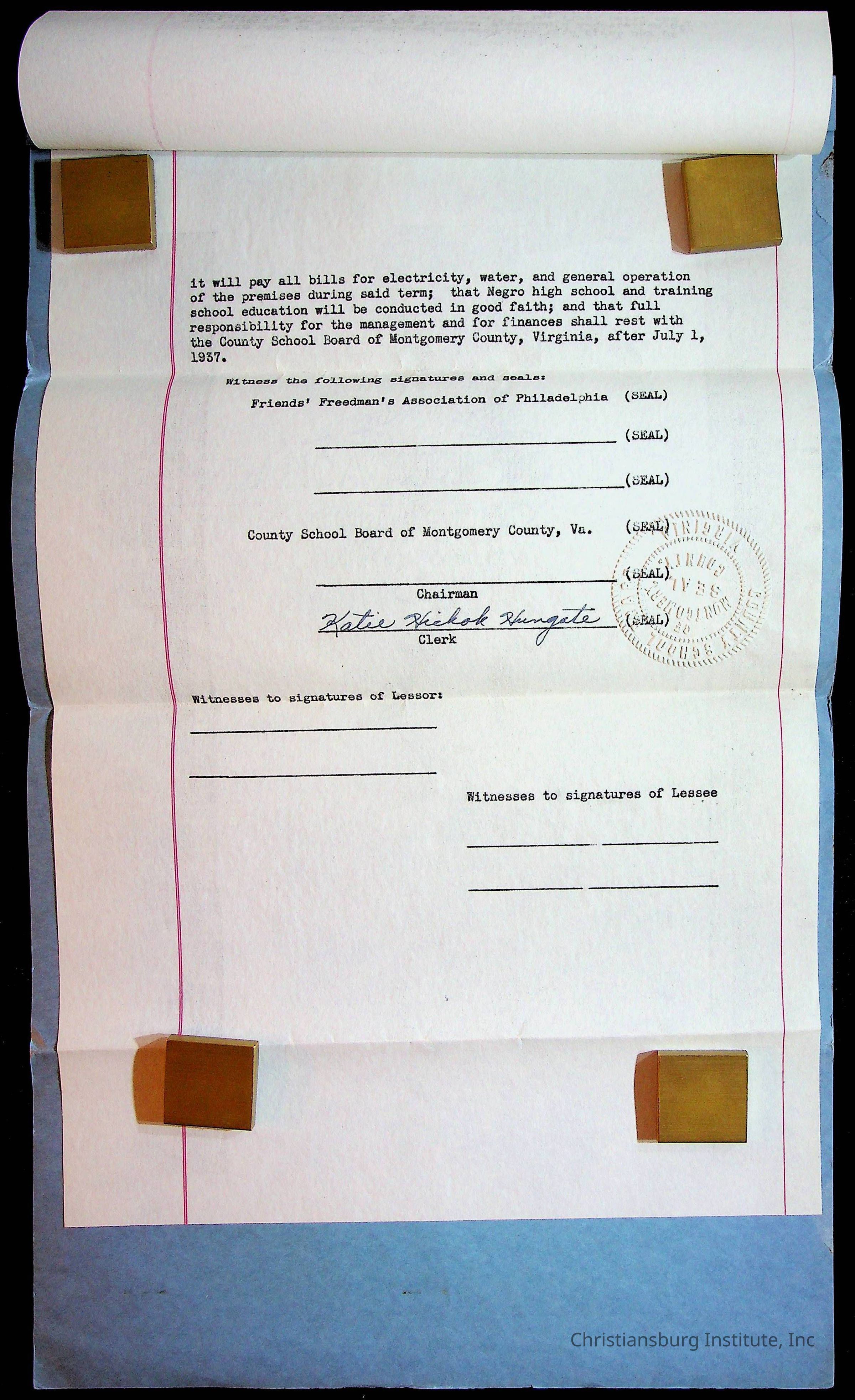 An archive of materials relating to the deed of lease for Christiansburg Industrial Institute from the Friends' Freedmen's Association to the Montgomery County School Board, dated 1946.