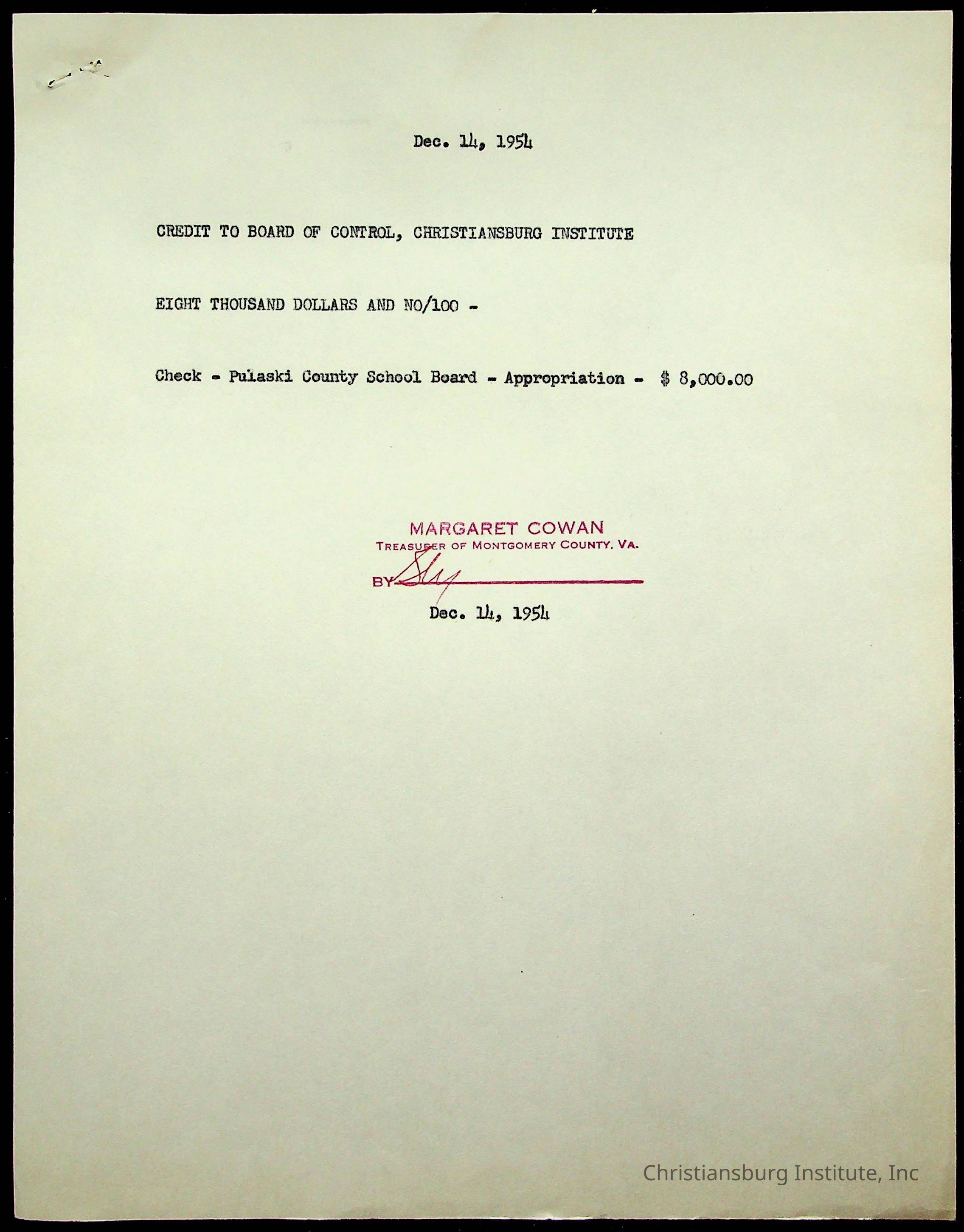 Copyright has been assigned to Christiansburg Institute Museum & Archives by Montgomery County Public Schools. For permission to publish materials created by the donor, contact CIMA@christiansburginstitute.com. Materials not created by Christiansburg Industrial Institute may still be under copyright.