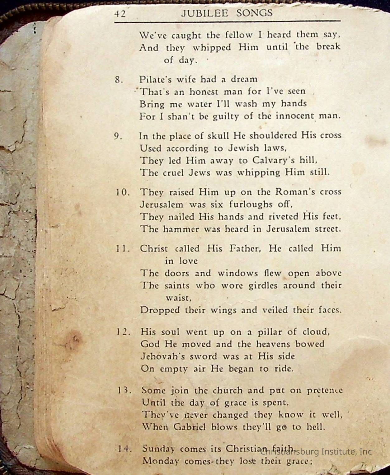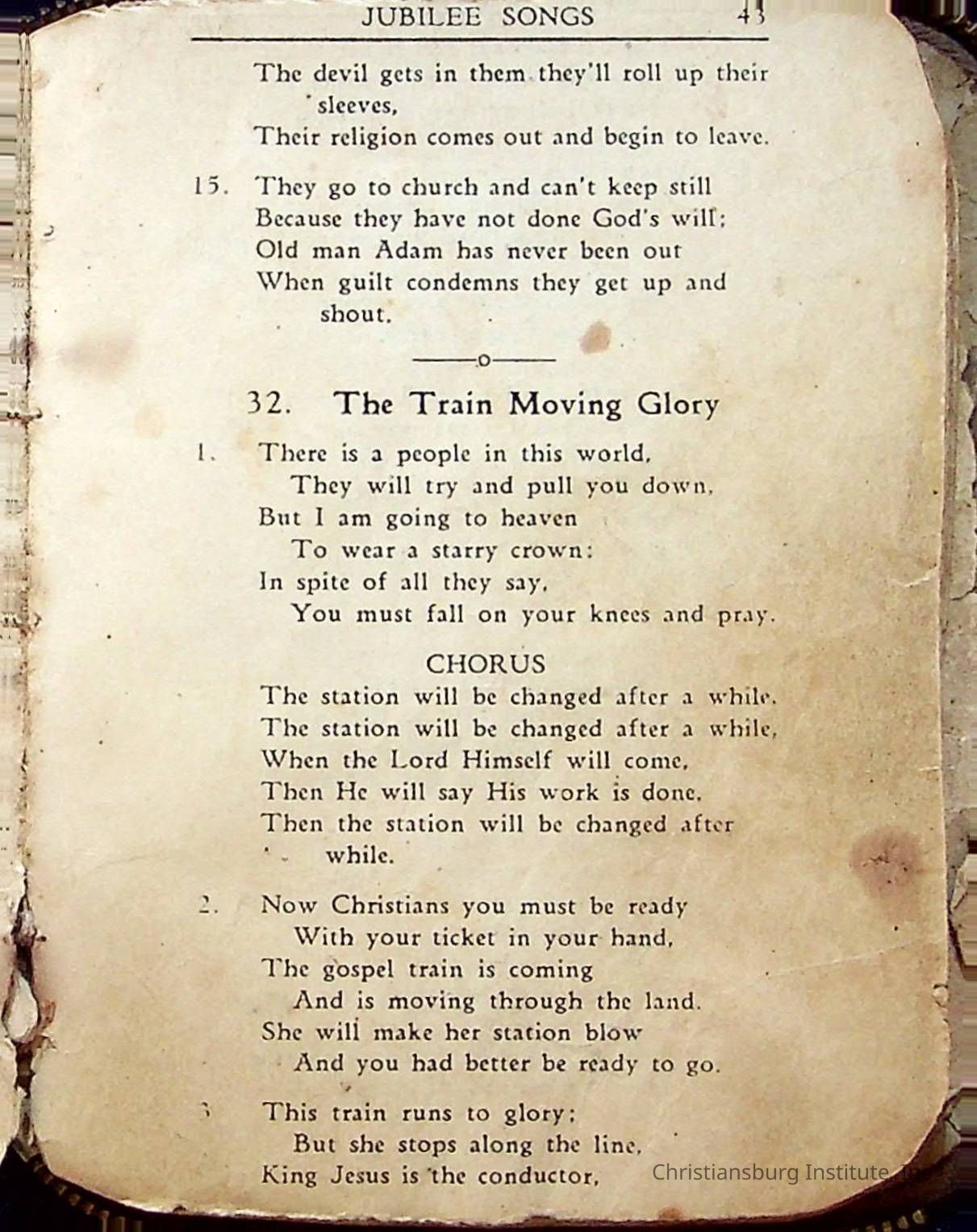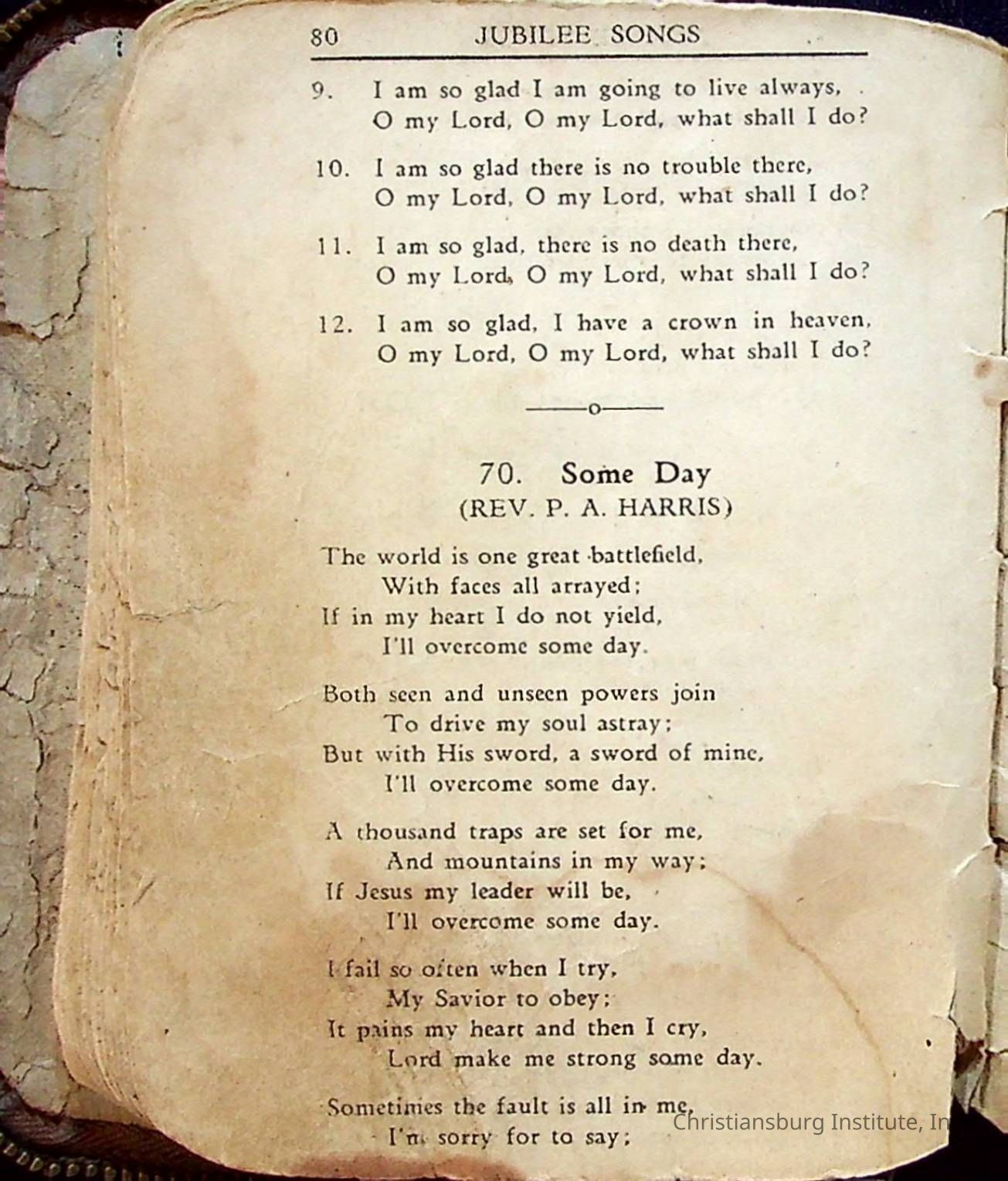 "Jubilee Songs" booklet this booklet contains 82 songs. There are some pages that are missing.Collection