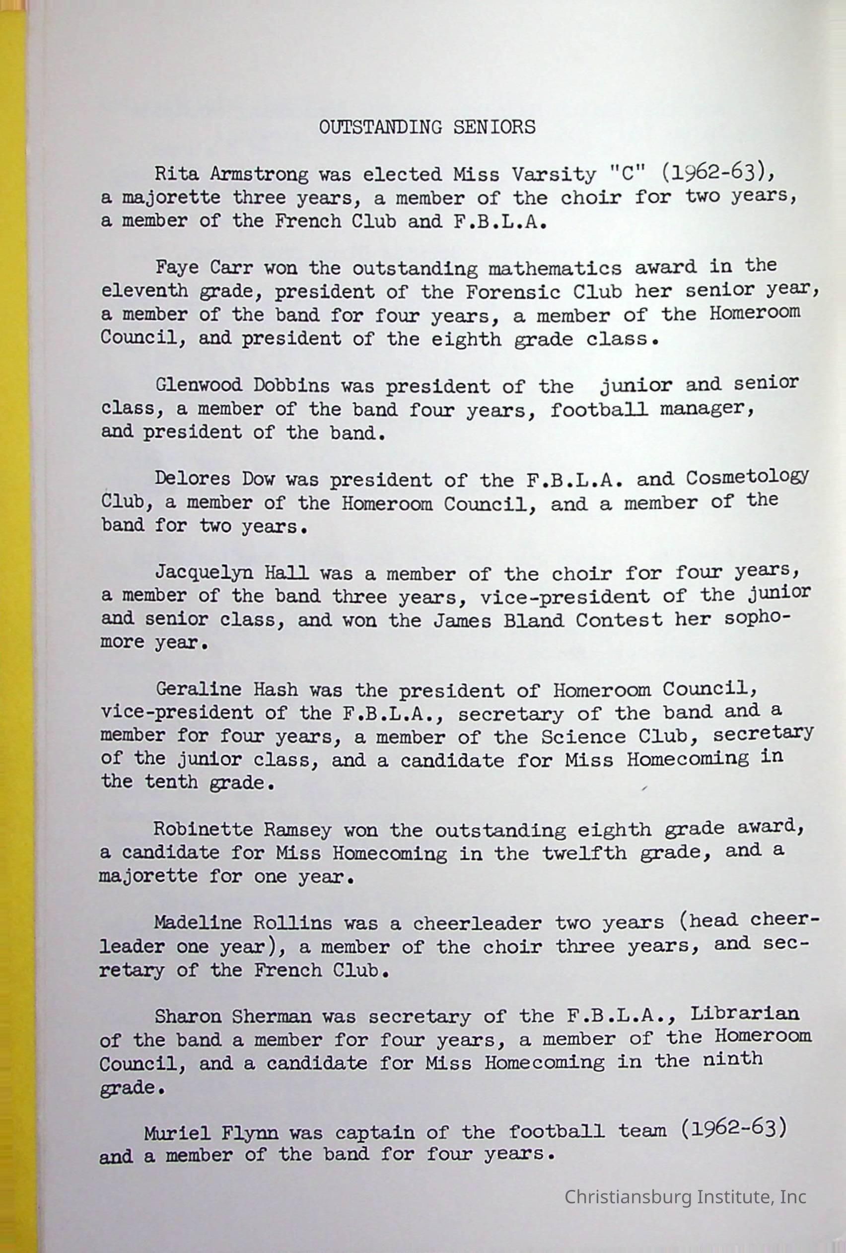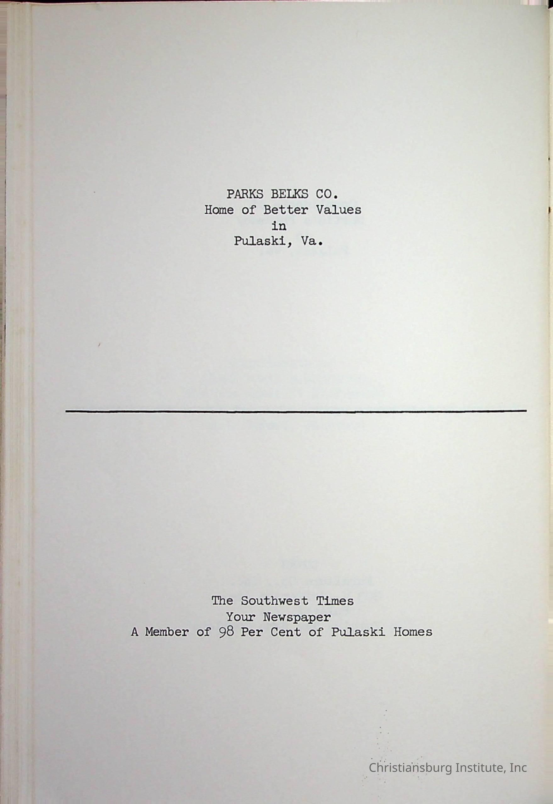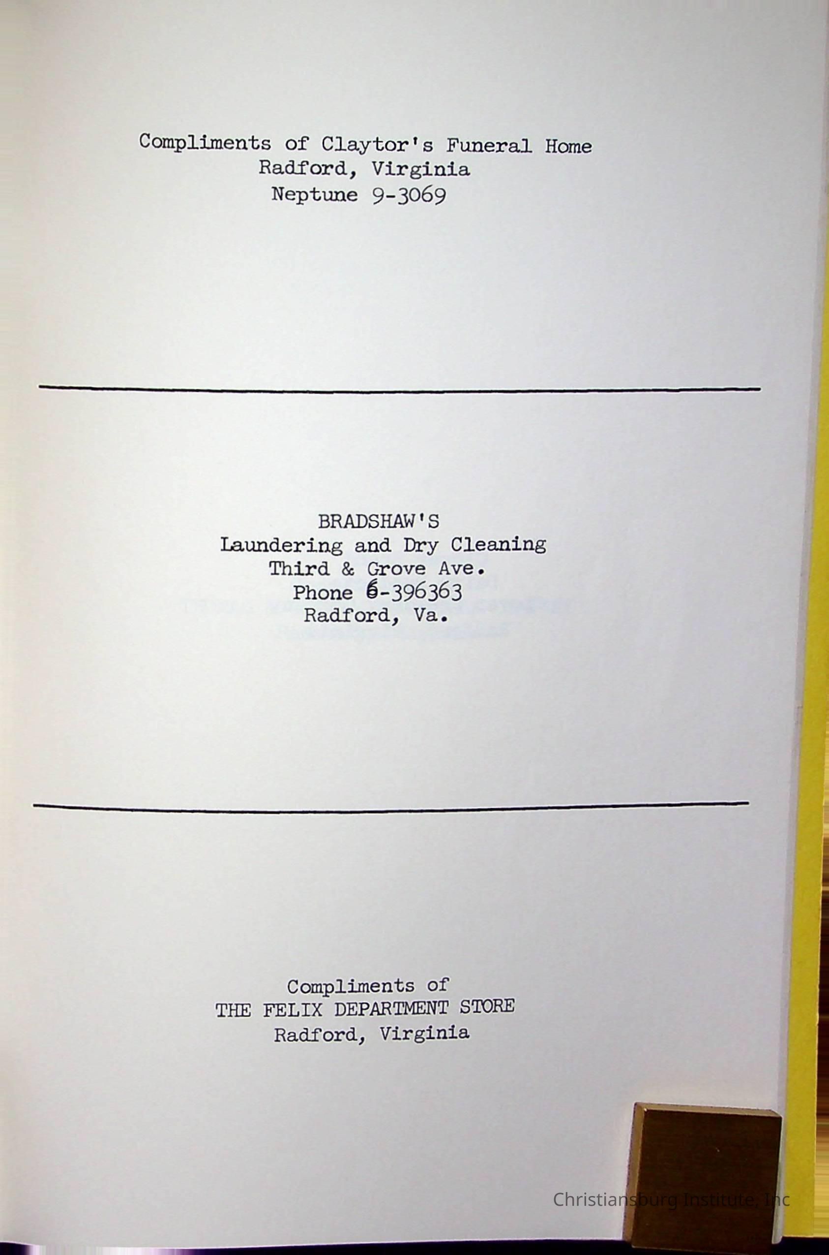 Christiansburg InstitutePlace Printed