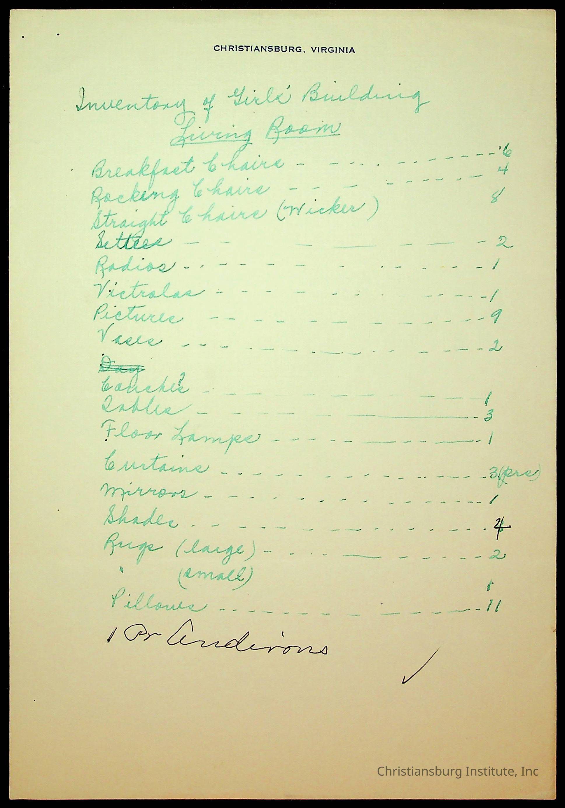 An archive of handwritten notes documenting inventories at Christiansburg Industrial Institute, undated.