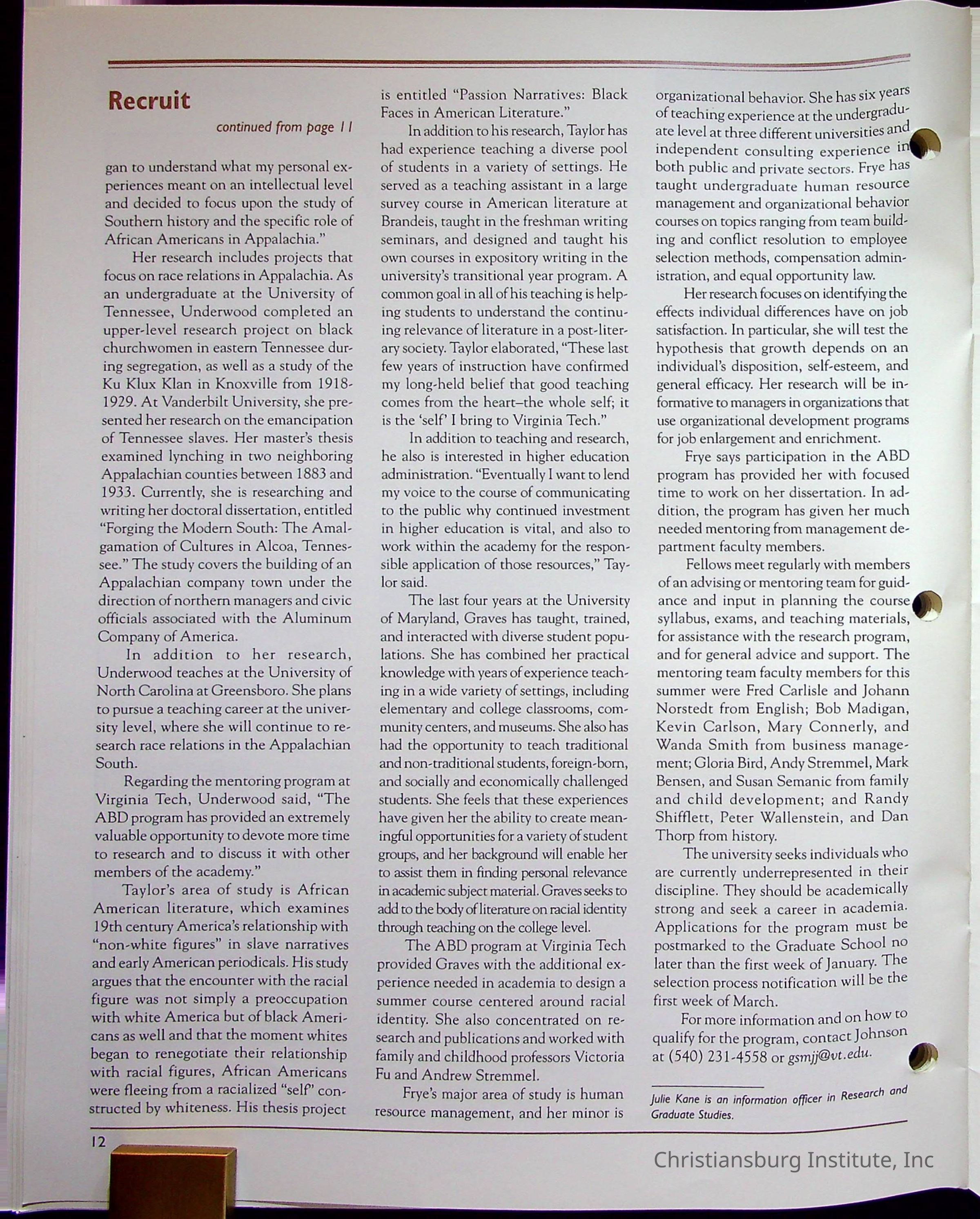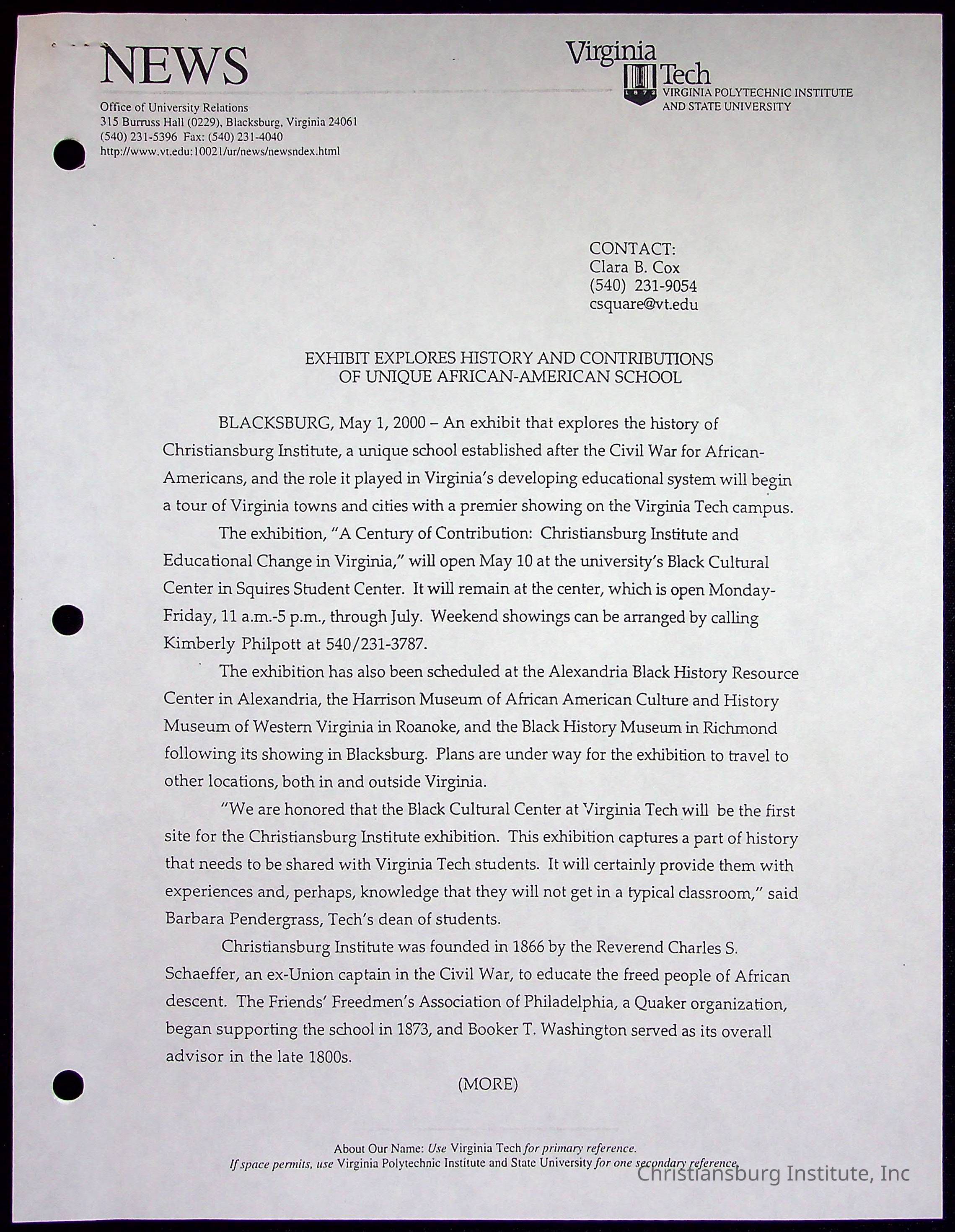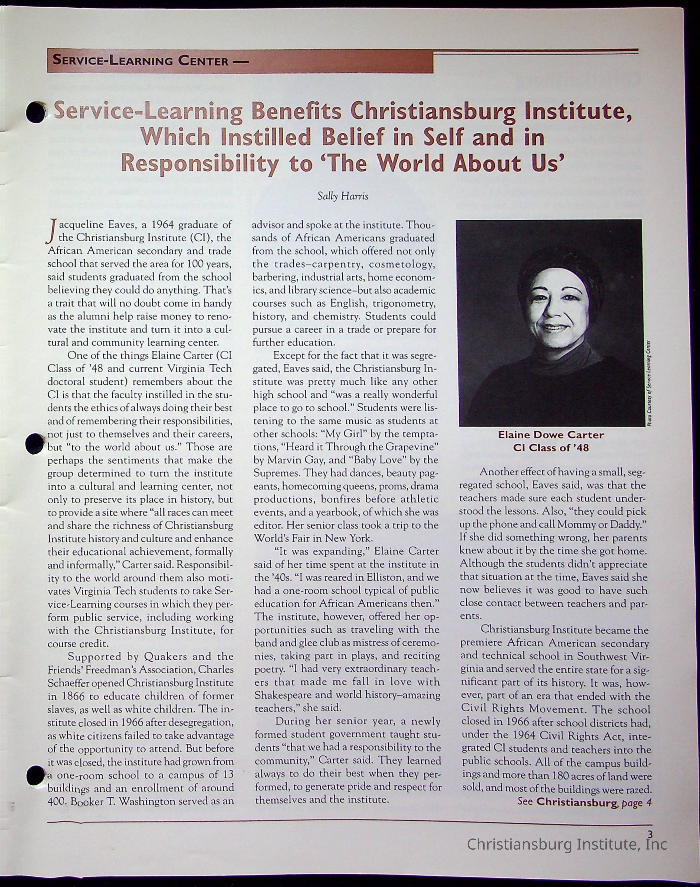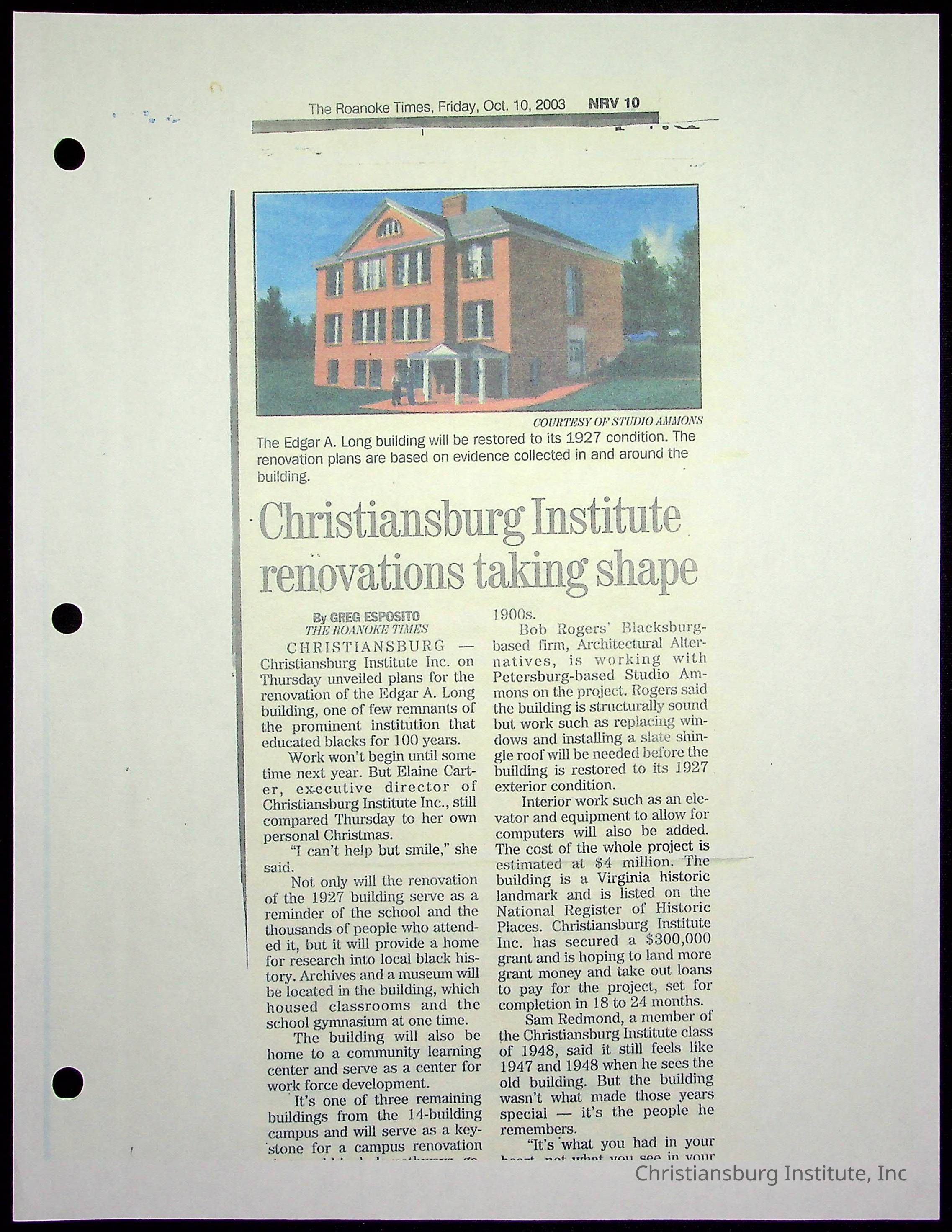 A collection of press materials and publications that feature Christiansburg Institute Inc, dates range from the year 1992 to 2004.Creator