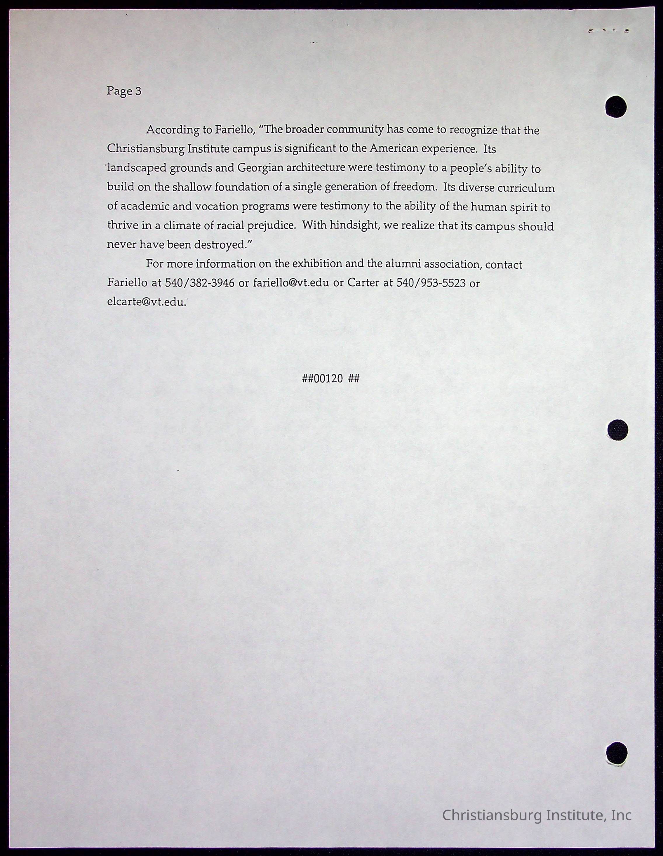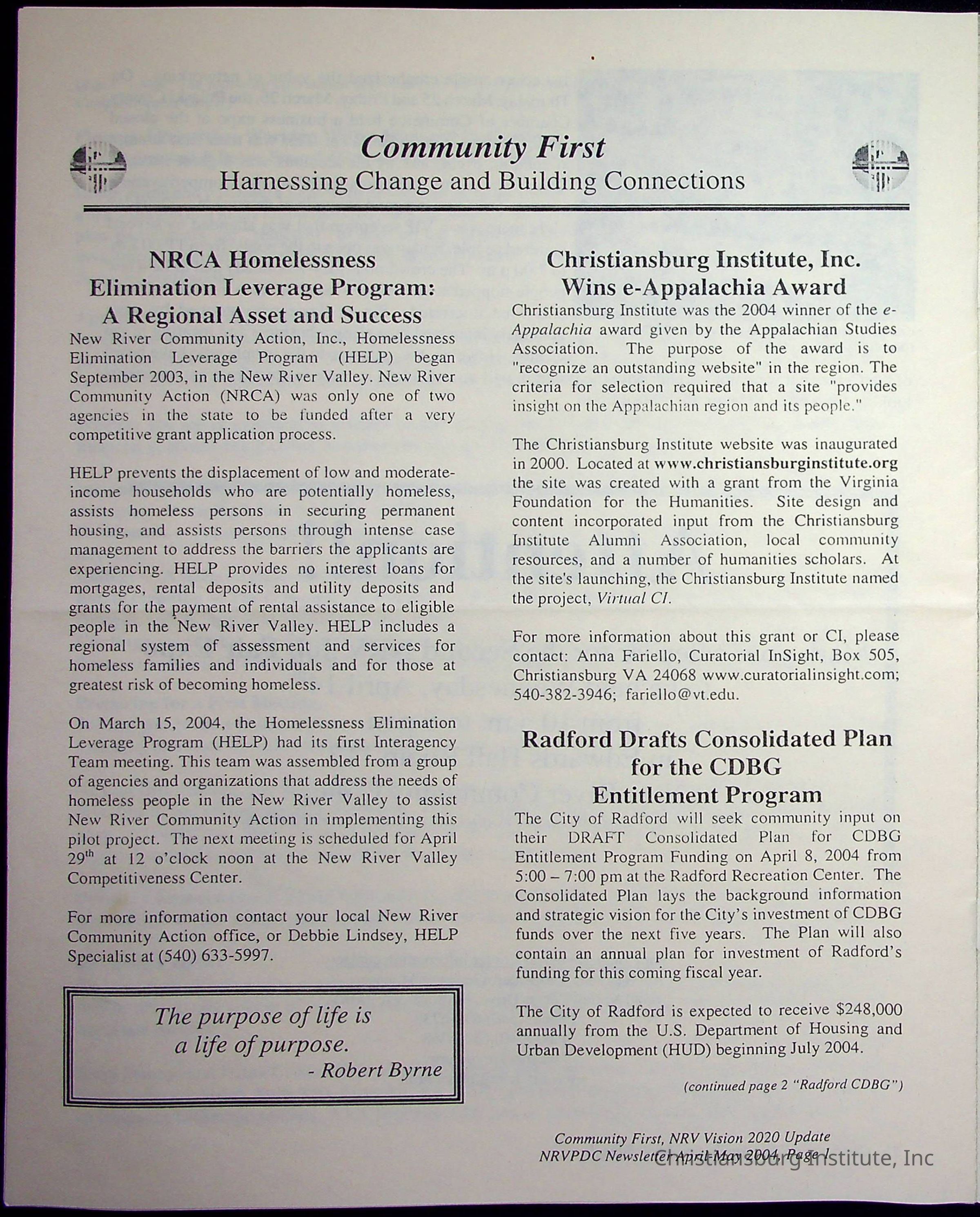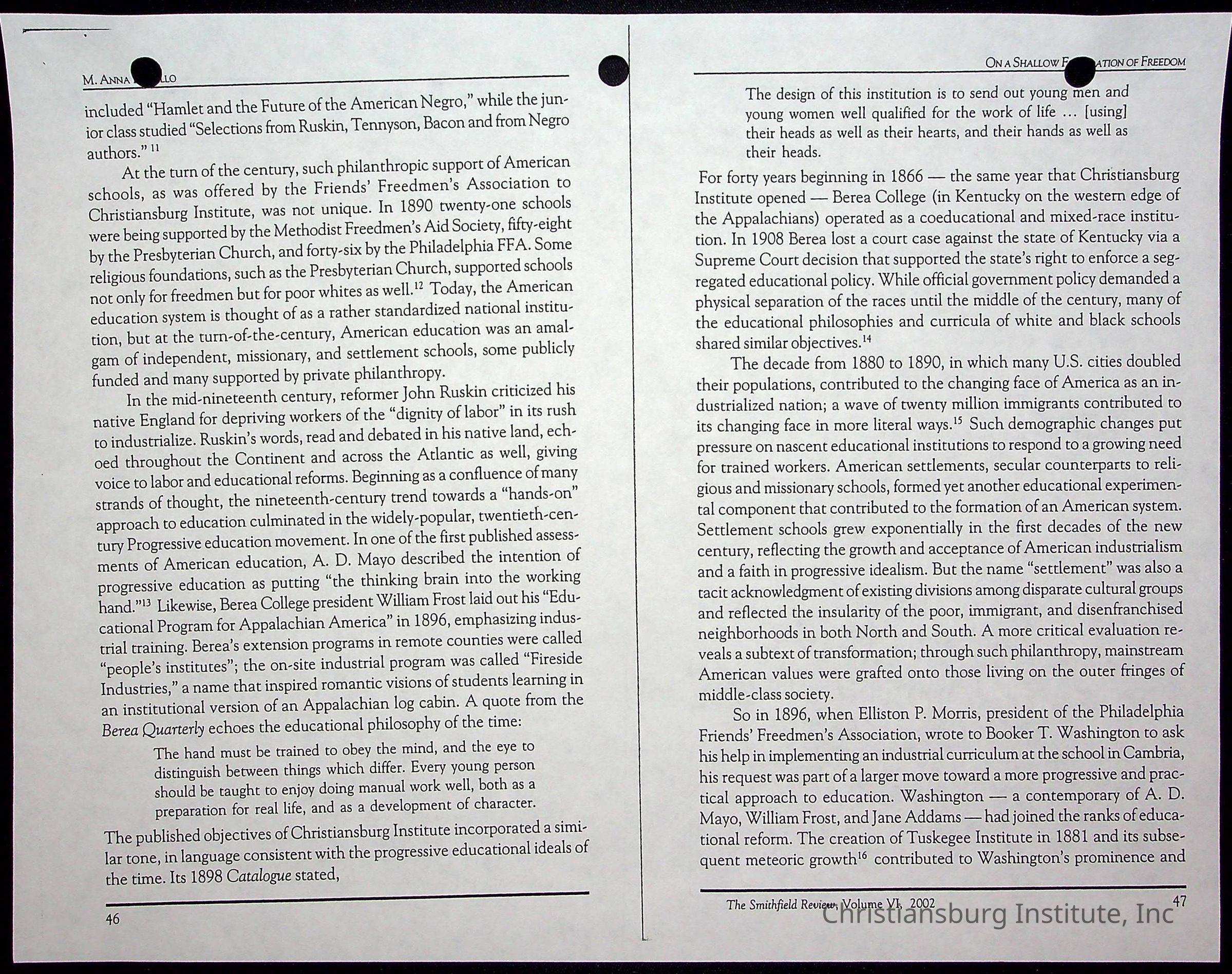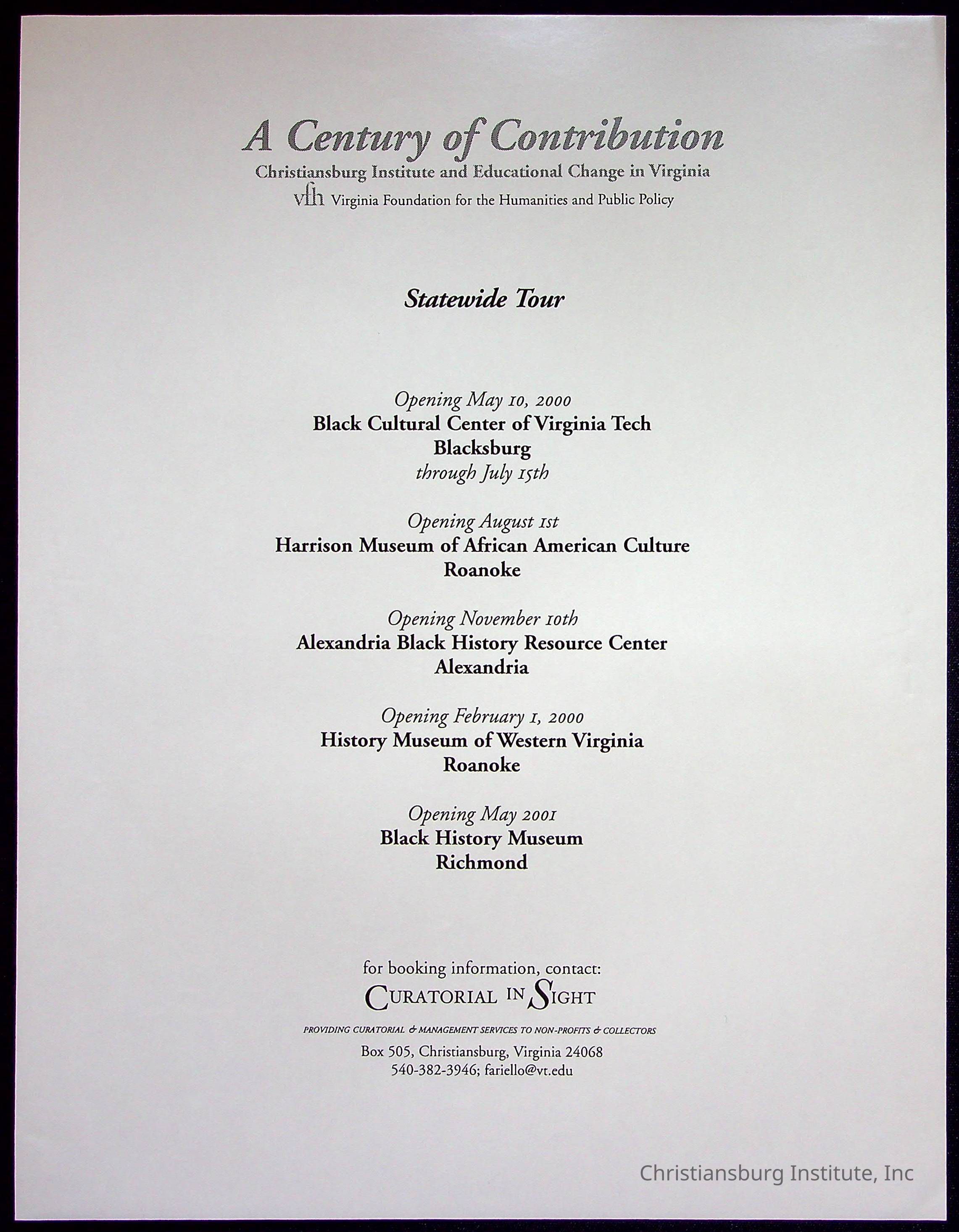 A collection of press materials and publications that feature Christiansburg Institute Inc, dates range from the year 1992 to 2004.Creator