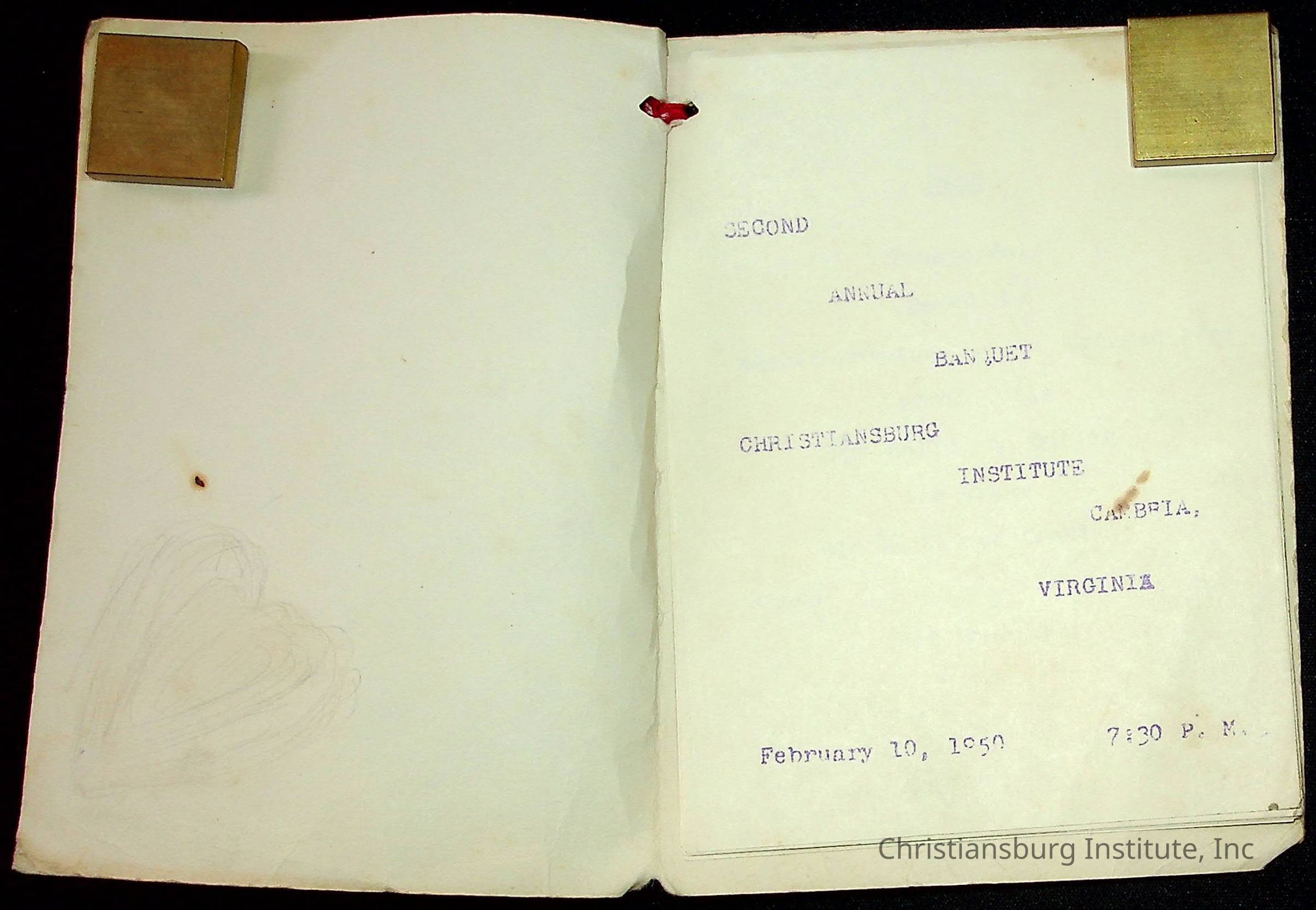 A second copy of an event program for the Second Annual Banquet at Christiansburg Institute on February 10th, 1950.Creator