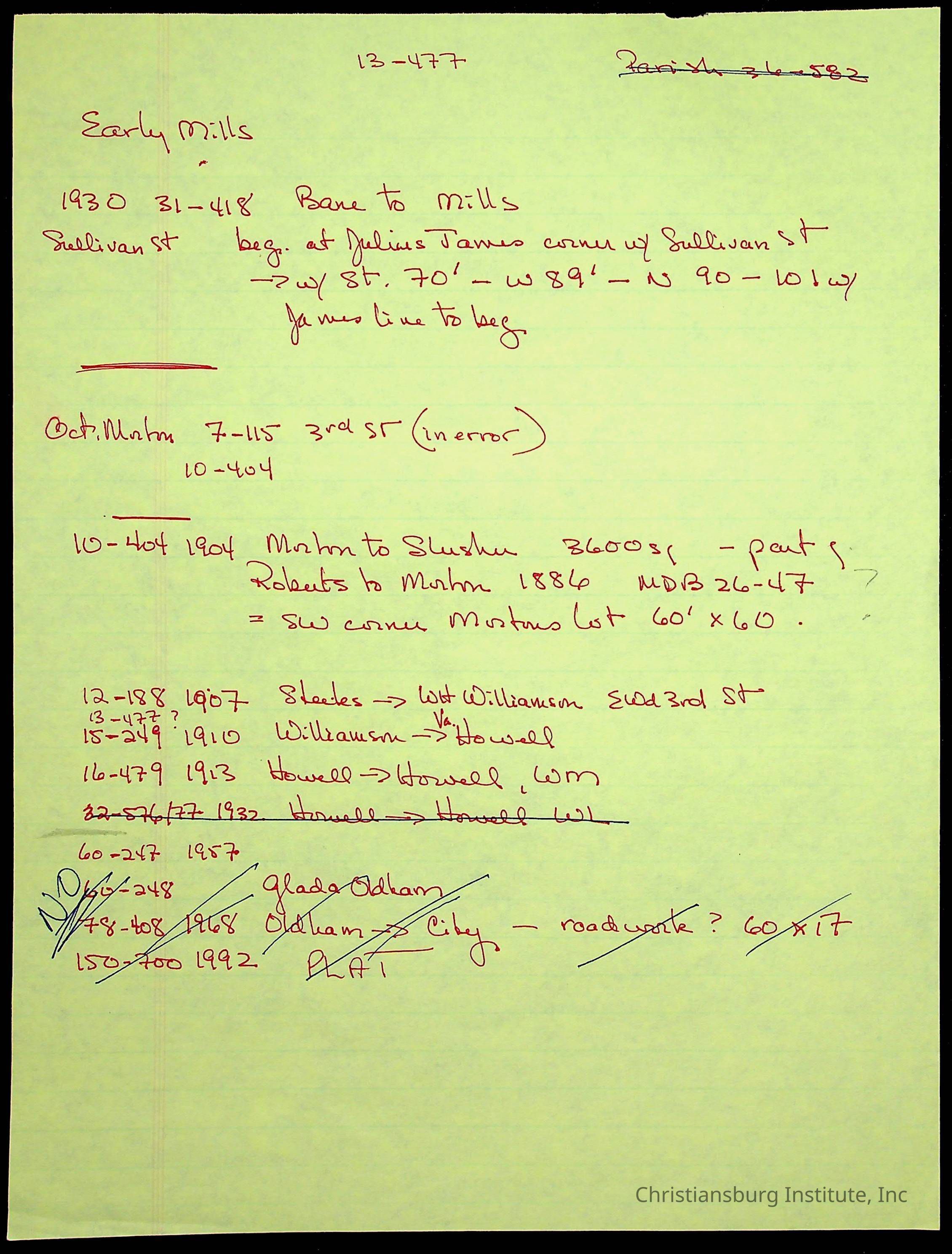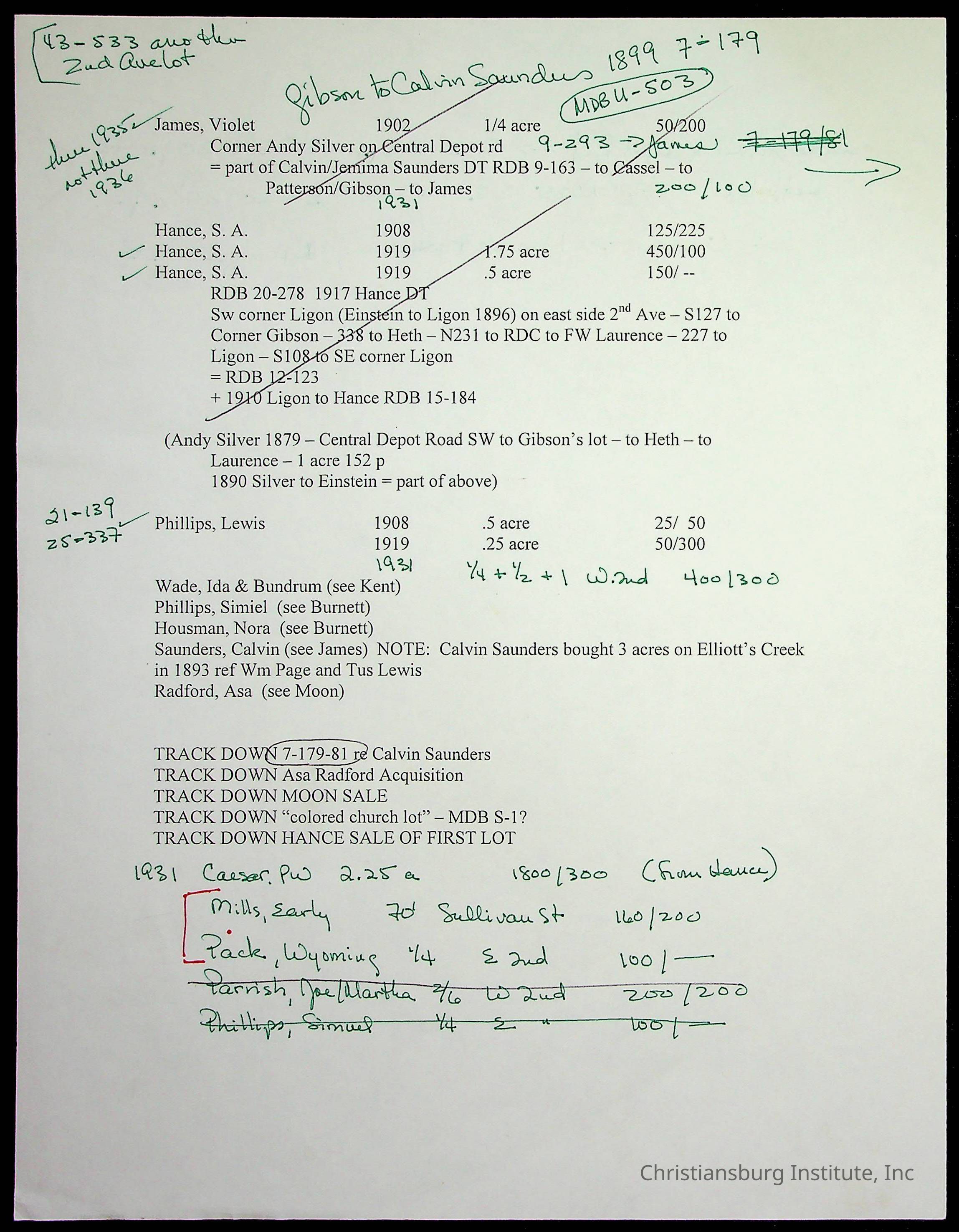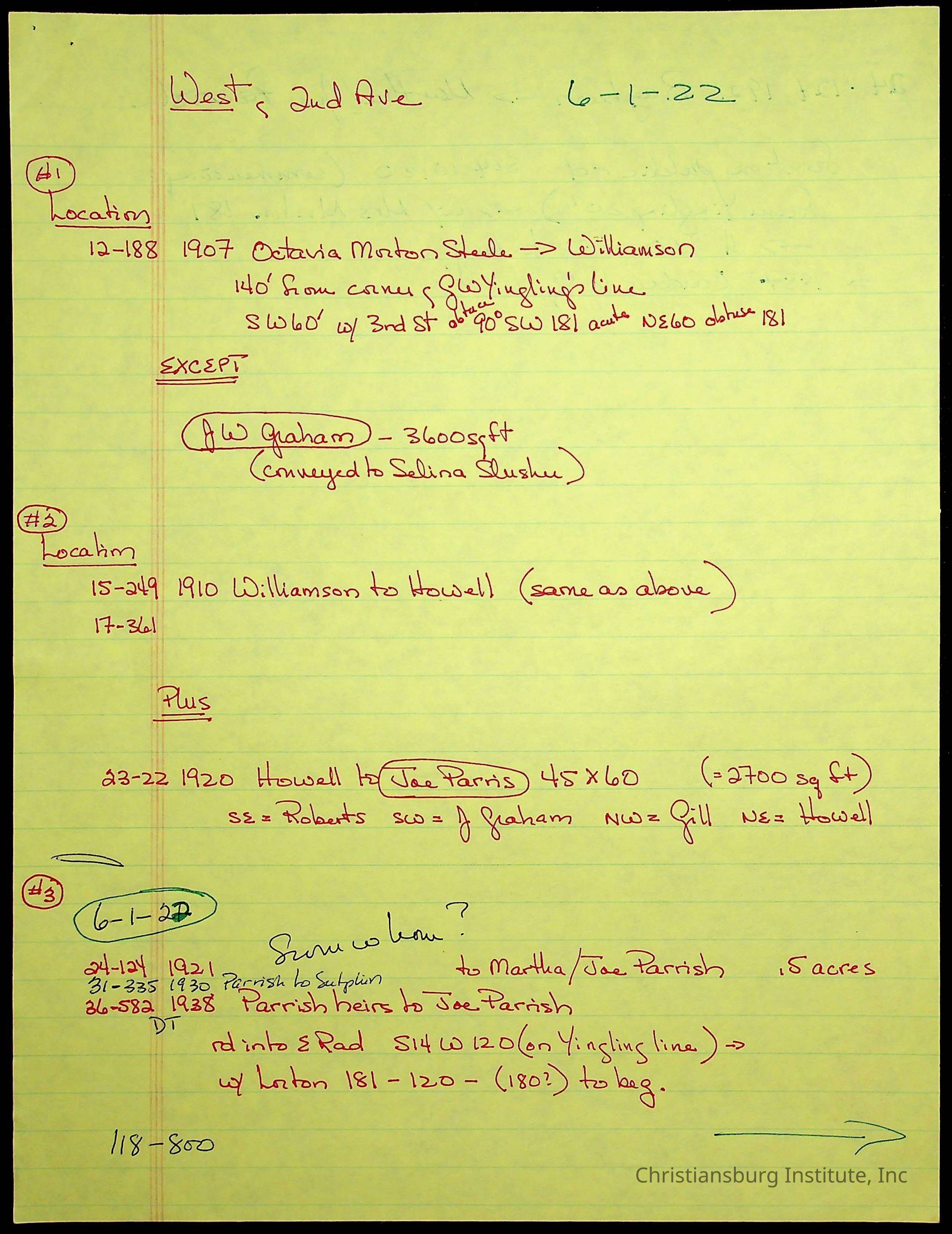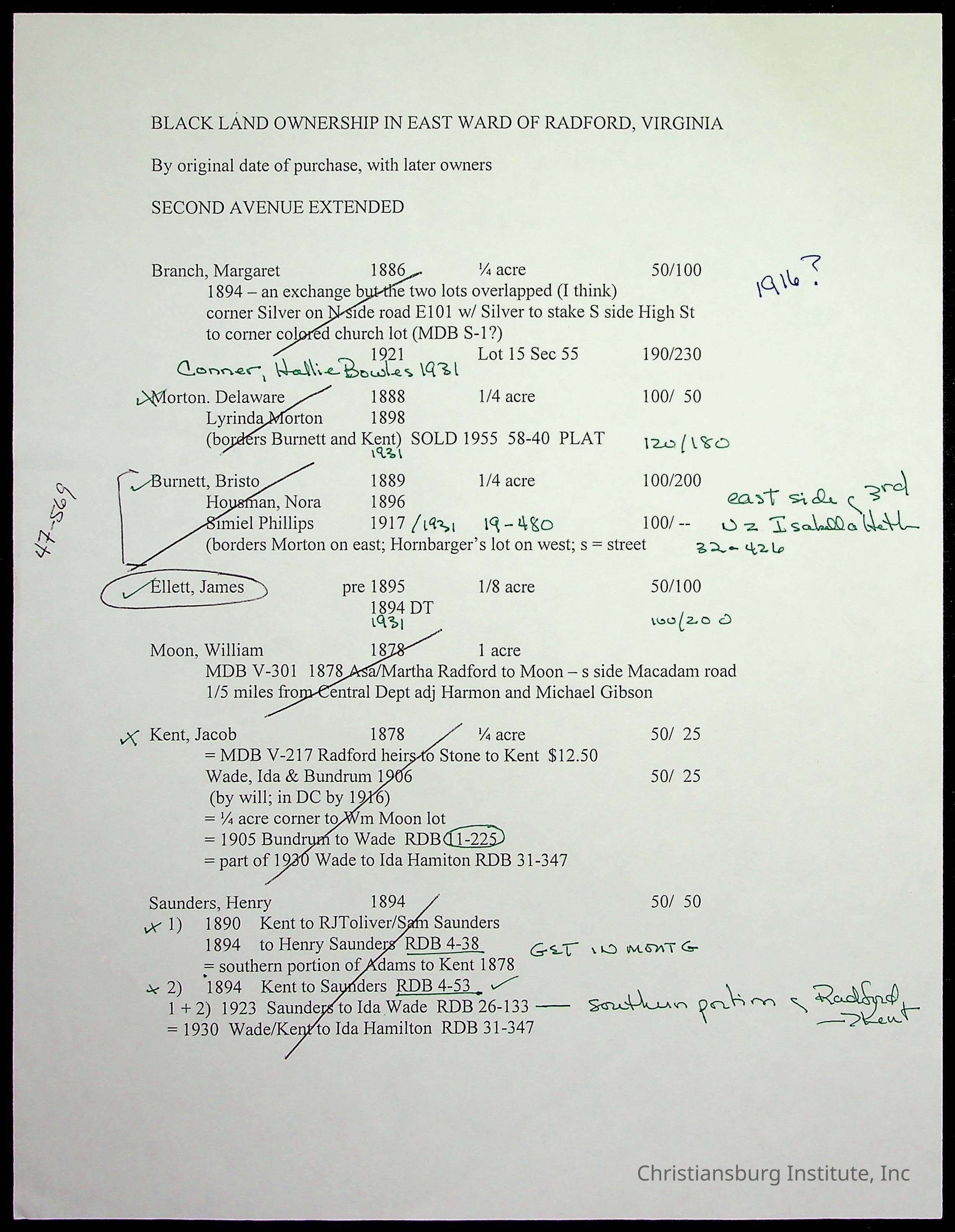 A folder of research materials collected by Radford University professor, Dr. Linda Killen. This folder is titled '2nd Avenue' and includes various research conducted in Radford, Virginia. This folder includes genealogy records, Dr Killen's notes, and plat maps.