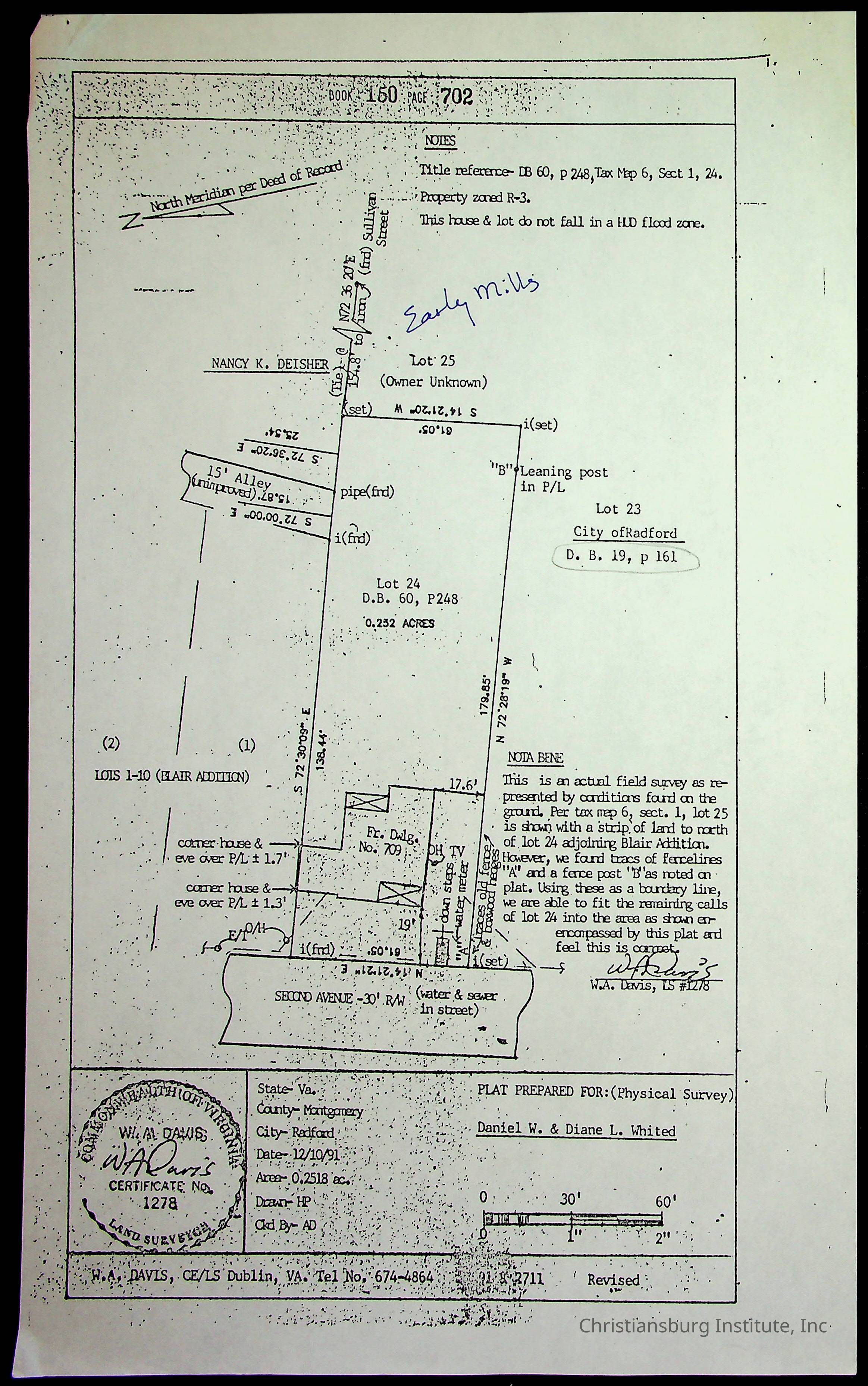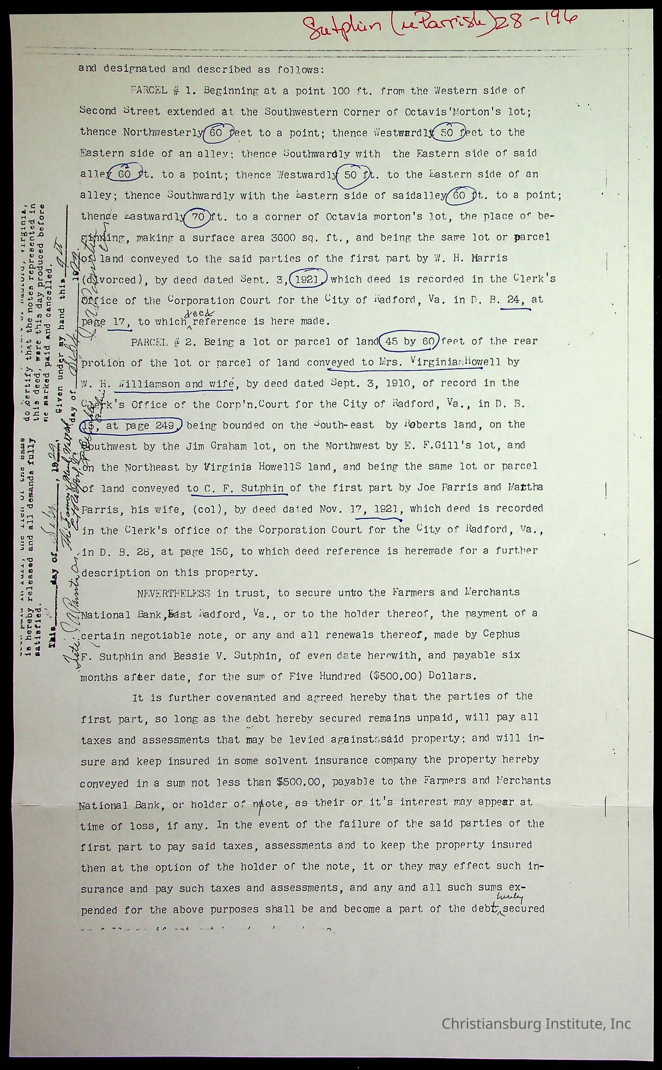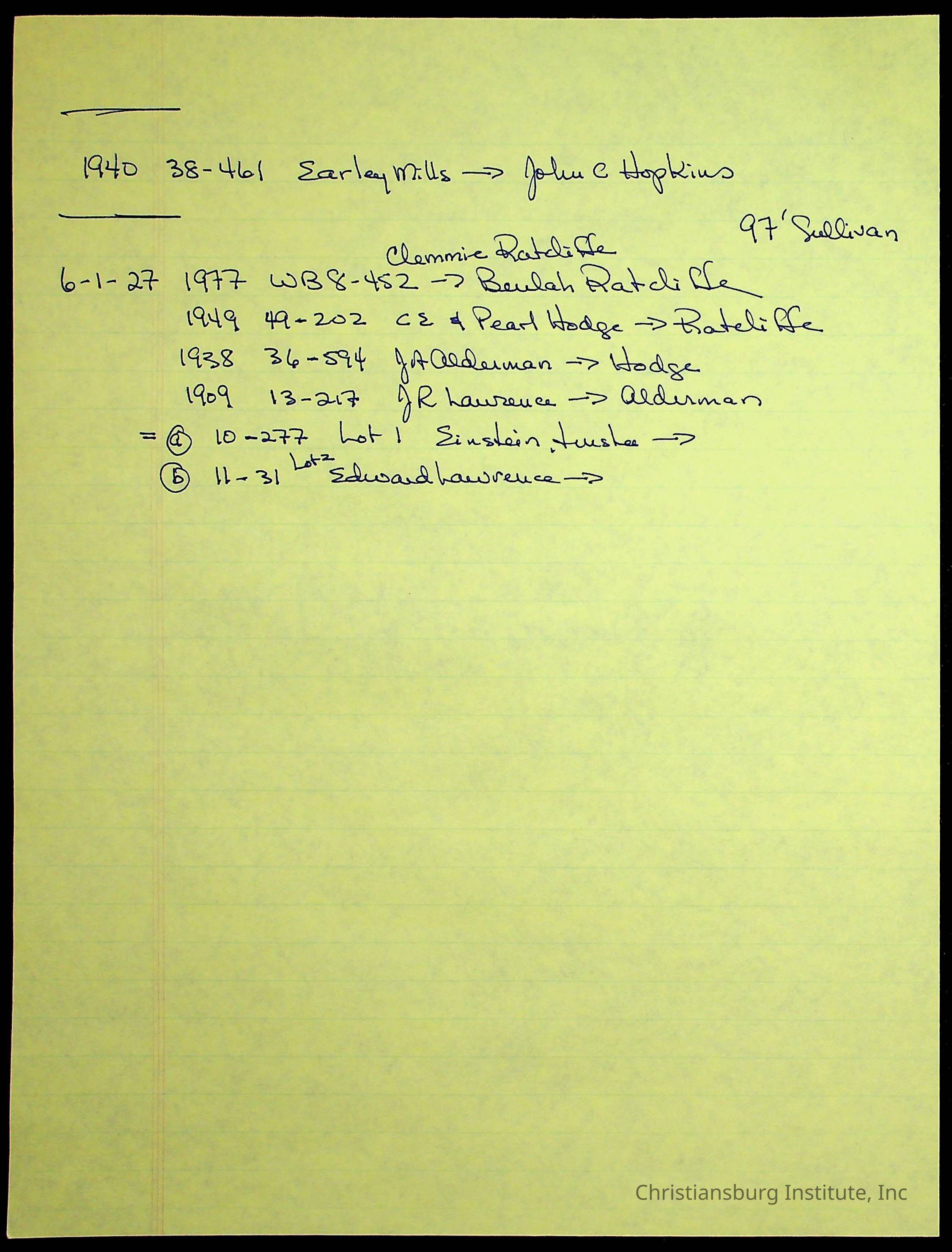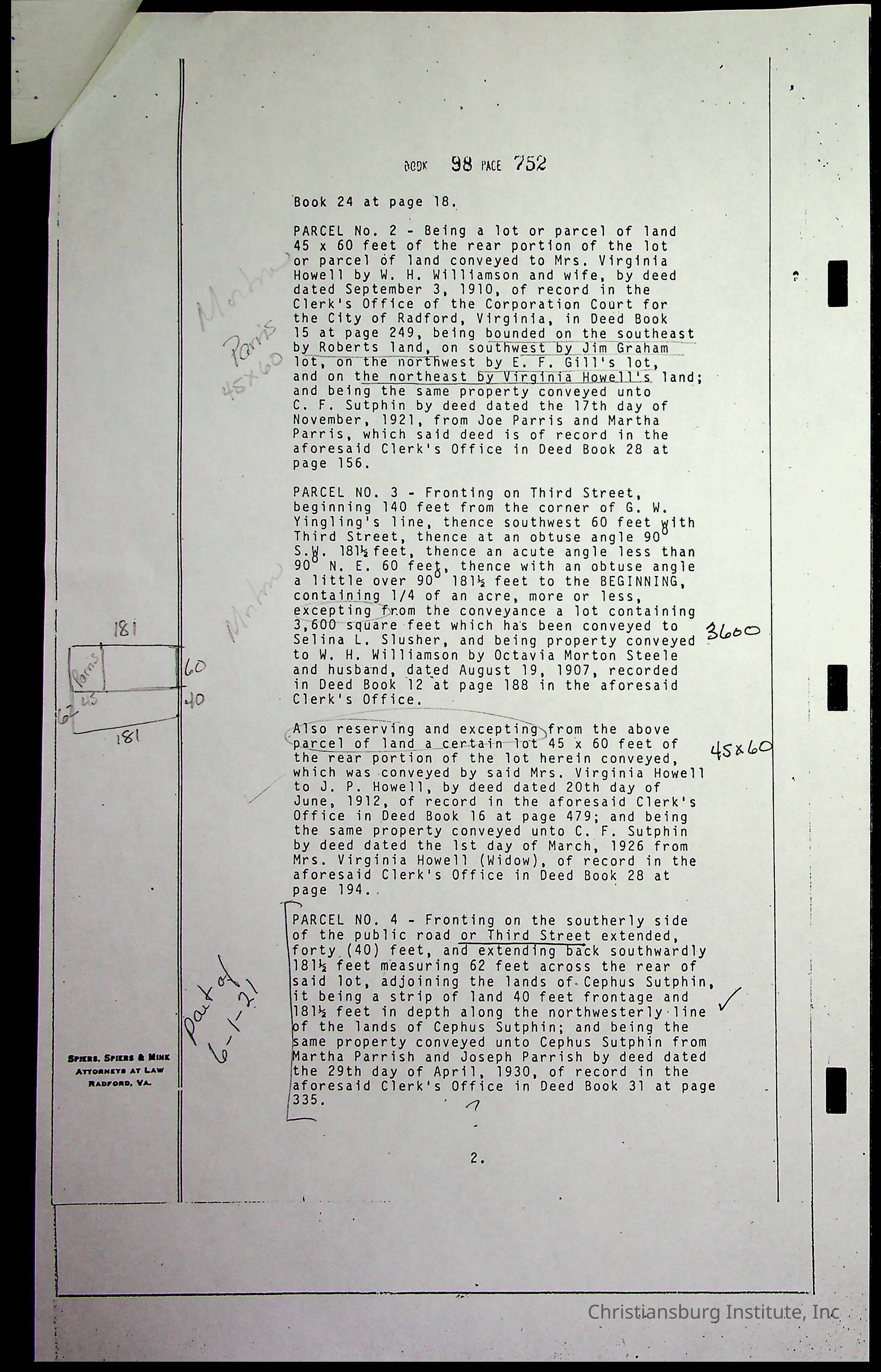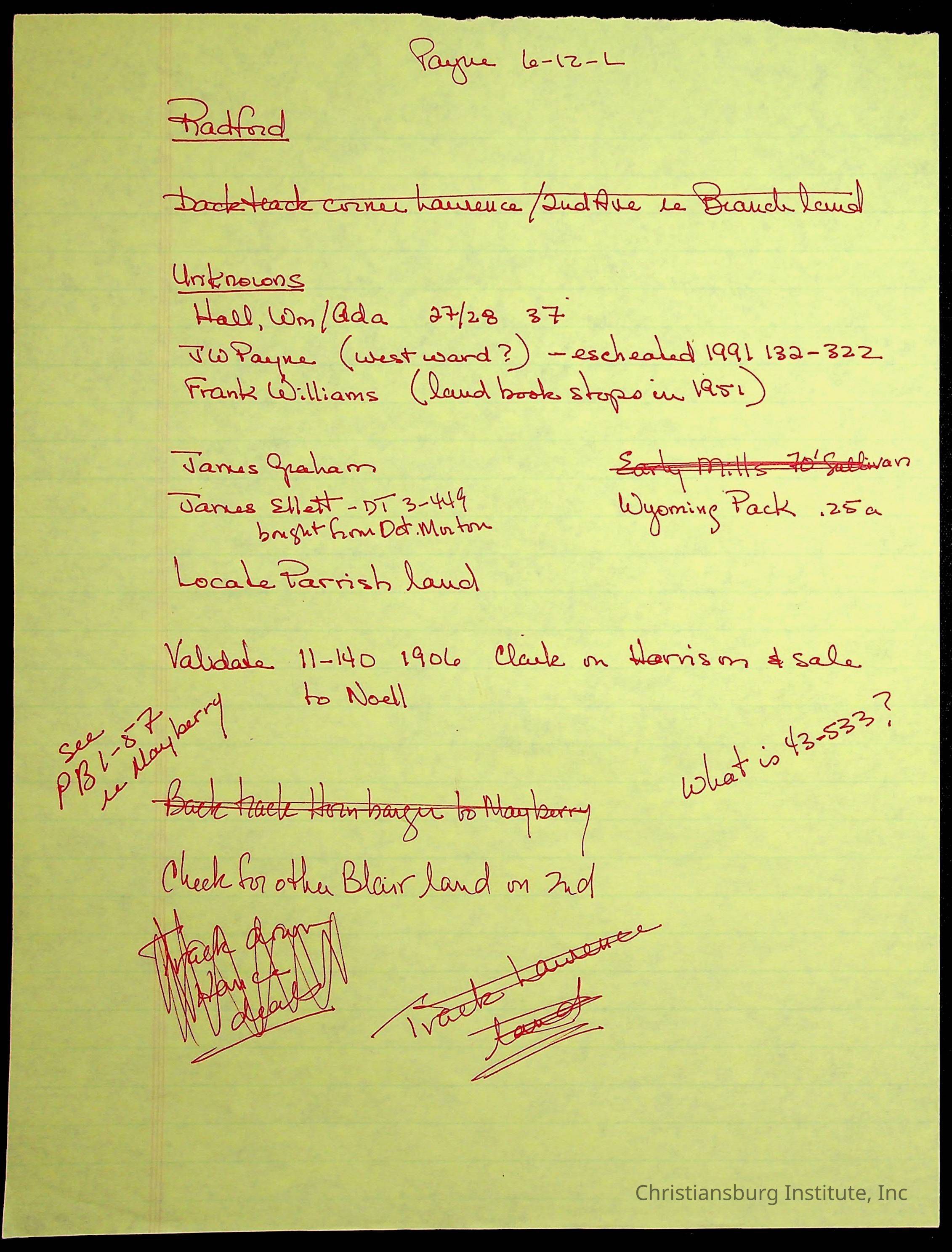 A folder of research materials collected by Radford University professor, Dr. Linda Killen. This folder is titled '2nd Avenue' and includes various research conducted in Radford, Virginia. This folder includes genealogy records, Dr Killen's notes, and plat maps.