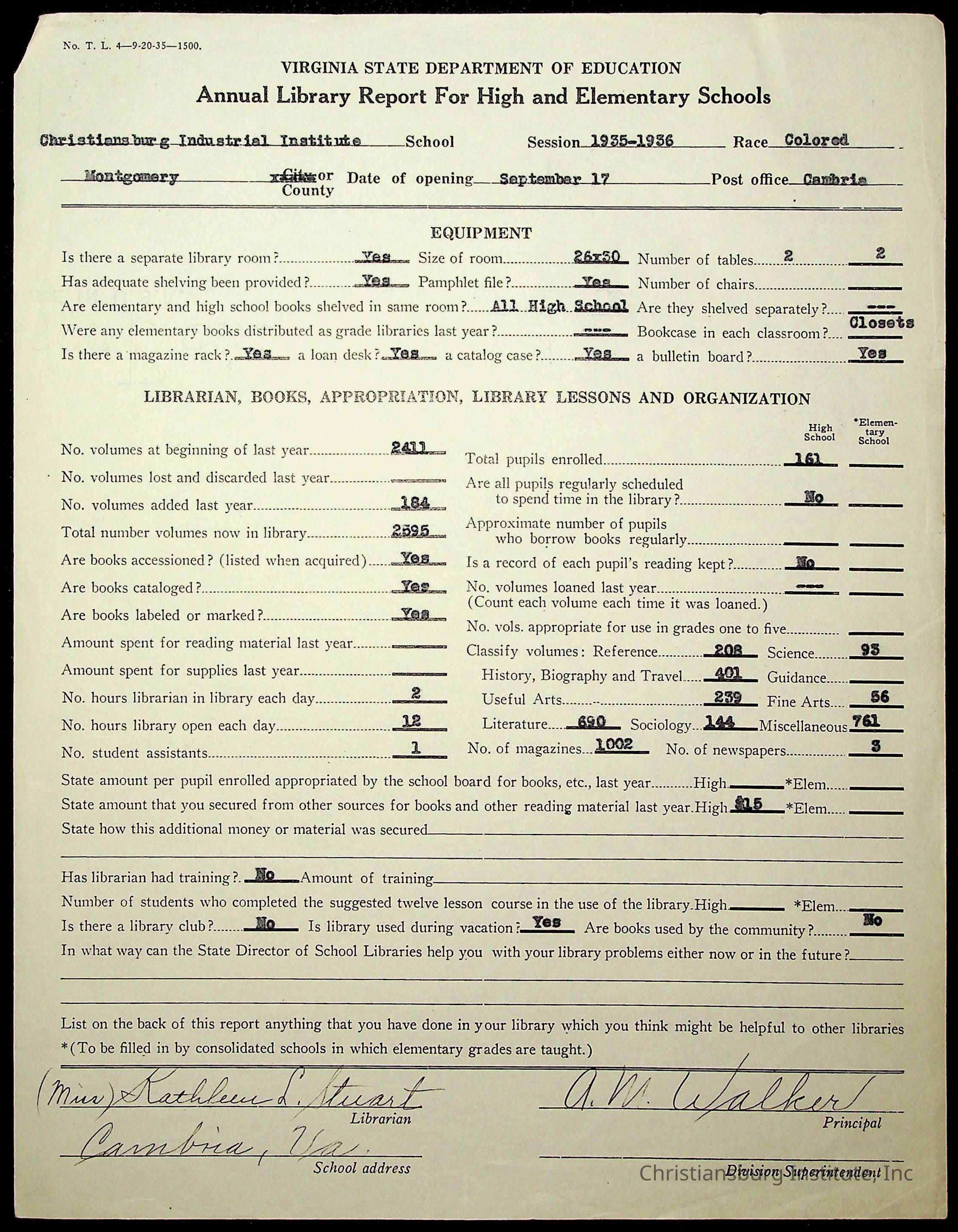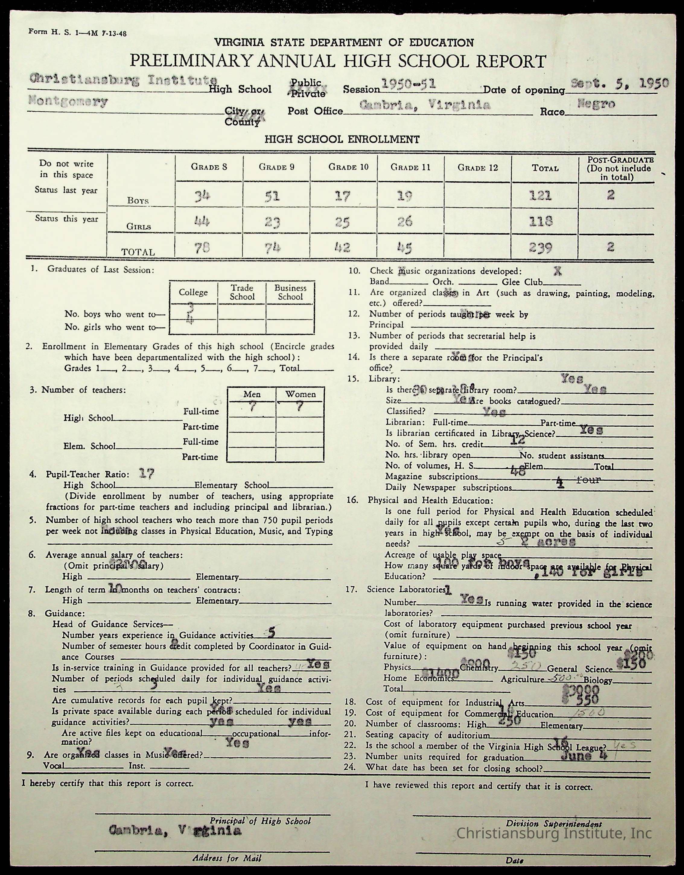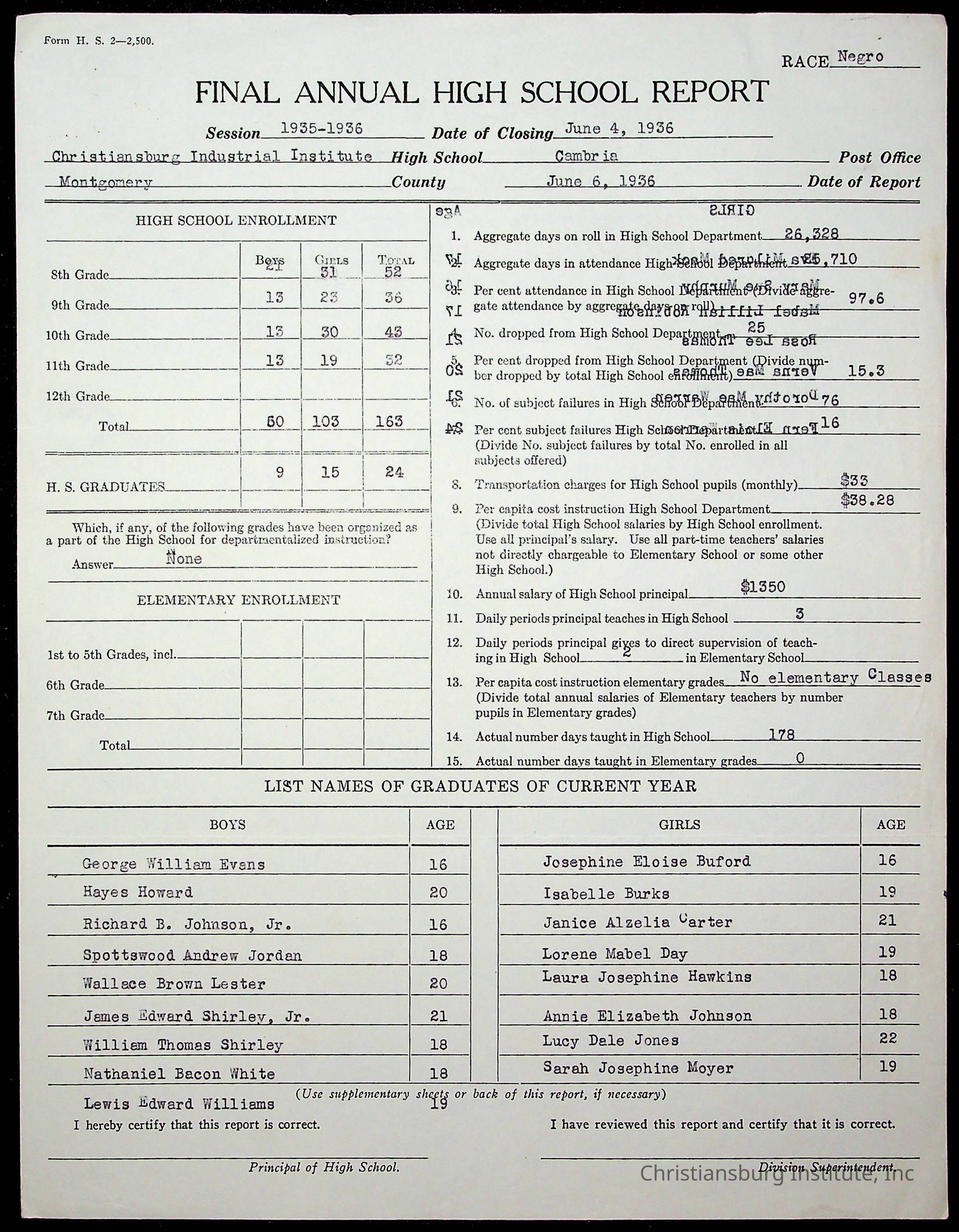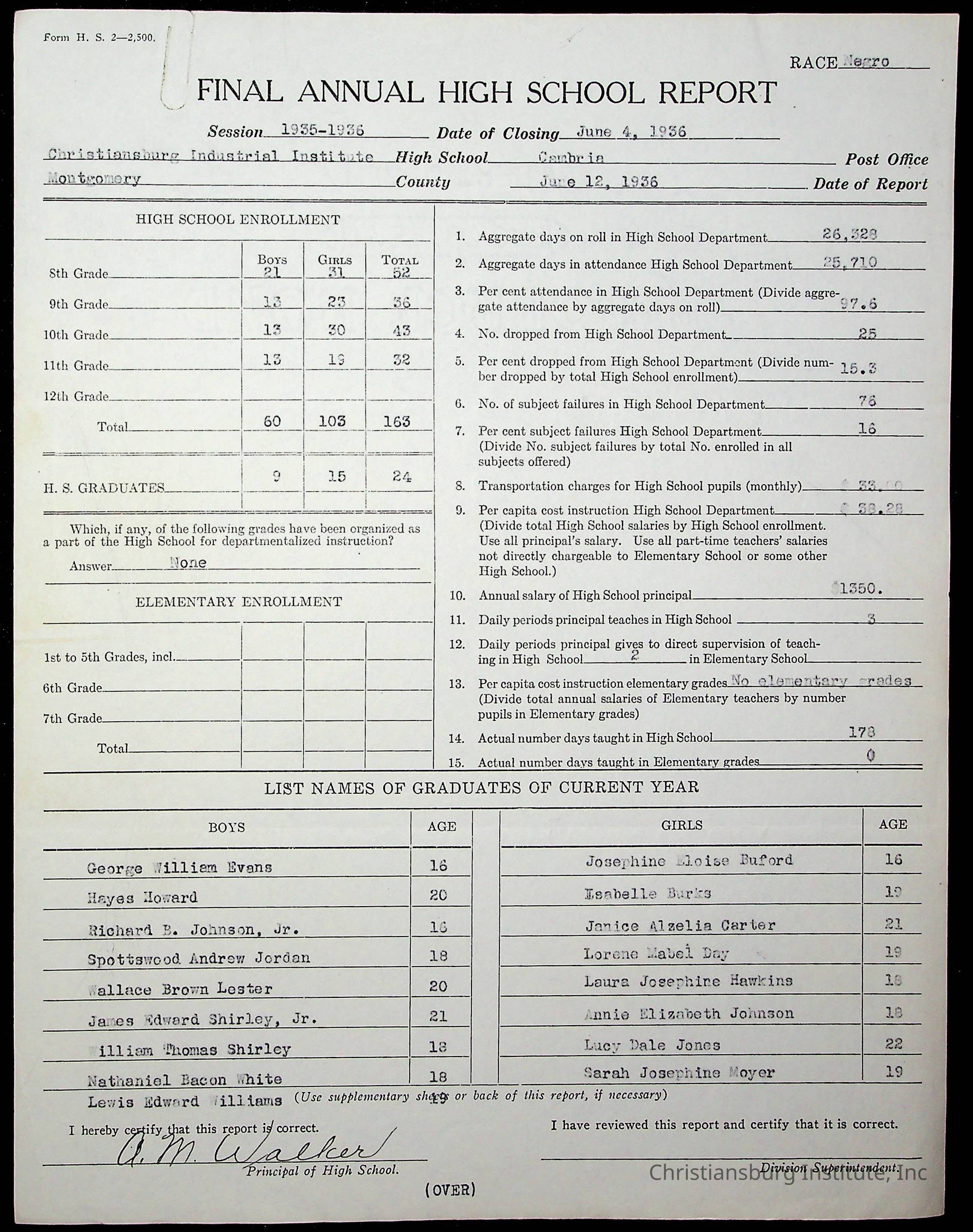 Copyright has been assigned to Christiansburg Institute Museum & Archives by Montgomery County Public Schools. For permission to publish materials created by the donor, contact CIMA@christiansburginstitute.com. Materials not created by Christiansburg Industrial Institute may still be under copyright.
