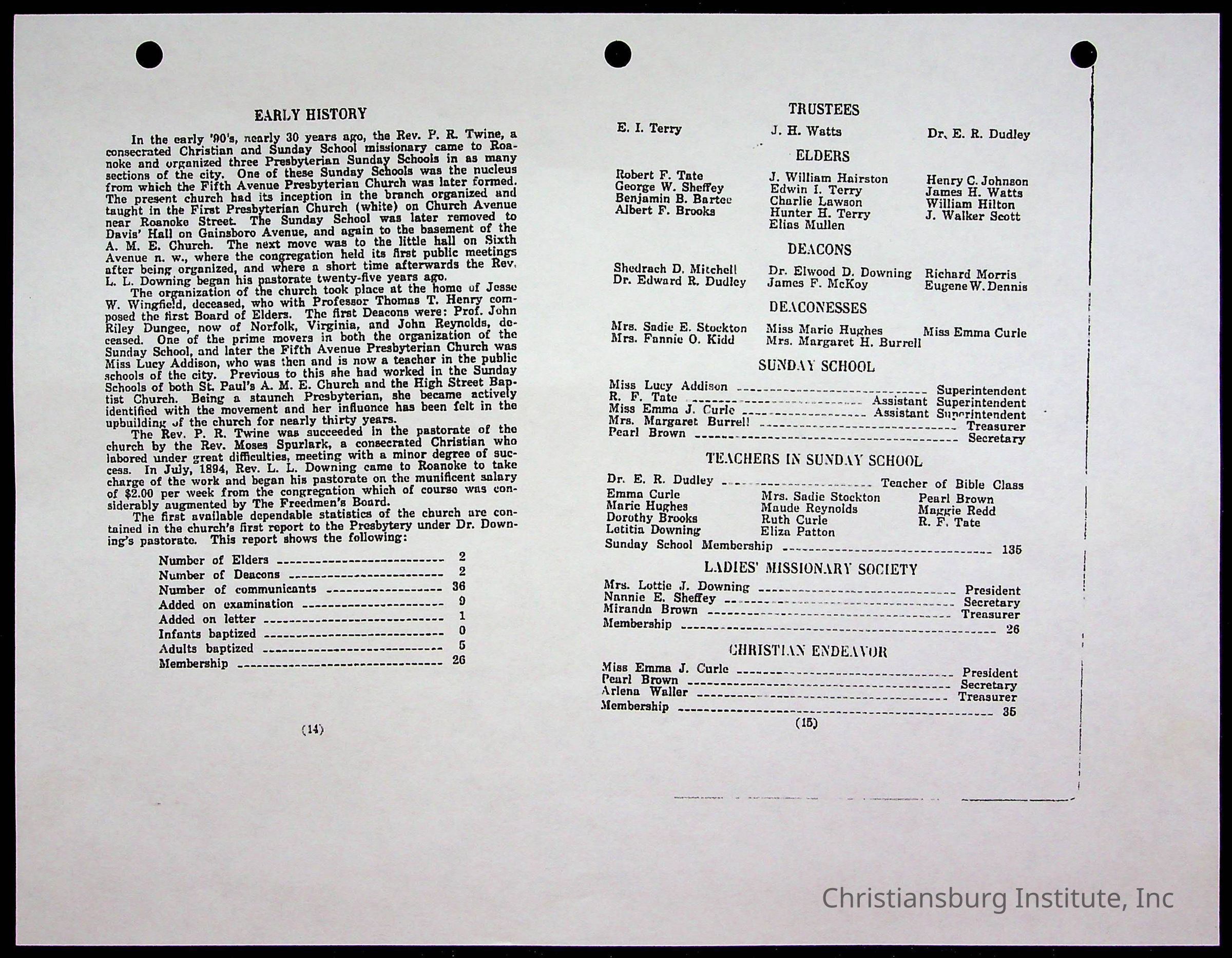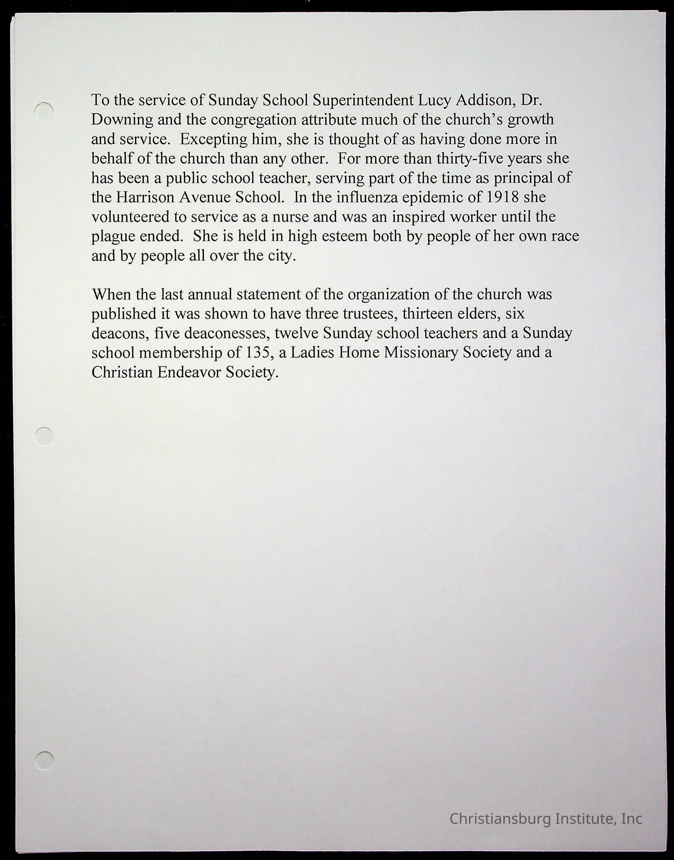 Copyright has been assigned to Christiansburg Institute Museum & Archives by Fifth Avenue Presbyterian Church. For permission to publish materials created by the donor, contact CIMA@christiansburginstitute.com. Materials not created by Fifth Avenue Presbyterian Church may still be under copyright.