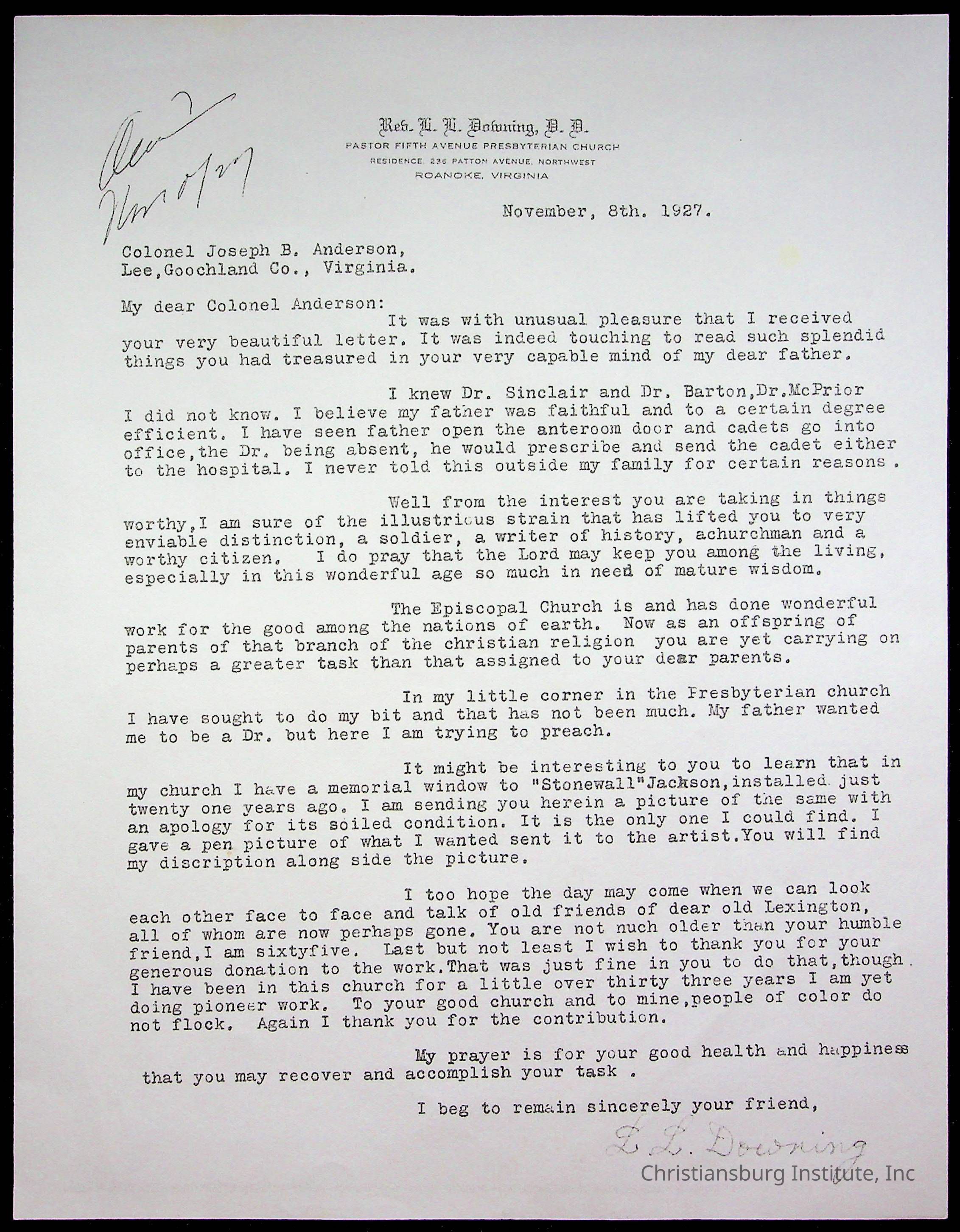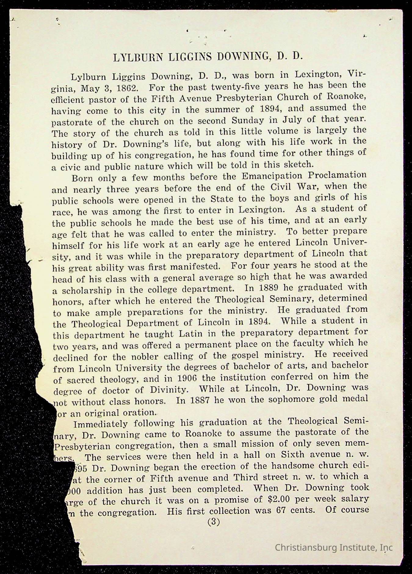 A collection of materials that pertain to Reverend Lylburn Liggins Downing and to events that happened during the time he served at the church. He served as a reverend at Fifth Avenue Presbyterian Church.Collection