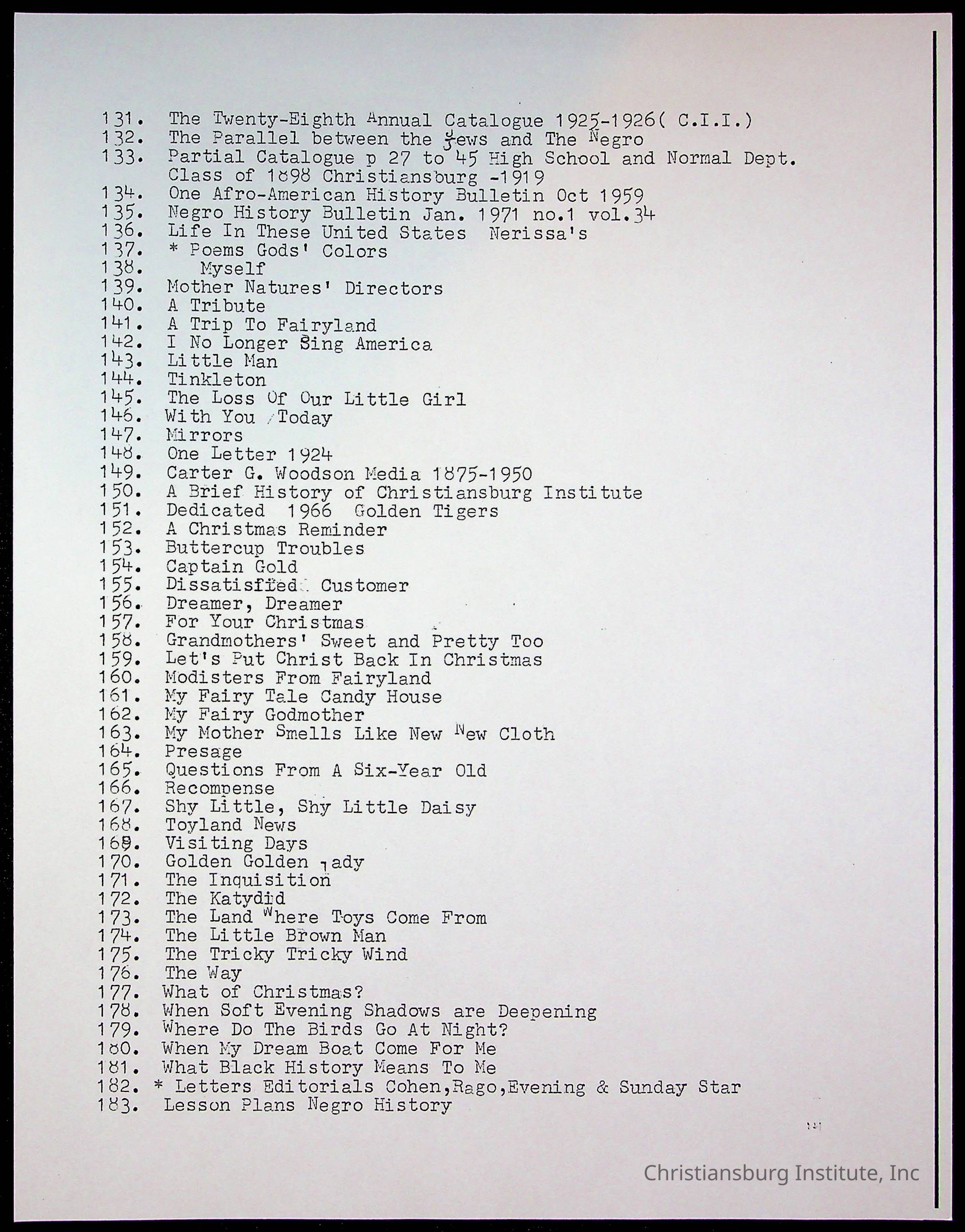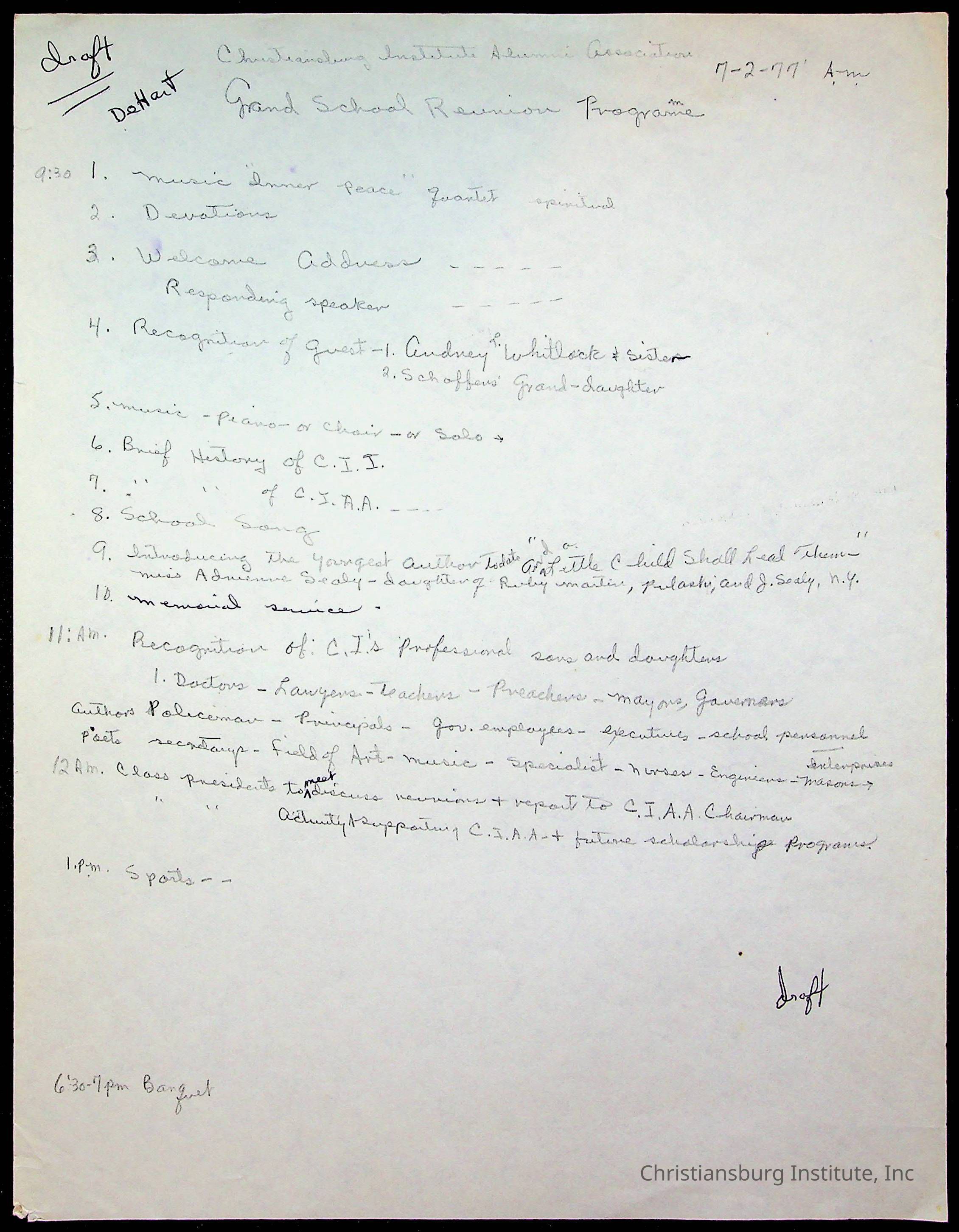 Copyright has been assigned to Christiansburg Institute Museum & Archives by Amanda DeHart. For permission to publish materials created by the donor, contact CIMA@christiansburginstitute.com. Materials not created by Amanda DeHart may still be under copyright.