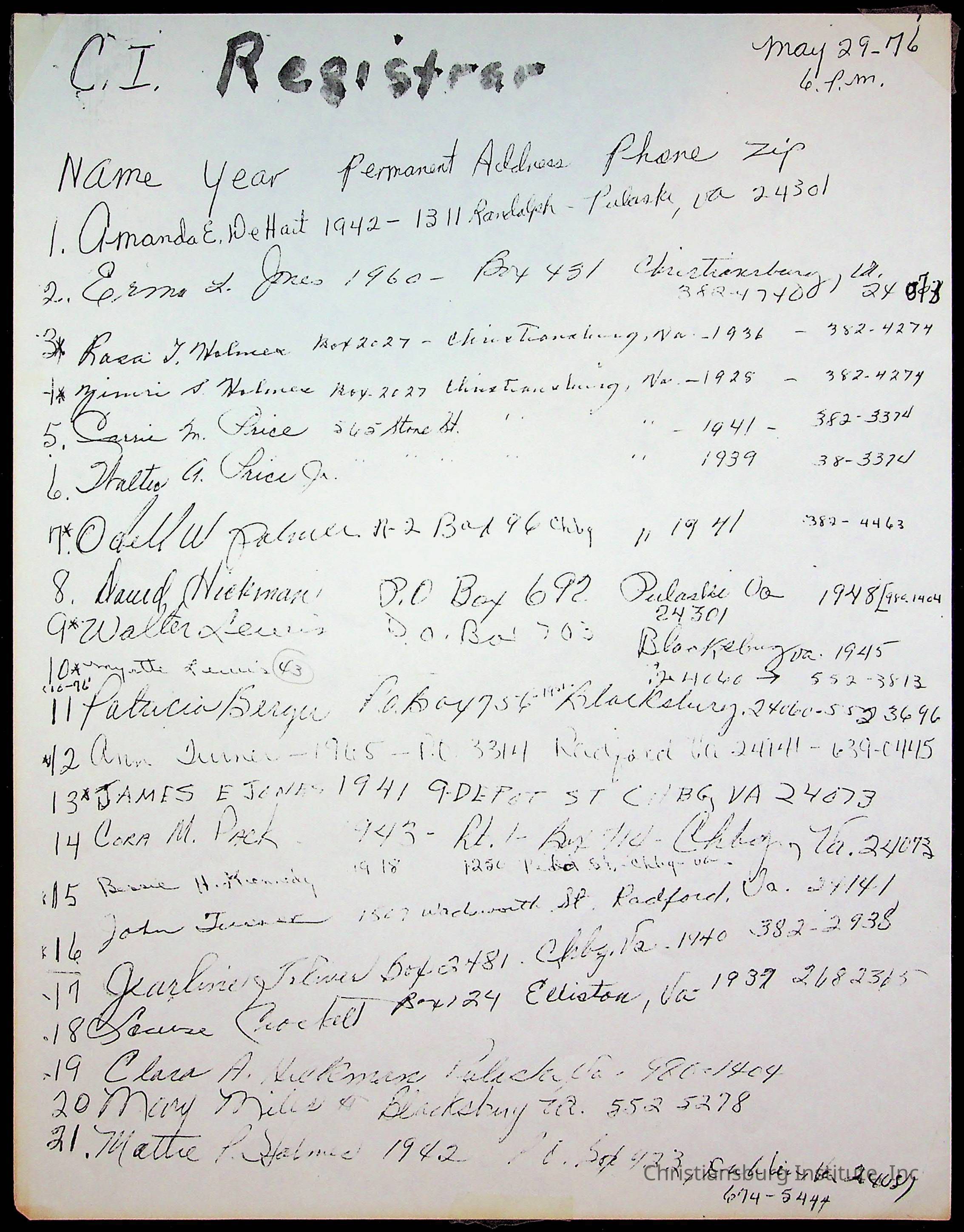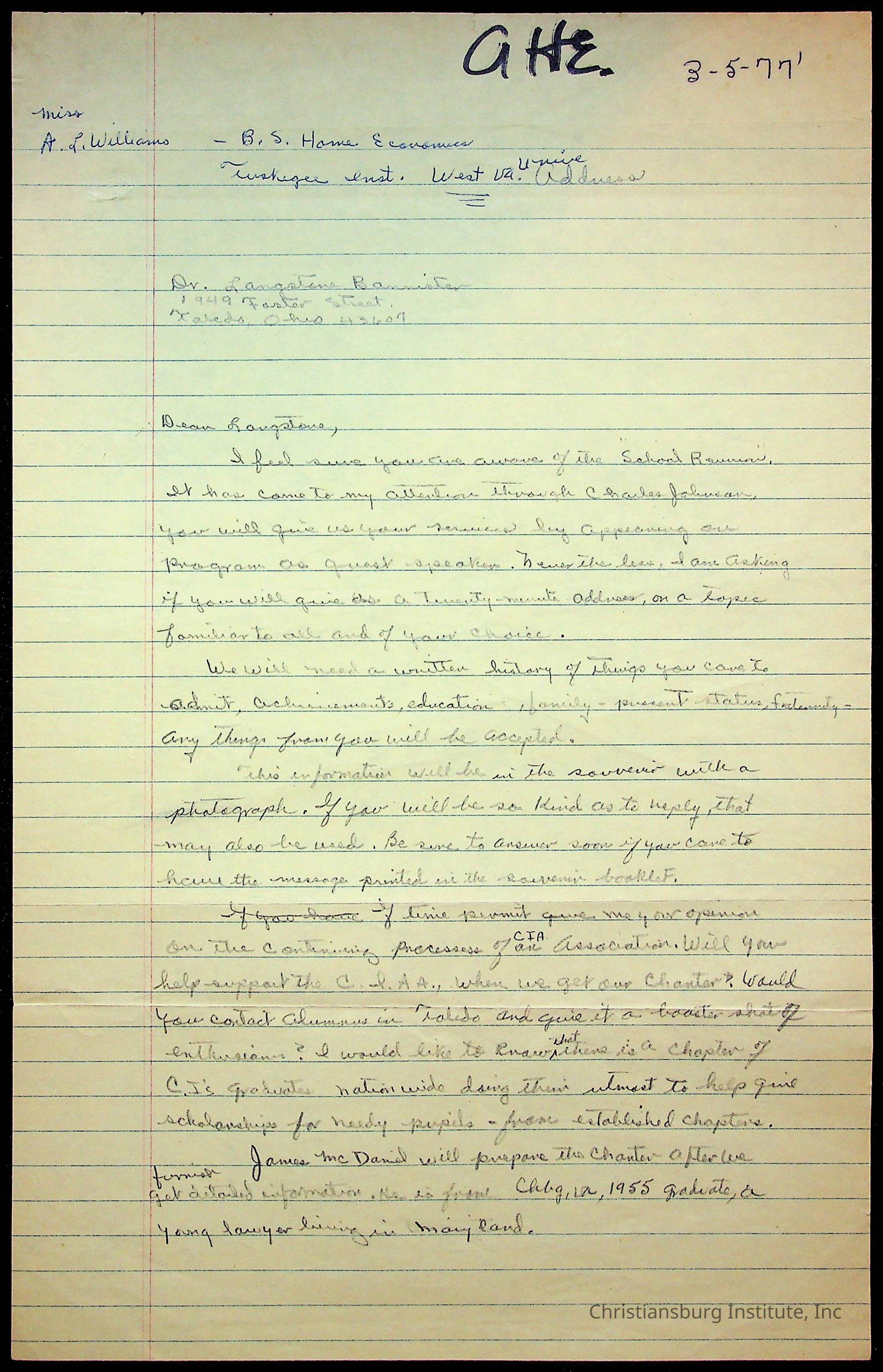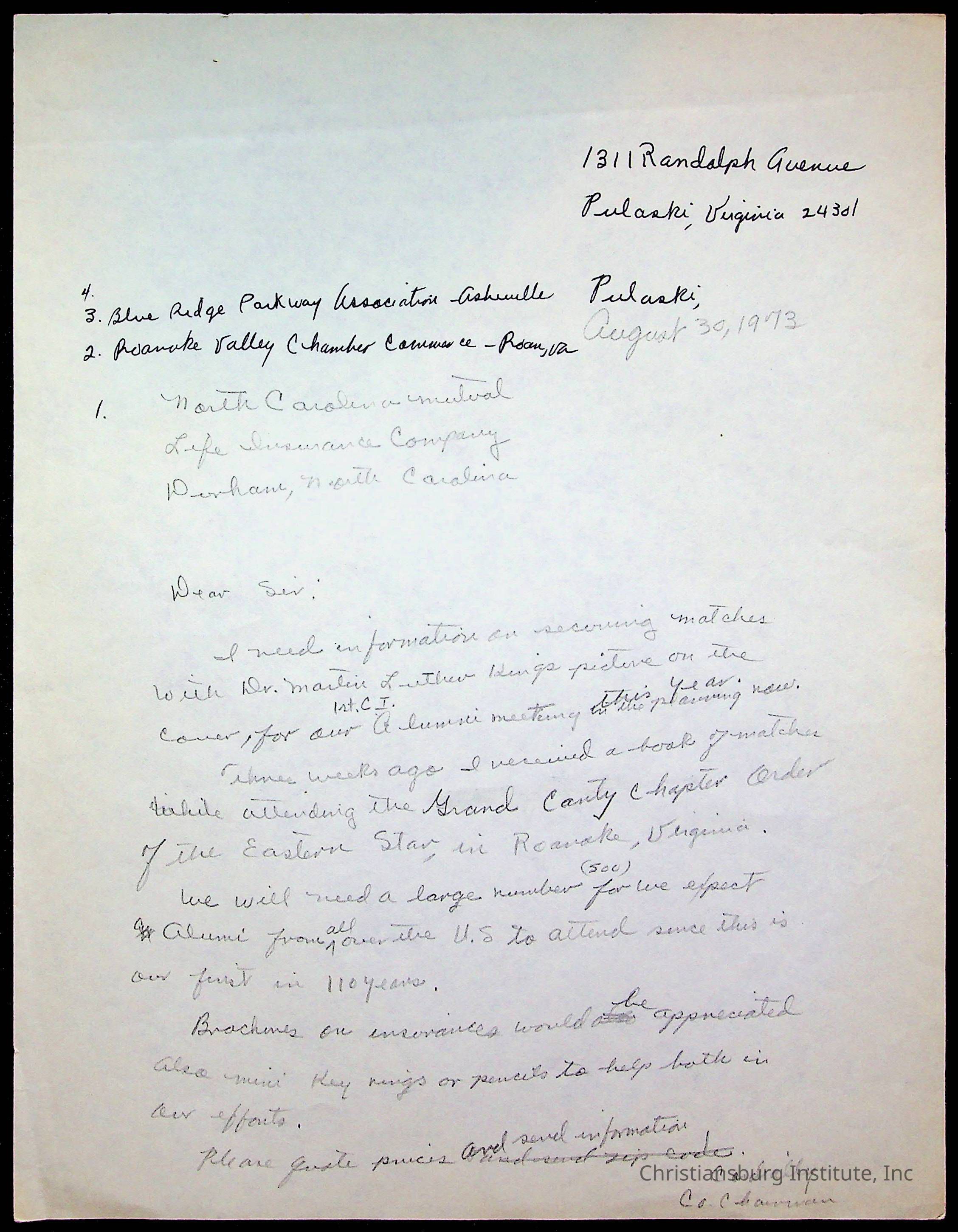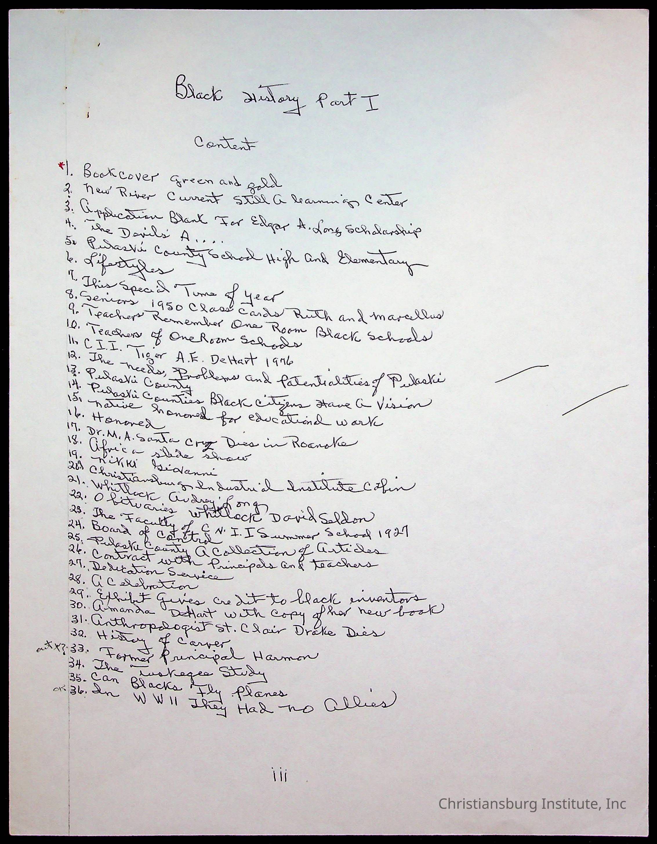 An archive of research material about Christiansburg Institute Alumni Association dated 1976-1999 complied by Amanda DeHart.