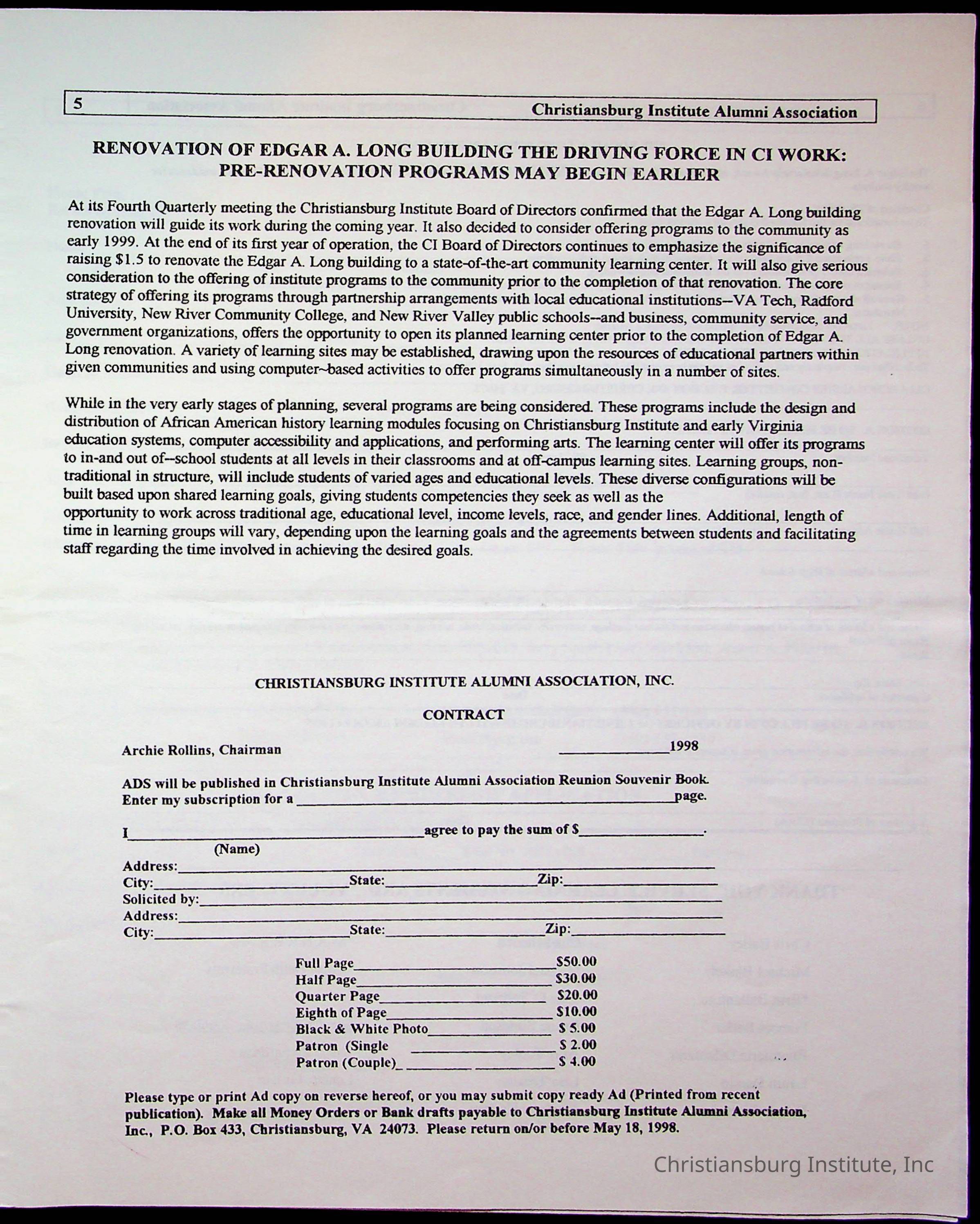 Christiansburg Institute Alumni Association, 1976-1999
