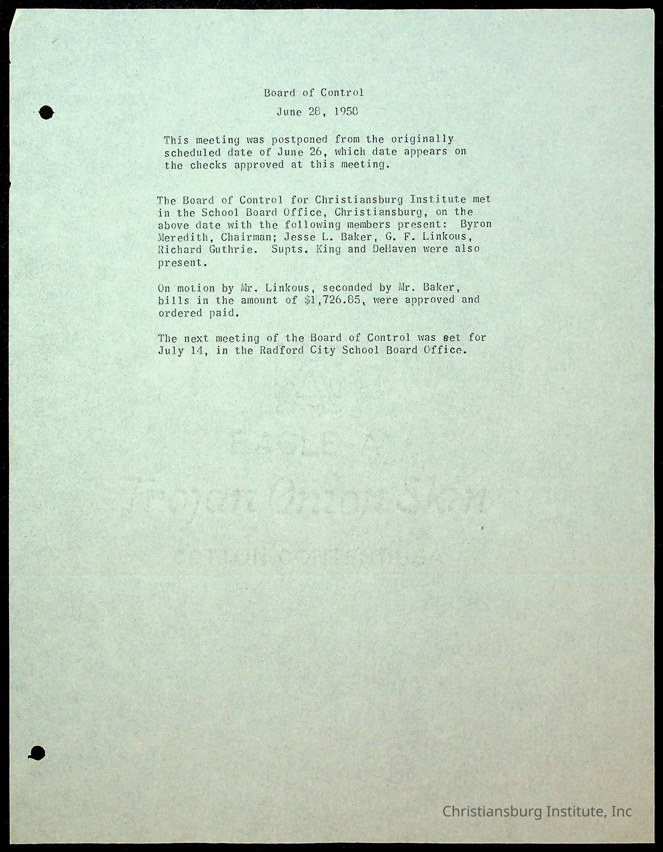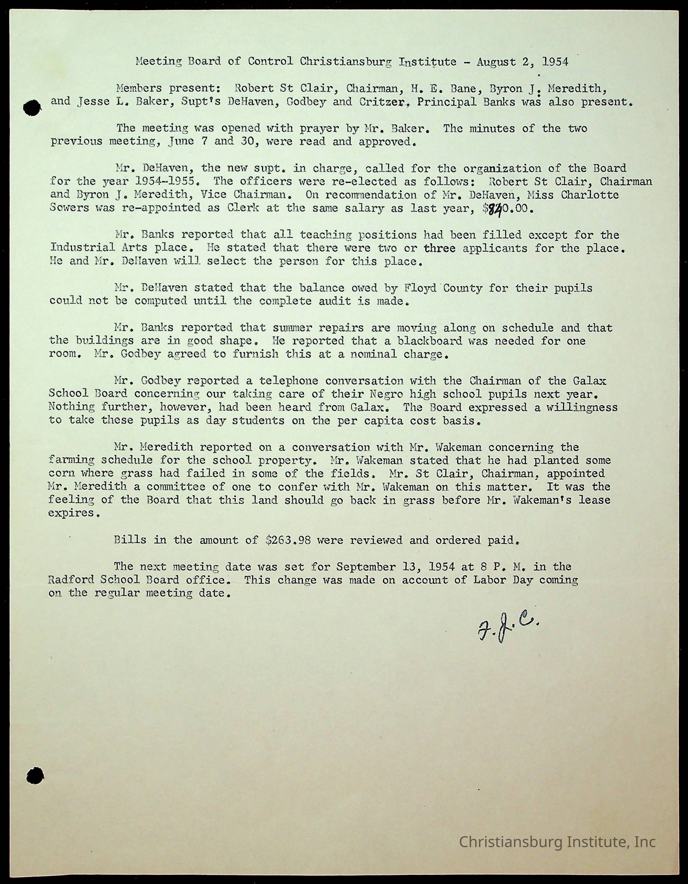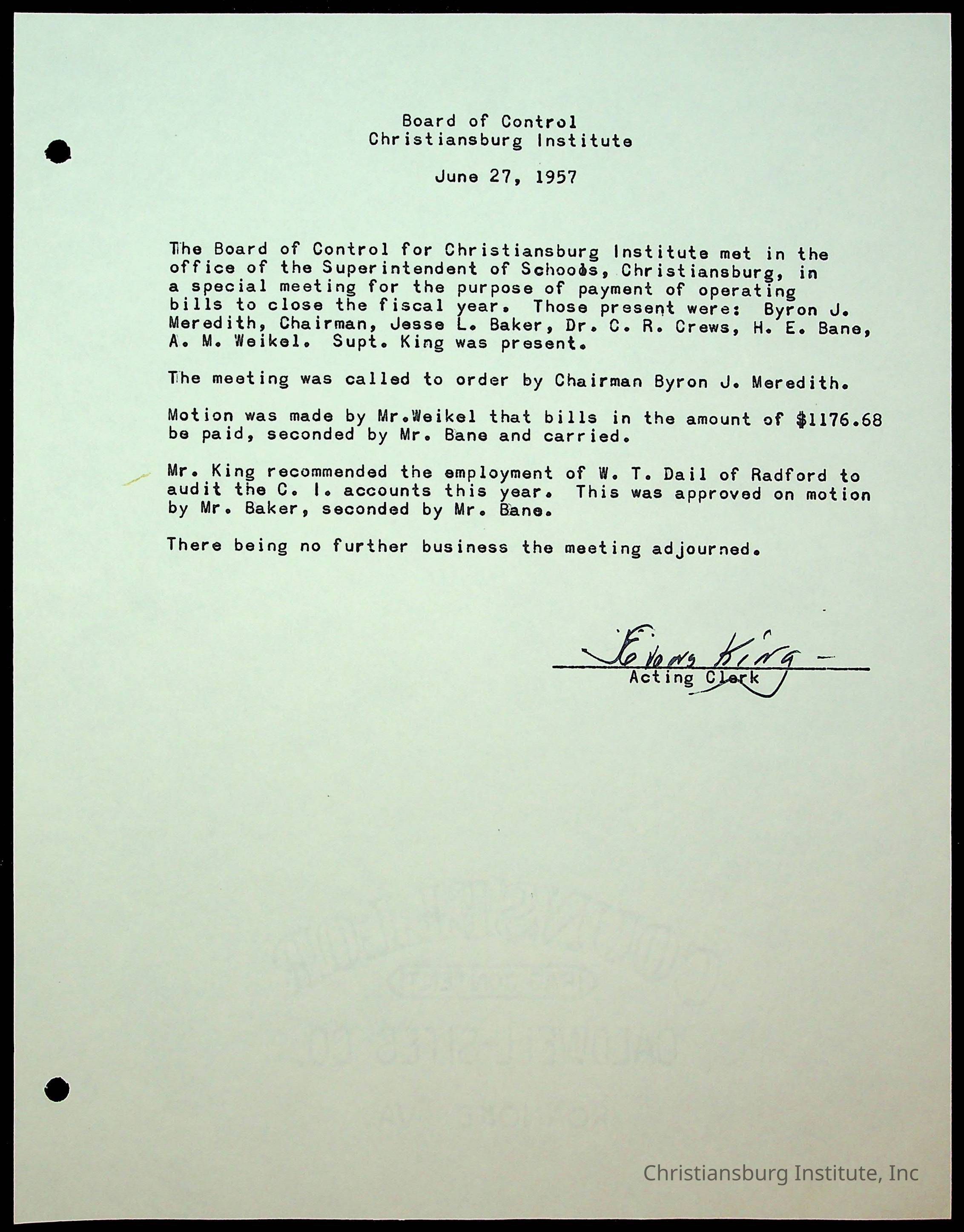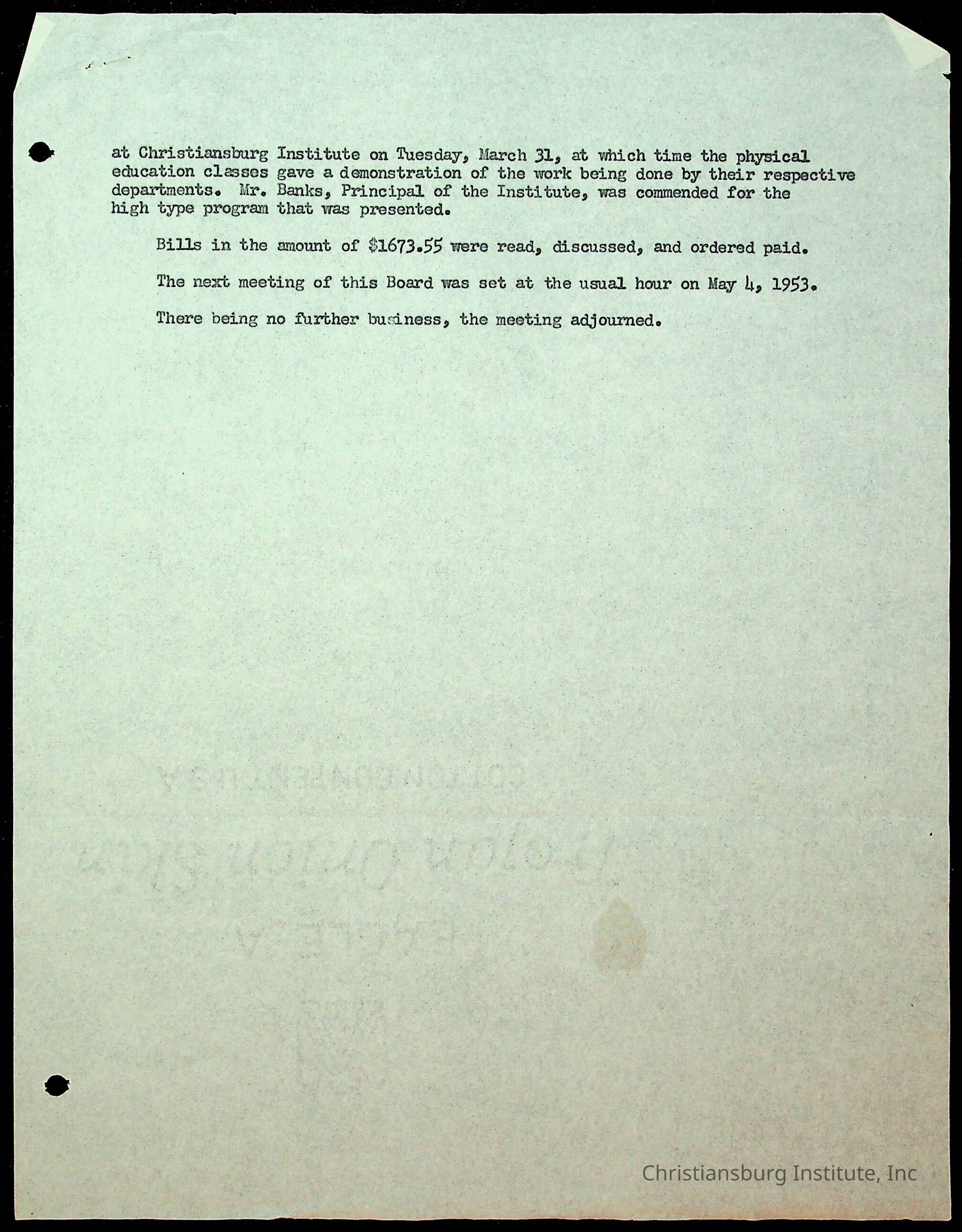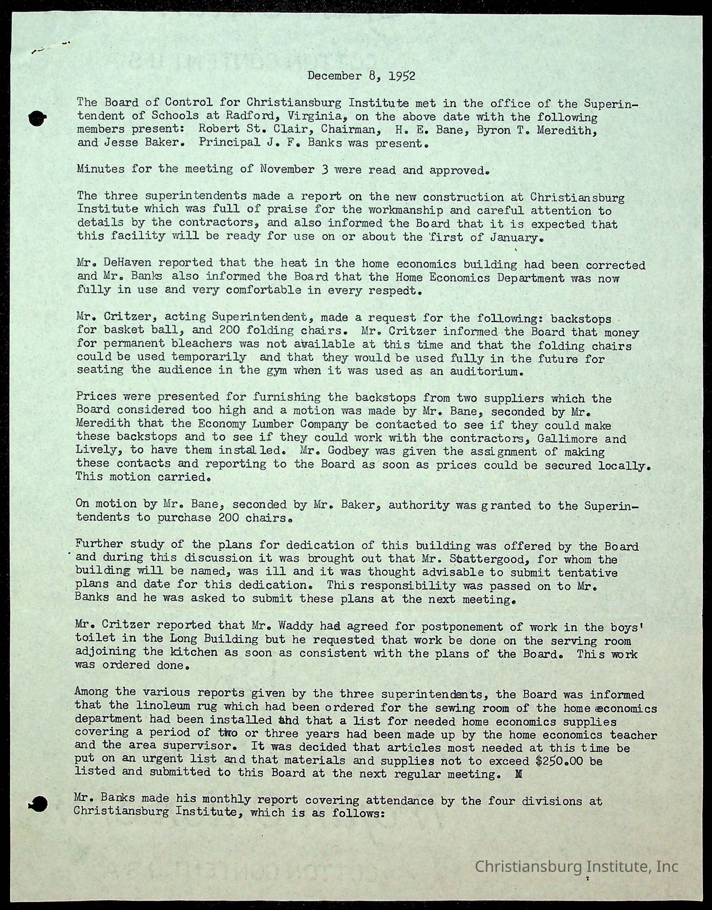 "Copyright has been assigned to Christiansburg Institute Museum & Archives by Montgomery County Public Schools. For permission to publish materials created by the donor, contact CIMA@christiansburginstitute.com. Materials not created by Christiansburg Industrial Institute may still be under copyright.