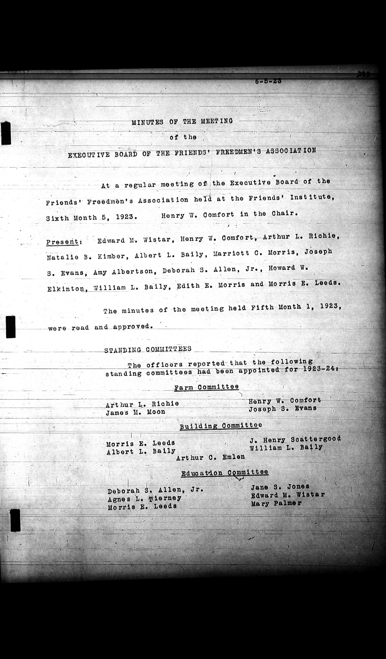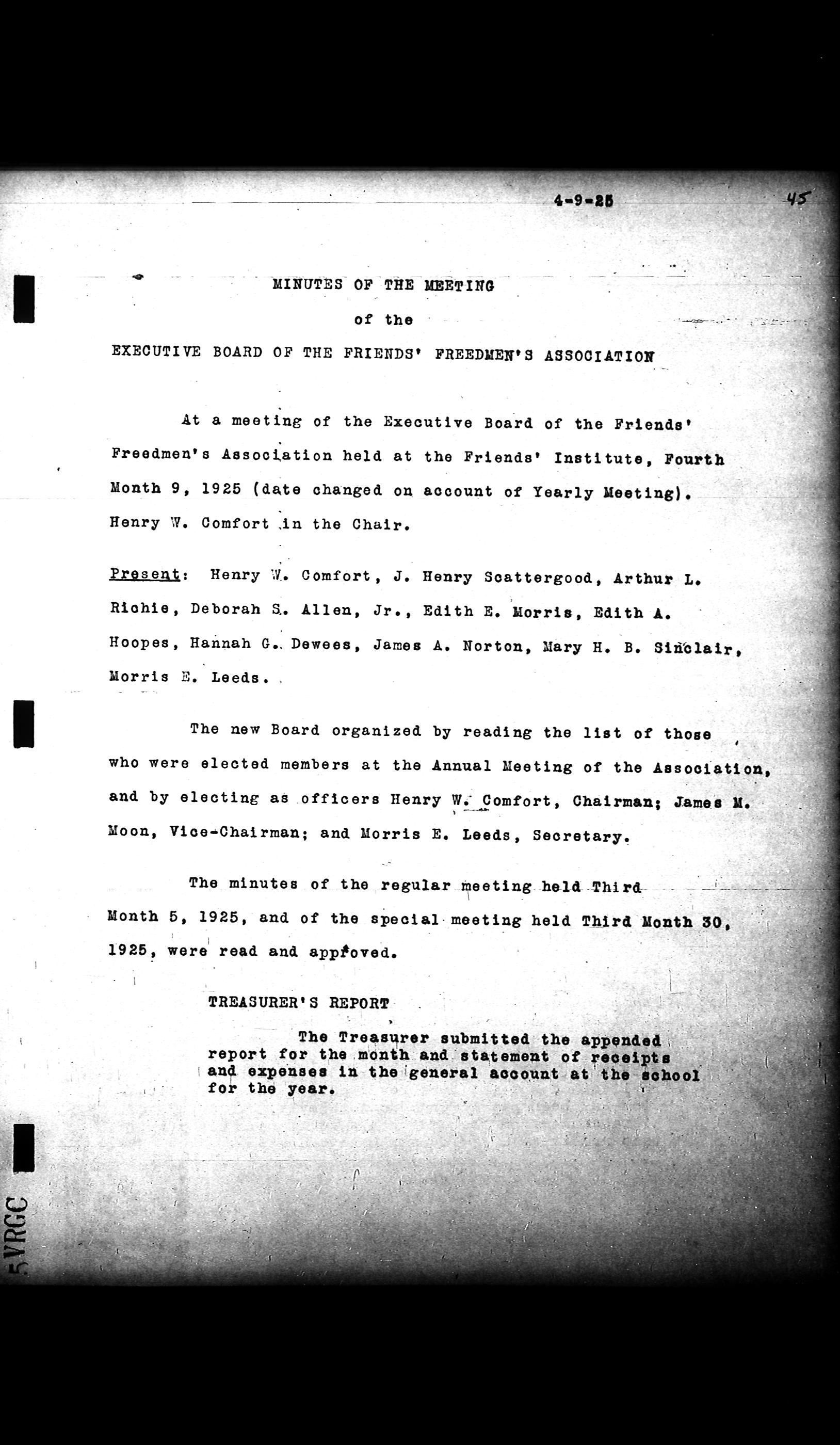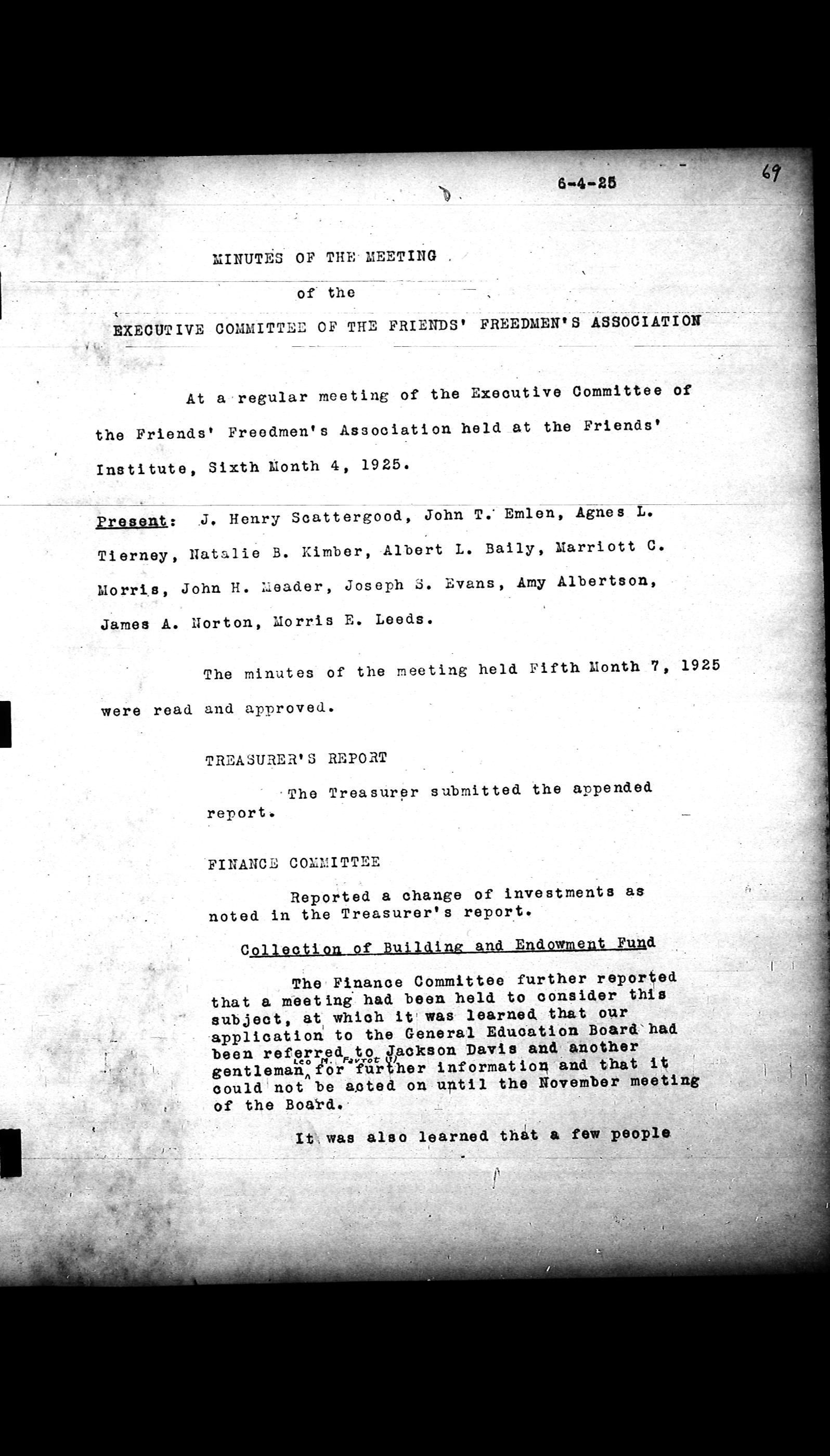 Friends Freedman's Association Reel Four: Executive Committee Minutes 1920-1932Scope and Content