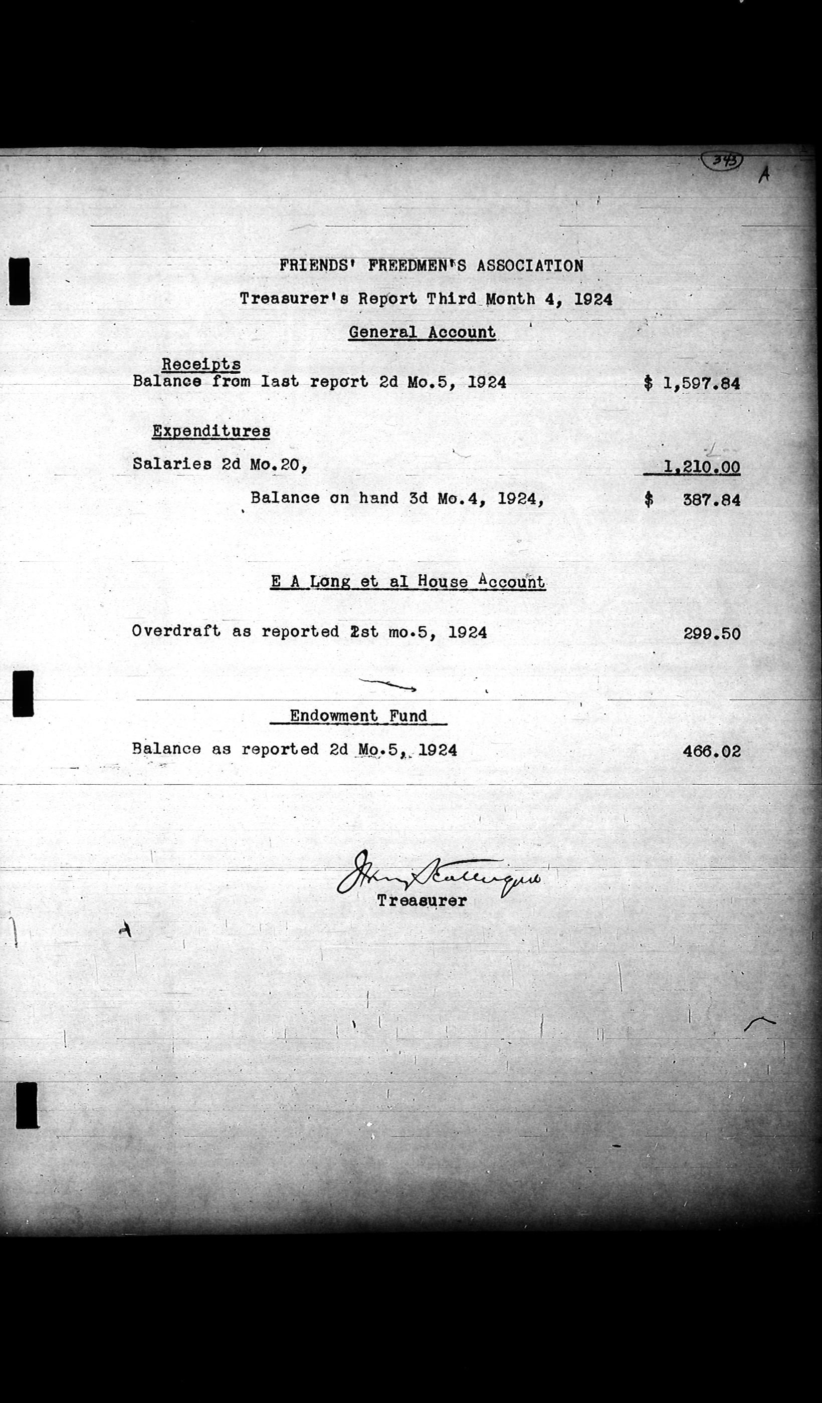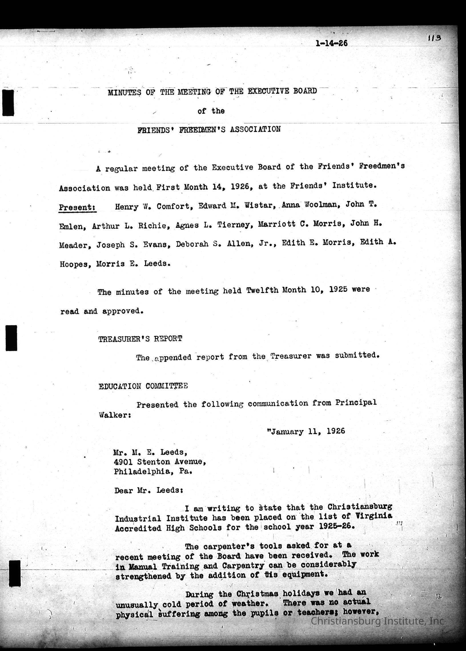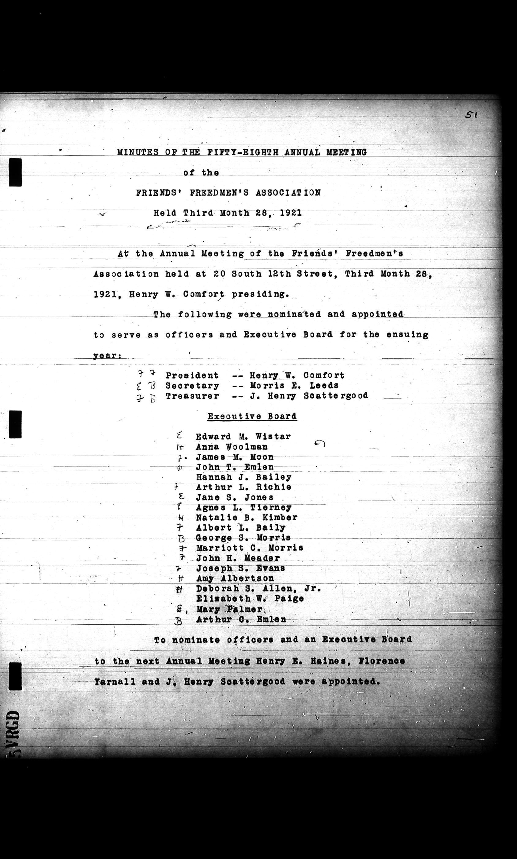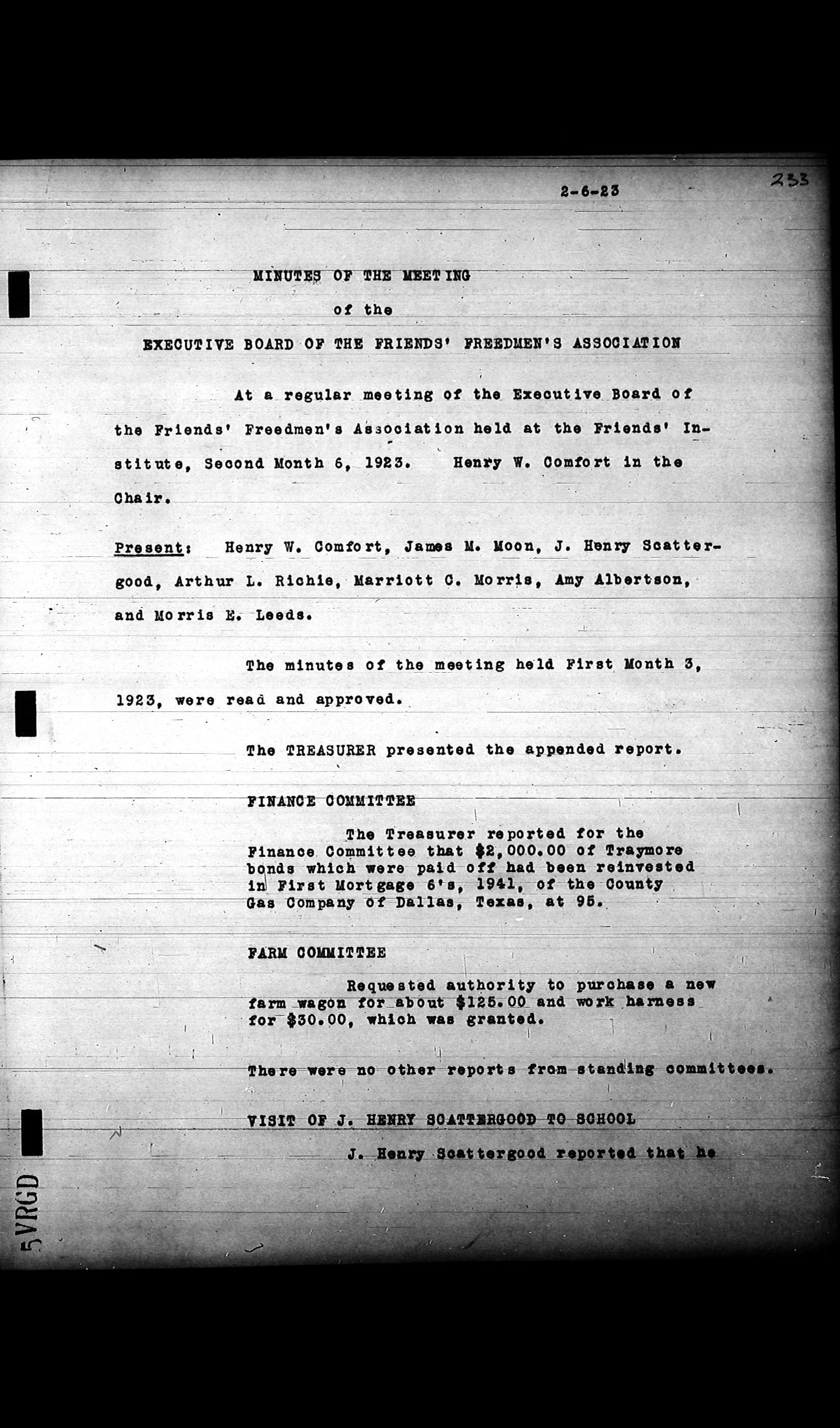 Friends Freedman's Association Reel Four: Executive Committee Minutes 1920-1932Scope and Content