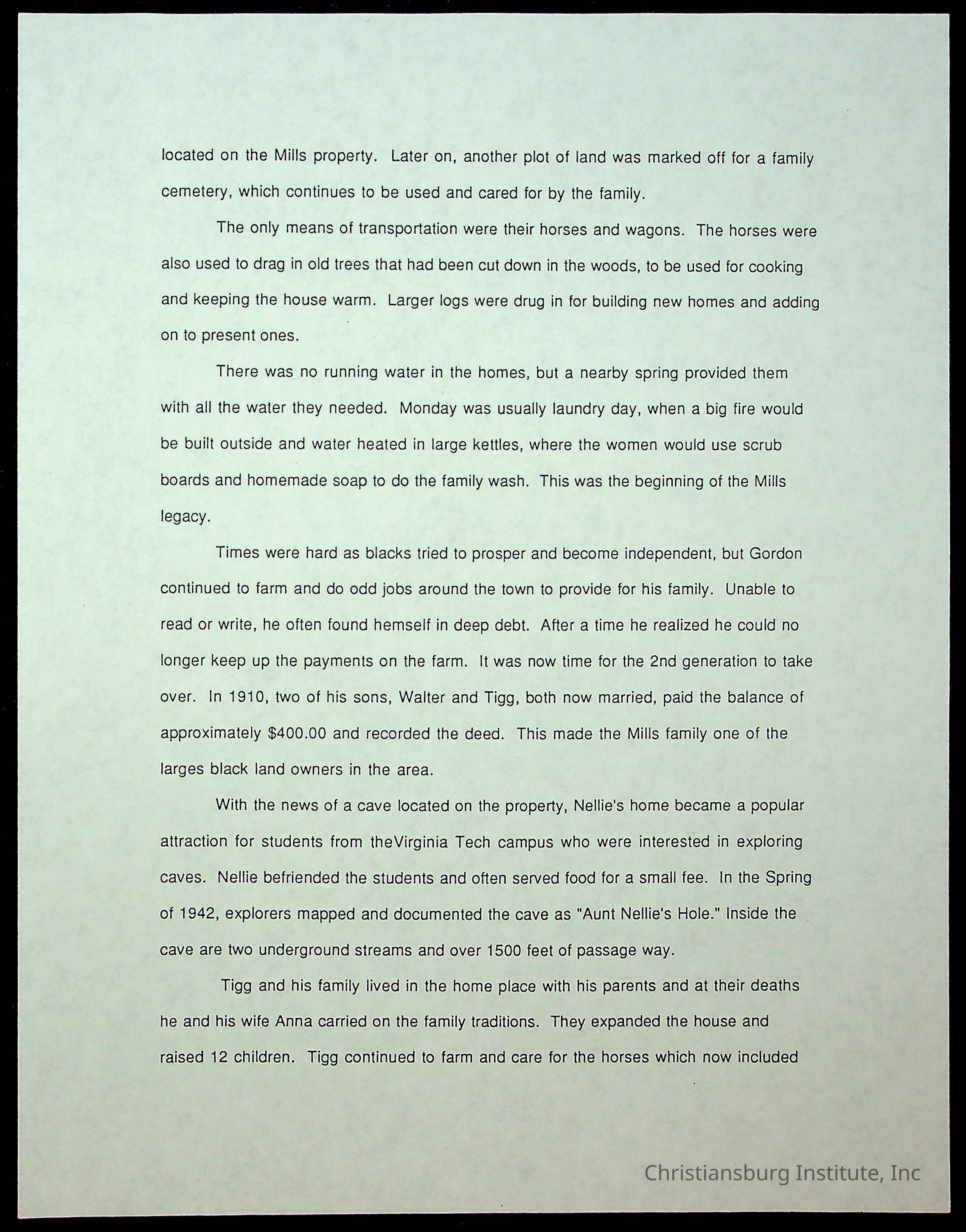An archive of several copies of Mary Mills' 'History of Nellies Cave Community' compiled by Elizabeth Fine, circa 1990s.