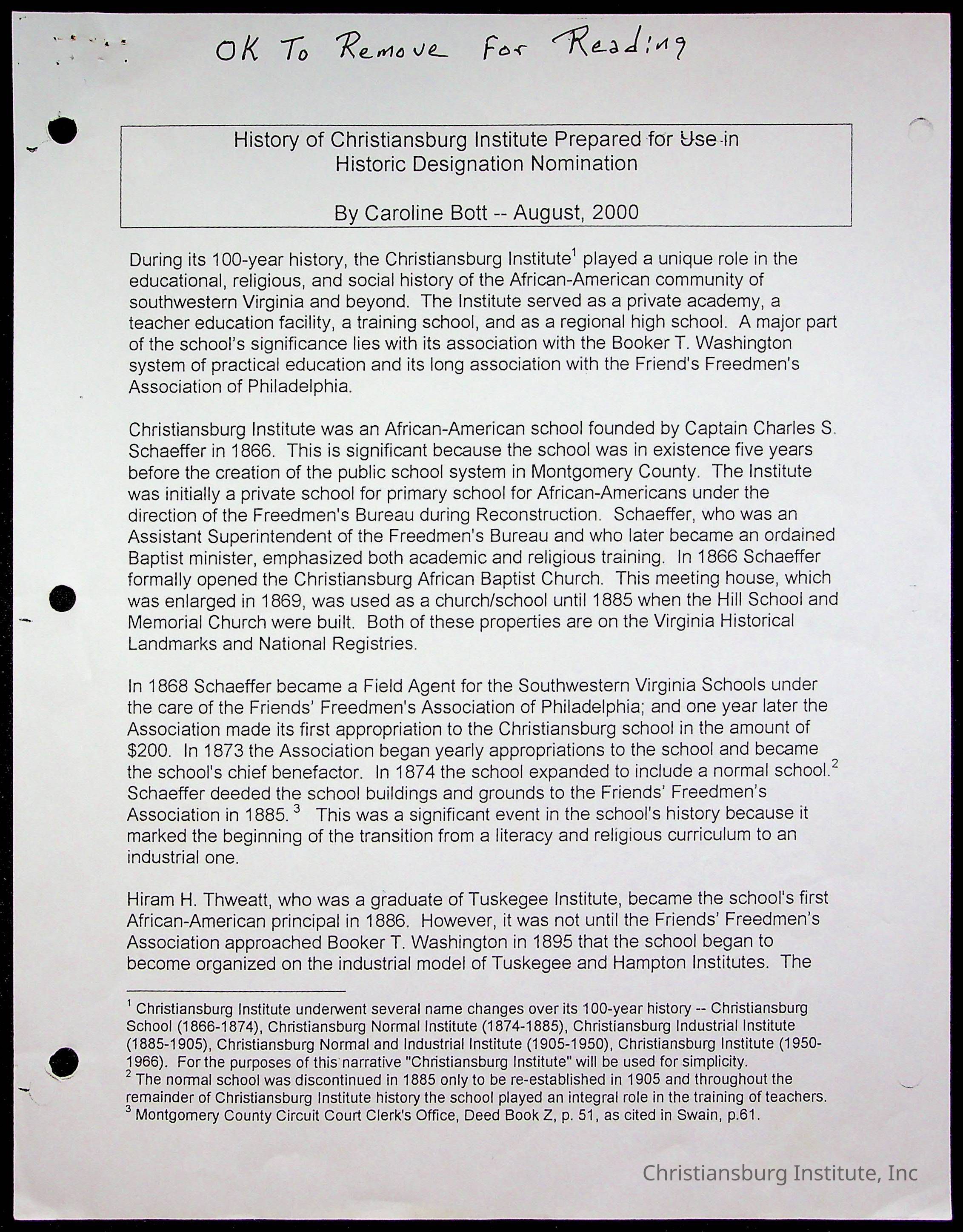 Copyright has been assigned to Christiansburg Institute Museum & Archives by William. For permission to publish materials created by the donor, contact CIMA@christiansburginstitute.com. Materials not created by William Smith may still be under copyright.